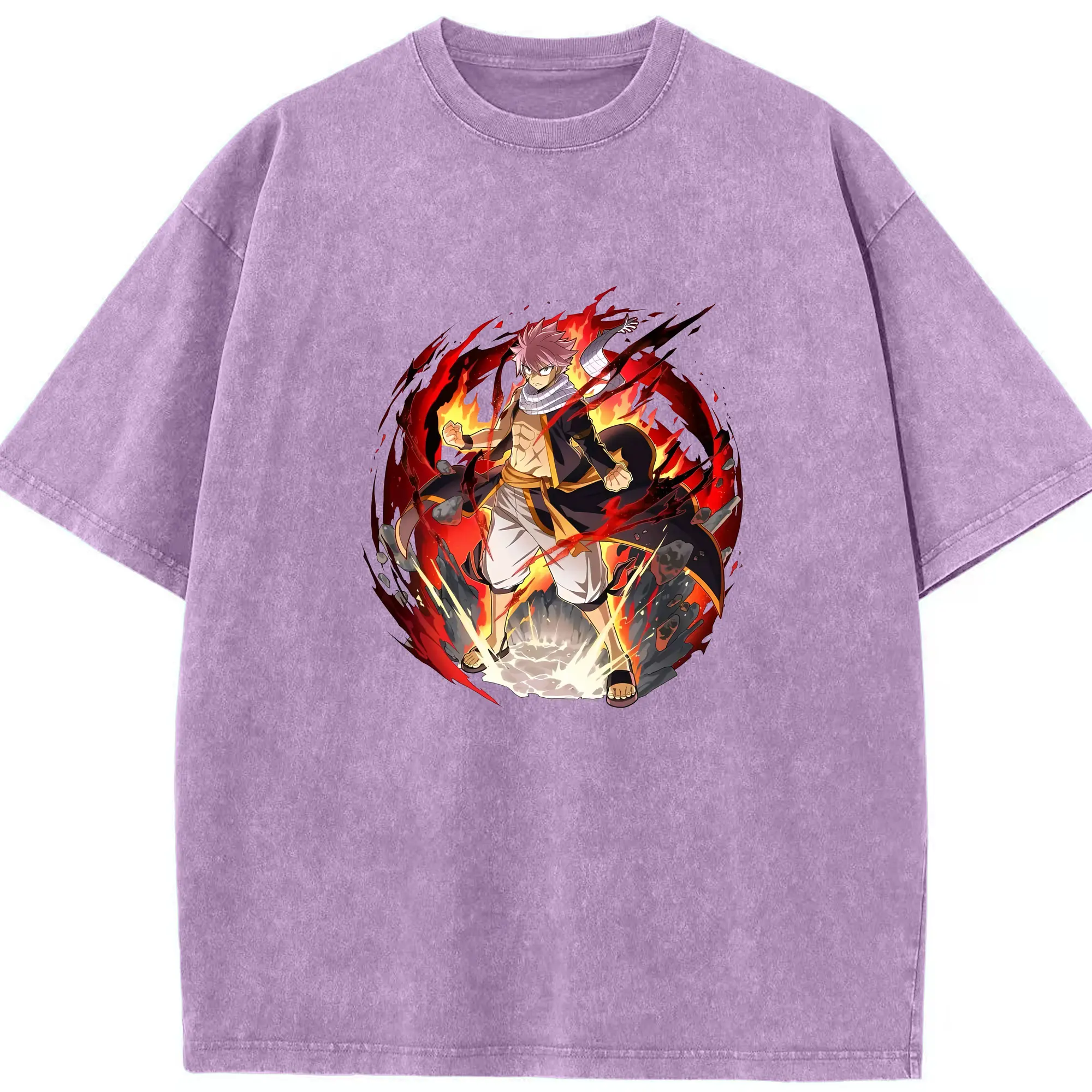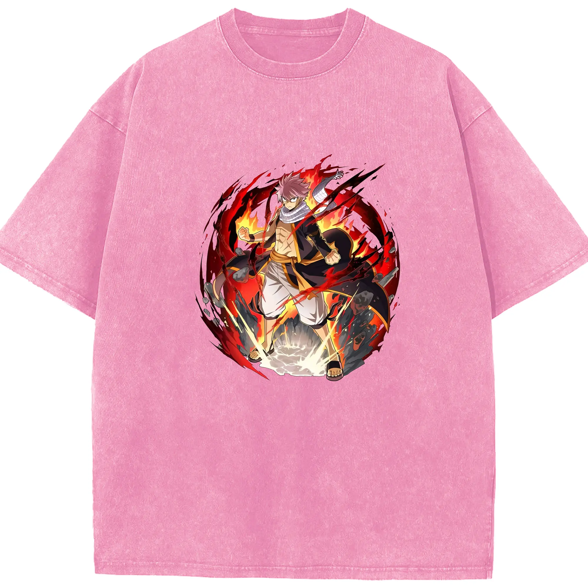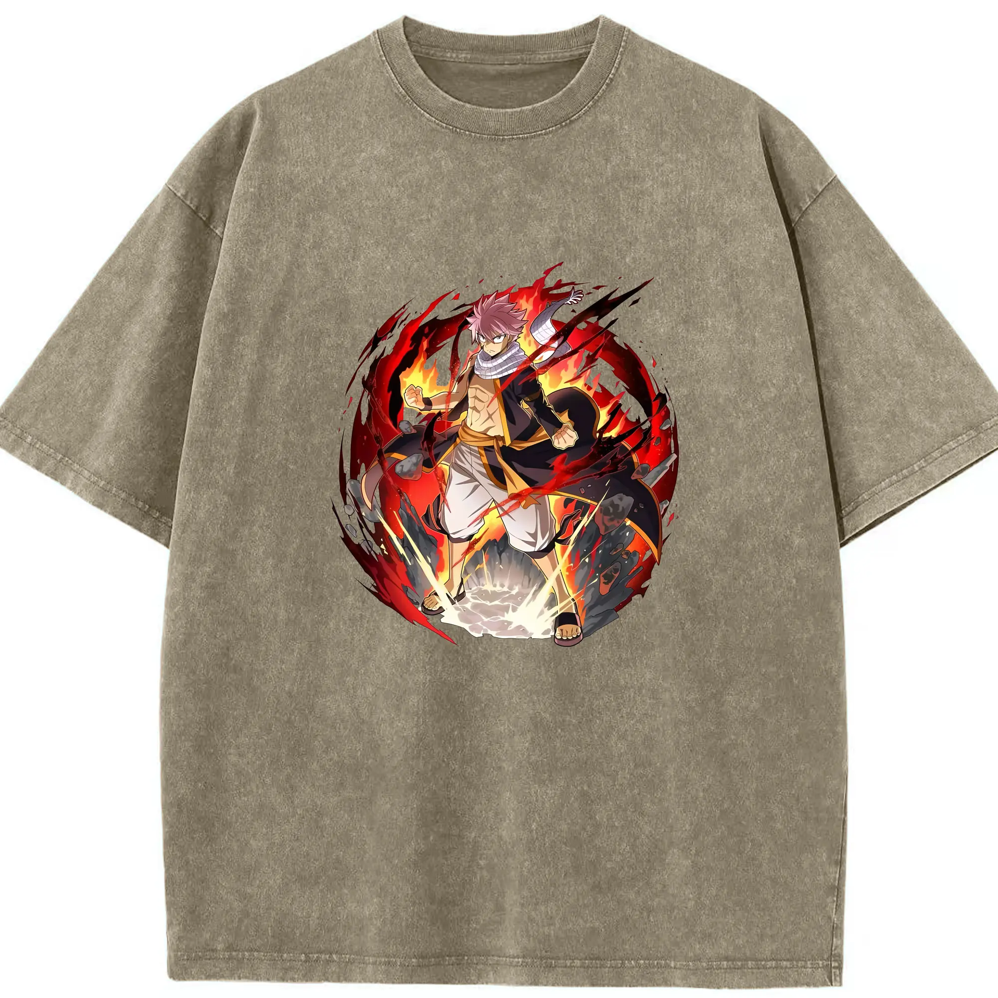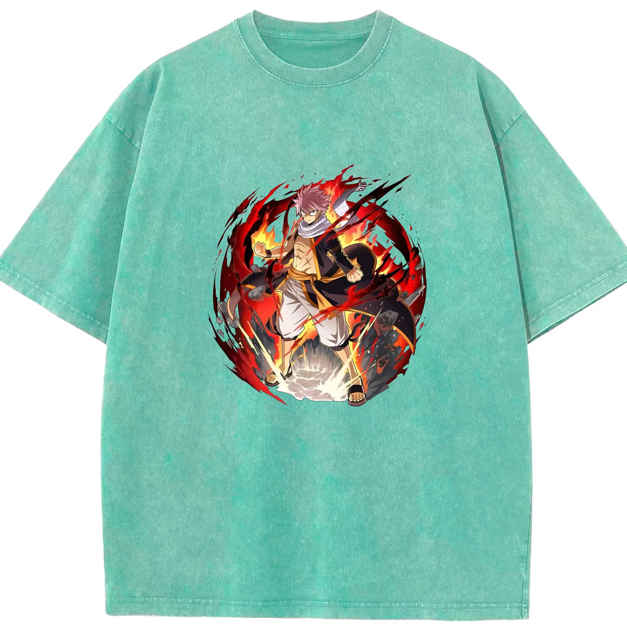 フェアリーテイル グッズ ナツ・ドラグニル - 綿100% ヴィンテージ風 半袖Tシャツ ・ 背面プリント ・ 柔らか肌触り ・ 通気性 快適 ・ スポーツ カジュアル 外出用
