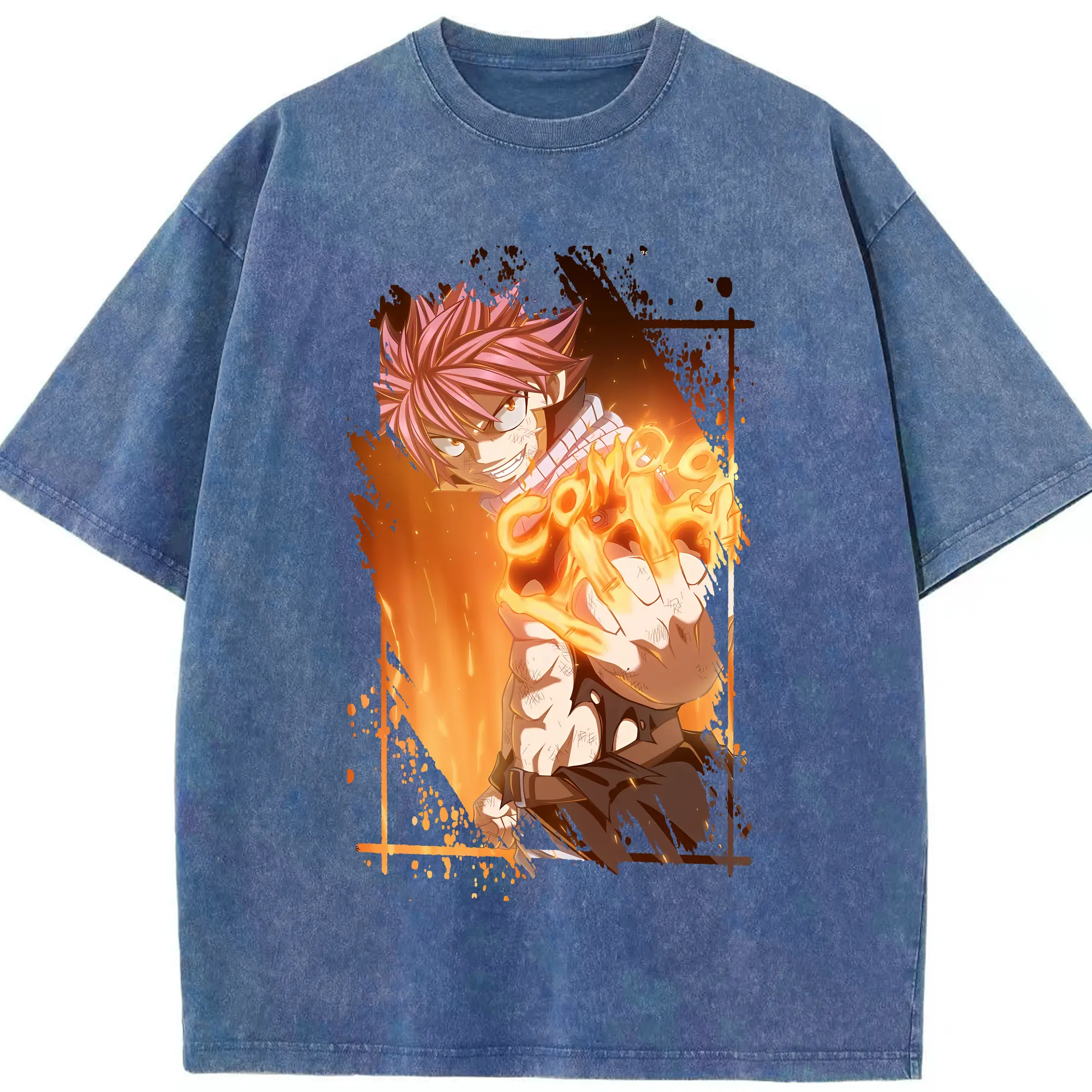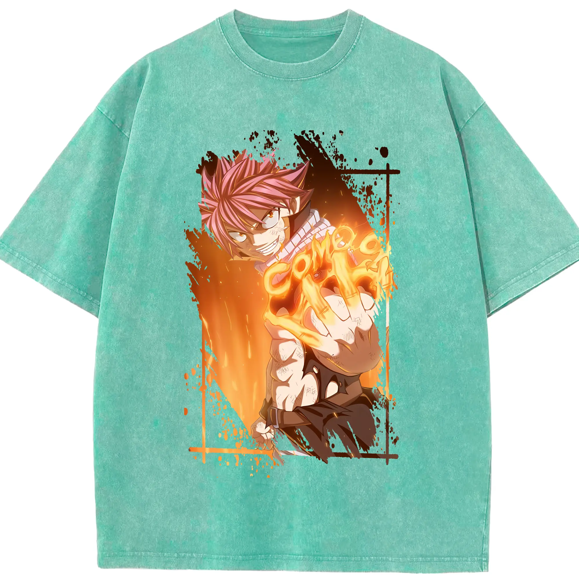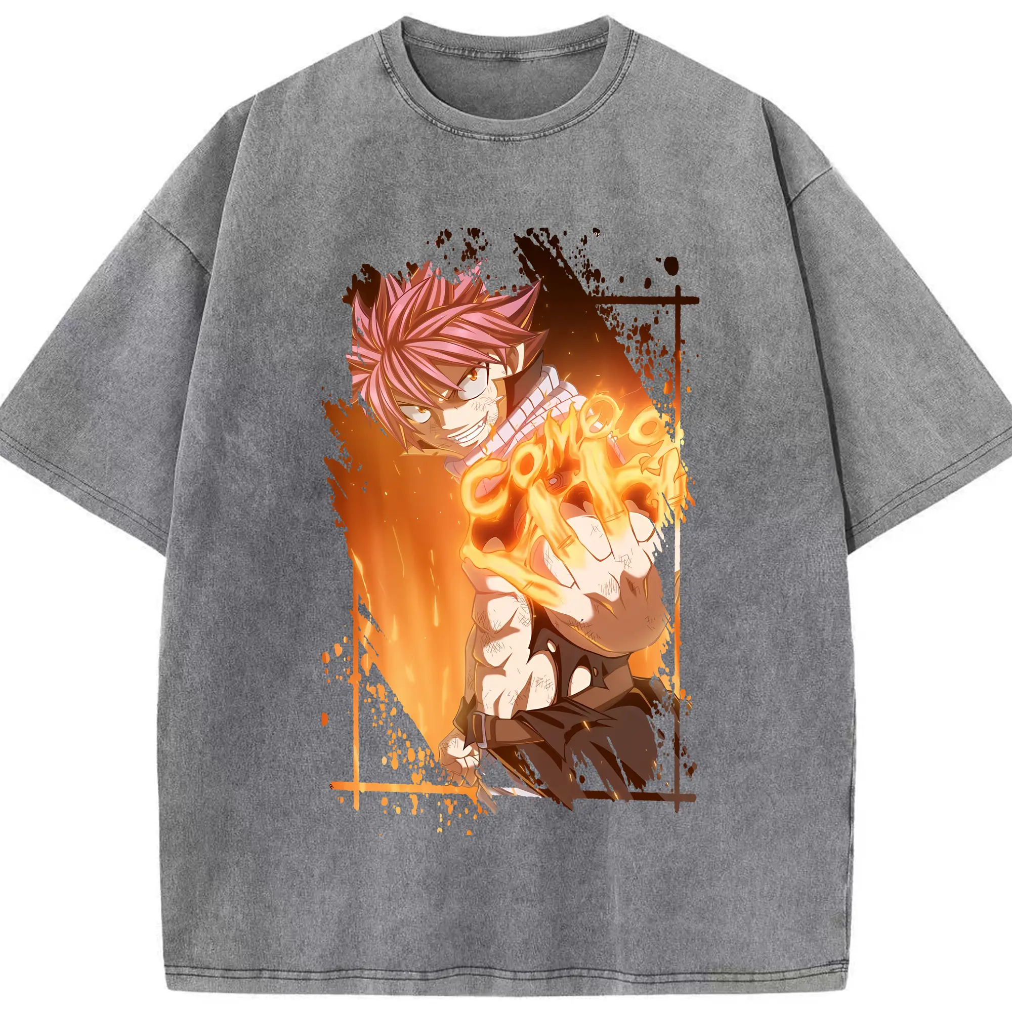 フェアリーテイル グッズ ナツ・ドラグニル - 綿100% ヴィンテージ風 半袖Tシャツ ・ 背面プリント ・ 柔らか肌触り ・ 通気性 快適 ・ スポーツ カジュアル 外出用