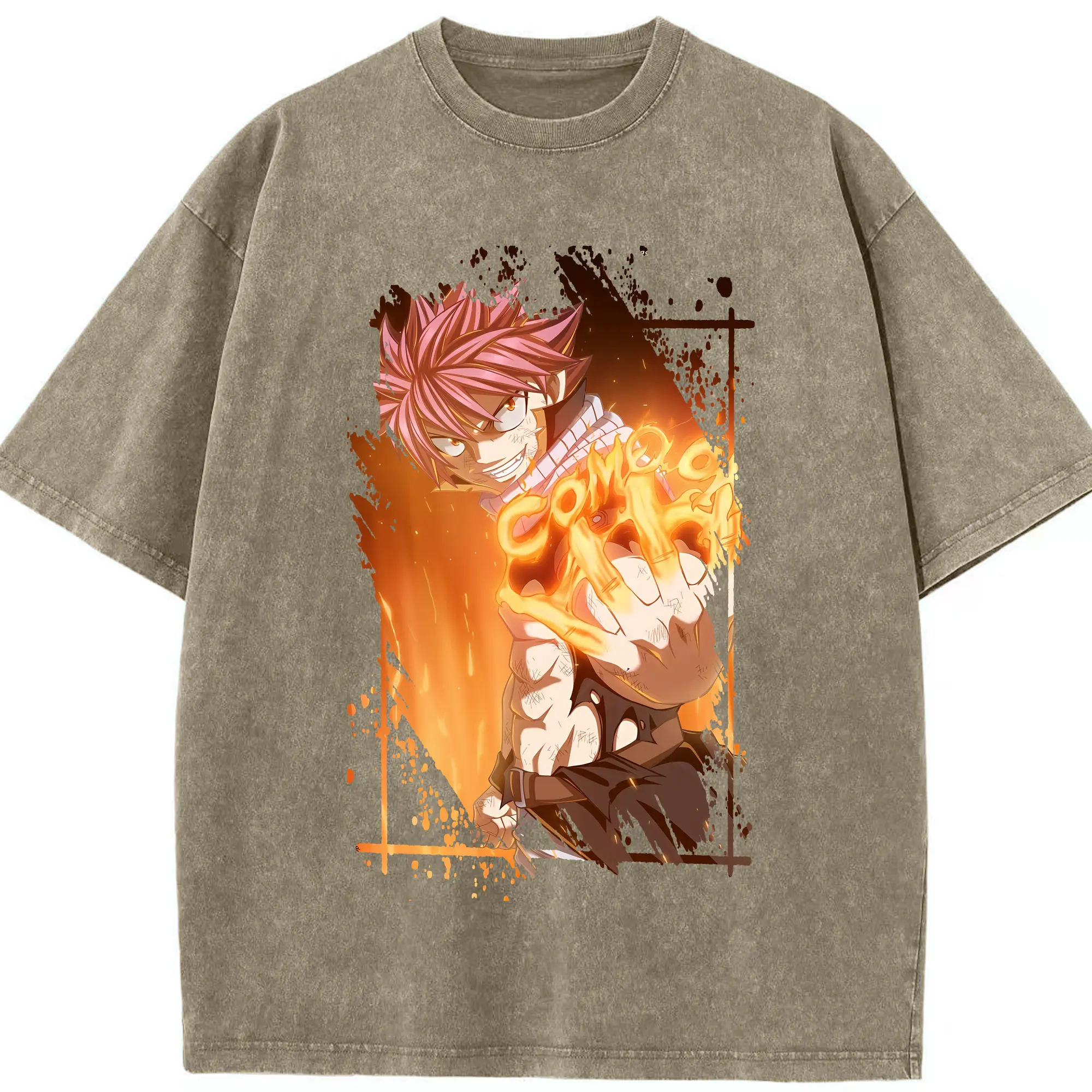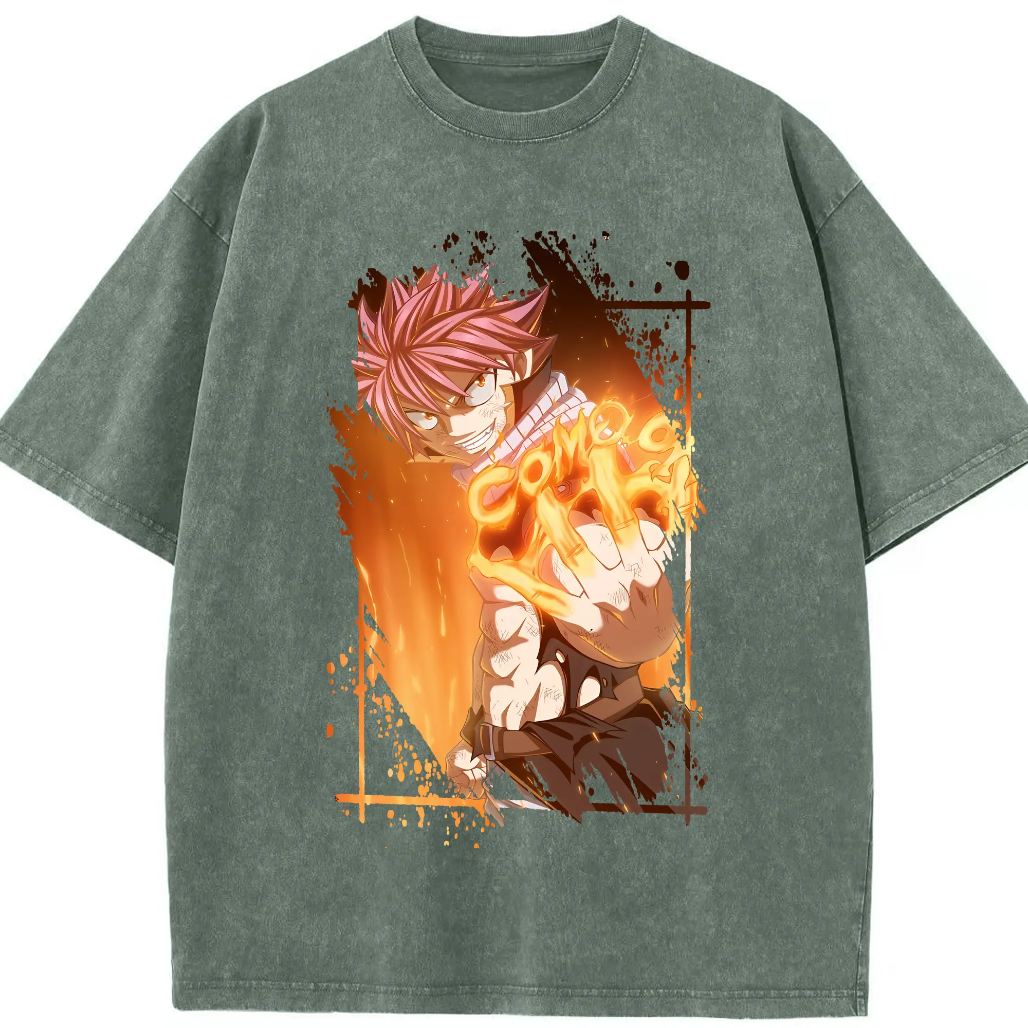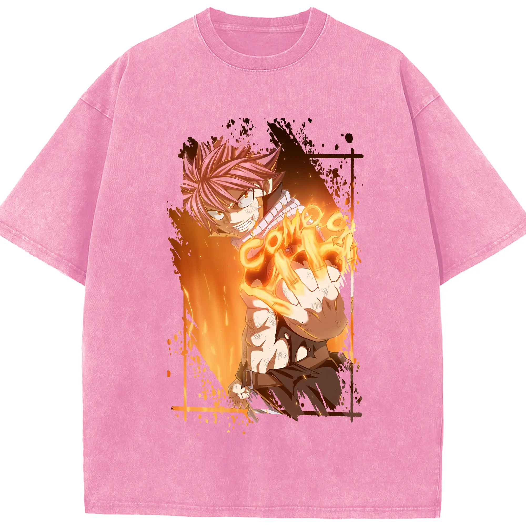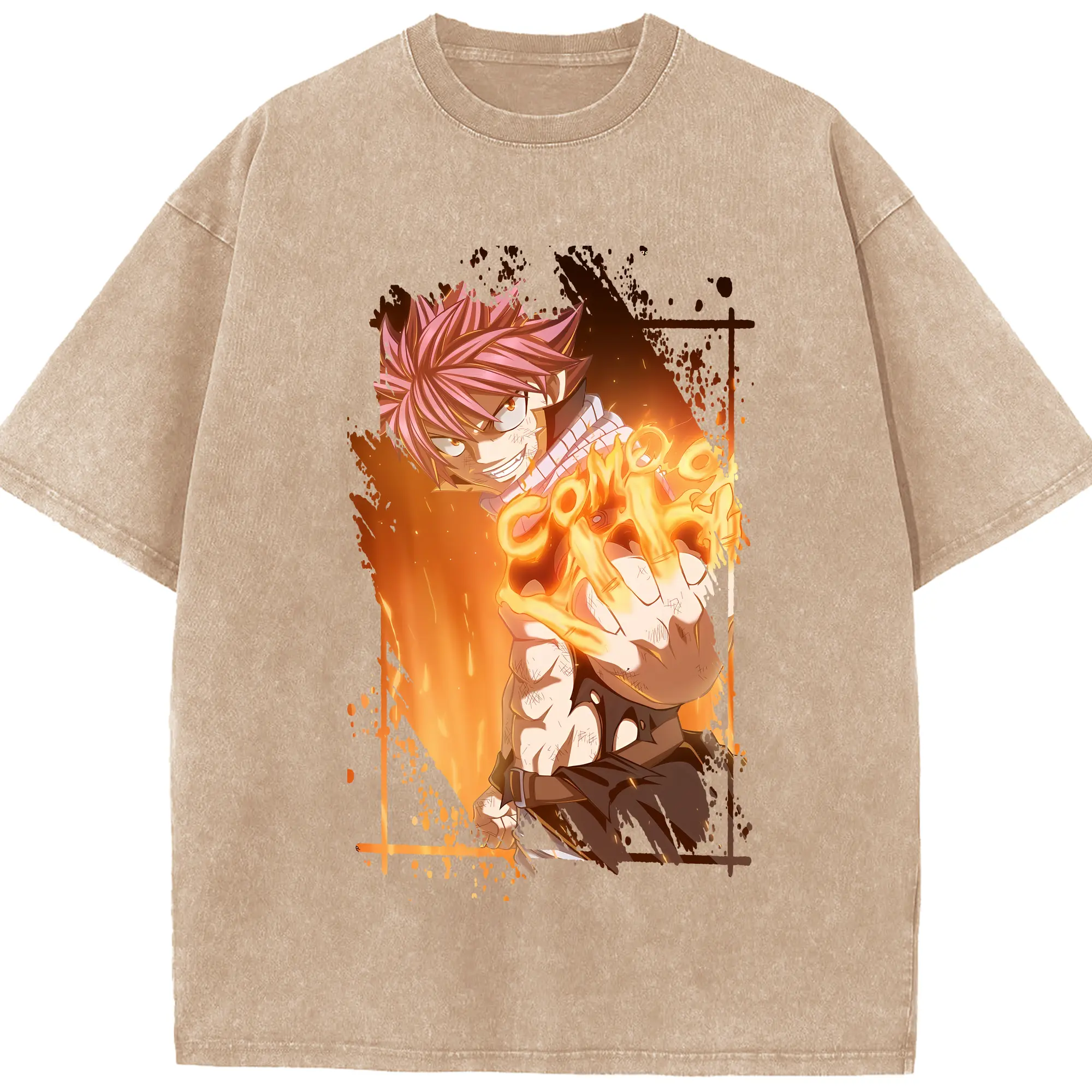 フェアリーテイル グッズ ナツ・ドラグニル - 綿100% ヴィンテージ風 半袖Tシャツ ・ 背面プリント ・ 柔らか肌触り ・ 通気性 快適 ・ スポーツ カジュアル 外出用