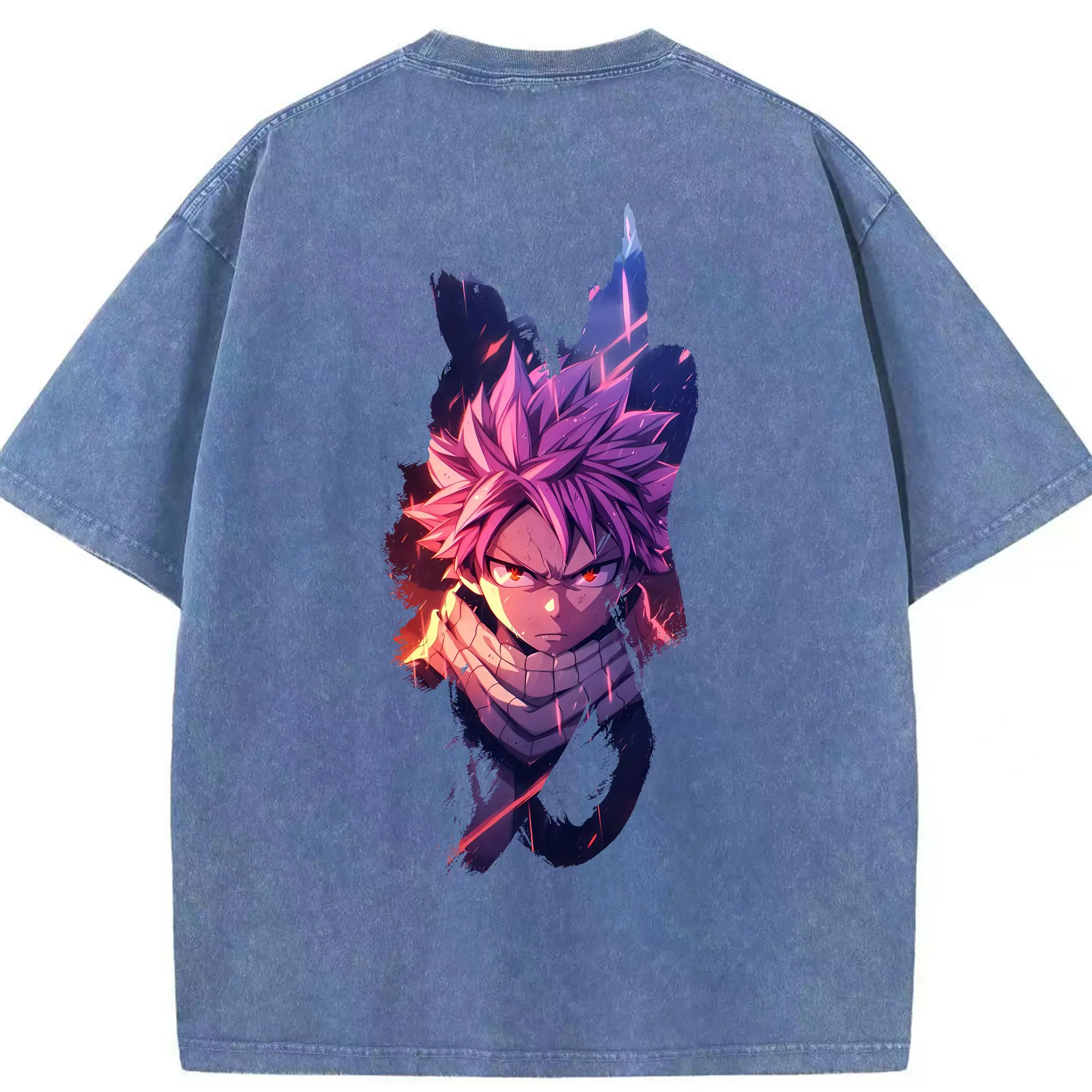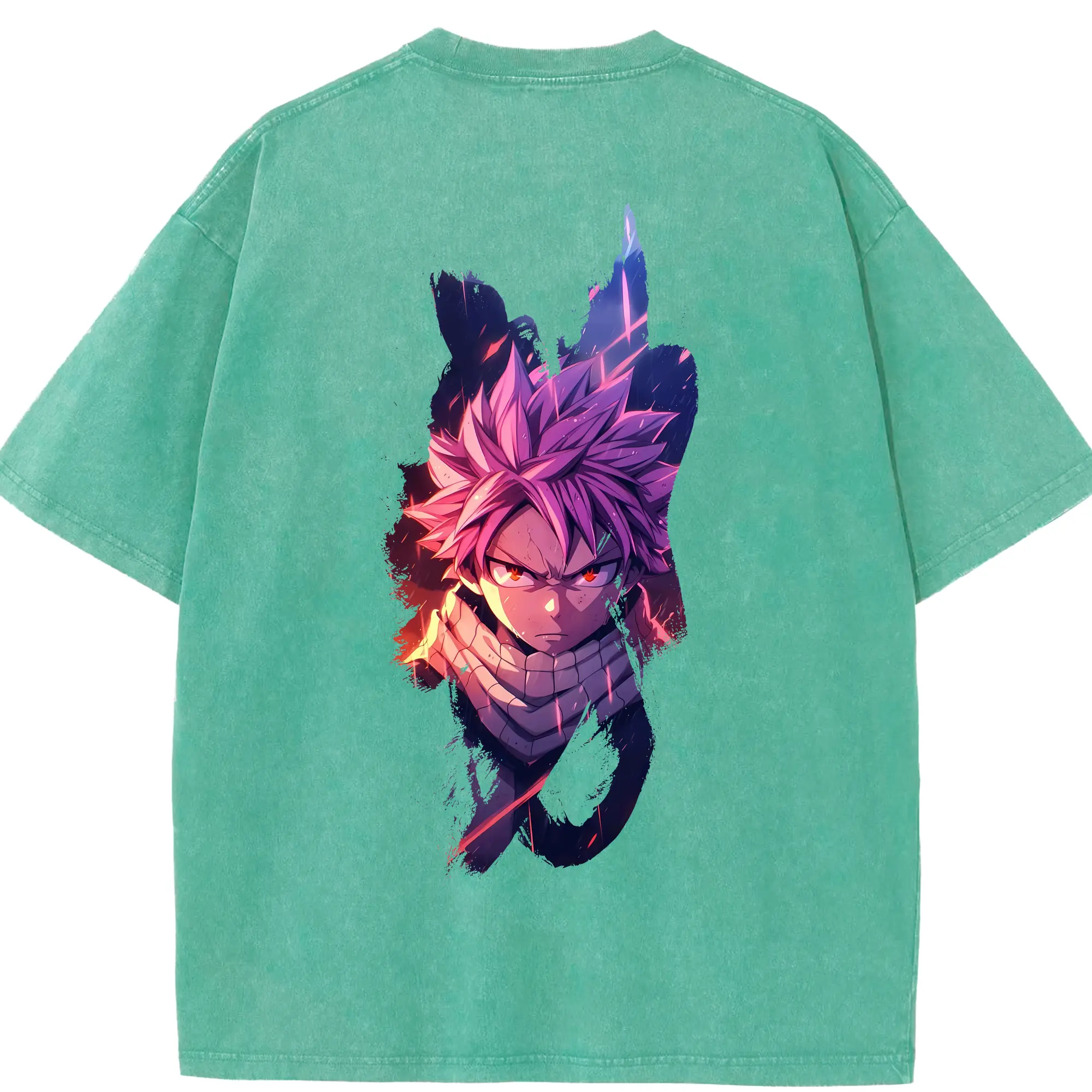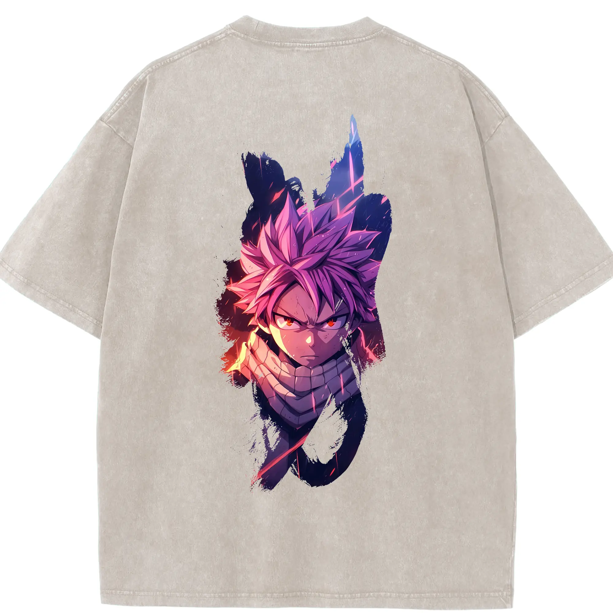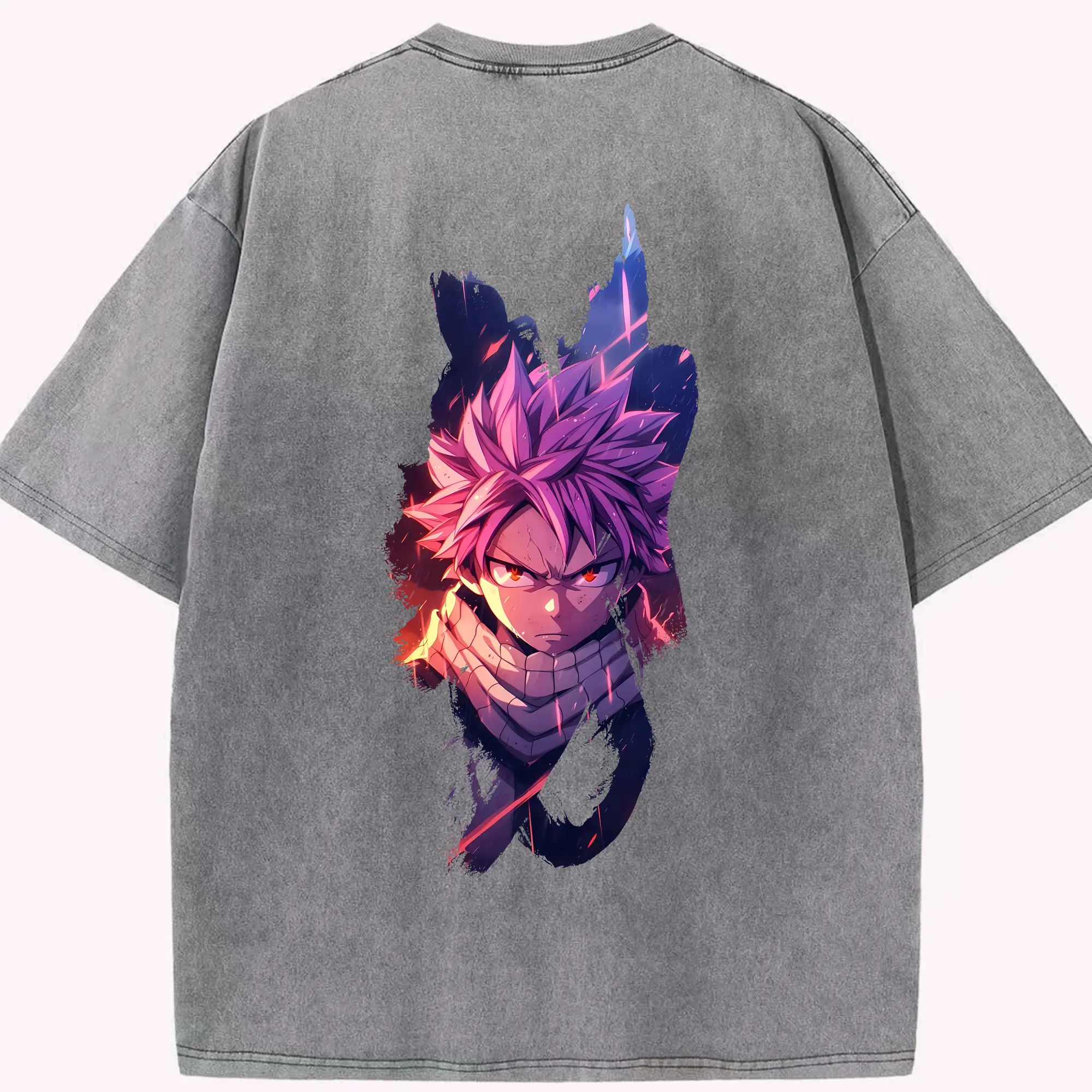 フェアリーテイル グッズ ナツ・ドラグニル - 綿100% ヴィンテージ風 半袖Tシャツ ・ フロントプリント ・ 柔らか肌触り ・ 通気性 快適 ・ スポーツ カジュアル 外出用