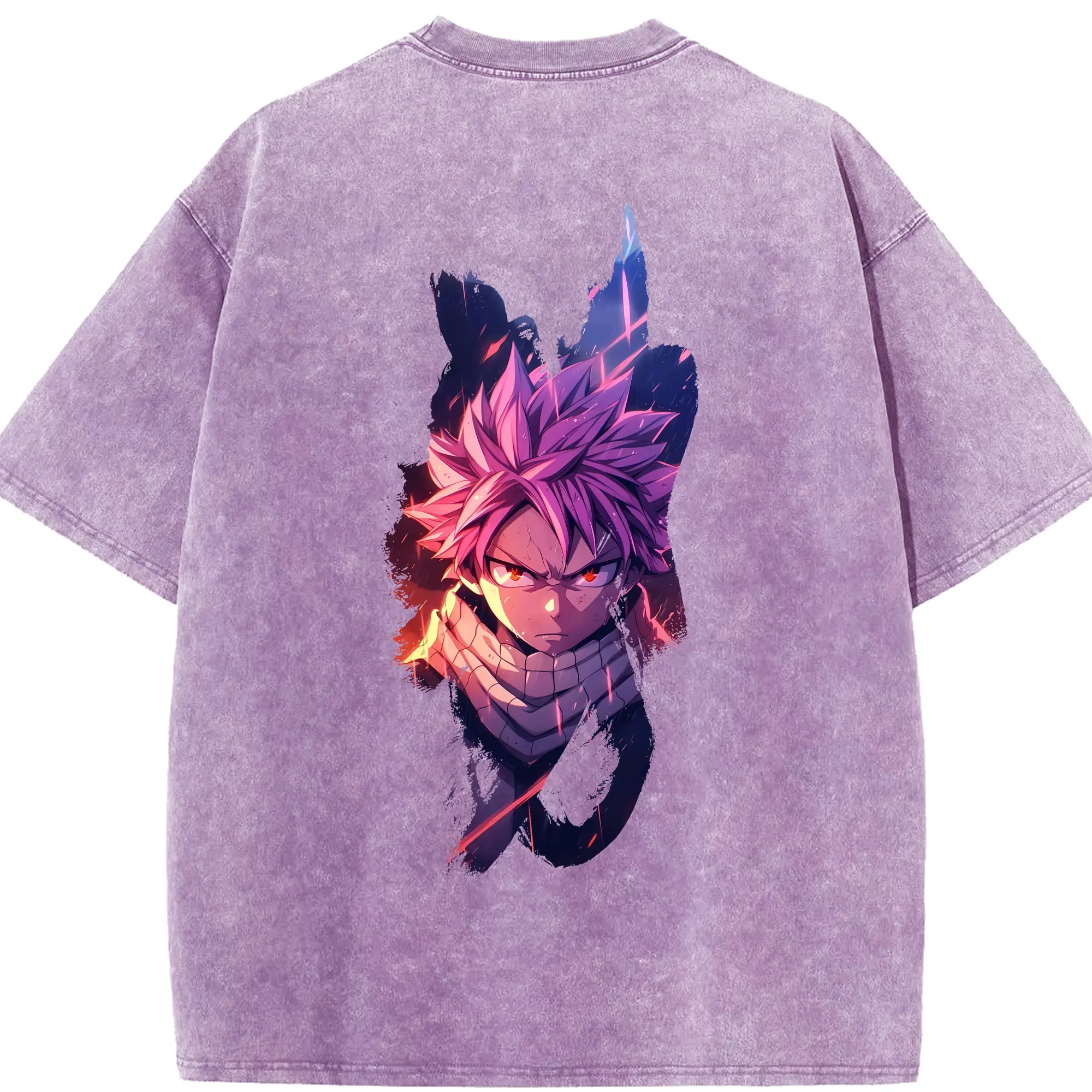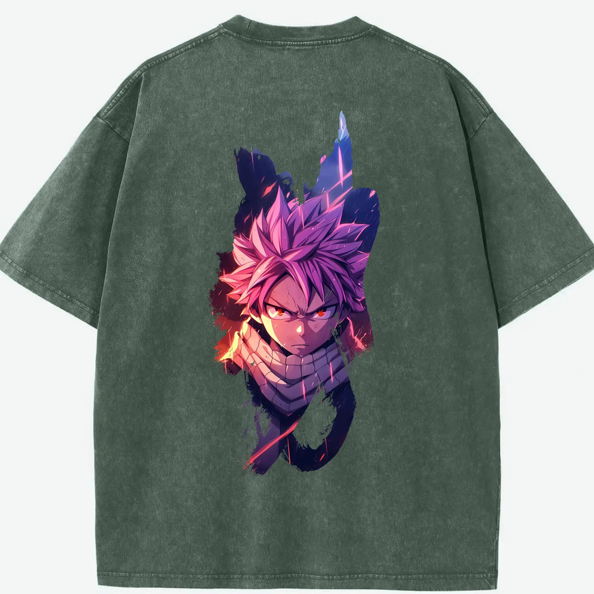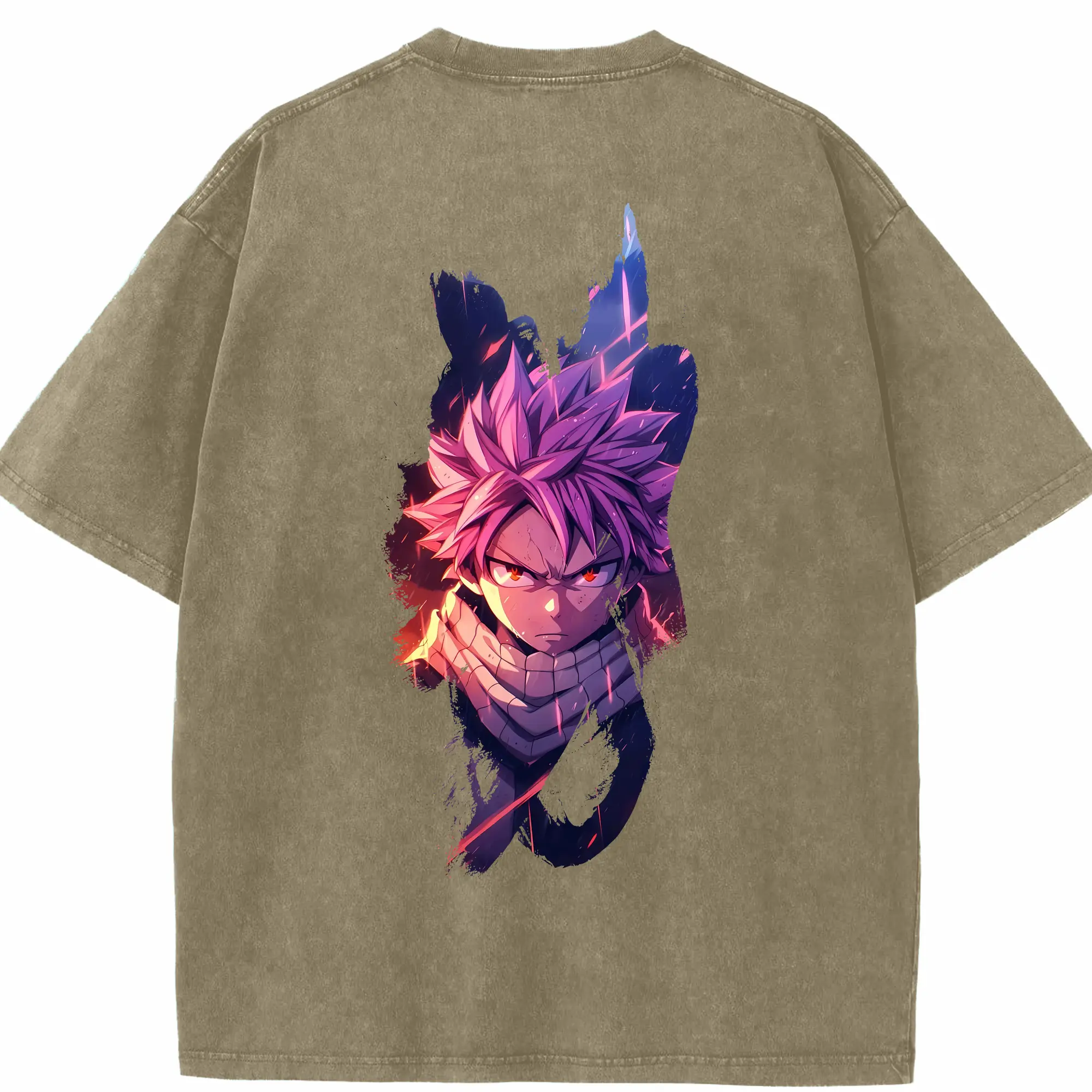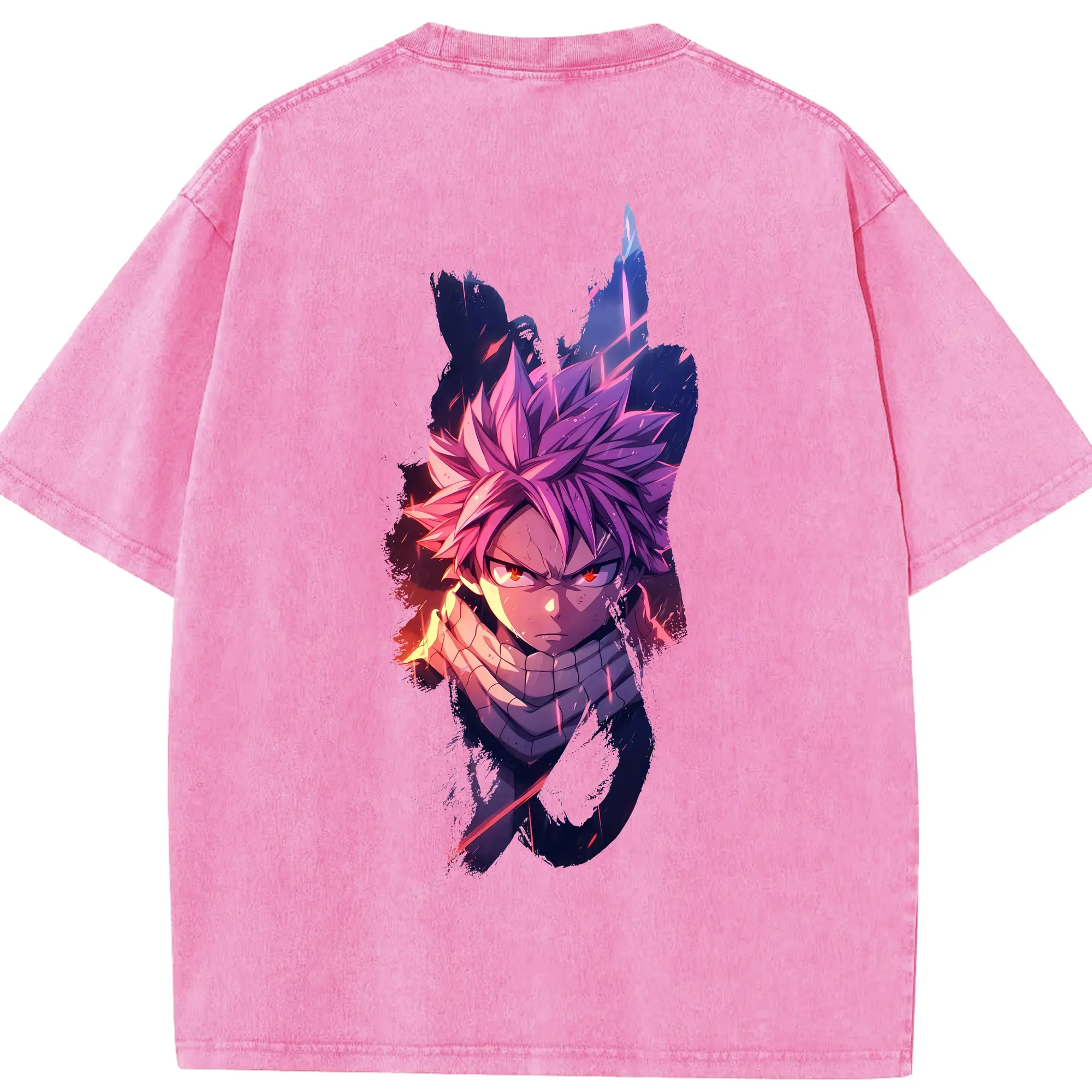 フェアリーテイル グッズ ナツ・ドラグニル - 綿100% ヴィンテージ風 半袖Tシャツ ・ フロントプリント ・ 柔らか肌触り ・ 通気性 快適 ・ スポーツ カジュアル 外出用