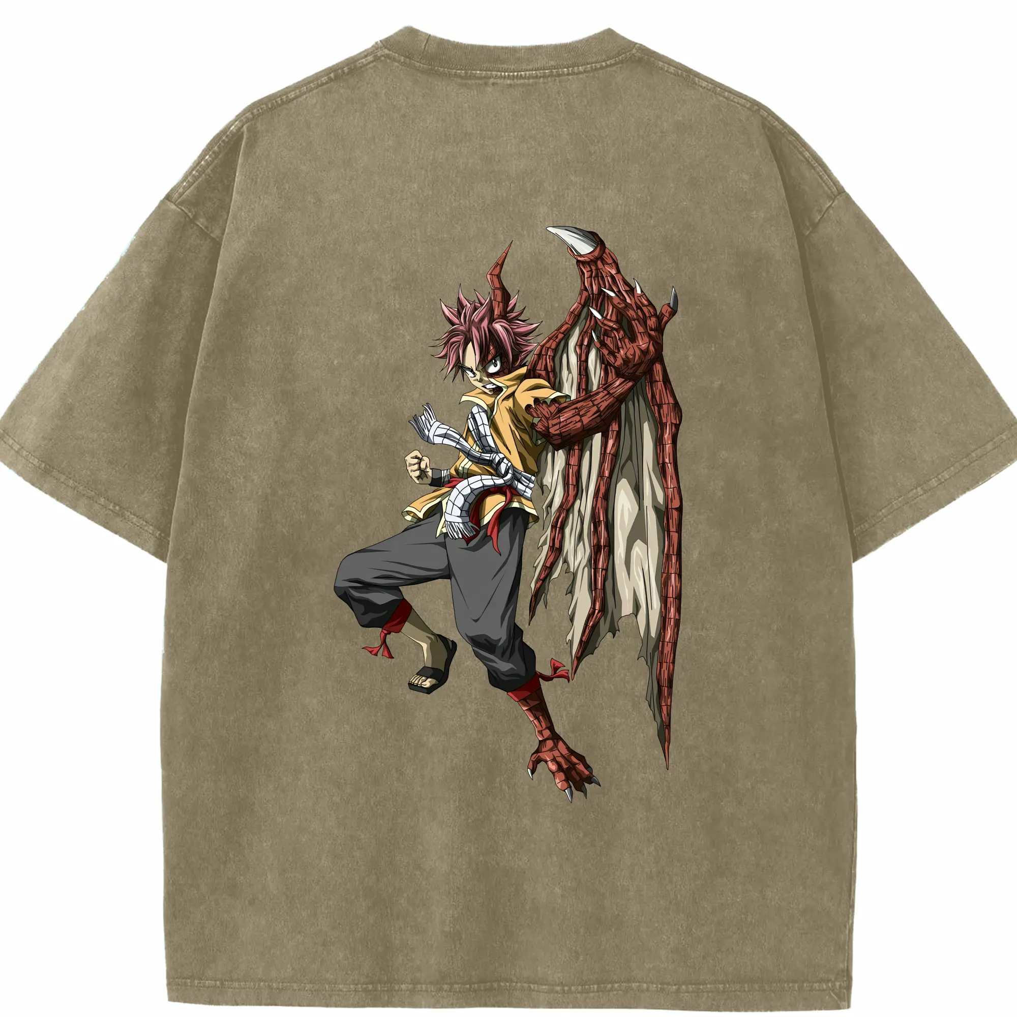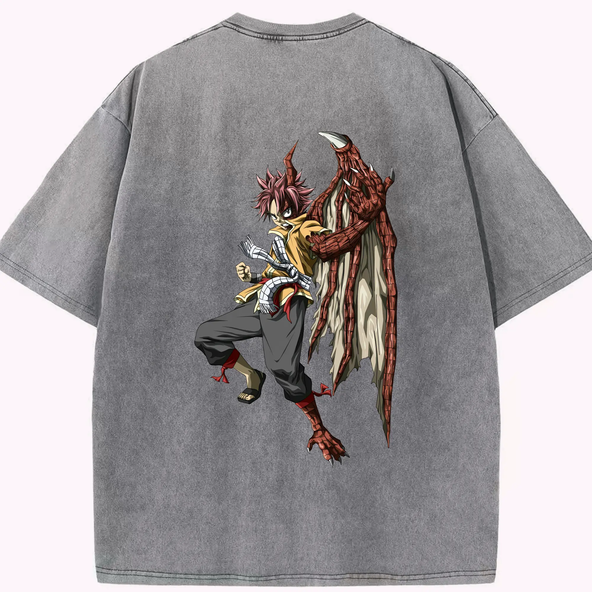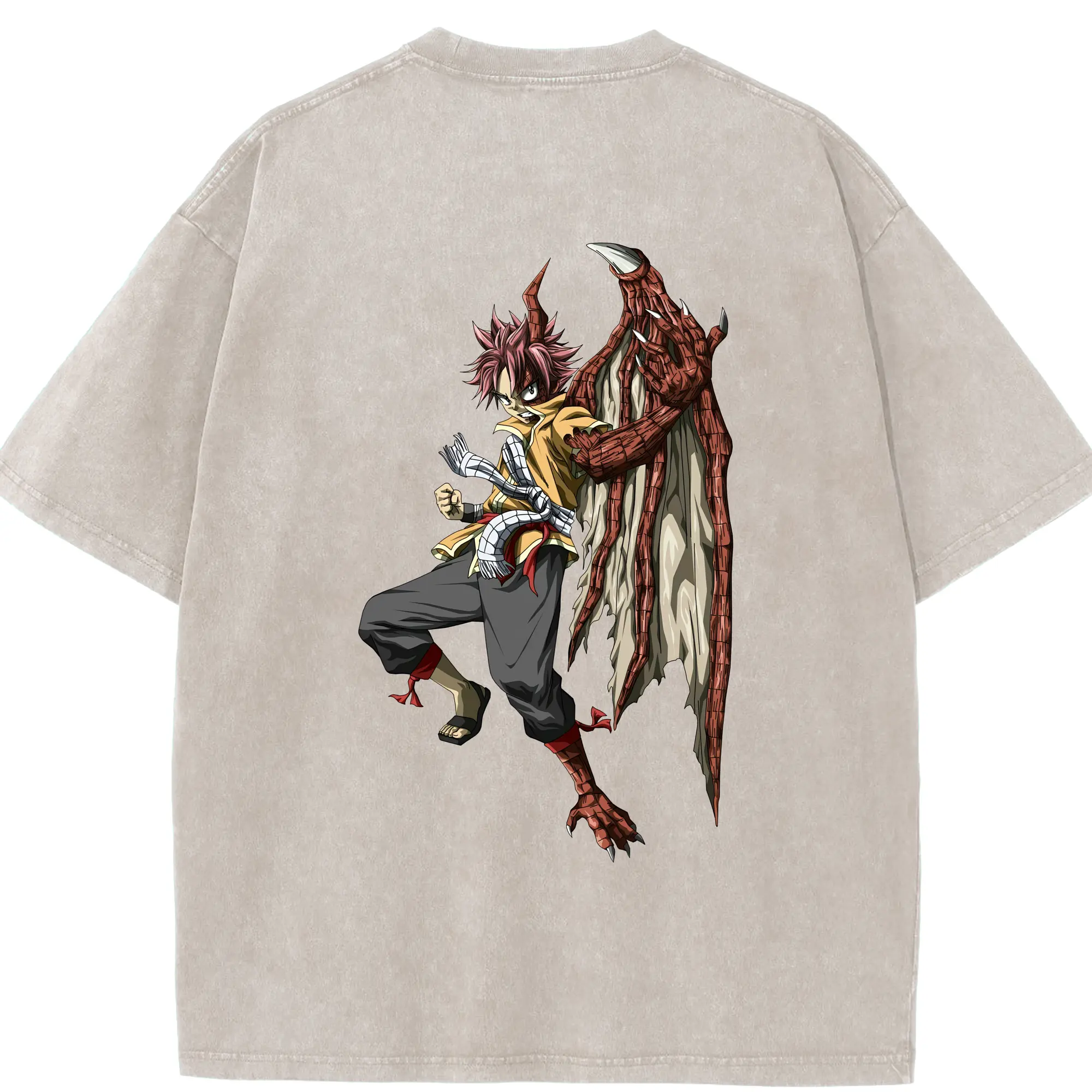 フェアリーテイル グッズ ナツ・ドラグニル - 綿100% ヴィンテージ風 半袖Tシャツ ・ フロントプリント ・ 柔らか肌触り ・ 通気性 快適 ・ スポーツ カジュアル 外出用