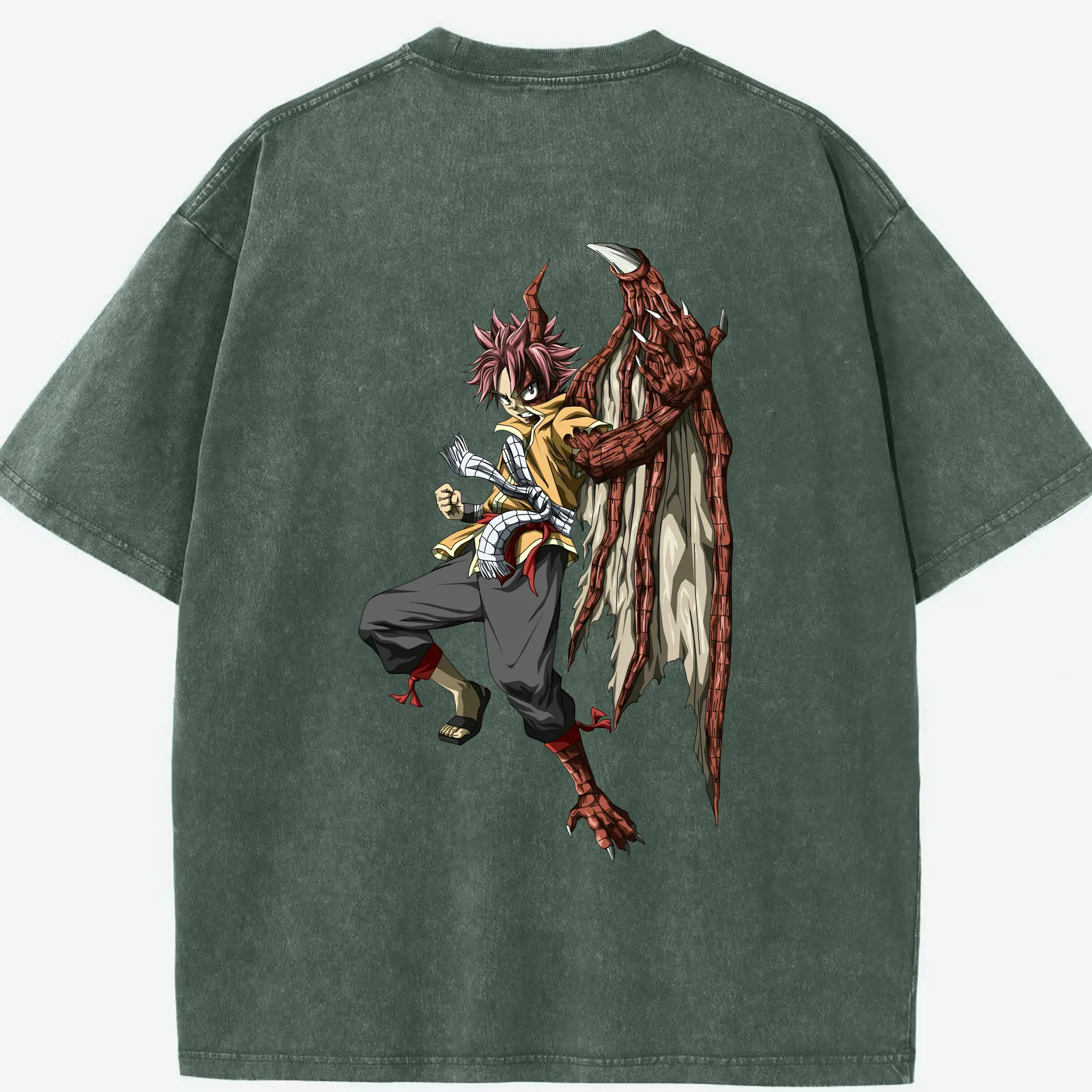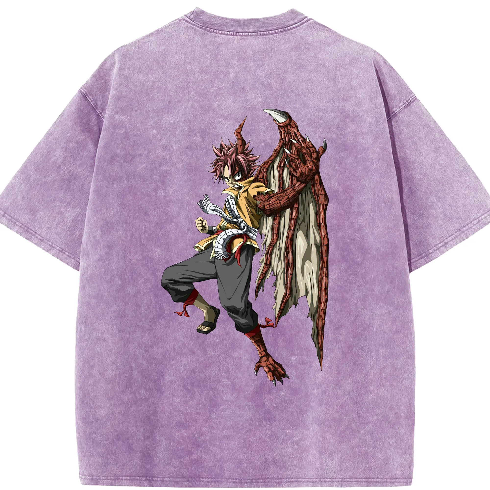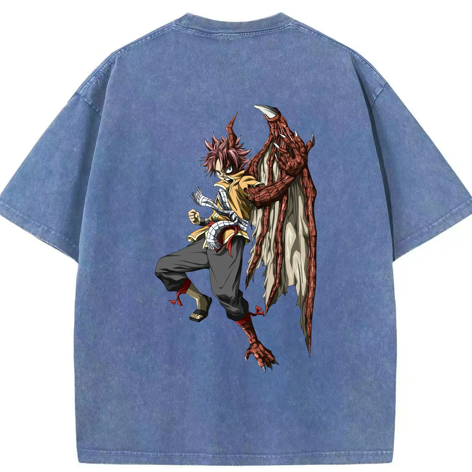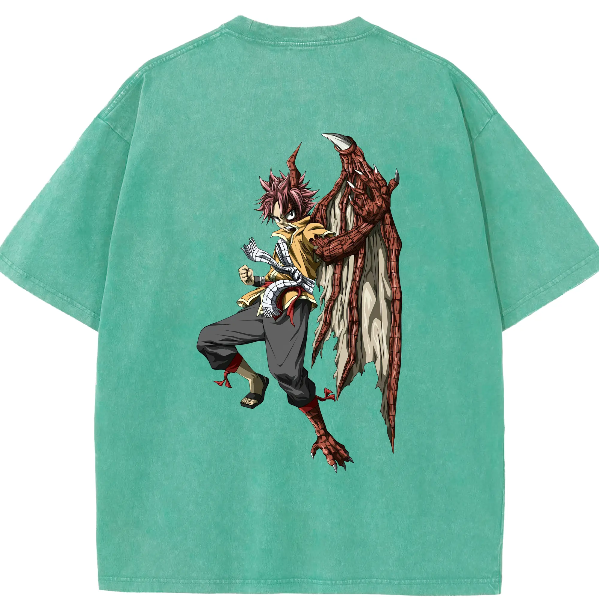 フェアリーテイル グッズ ナツ・ドラグニル - 綿100% ヴィンテージ風 半袖Tシャツ ・ フロントプリント ・ 柔らか肌触り ・ 通気性 快適 ・ スポーツ カジュアル 外出用
