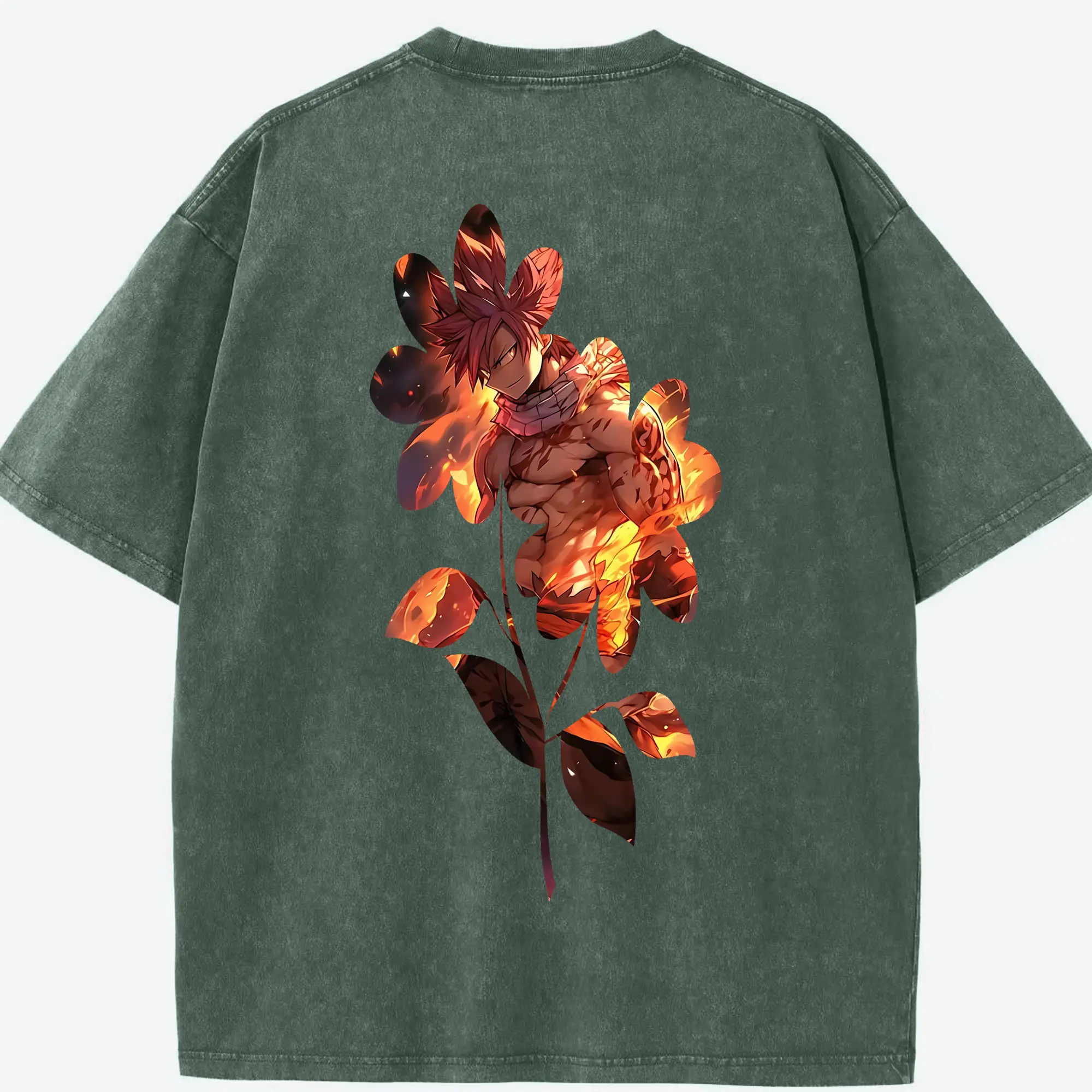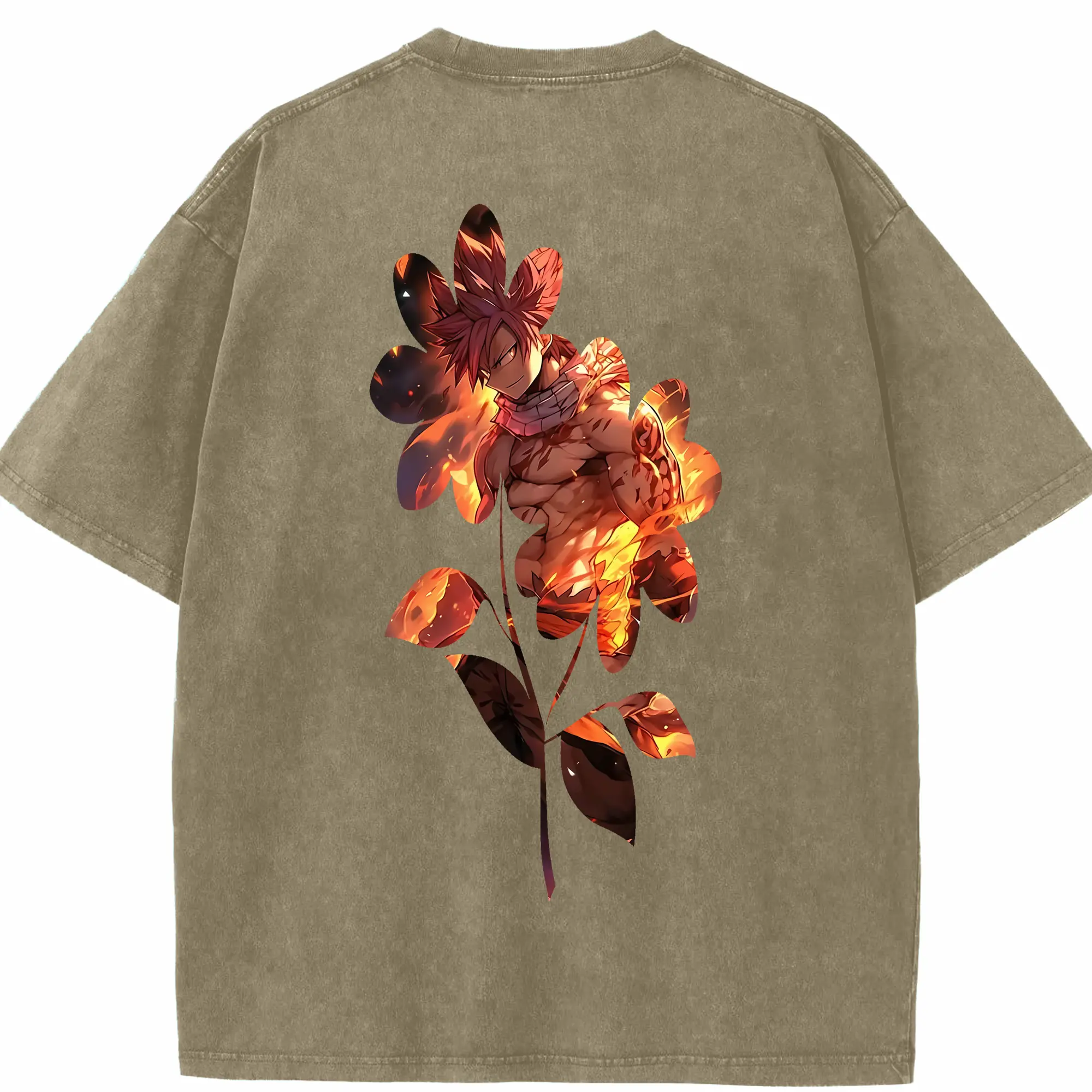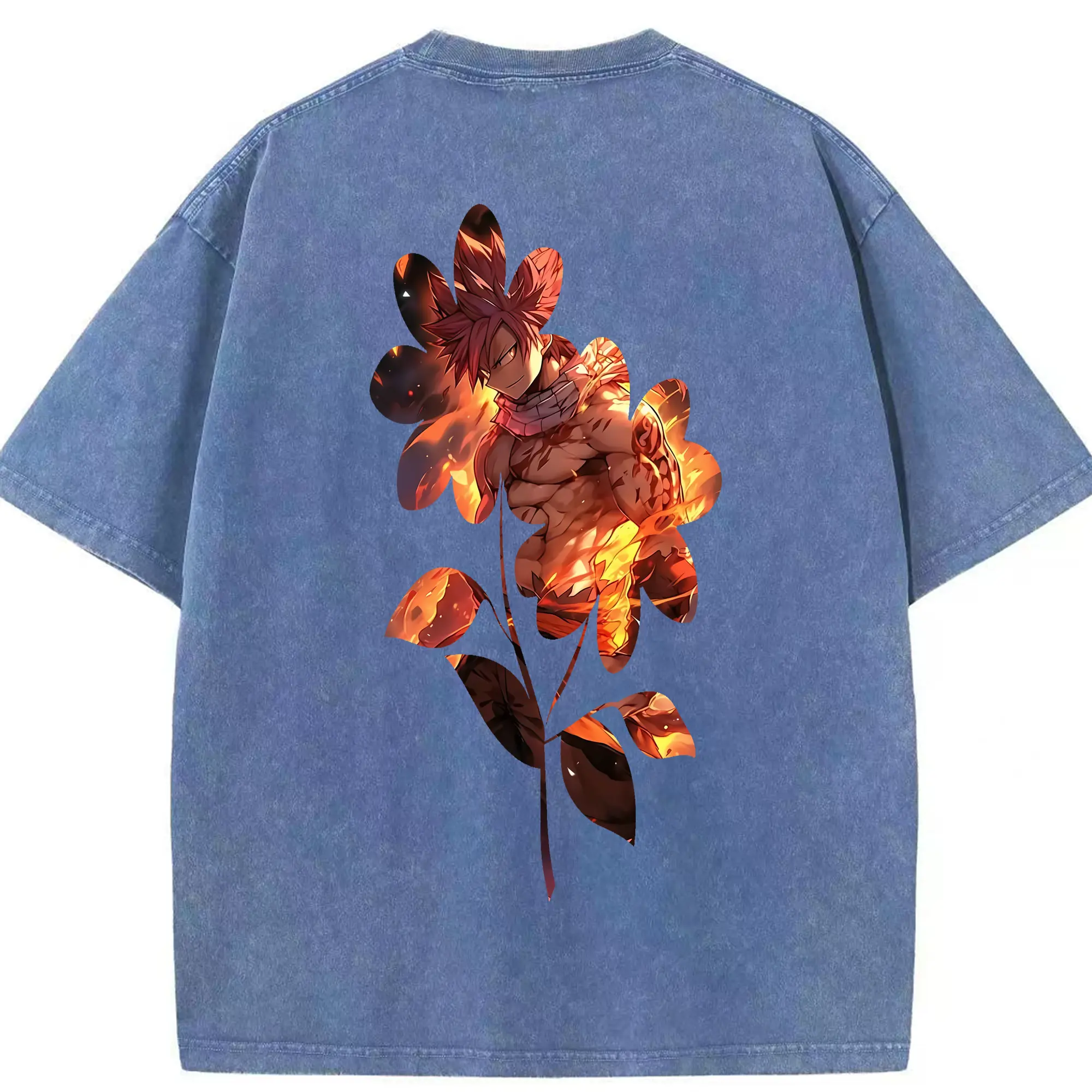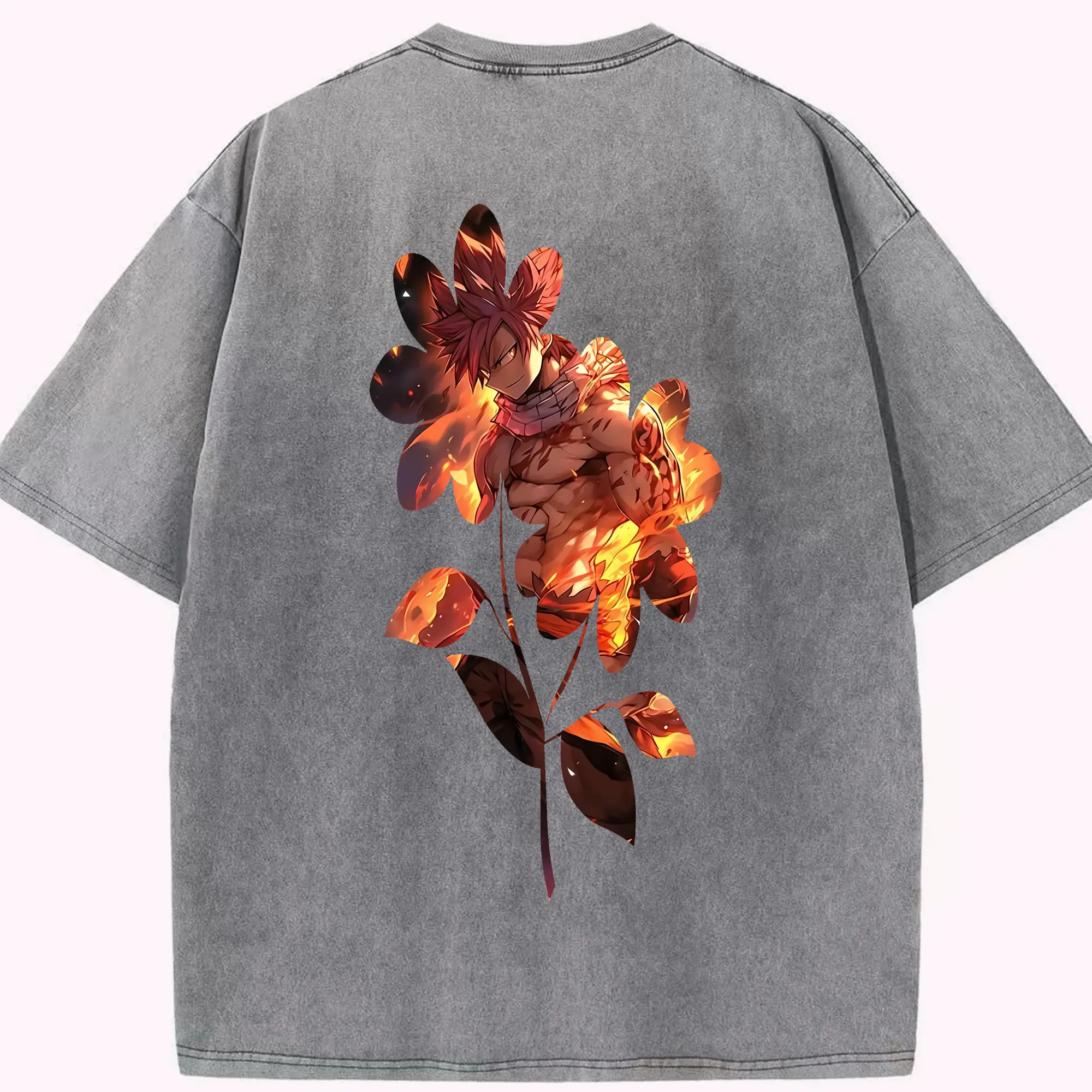 フェアリーテイル グッズ ナツ・ドラグニル - 綿100% ヴィンテージ風 半袖Tシャツ ・ フロントプリント ・ 柔らか肌触り ・ 通気性 快適 ・ スポーツ カジュアル 外出用