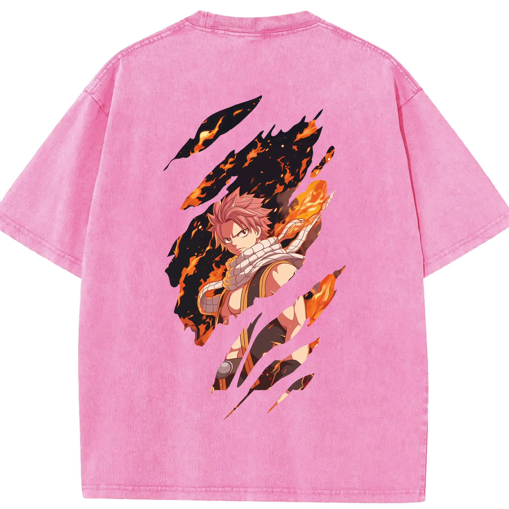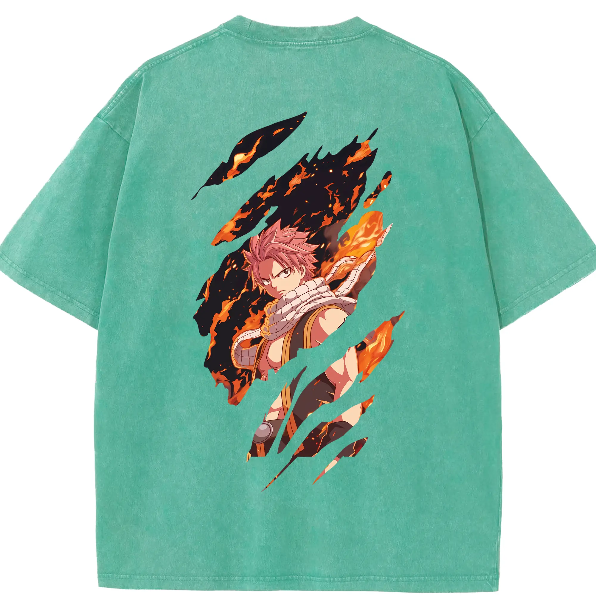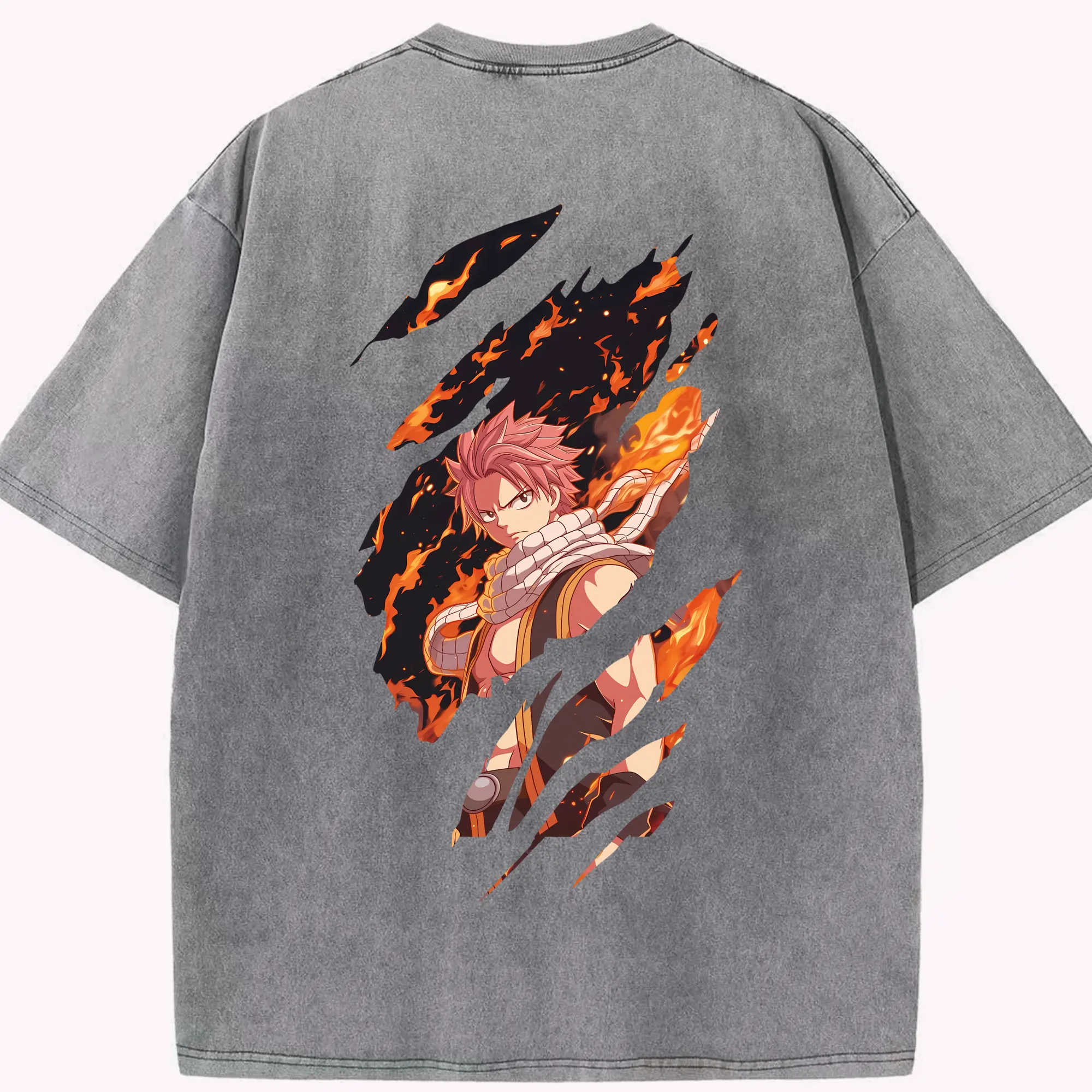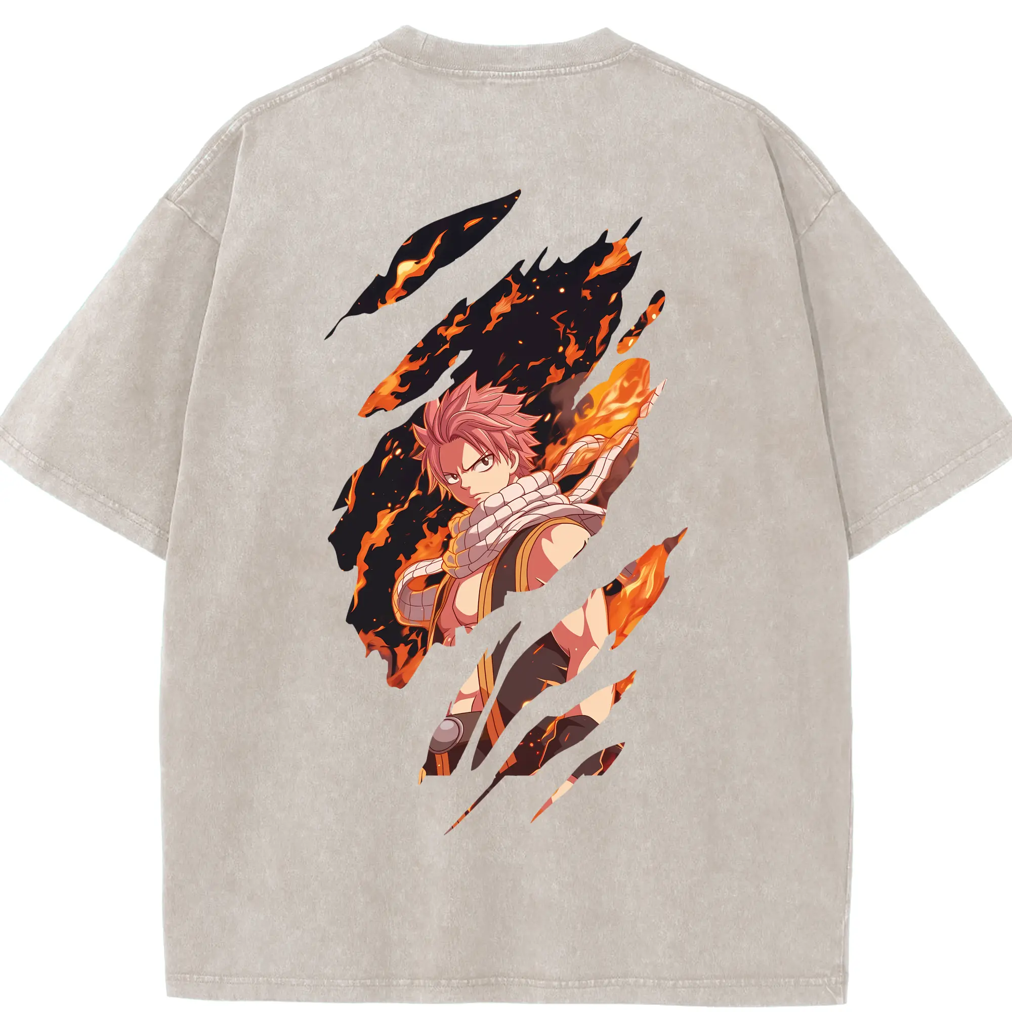フェアリーテイル グッズ ナツ・ドラグニル - 綿100% ヴィンテージ風 半袖Tシャツ ・ フロントプリント ・ 柔らか肌触り ・ 通気性 快適 ・ スポーツ カジュアル 外出用