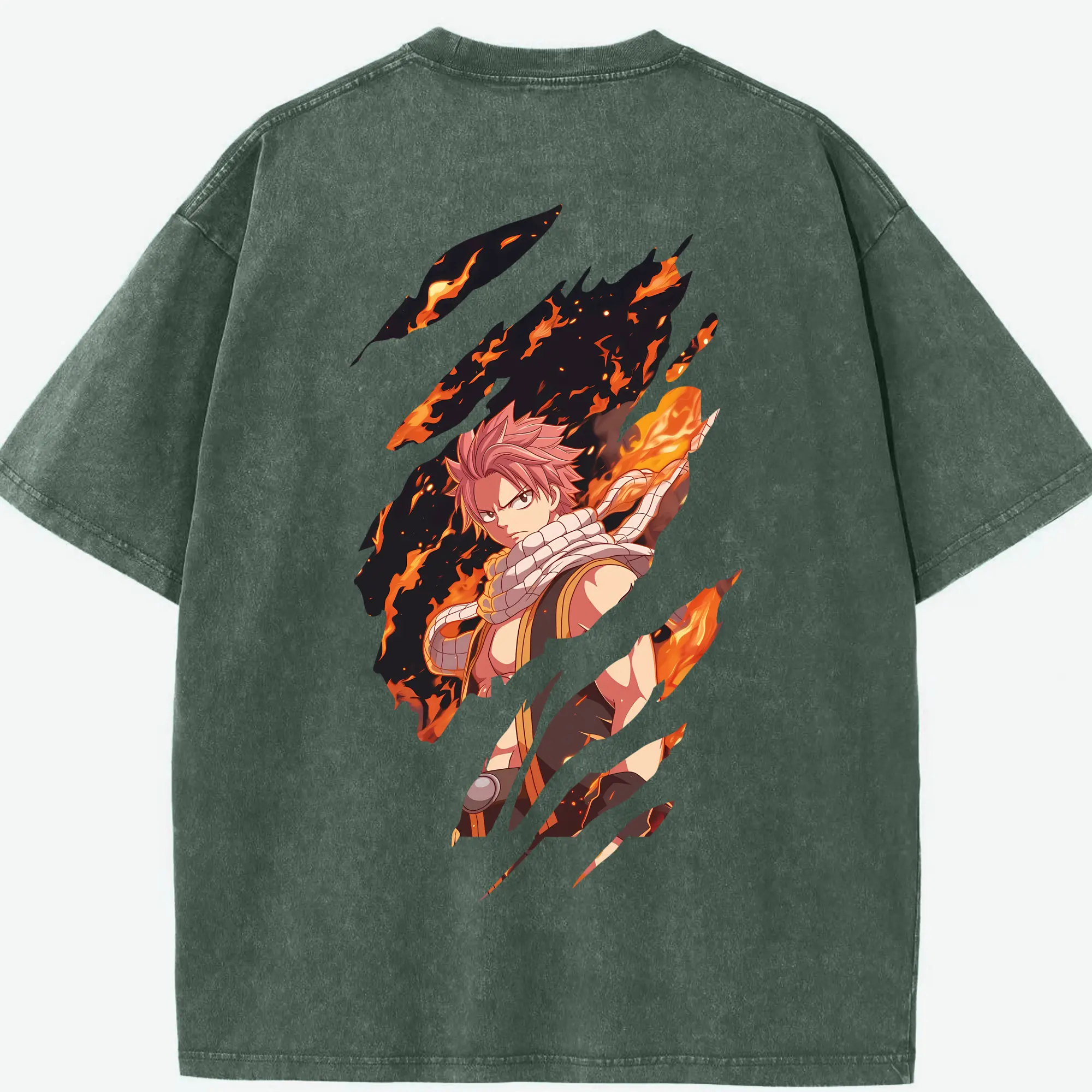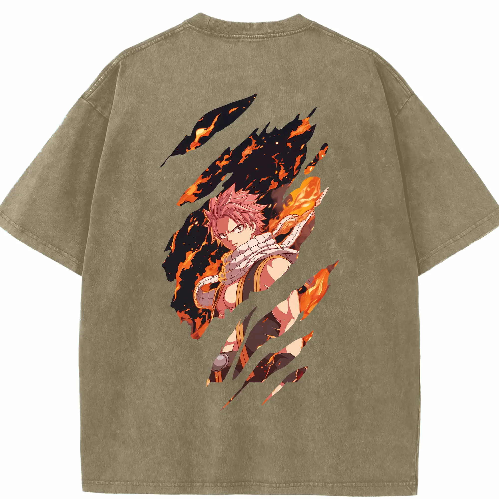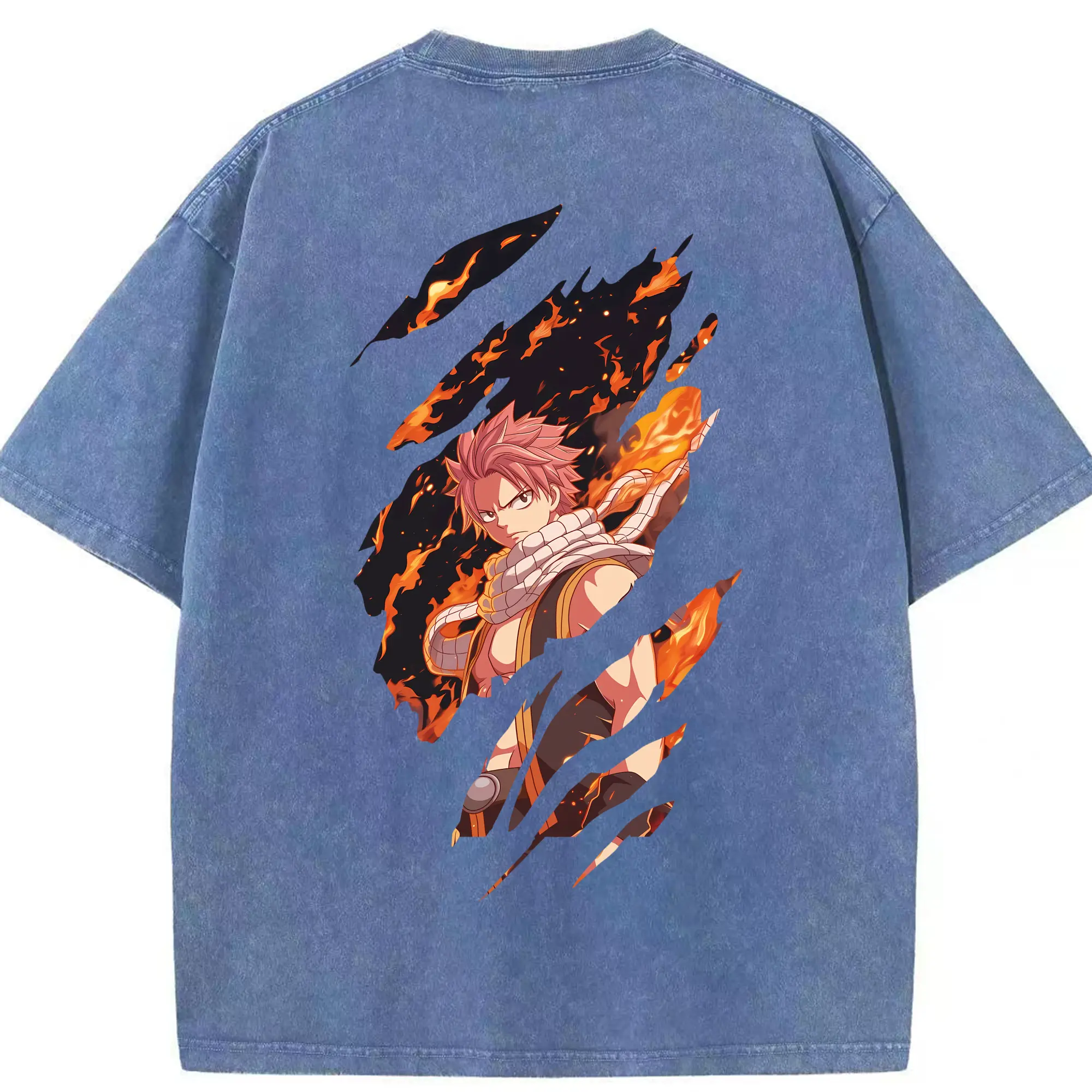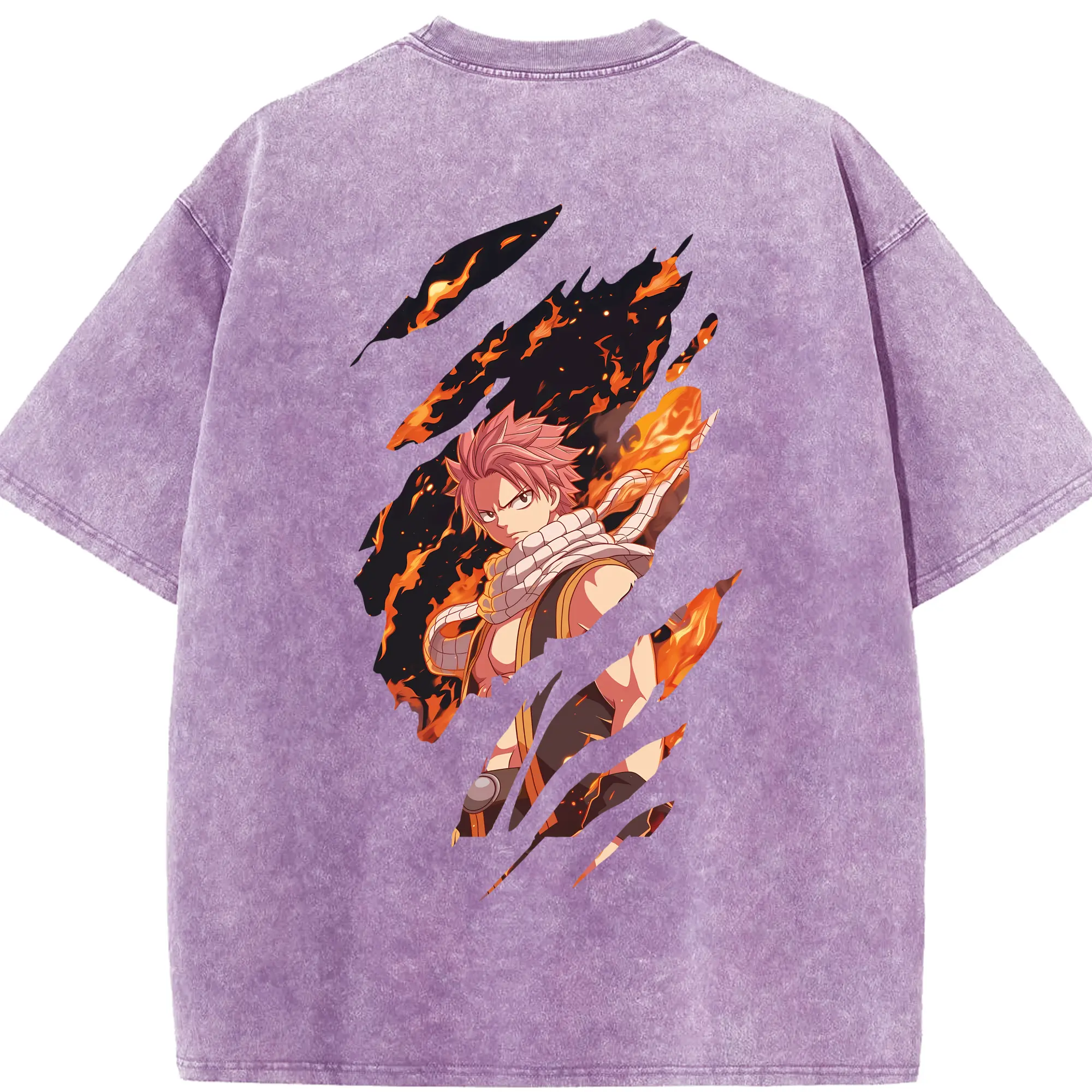 フェアリーテイル グッズ ナツ・ドラグニル - 綿100% ヴィンテージ風 半袖Tシャツ ・ フロントプリント ・ 柔らか肌触り ・ 通気性 快適 ・ スポーツ カジュアル 外出用