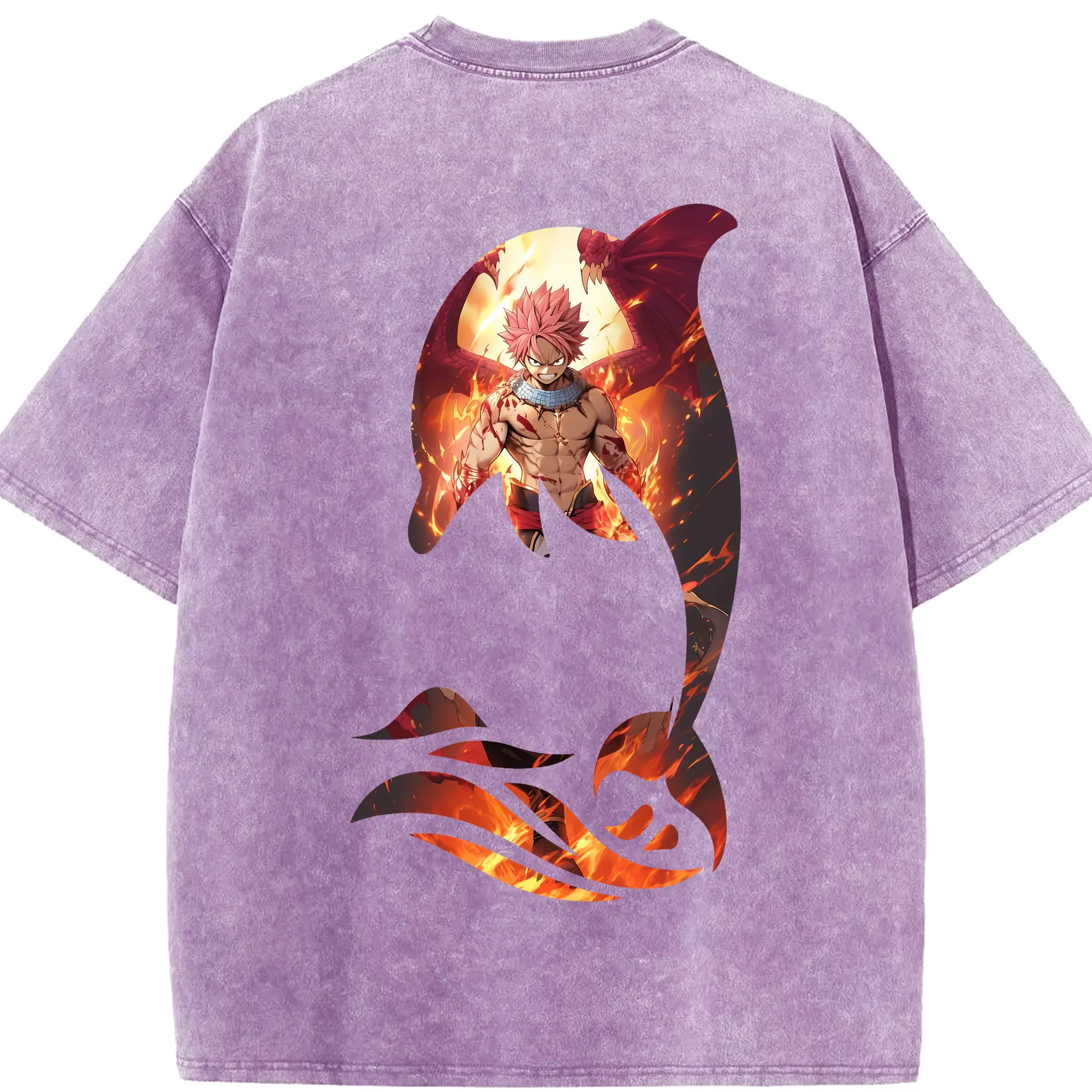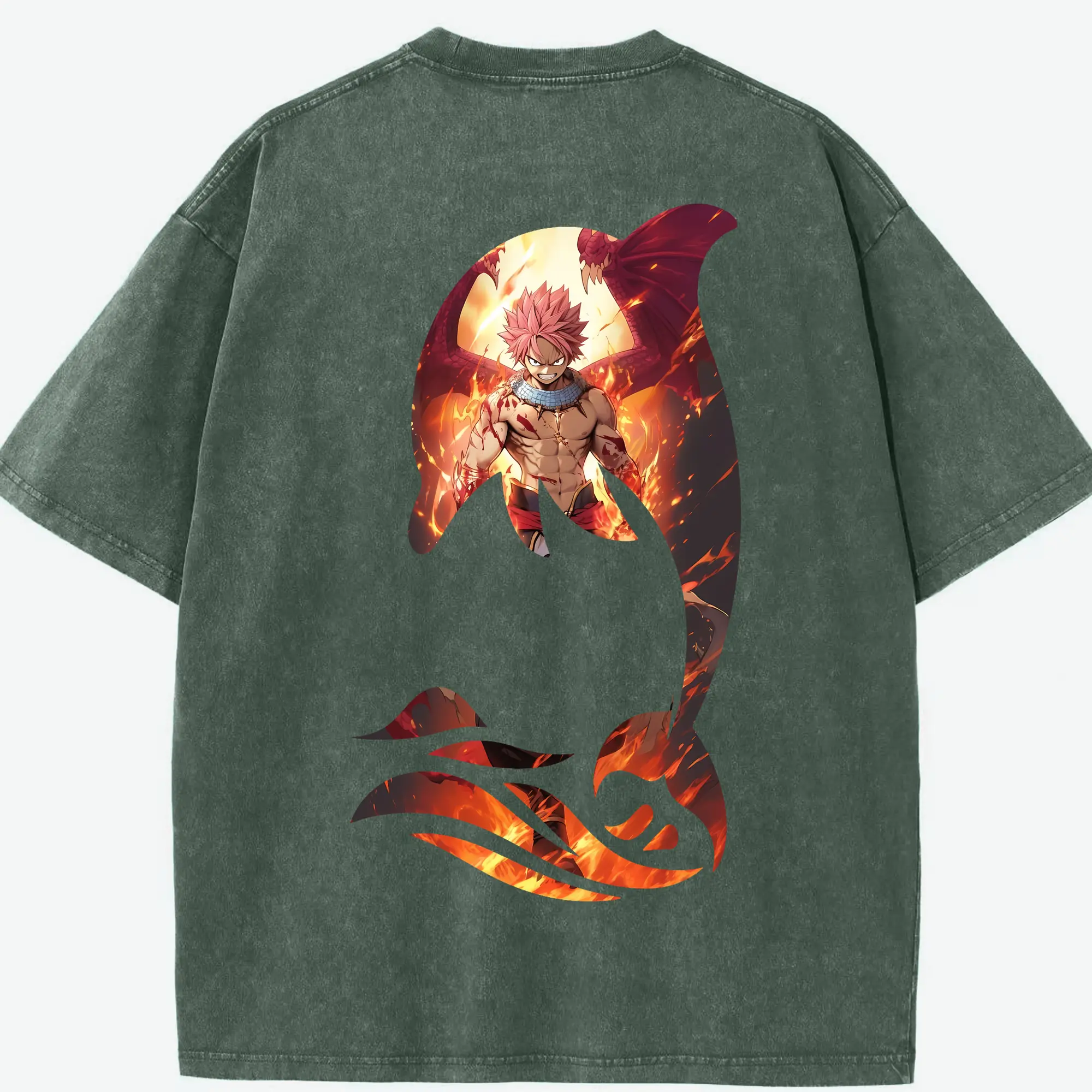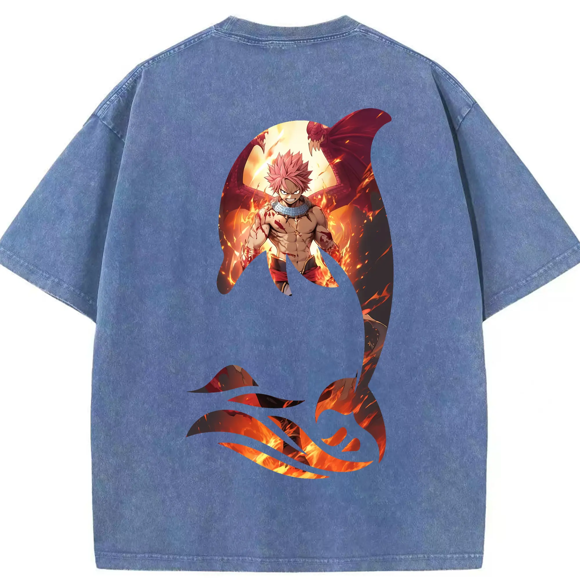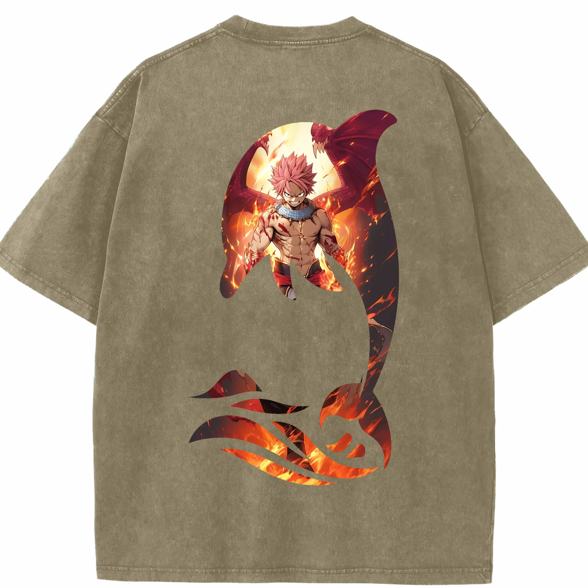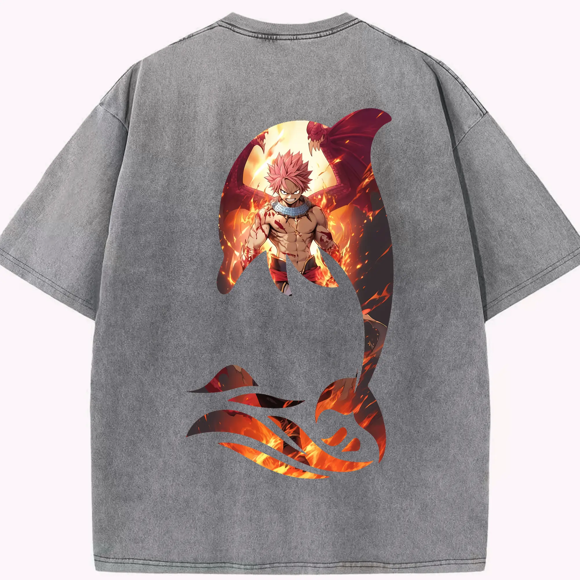 フェアリーテイル グッズ ナツ・ドラグニル - 綿100% ヴィンテージ風 半袖Tシャツ ・ フロントプリント ・ 柔らか肌触り ・ 通気性 快適 ・ スポーツ カジュアル 外出用