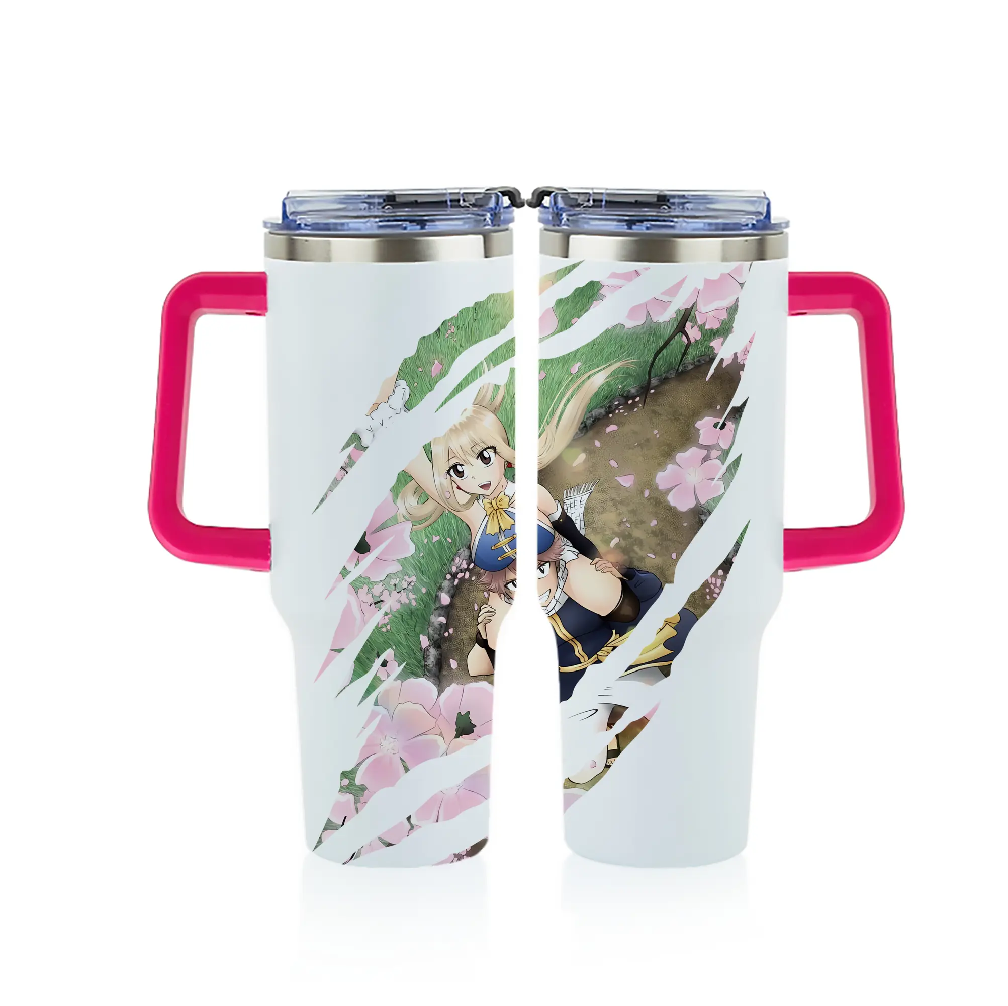 フェアリーテイル グッズ ルーシィ・ハートフィリア - 1200mL フルプリント車用タンブラー ・ 304ステンレス 内側 ・ 201ステンレス 外側 ・ 保温 保冷 ・ 通勤 ドライブ アウトドア用