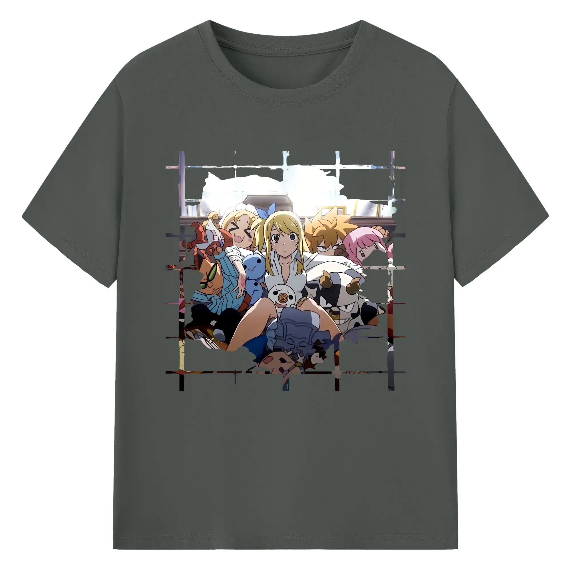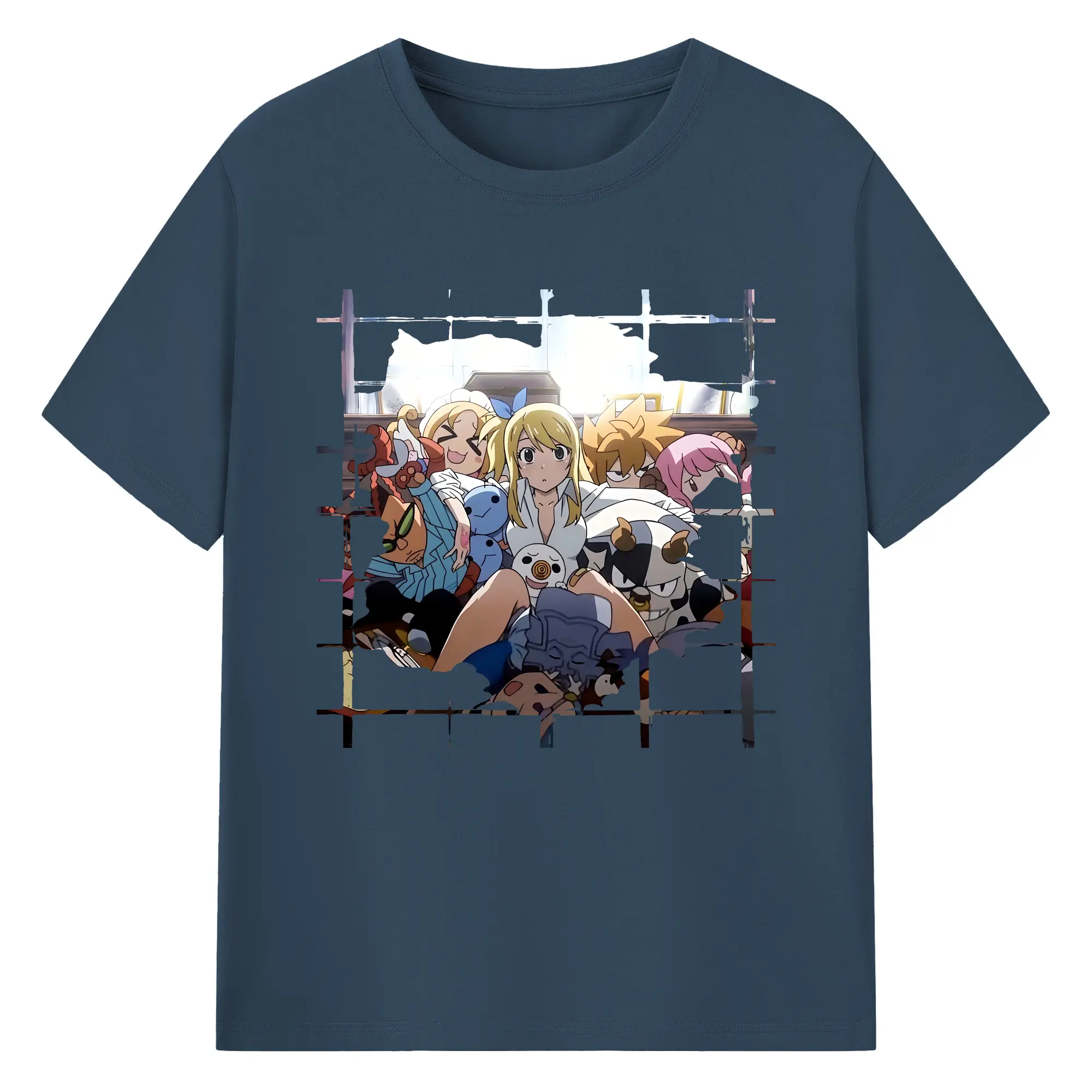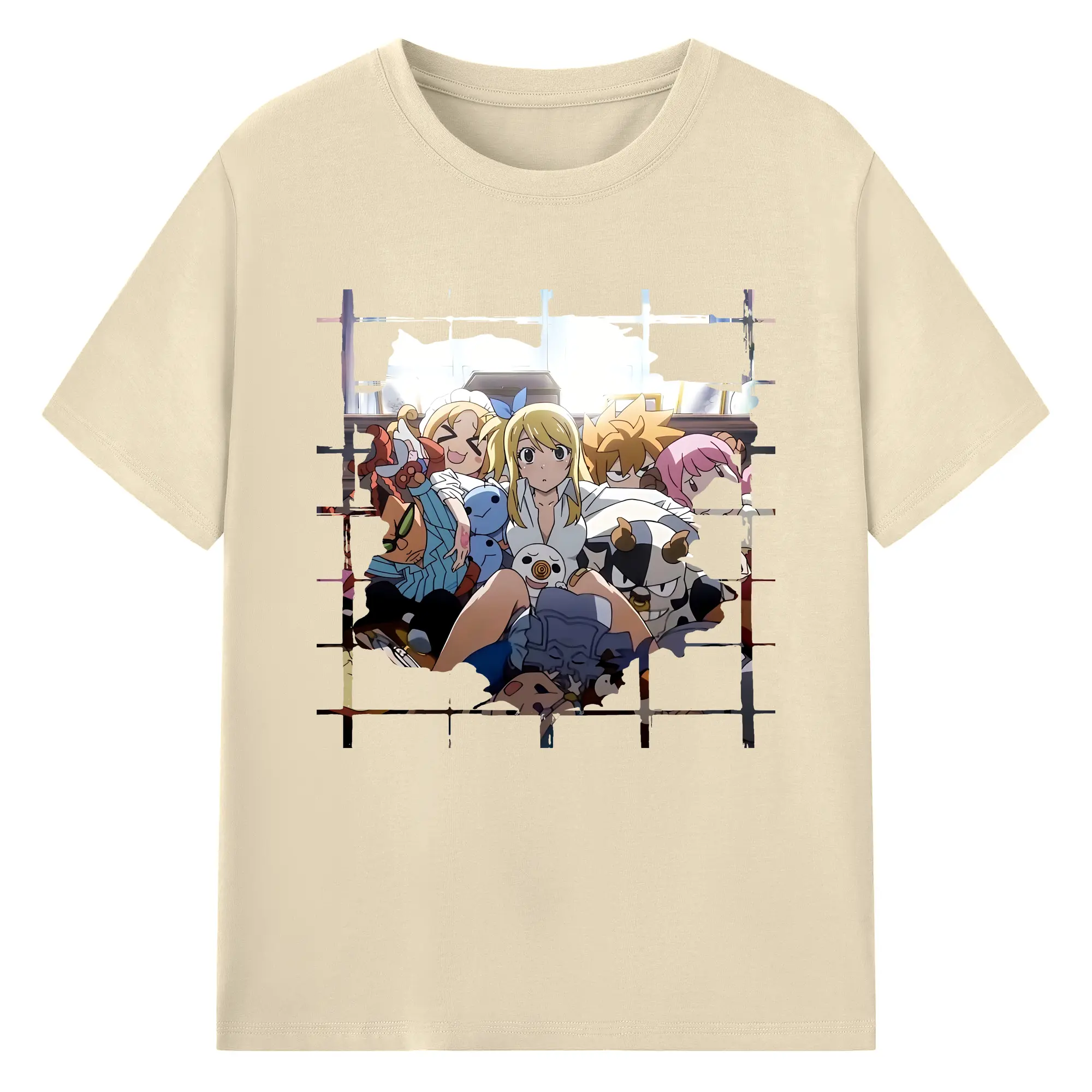 フェアリーテイル グッズ ルーシィ・ハートフィリア - 綿100% ヴィンテージ風 半袖Tシャツ ・ フロントプリント ・ 柔らか肌触り ・ 通気性 快適 ・ スポーツ カジュアル 外出用