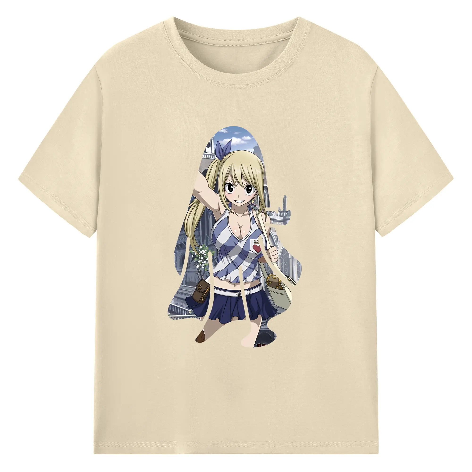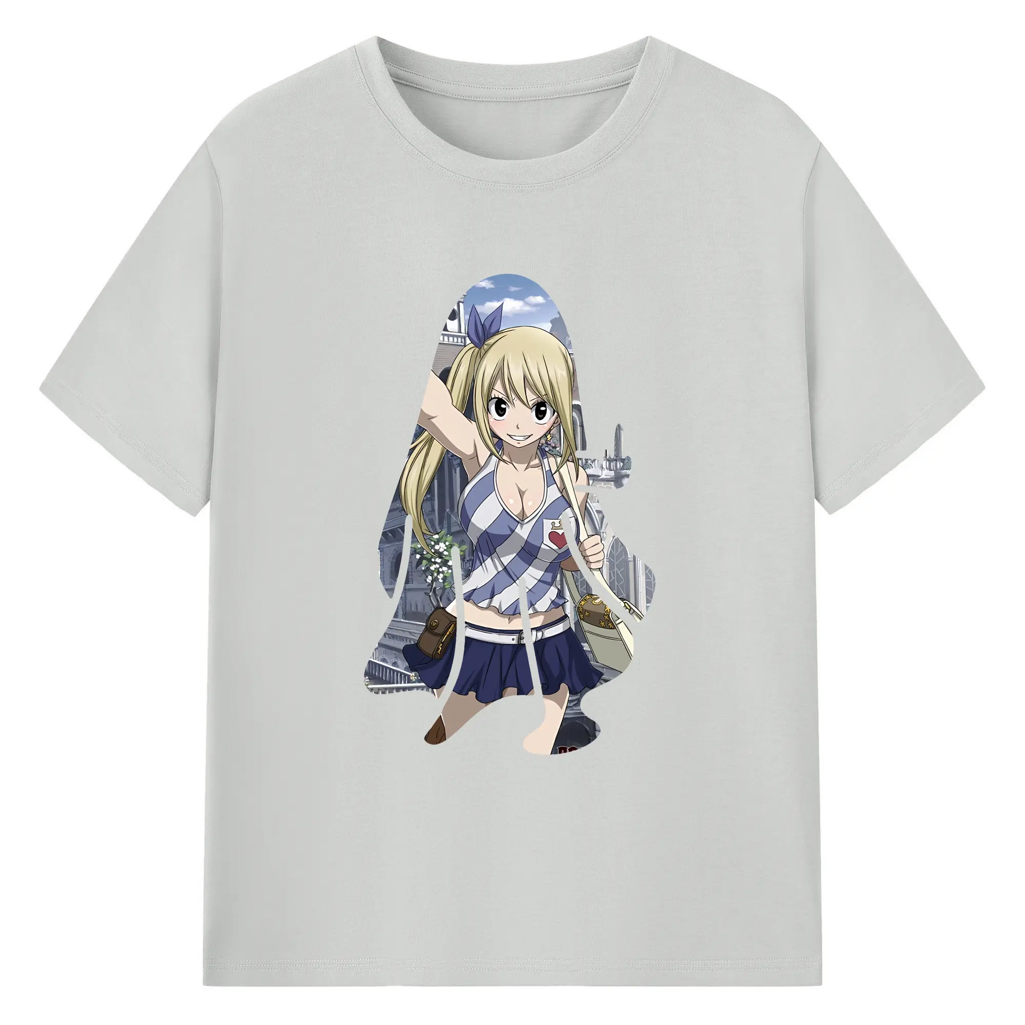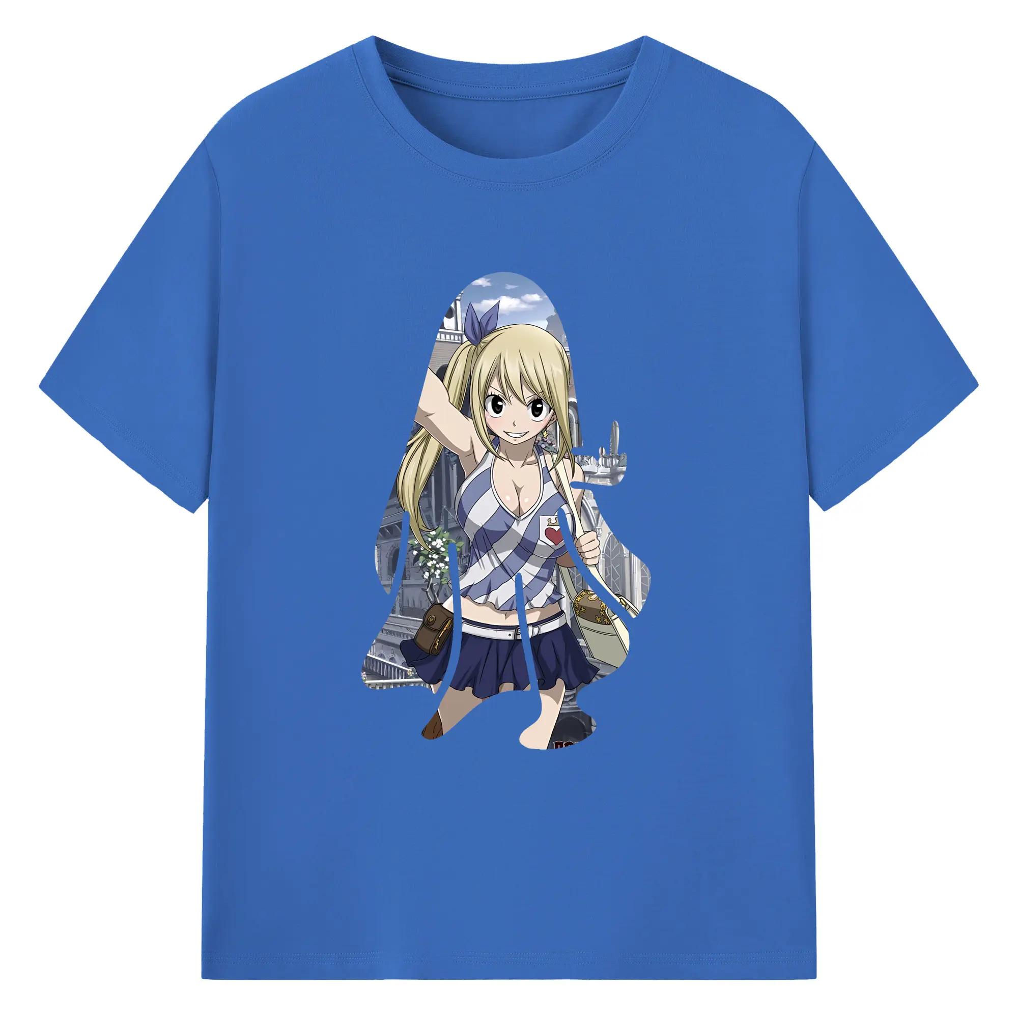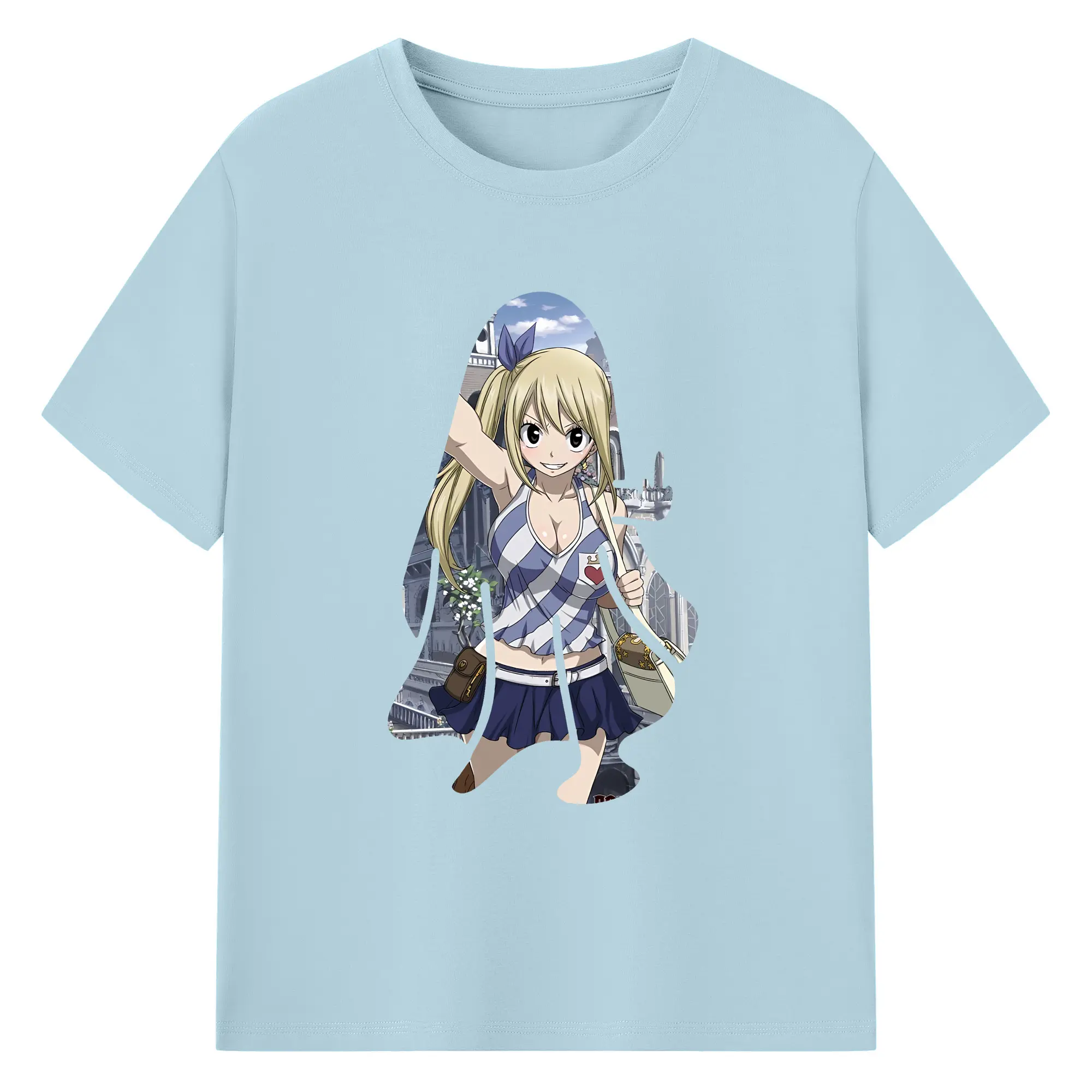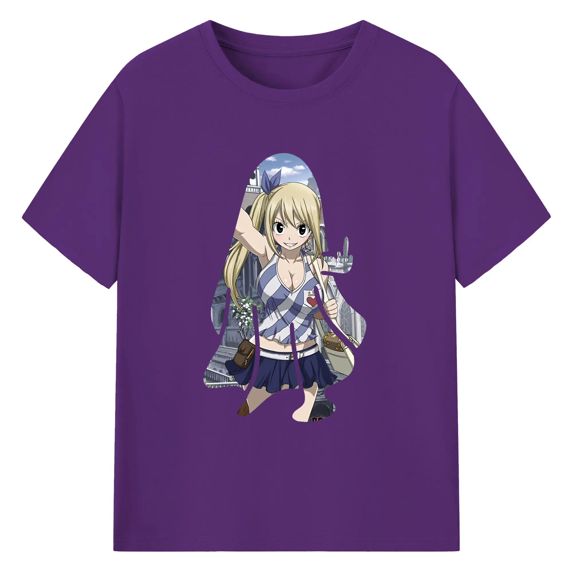 フェアリーテイル グッズ ルーシィ・ハートフィリア - 綿100% 半袖Tシャツ ・ バックプリント ・ 快適 通気性 ・ 日常使い 散歩 スポーツ用