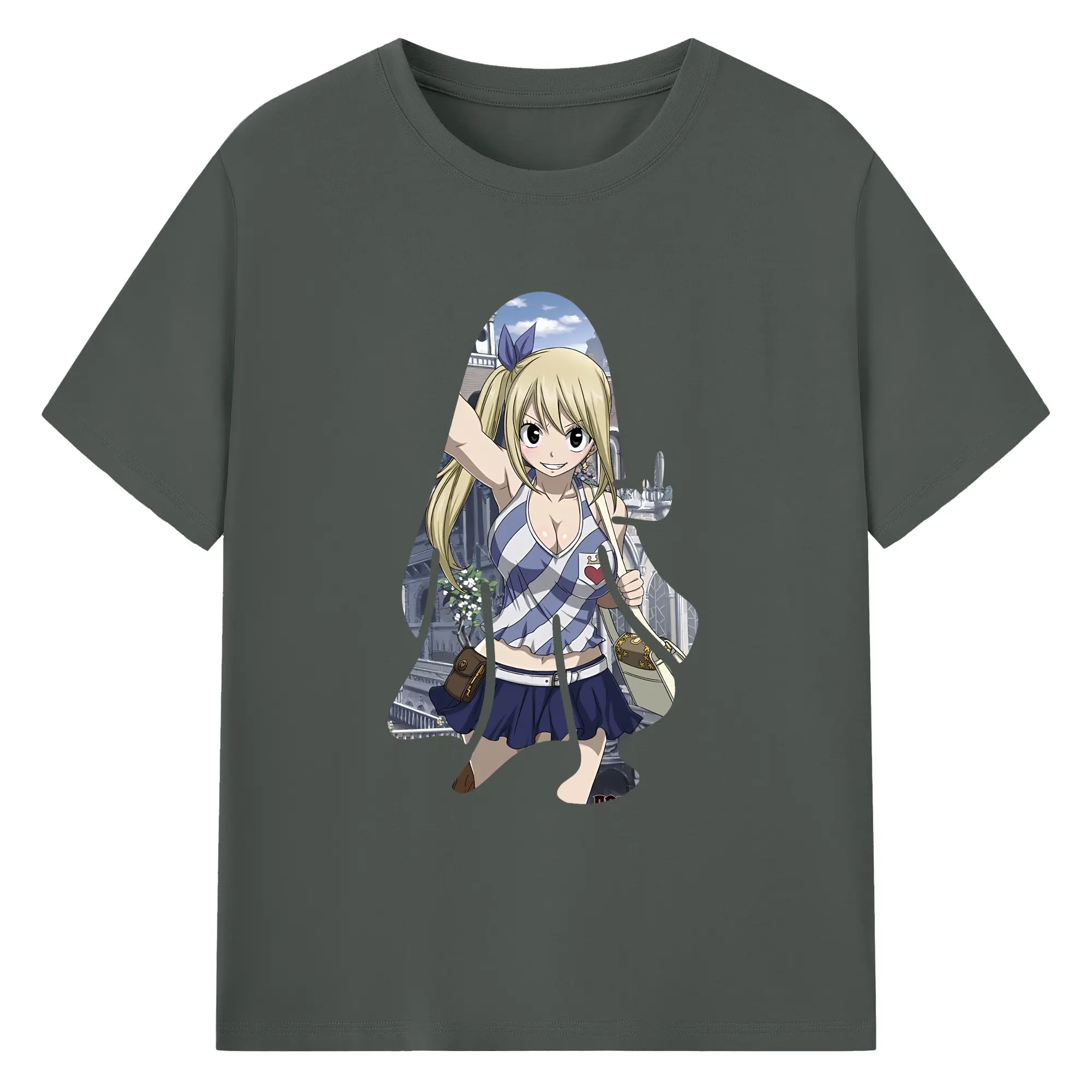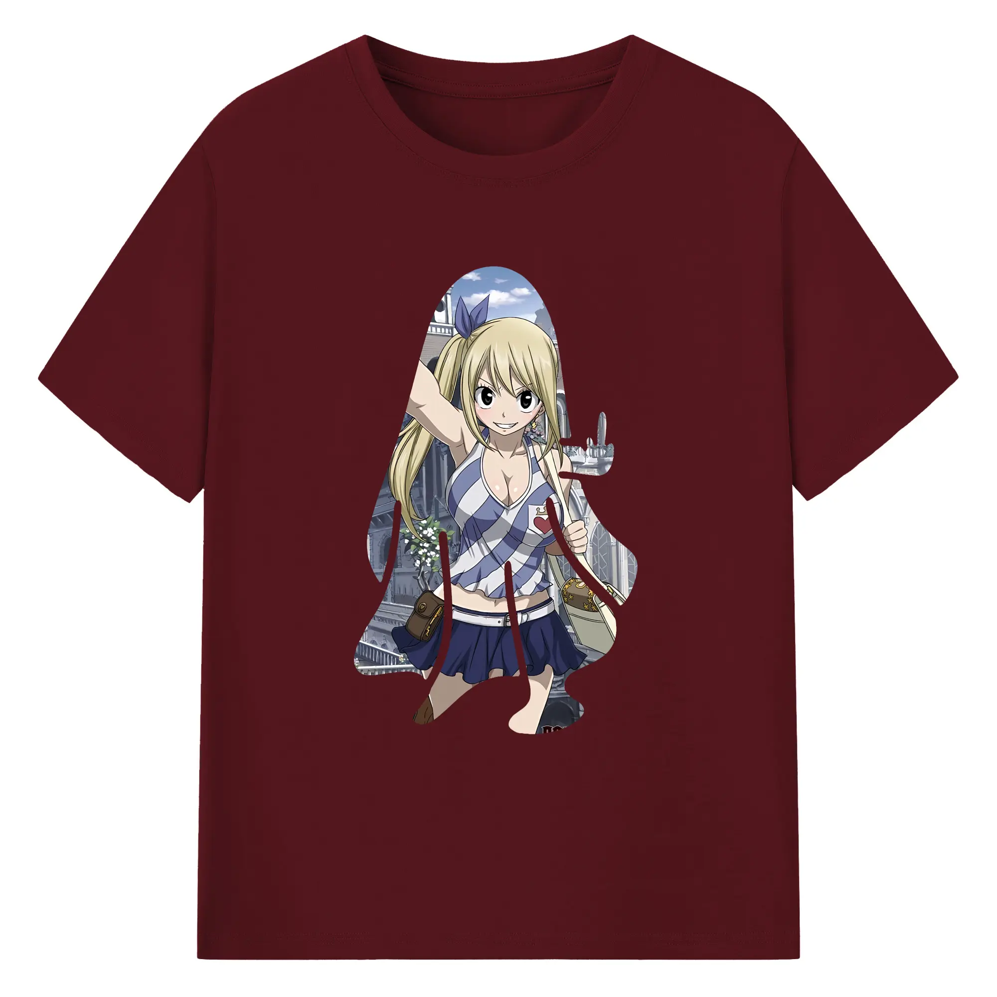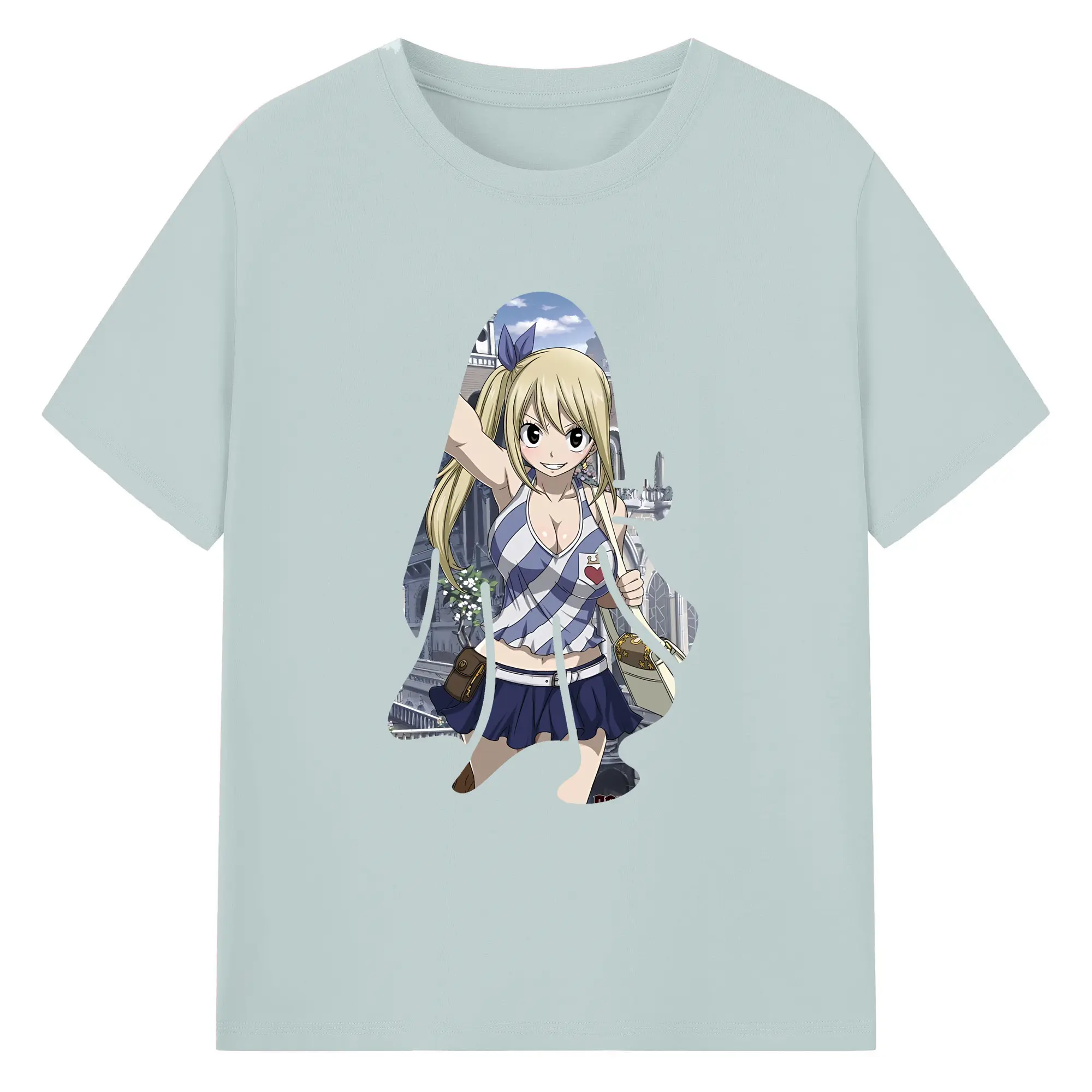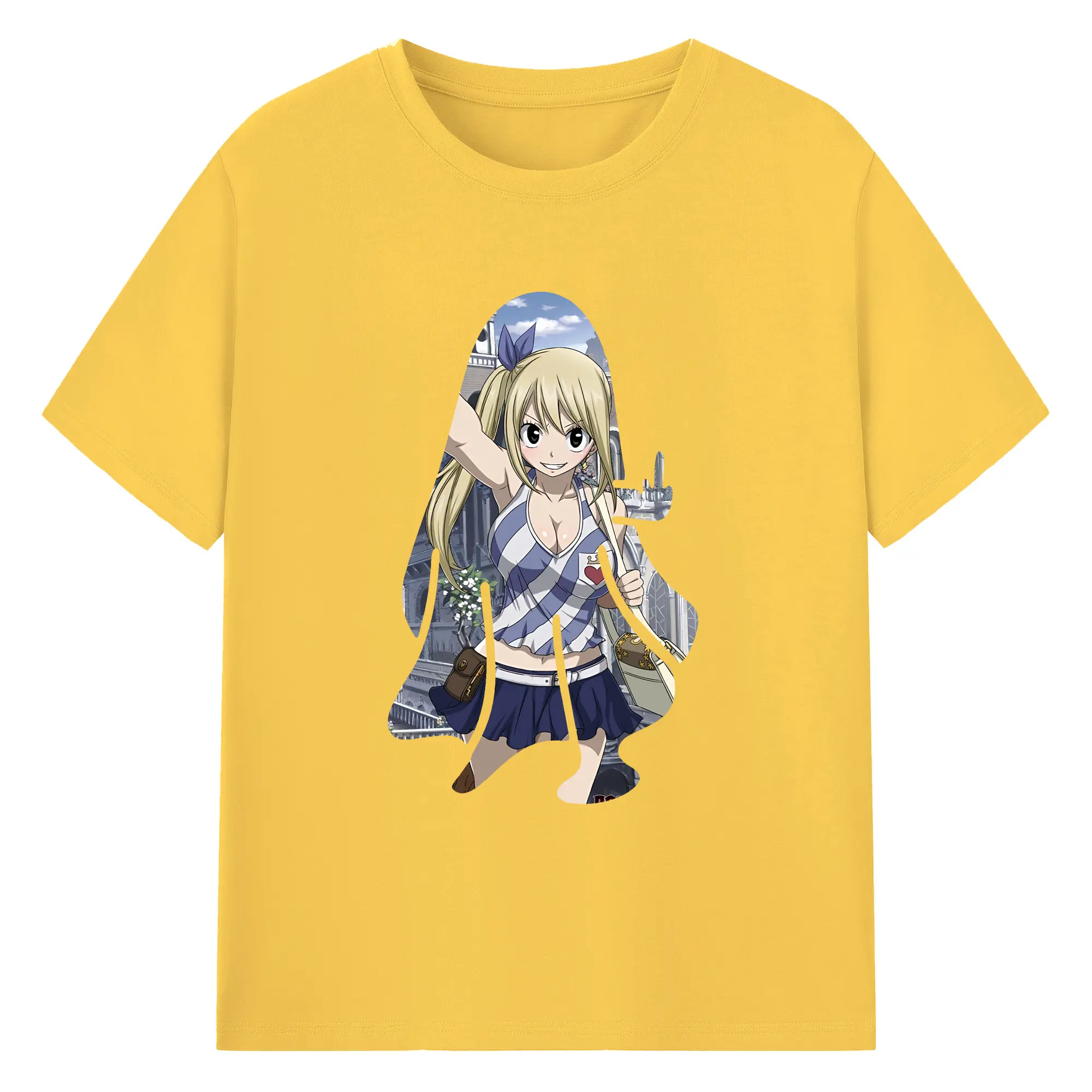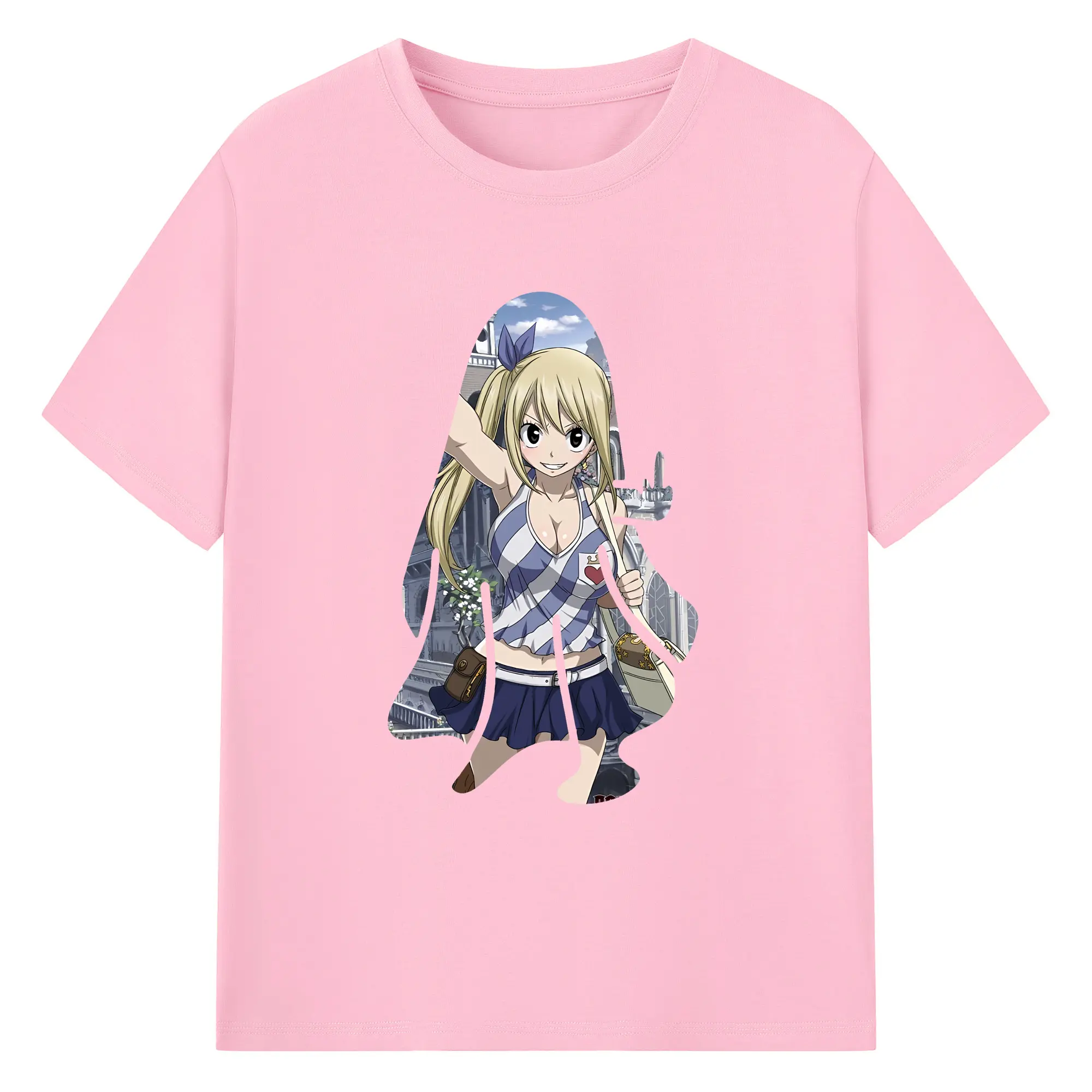 フェアリーテイル グッズ ルーシィ・ハートフィリア - 綿100% 半袖Tシャツ ・ バックプリント ・ 快適 通気性 ・ 日常使い 散歩 スポーツ用