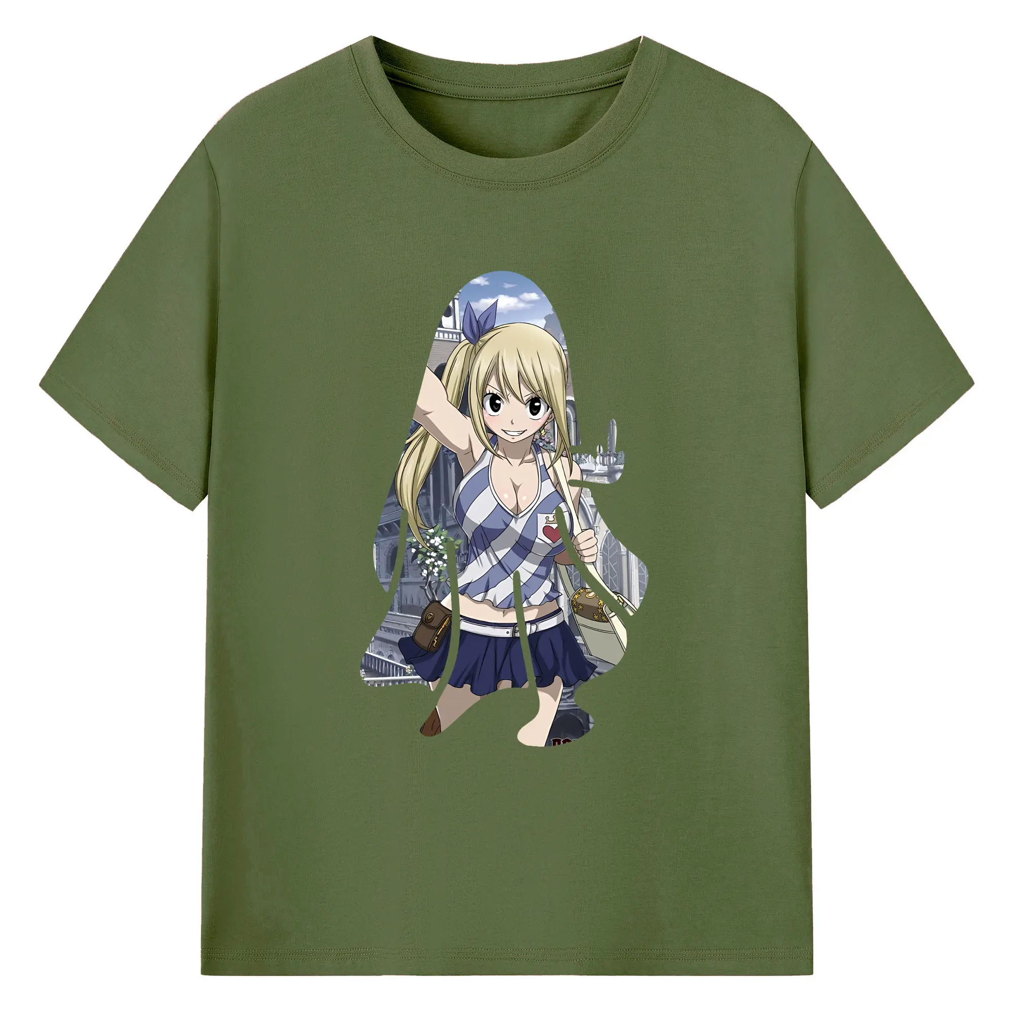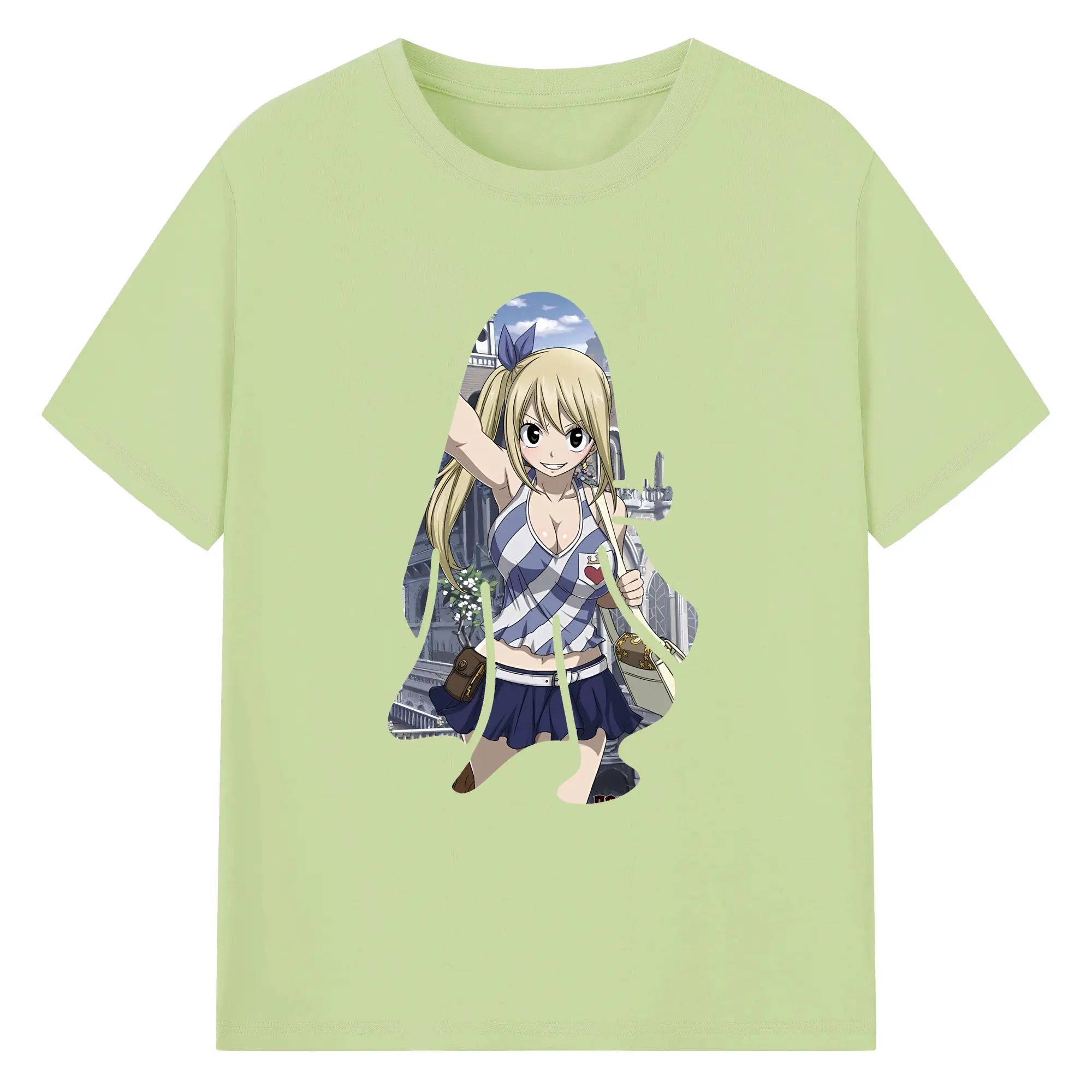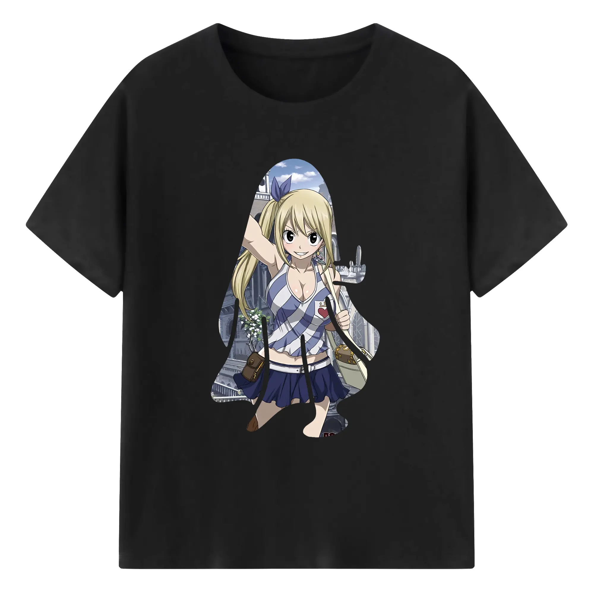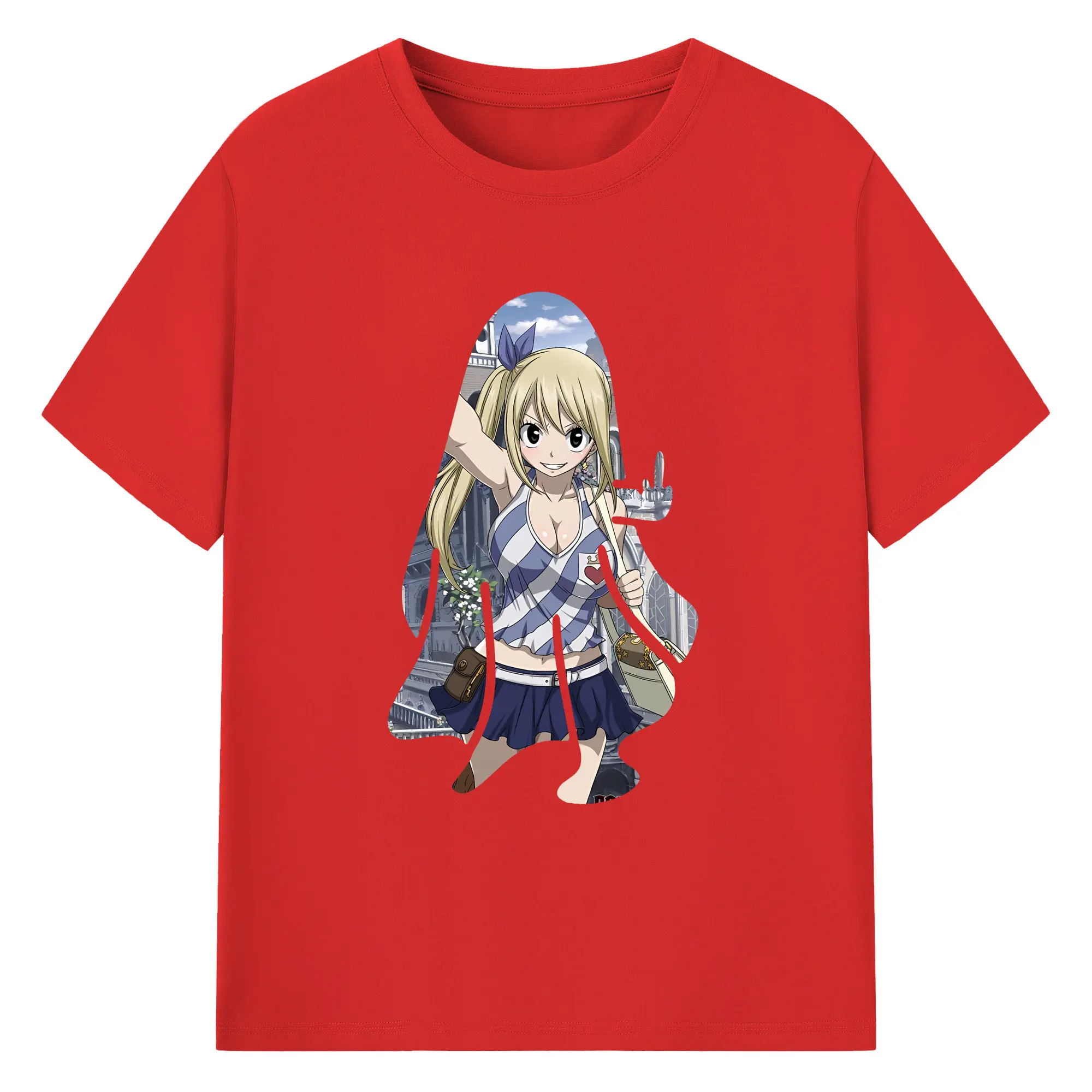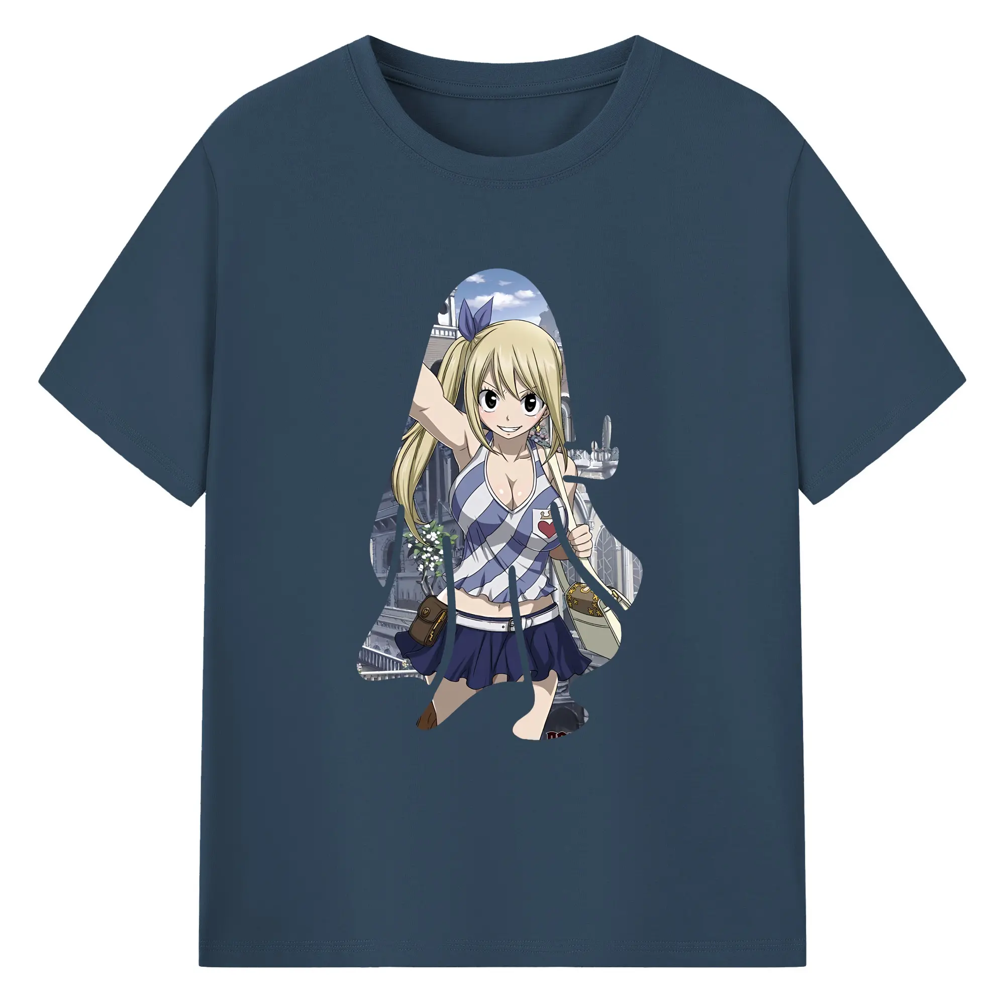 フェアリーテイル グッズ ルーシィ・ハートフィリア - 綿100% 半袖Tシャツ ・ バックプリント ・ 快適 通気性 ・ 日常使い 散歩 スポーツ用