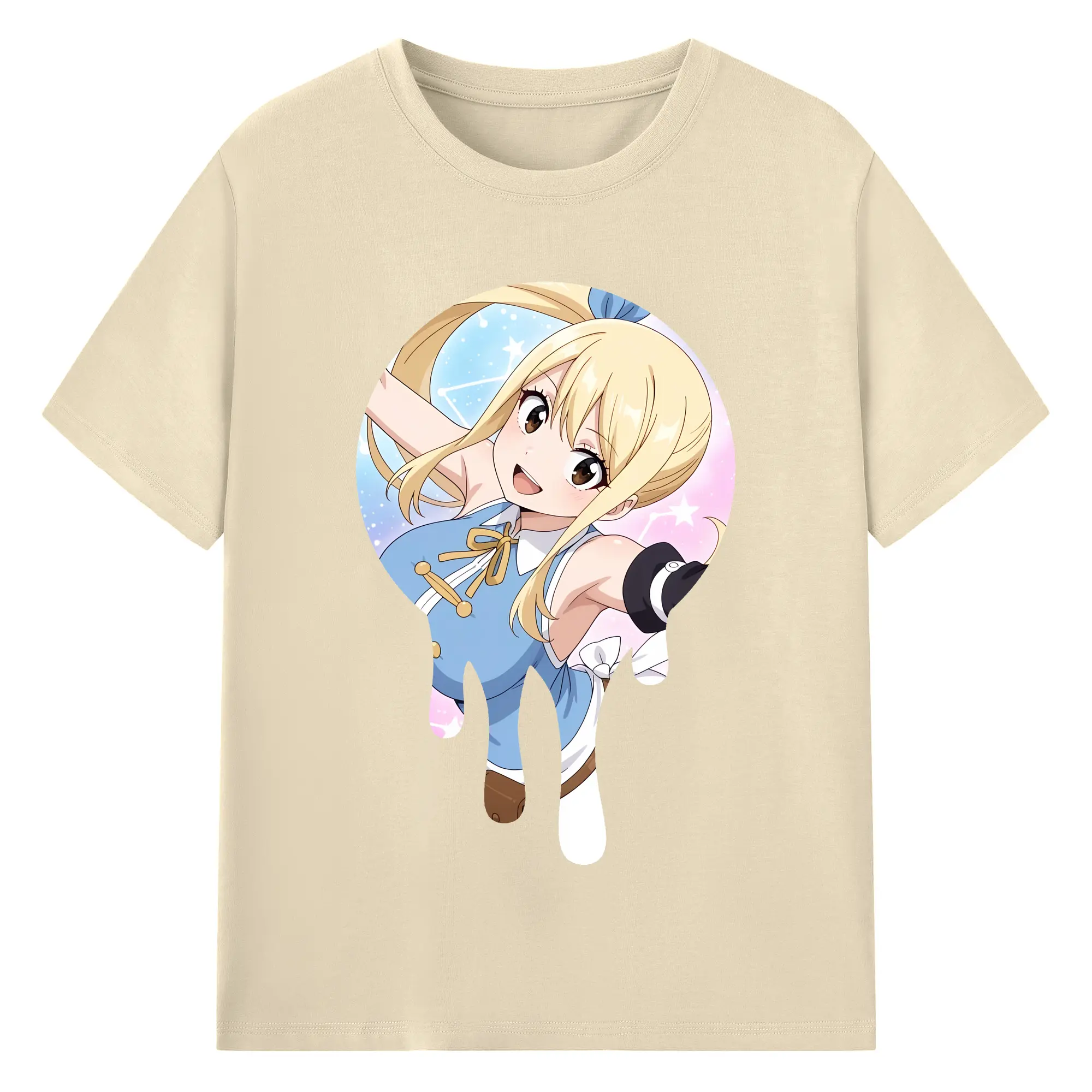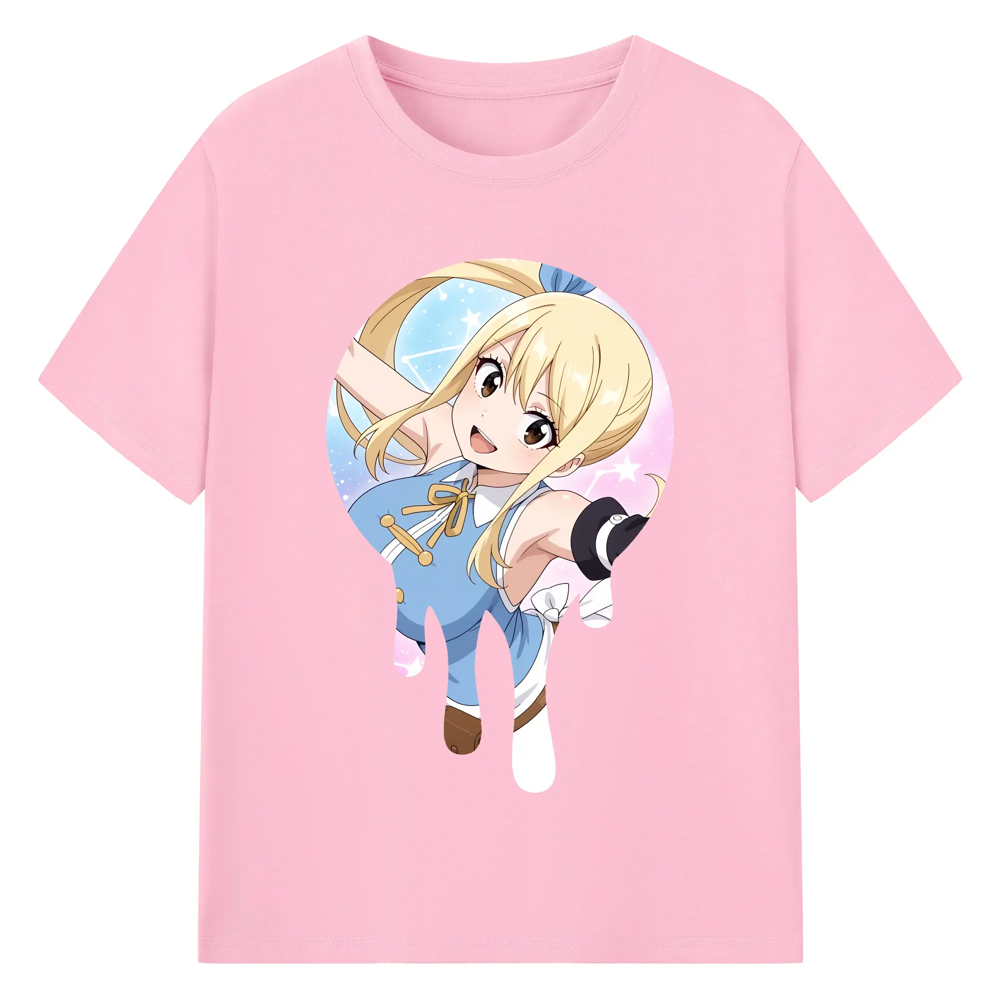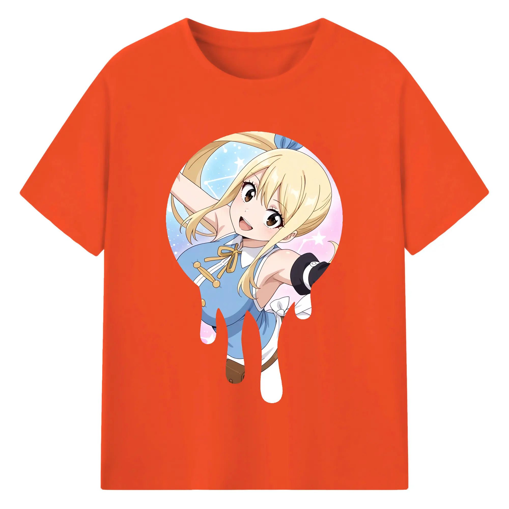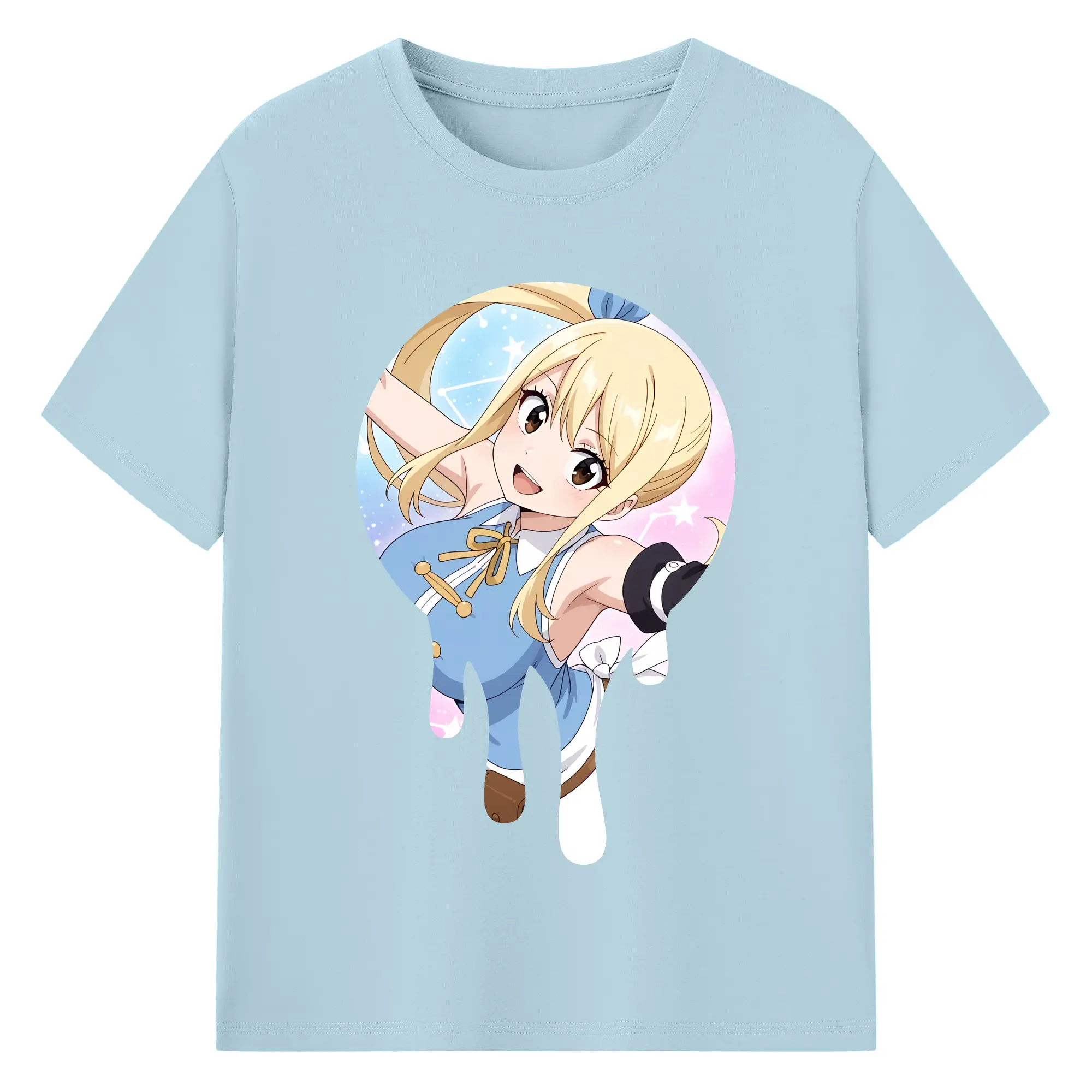 フェアリーテイル グッズ ルーシィ・ハートフィリア - 綿100% 半袖Tシャツ ・ バックプリント ・ 快適 通気性 ・ 日常使い 散歩 スポーツ用