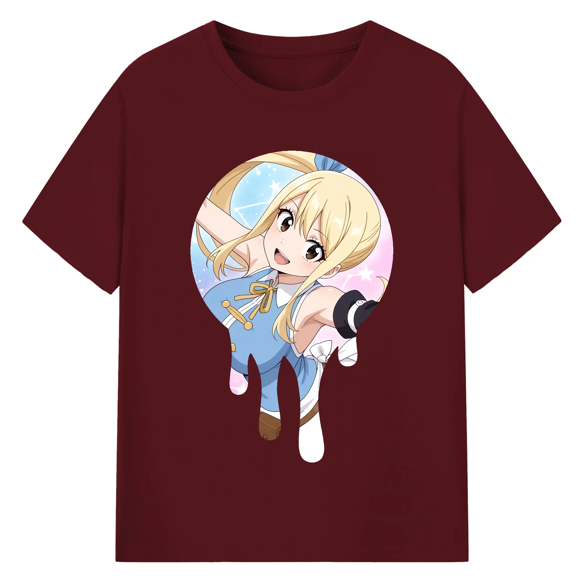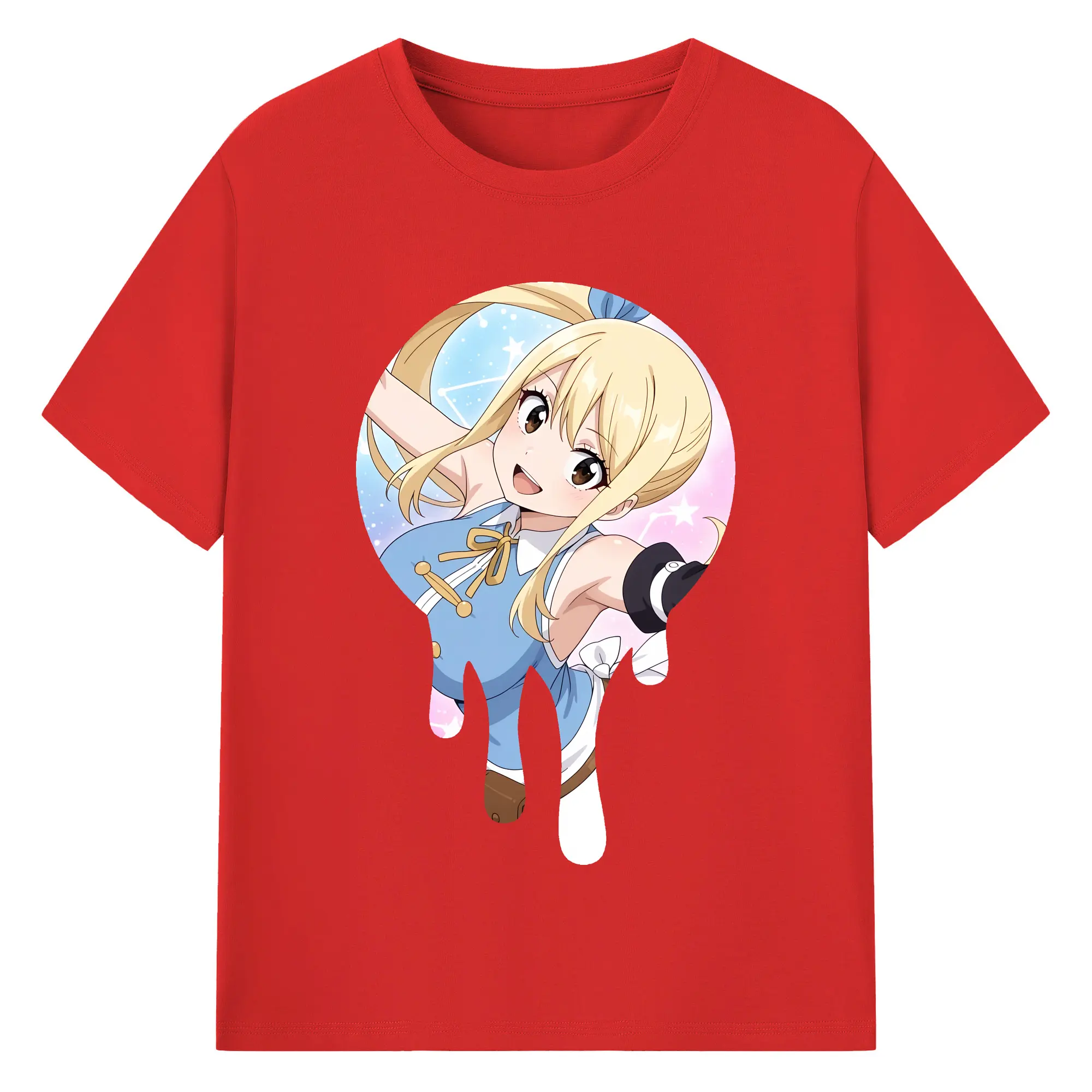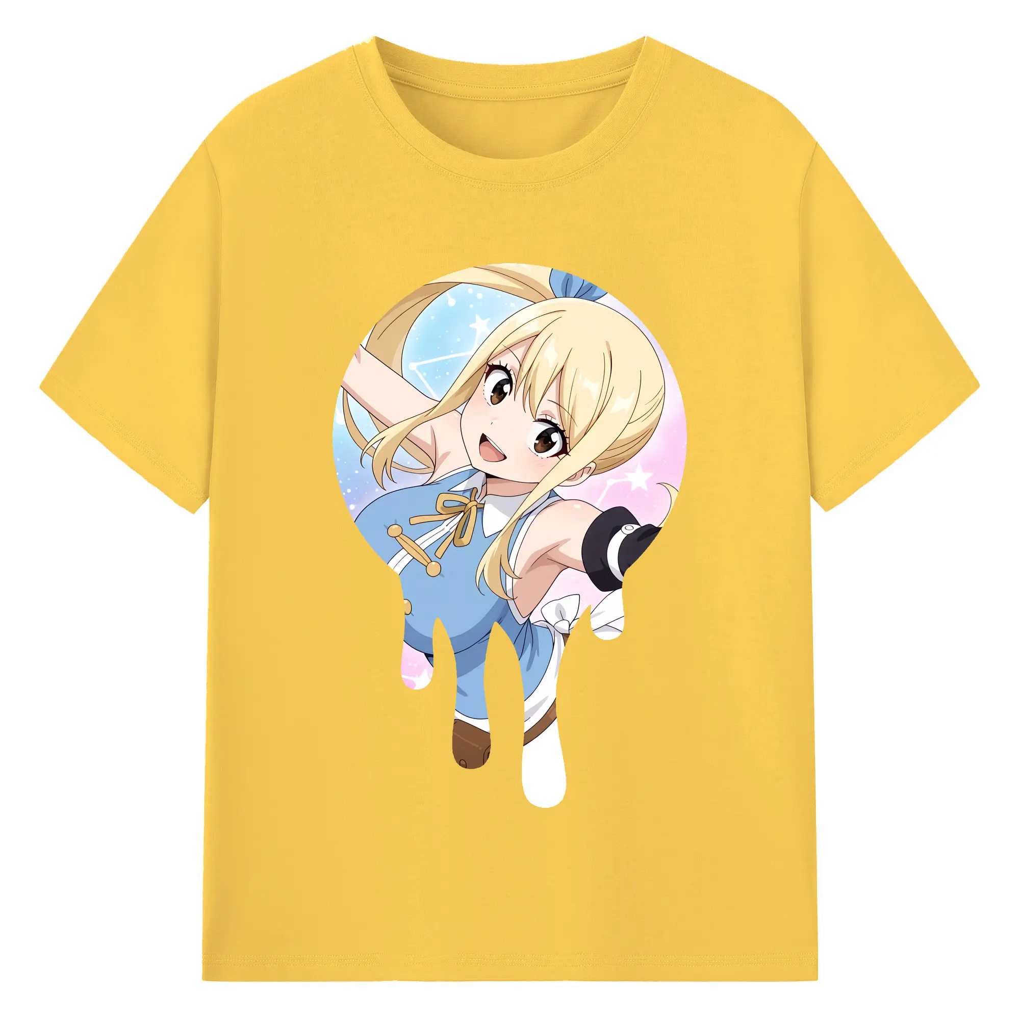 フェアリーテイル グッズ ルーシィ・ハートフィリア - 綿100% 半袖Tシャツ ・ バックプリント ・ 快適 通気性 ・ 日常使い 散歩 スポーツ用