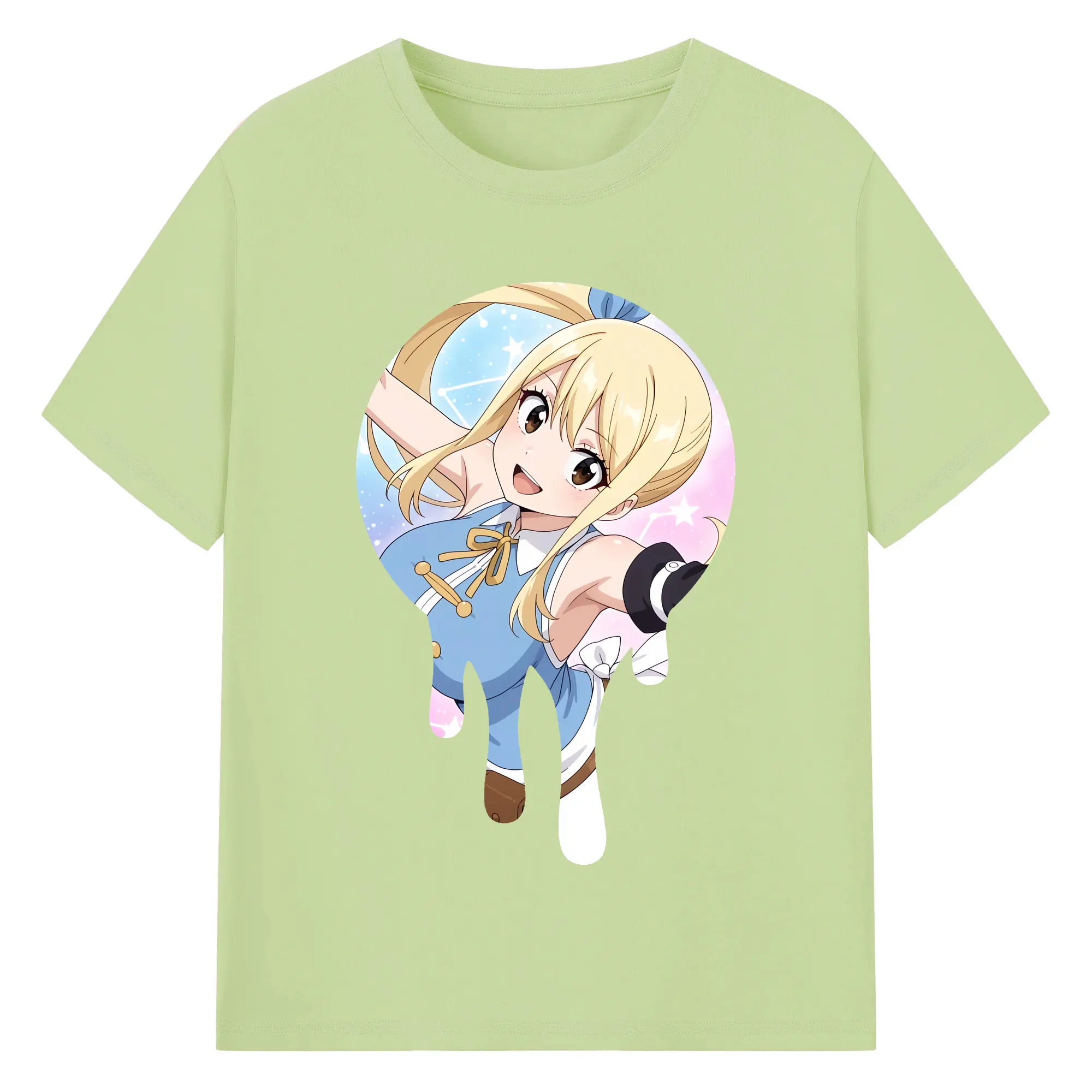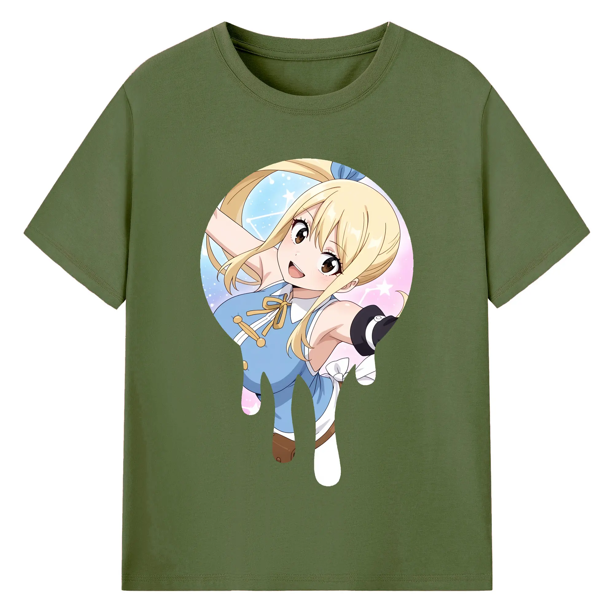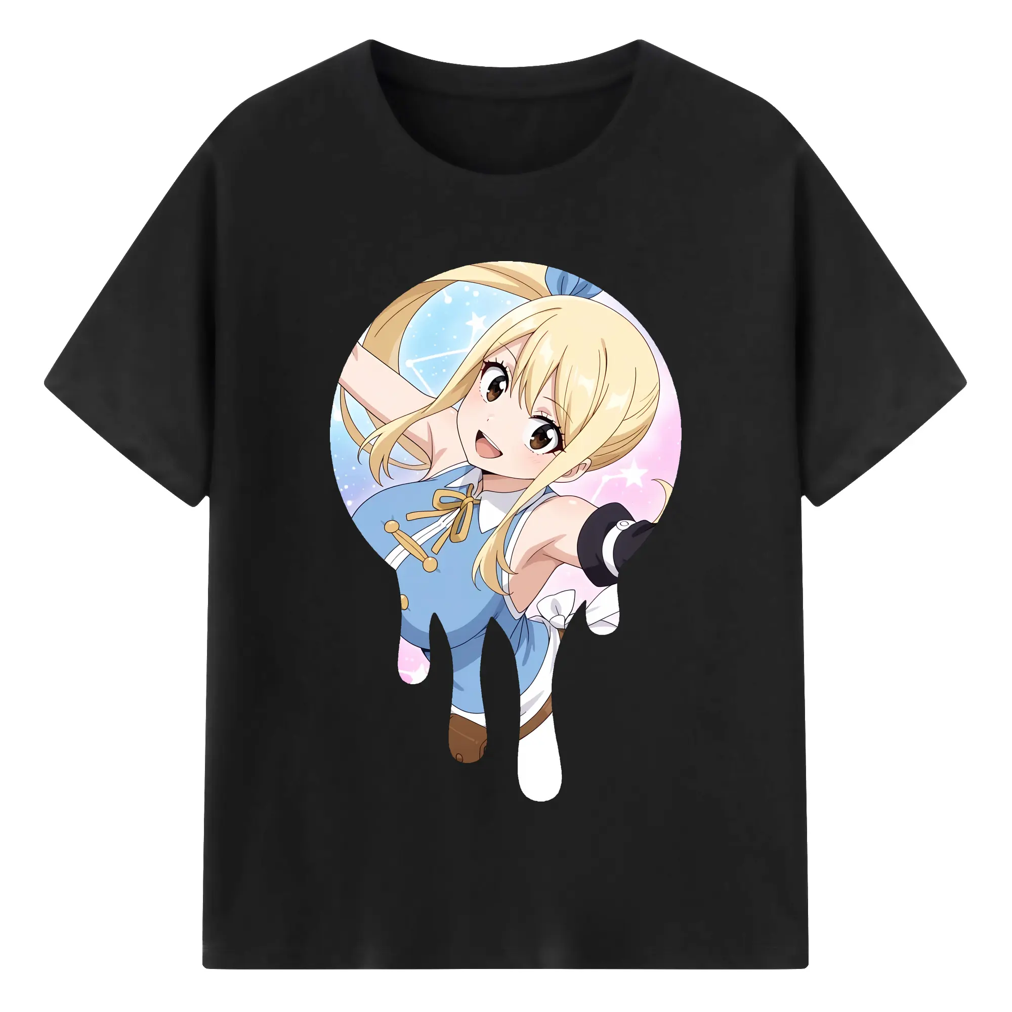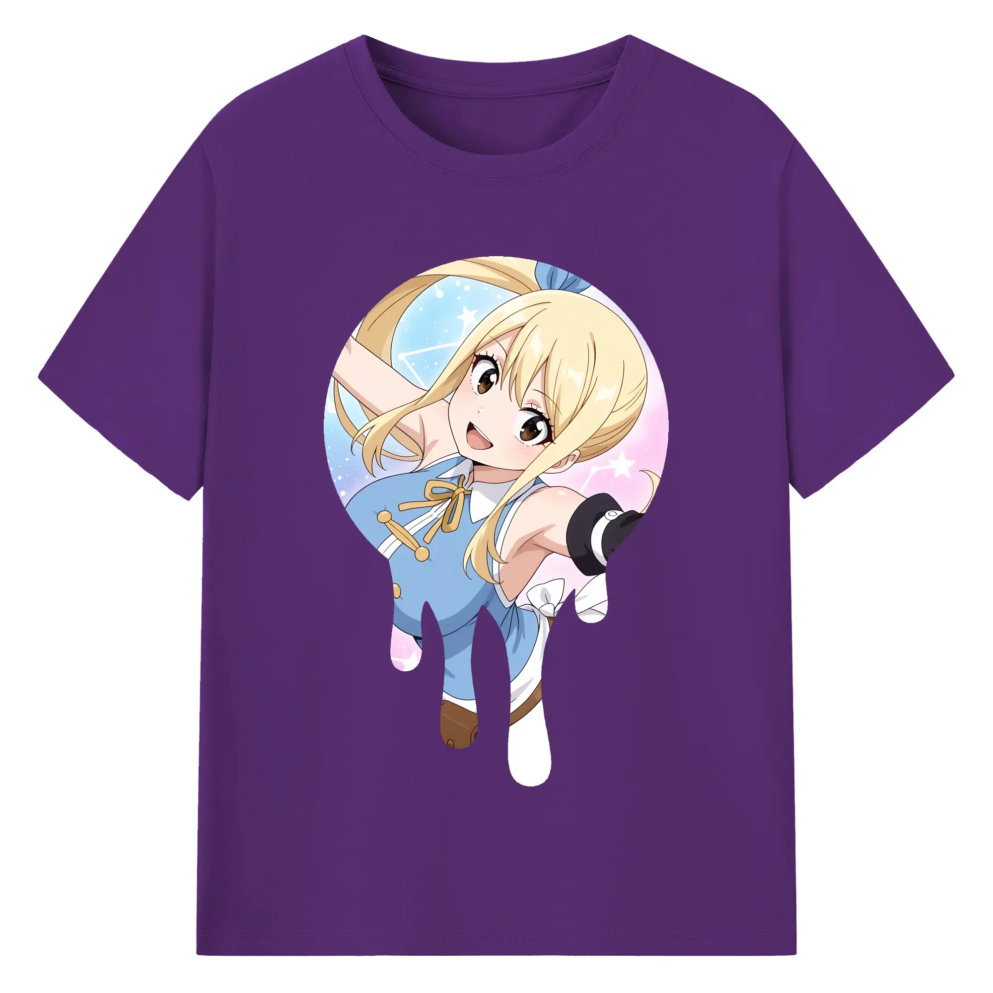 フェアリーテイル グッズ ルーシィ・ハートフィリア - 綿100% 半袖Tシャツ ・ バックプリント ・ 快適 通気性 ・ 日常使い 散歩 スポーツ用
