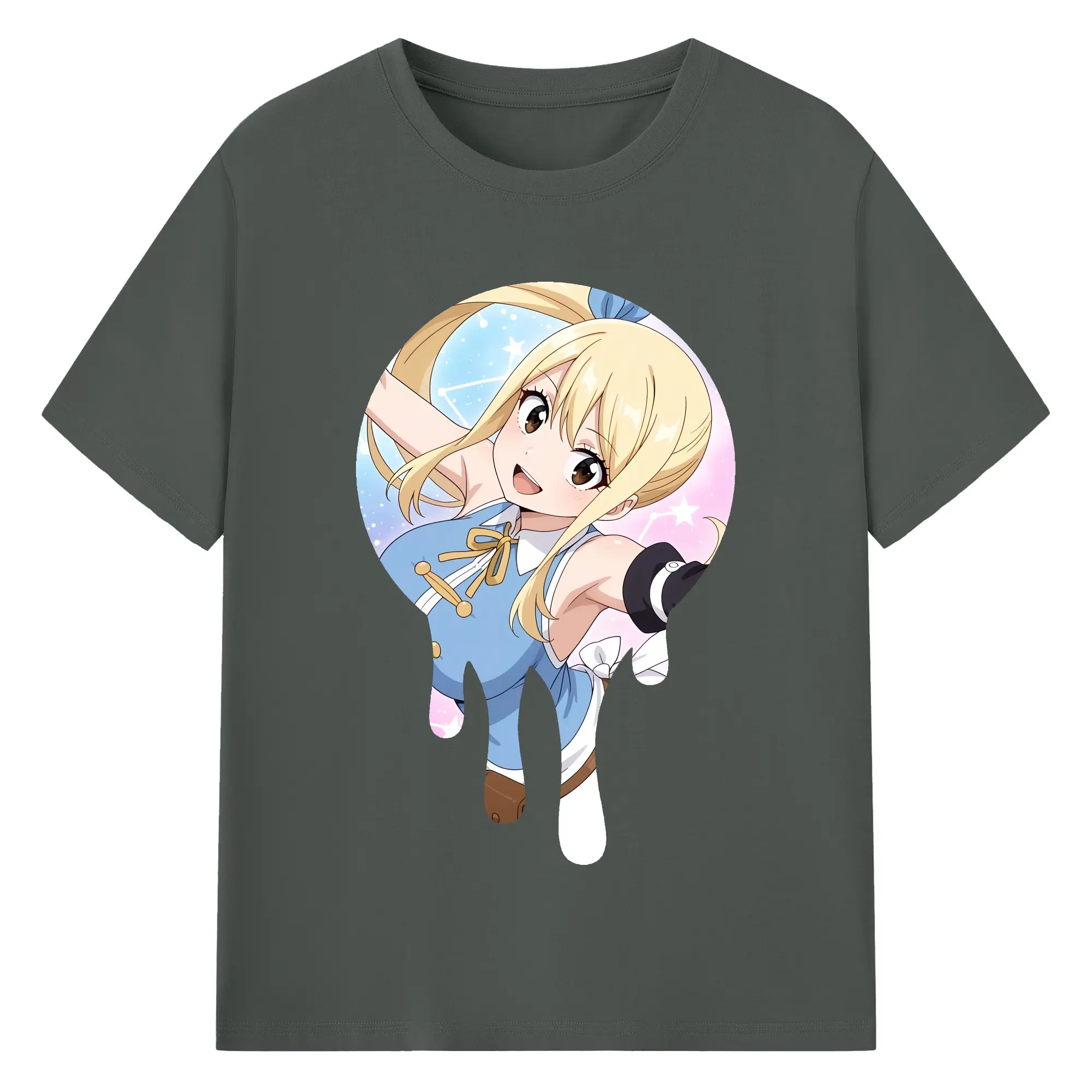 フェアリーテイル グッズ ルーシィ・ハートフィリア - 綿100% ヴィンテージ風 半袖Tシャツ ・ フロントプリント ・ 柔らか肌触り ・ 通気性 快適 ・ スポーツ カジュアル 外出用