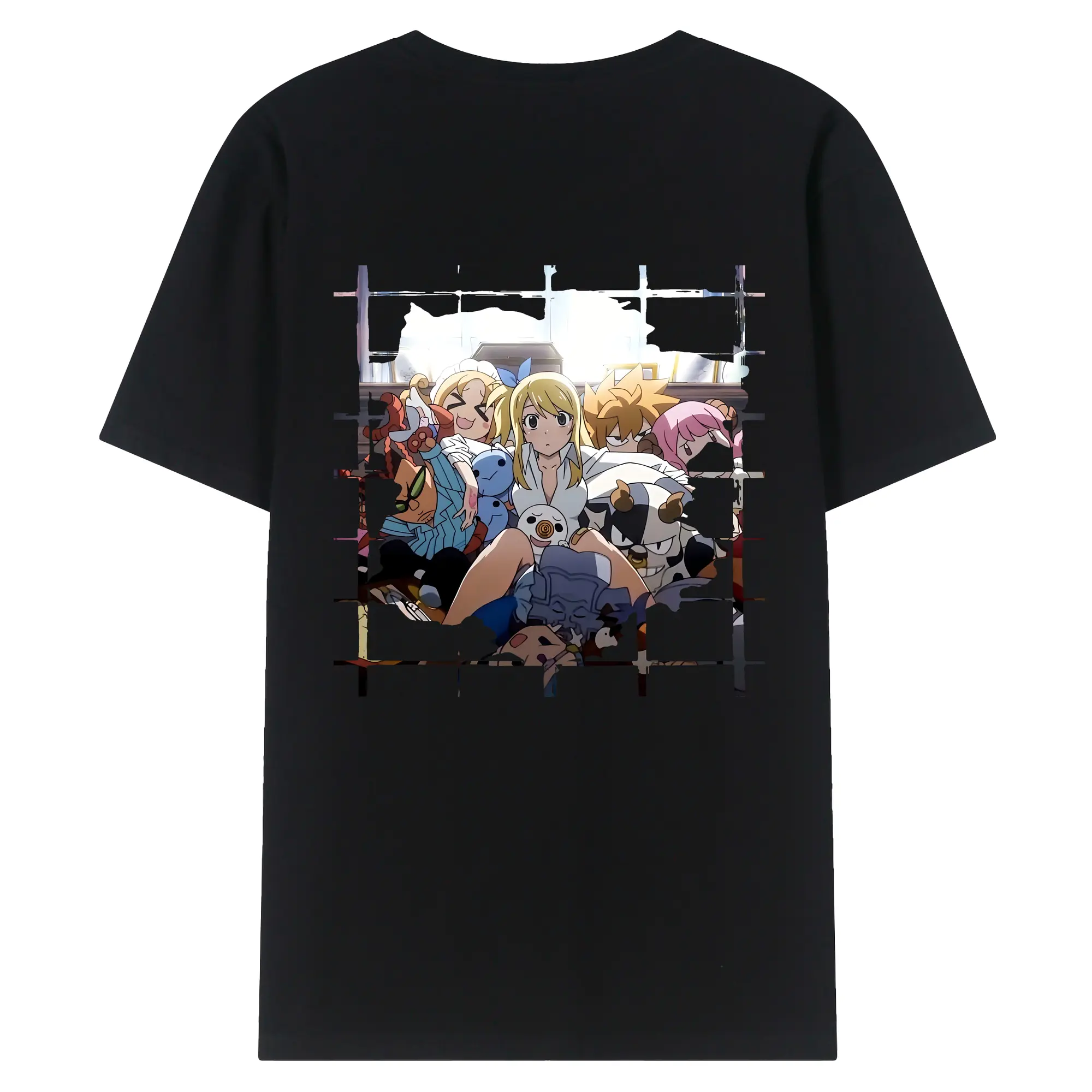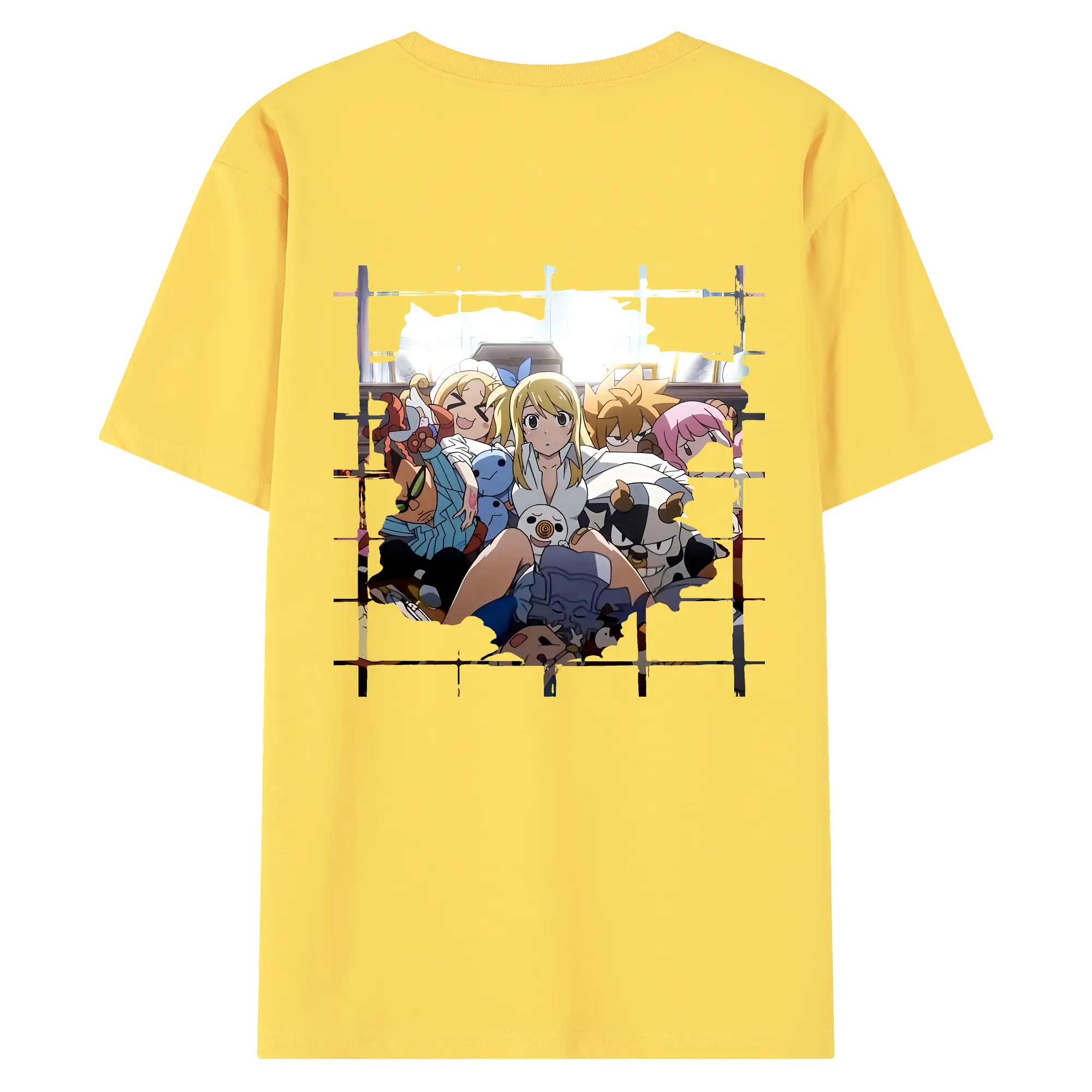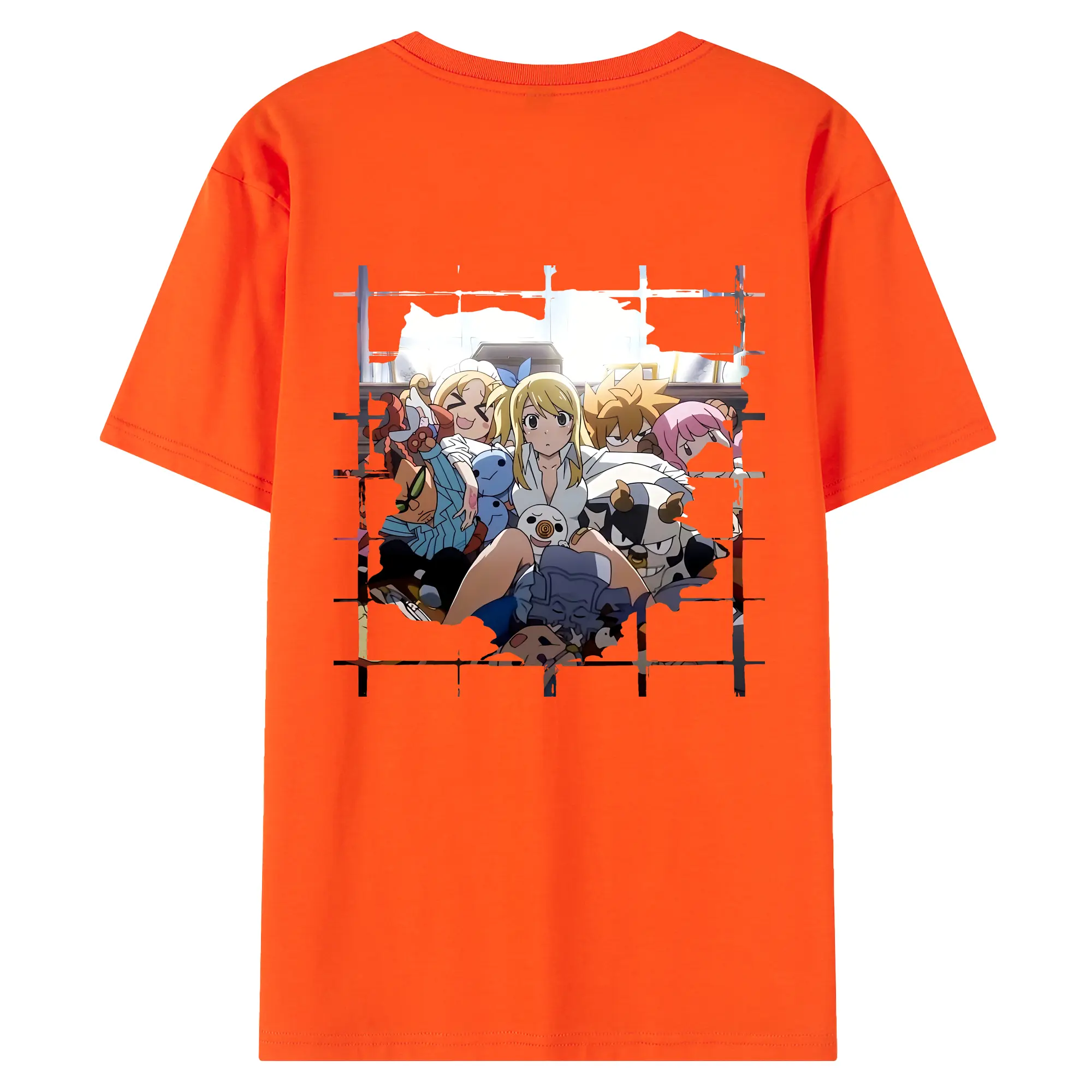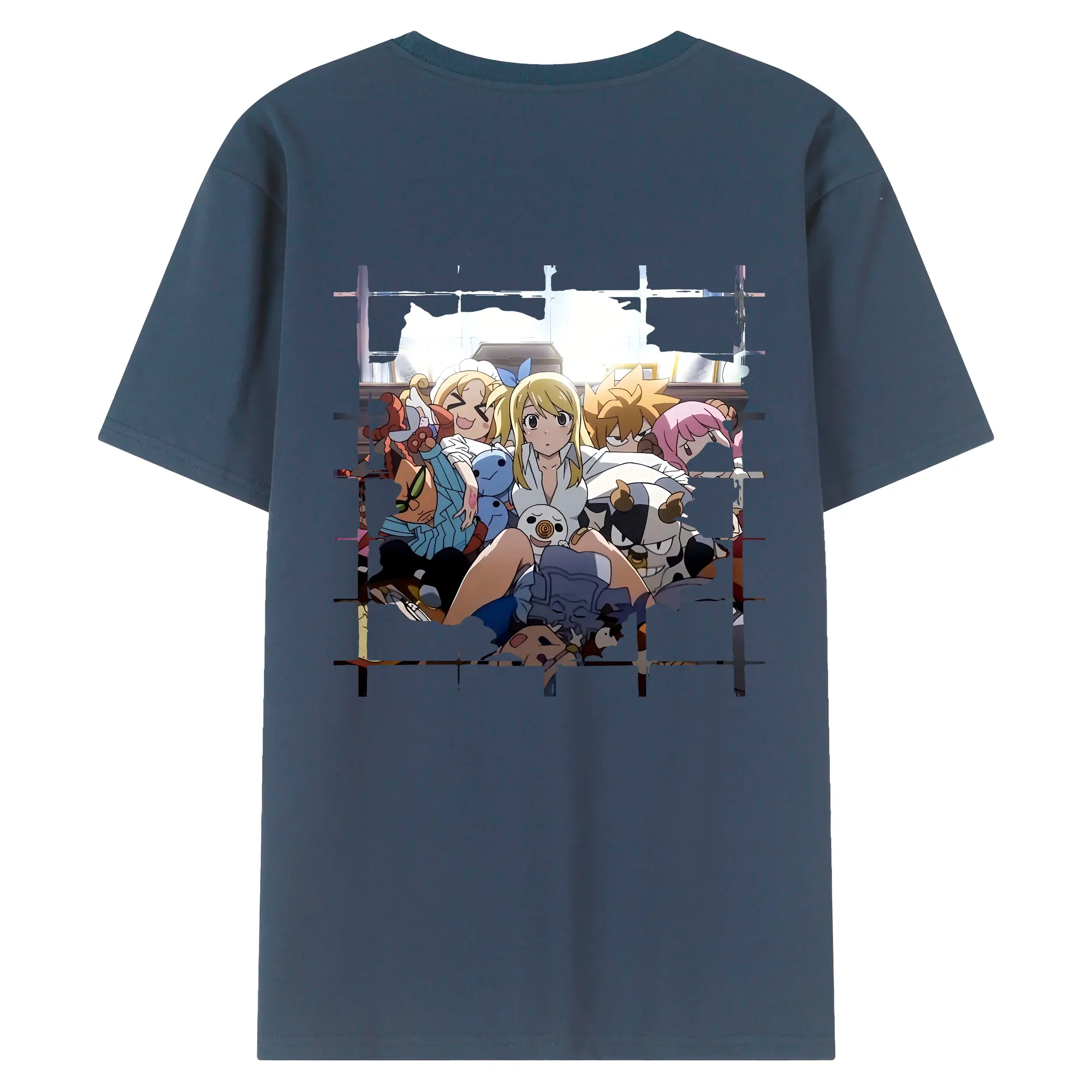 フェアリーテイル グッズ ルーシィ・ハートフィリア - 綿100% ヴィンテージ風 半袖Tシャツ ・ 背面プリント ・ 柔らか肌触り ・ 通気性 快適 ・ スポーツ カジュアル 外出用