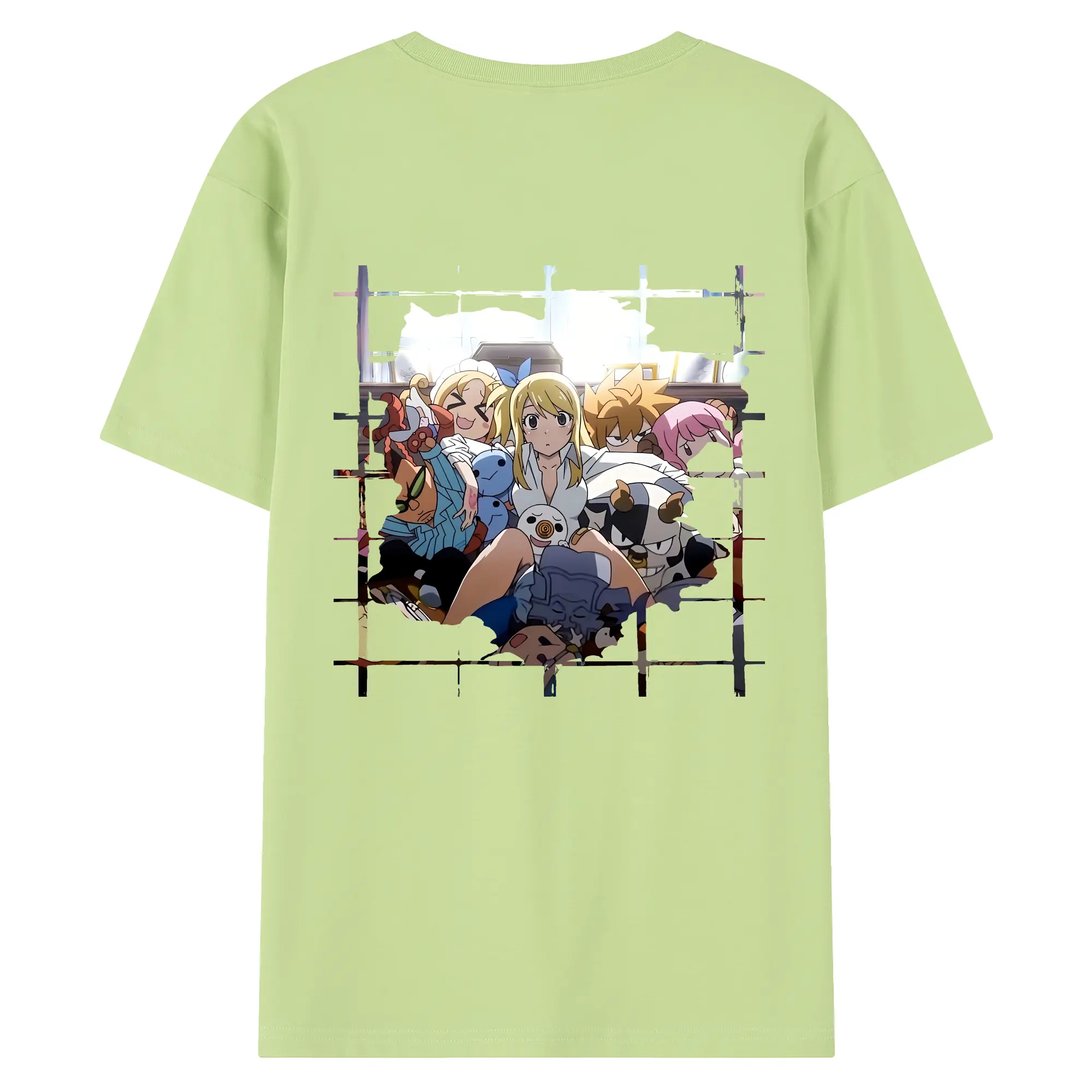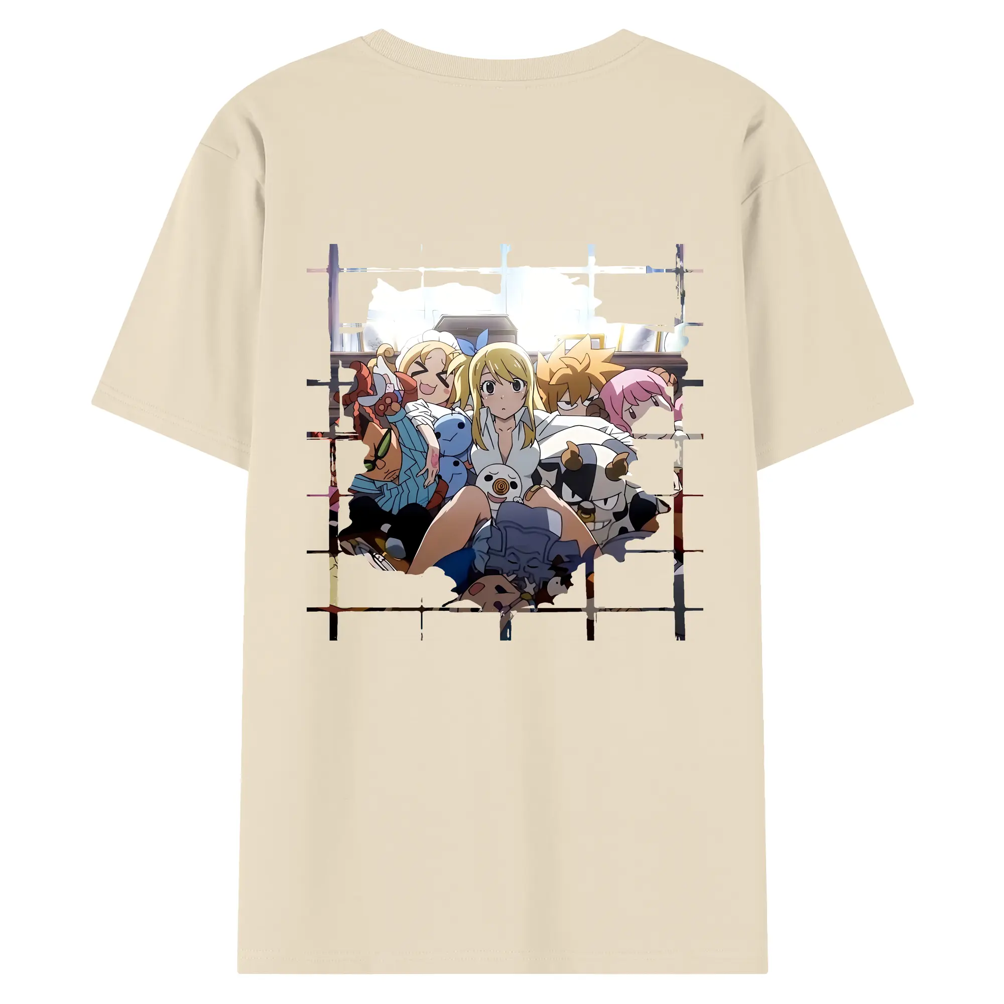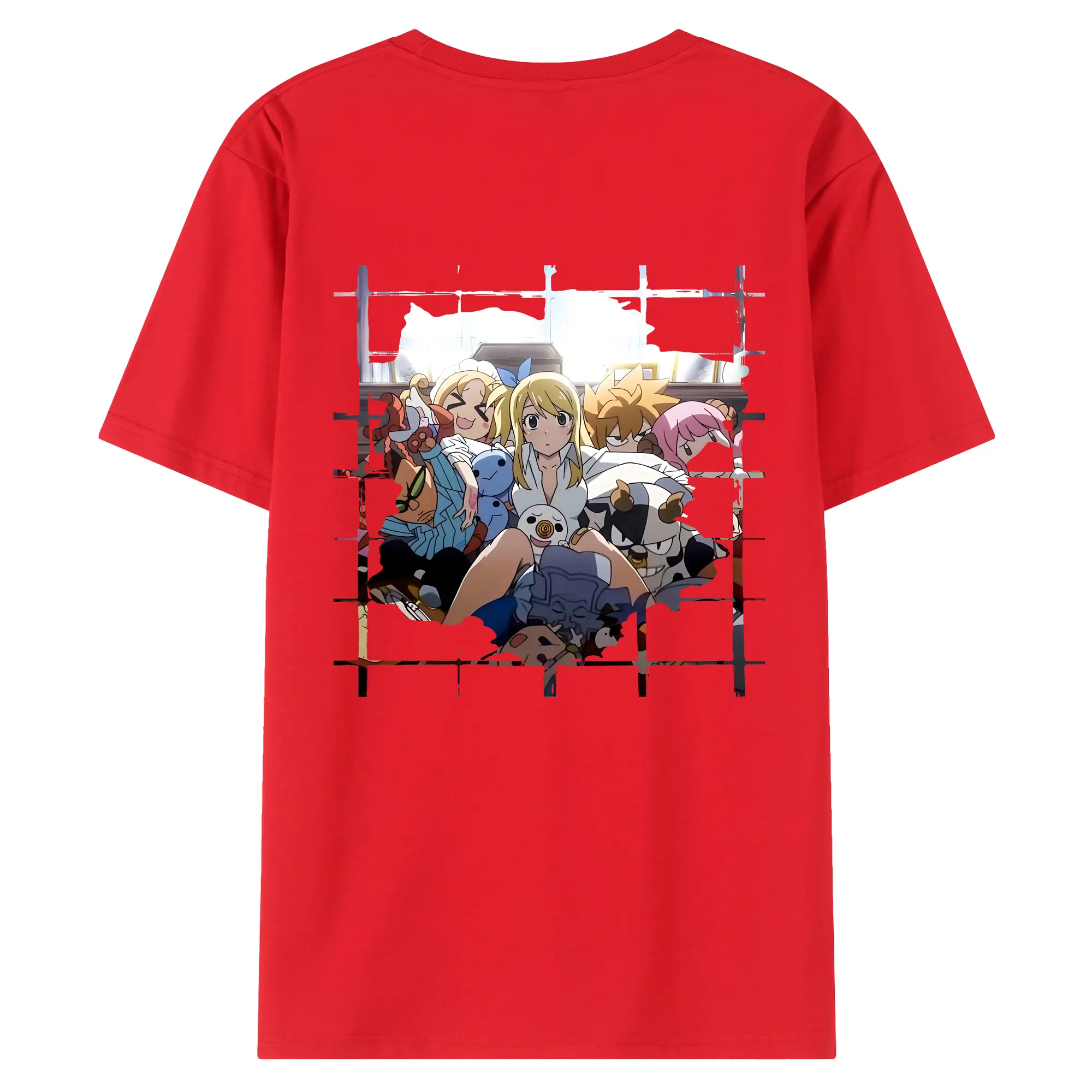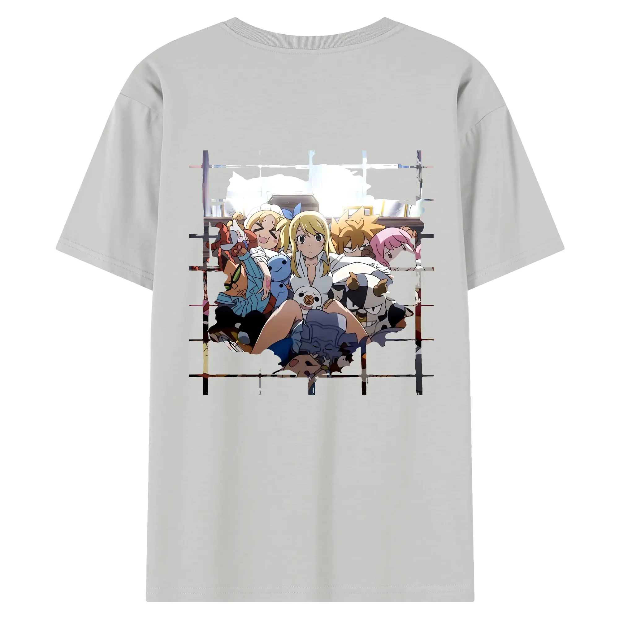 フェアリーテイル グッズ ルーシィ・ハートフィリア - 綿100% ヴィンテージ風 半袖Tシャツ ・ 背面プリント ・ 柔らか肌触り ・ 通気性 快適 ・ スポーツ カジュアル 外出用
