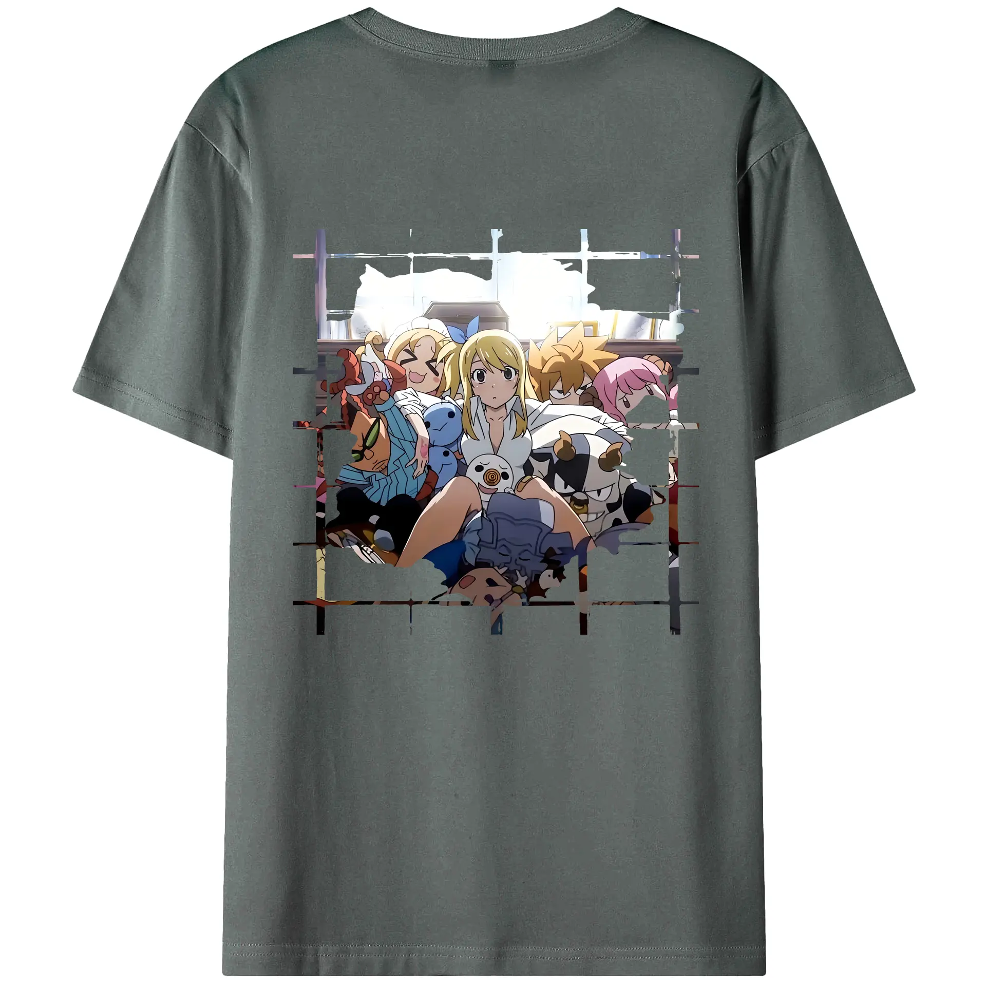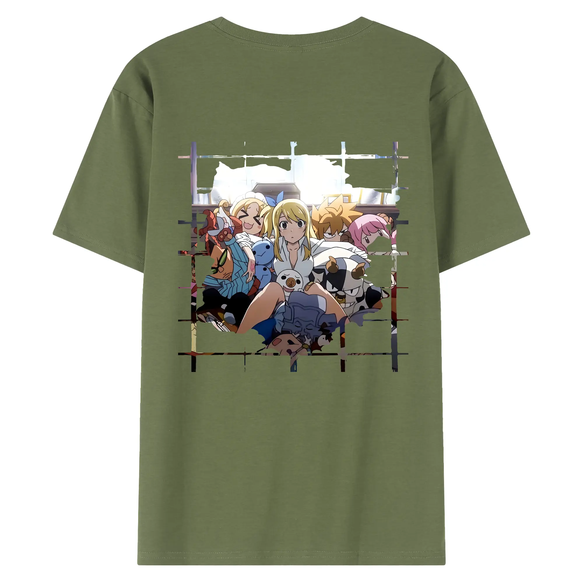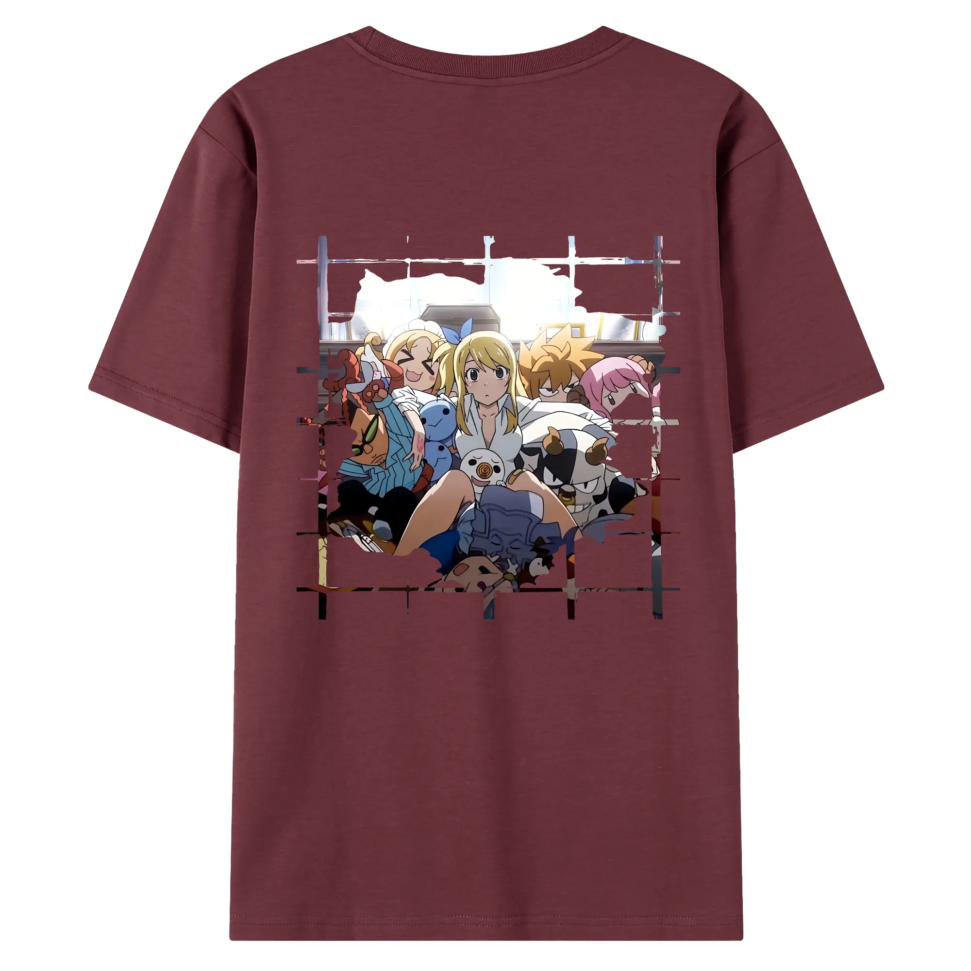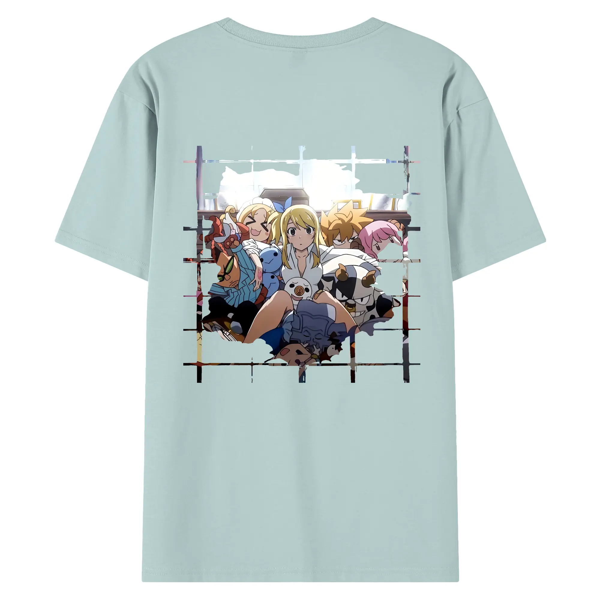 フェアリーテイル グッズ ルーシィ・ハートフィリア - 綿100% ヴィンテージ風 半袖Tシャツ ・ 背面プリント ・ 柔らか肌触り ・ 通気性 快適 ・ スポーツ カジュアル 外出用