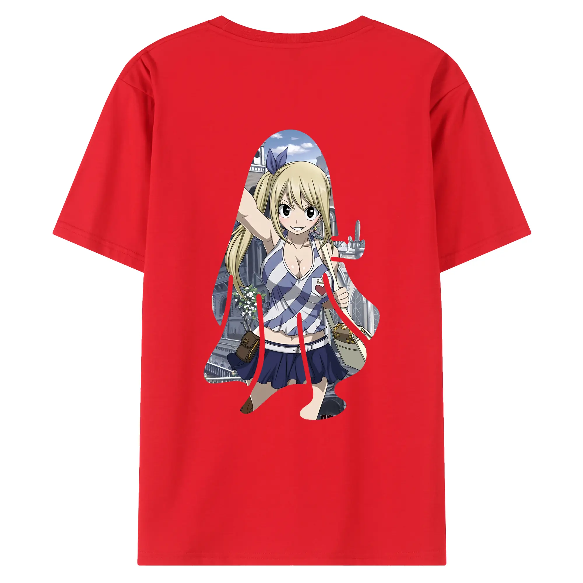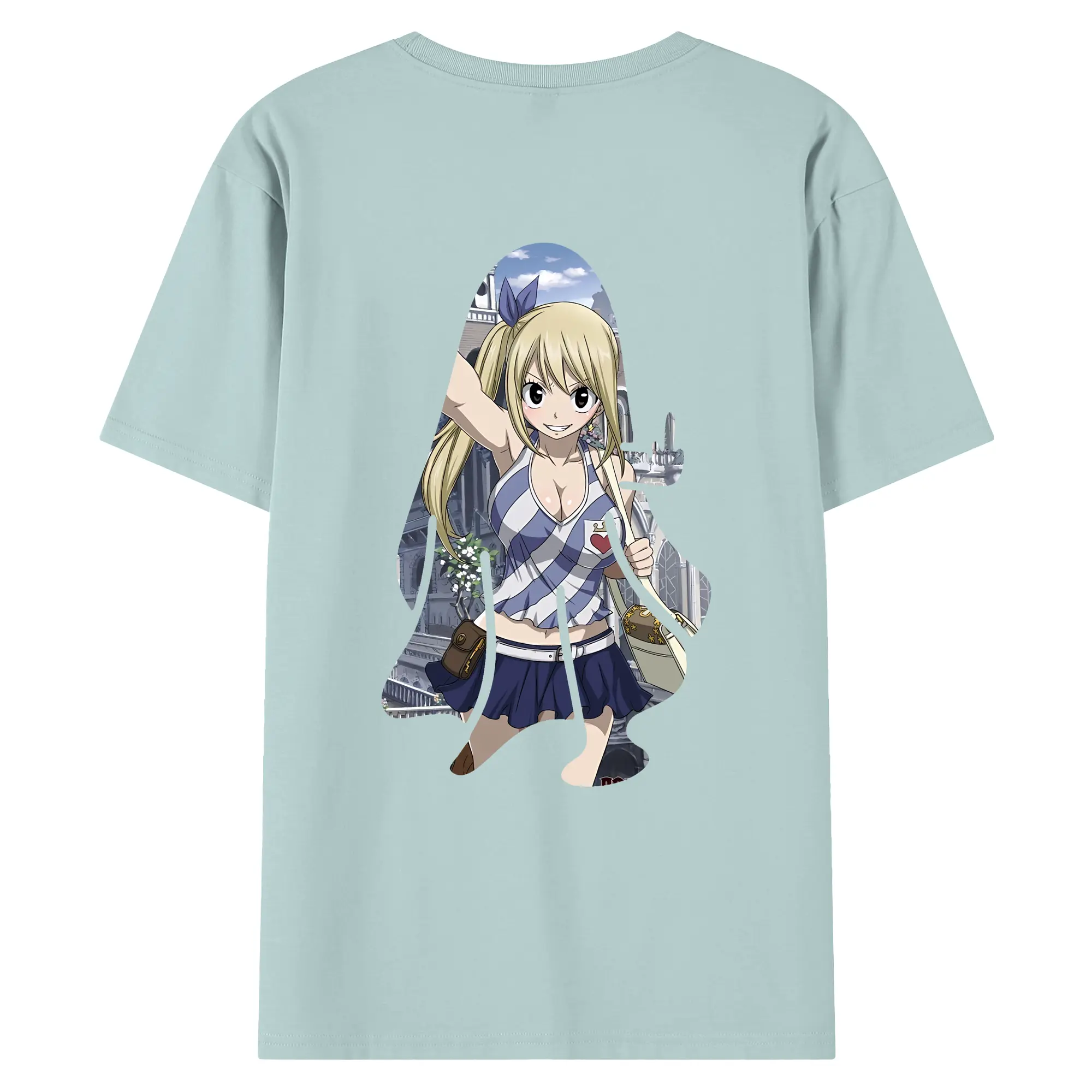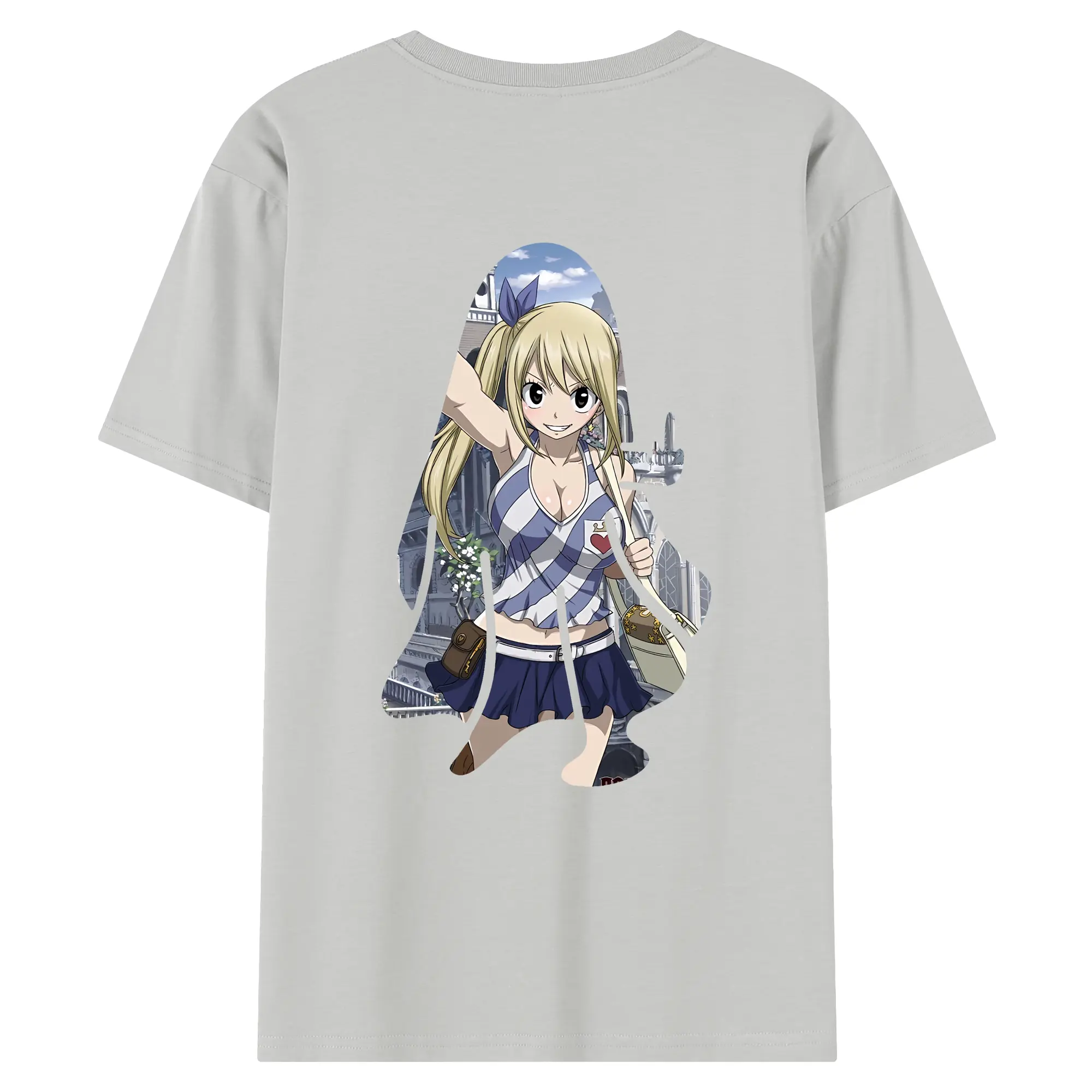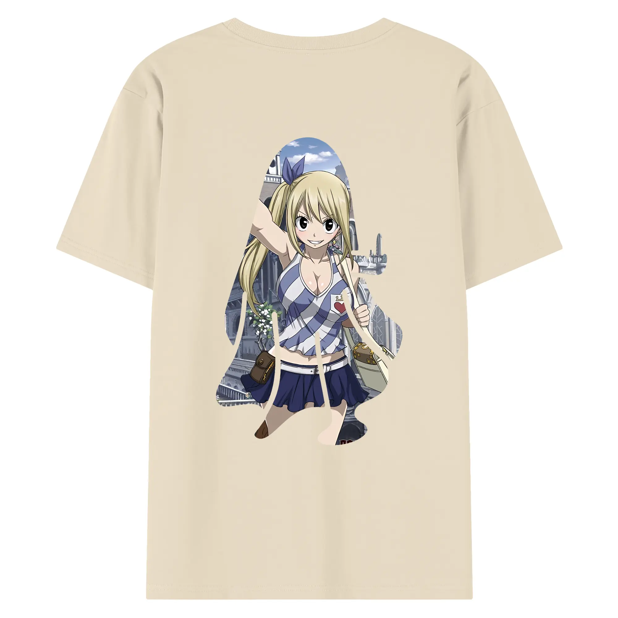 フェアリーテイル グッズ ルーシィ・ハートフィリア - 綿100% ヴィンテージ風 半袖Tシャツ ・ 背面プリント ・ 柔らか肌触り ・ 通気性 快適 ・ スポーツ カジュアル 外出用