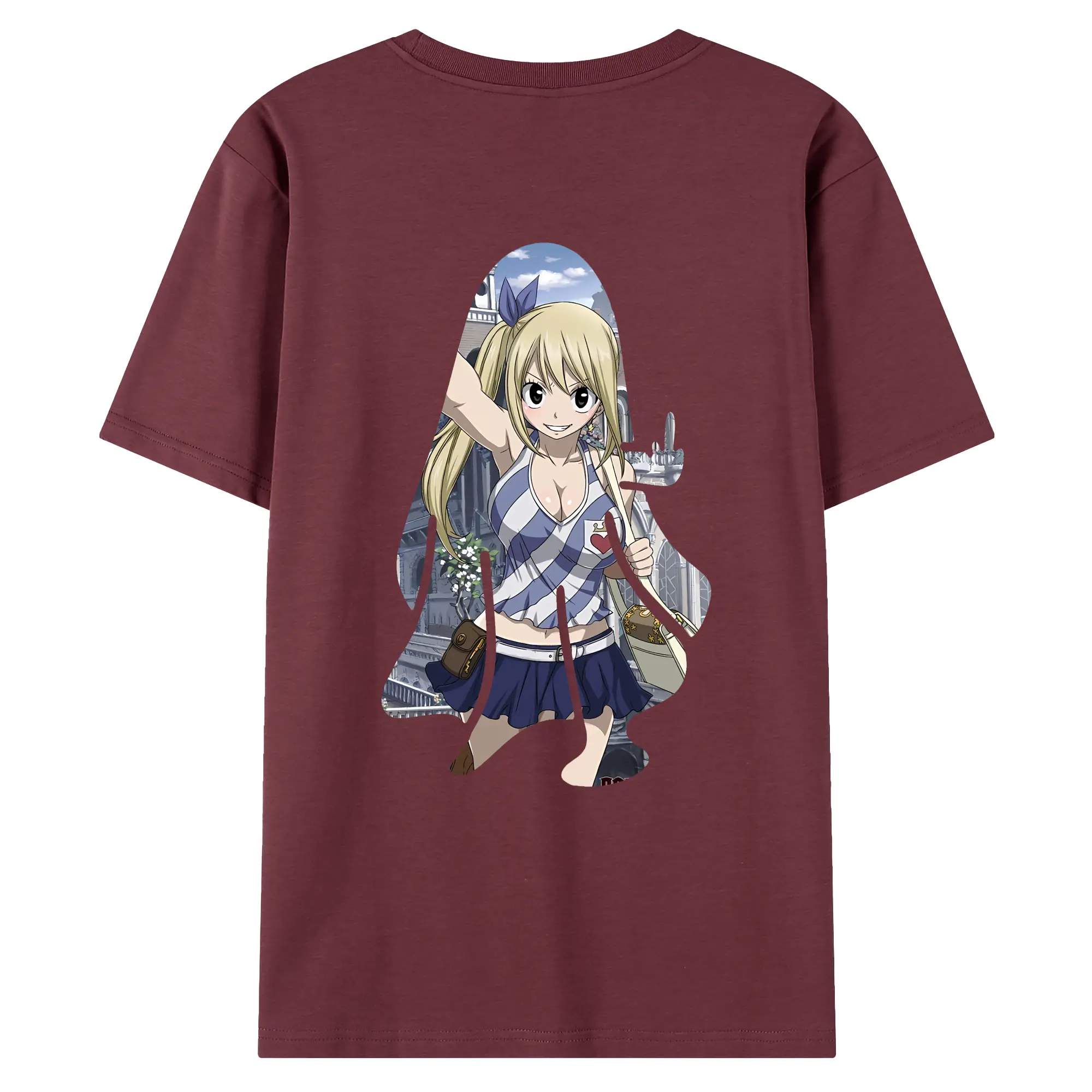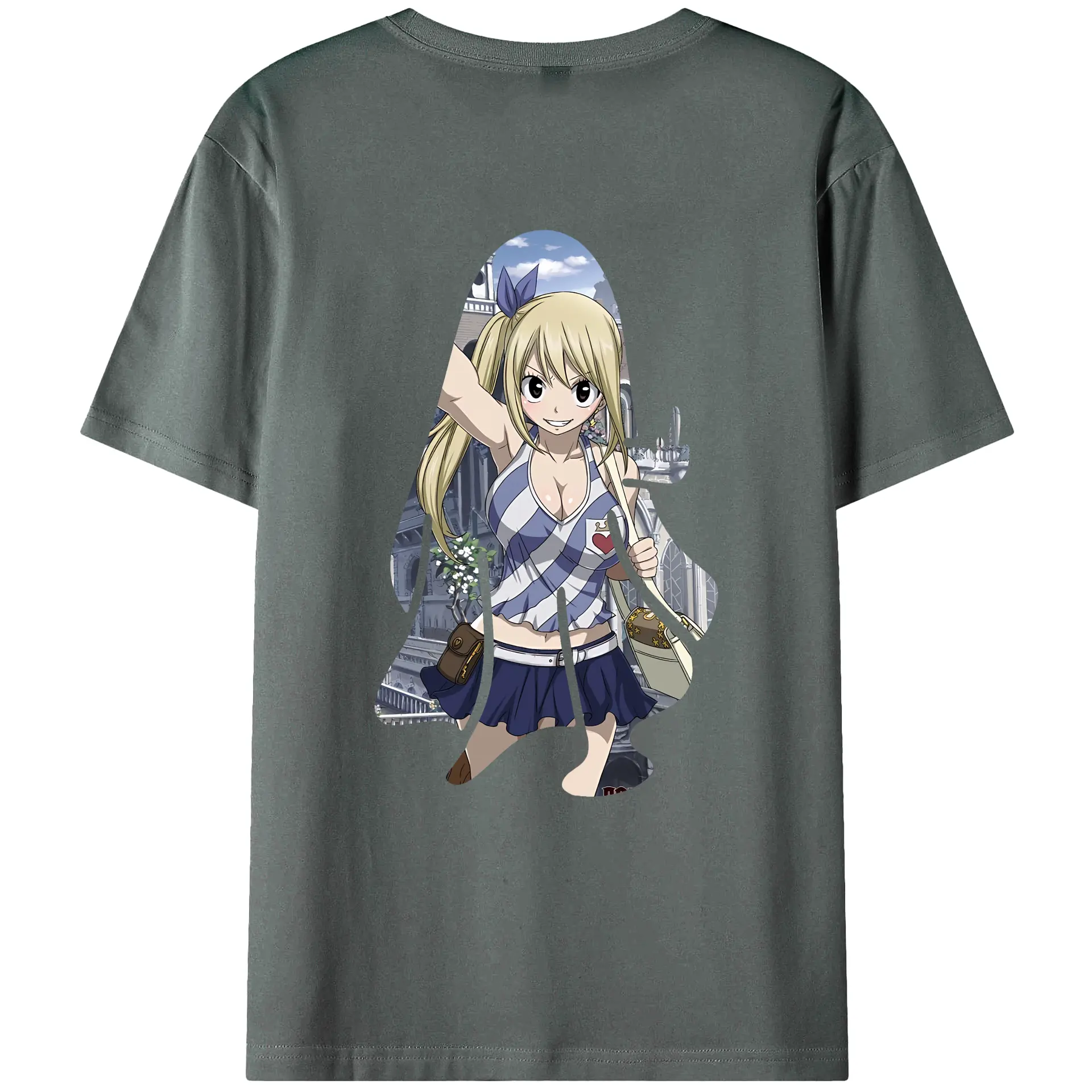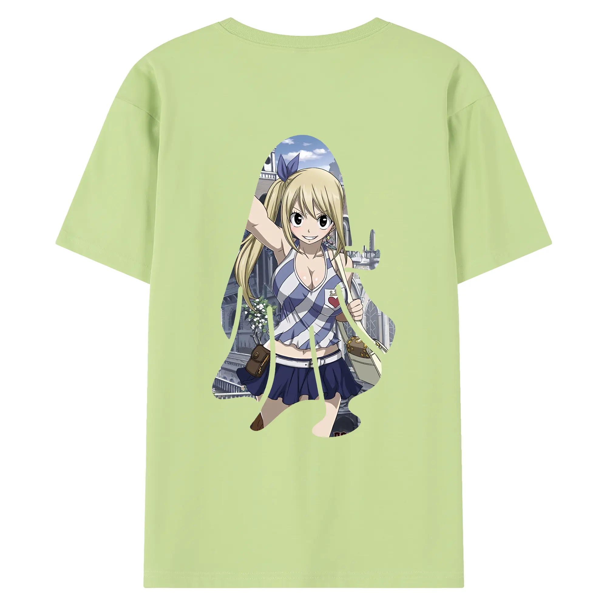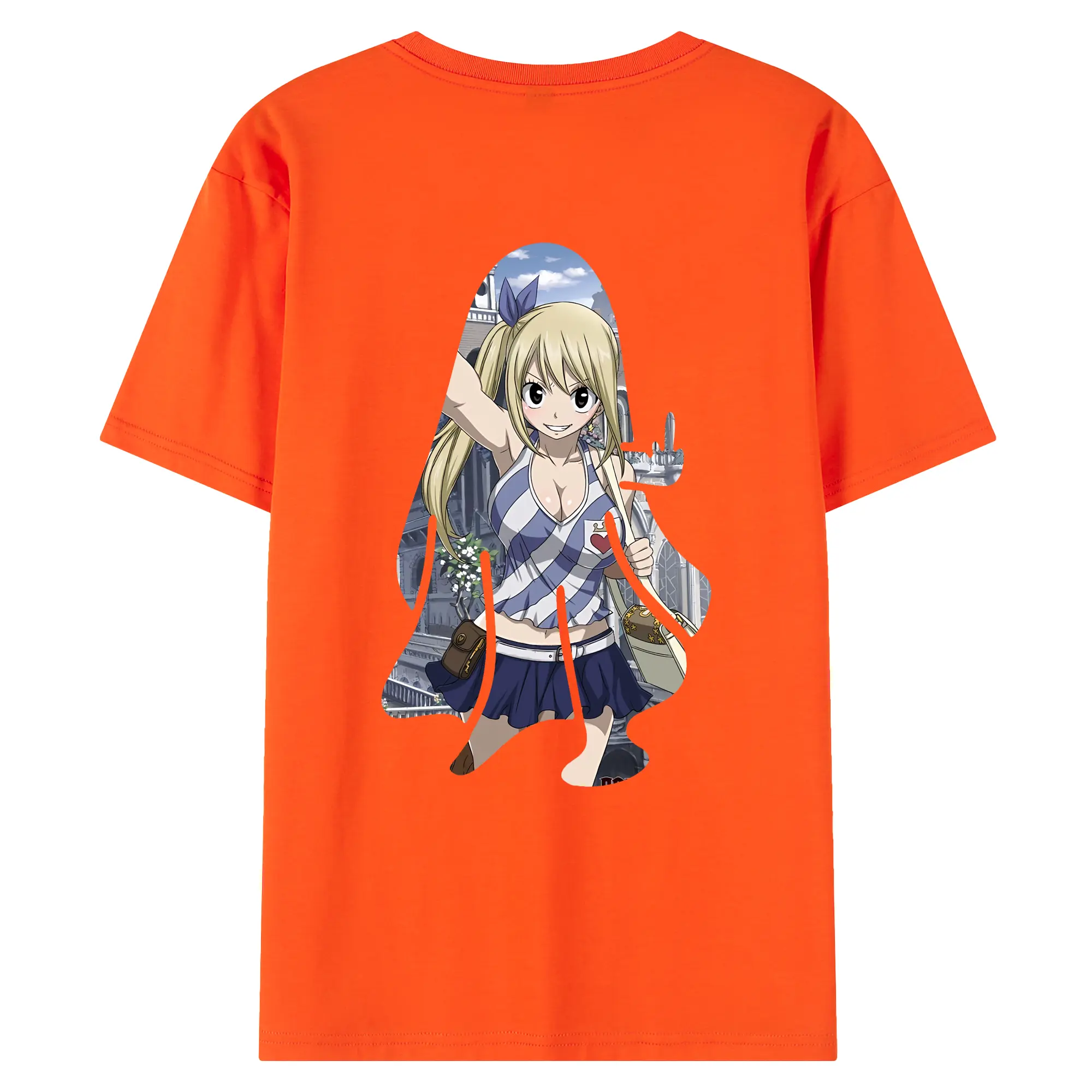 フェアリーテイル グッズ ルーシィ・ハートフィリア - 綿100% ヴィンテージ風 半袖Tシャツ ・ 背面プリント ・ 柔らか肌触り ・ 通気性 快適 ・ スポーツ カジュアル 外出用