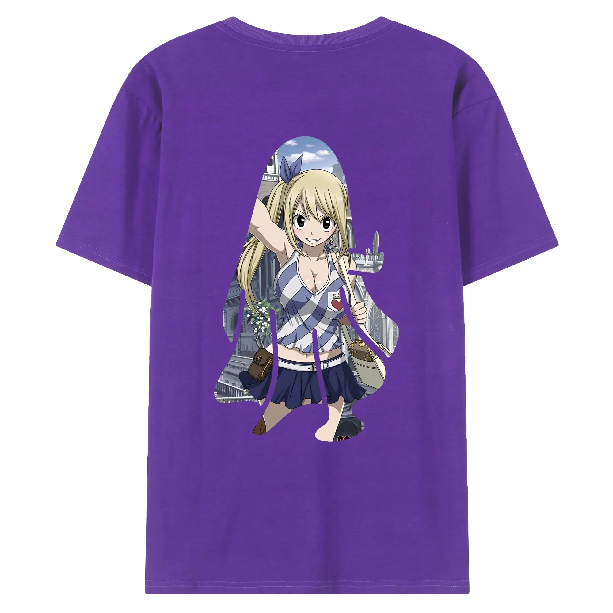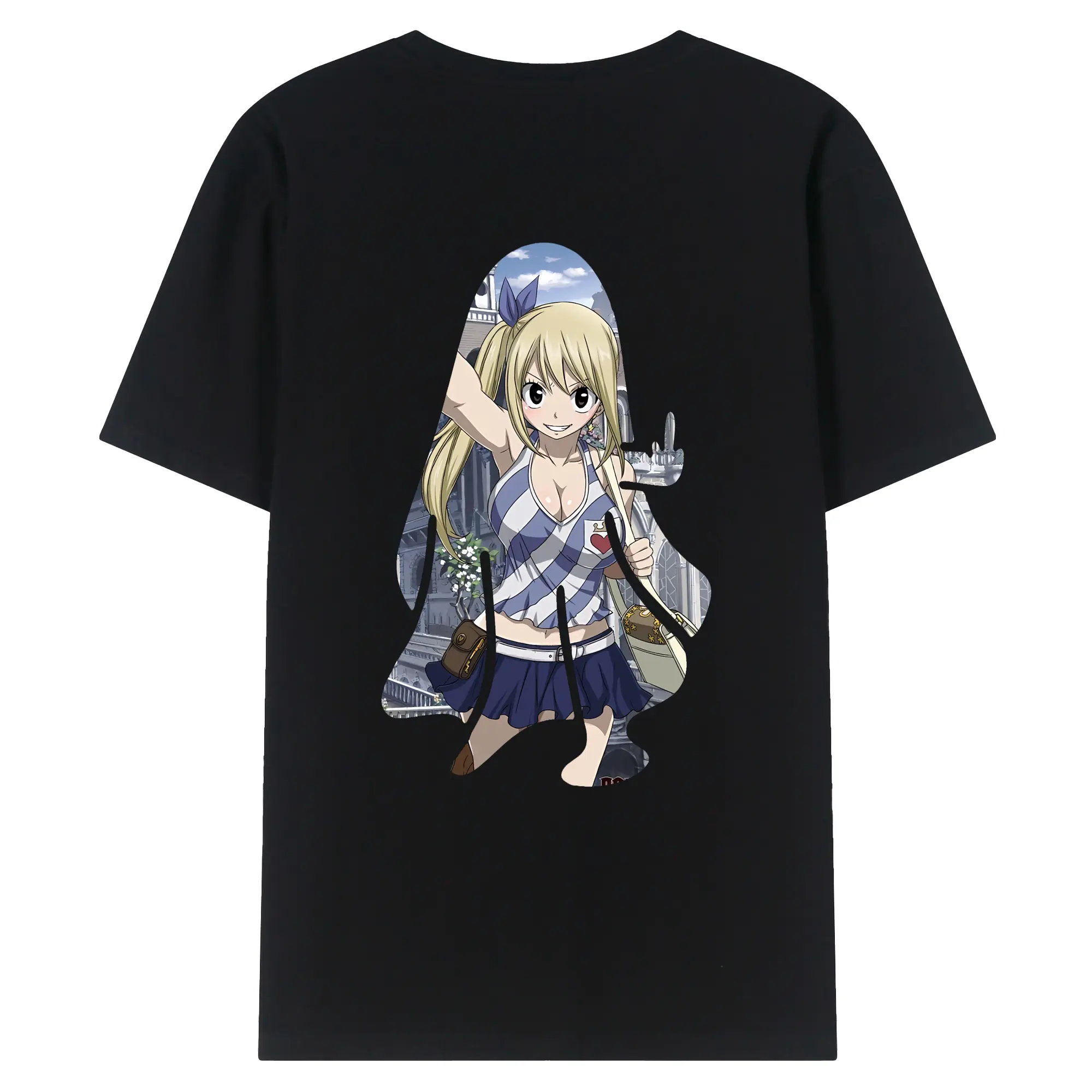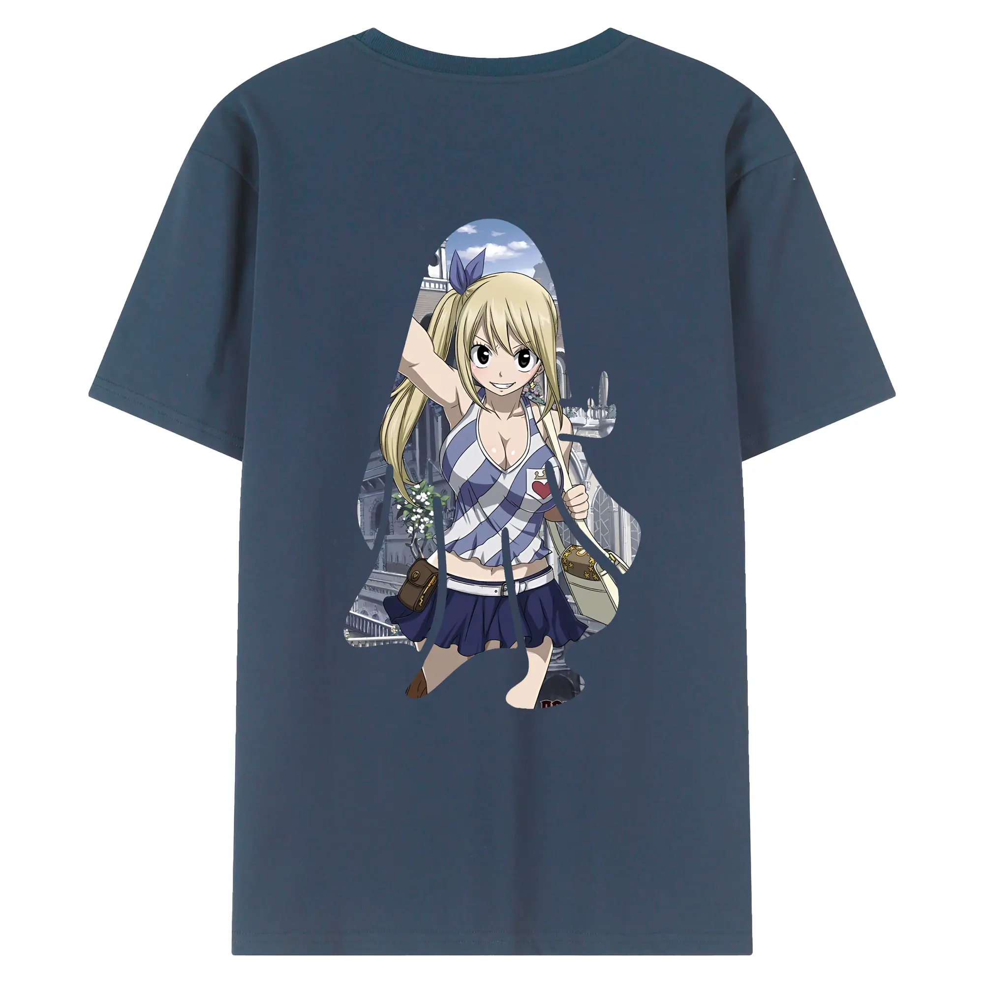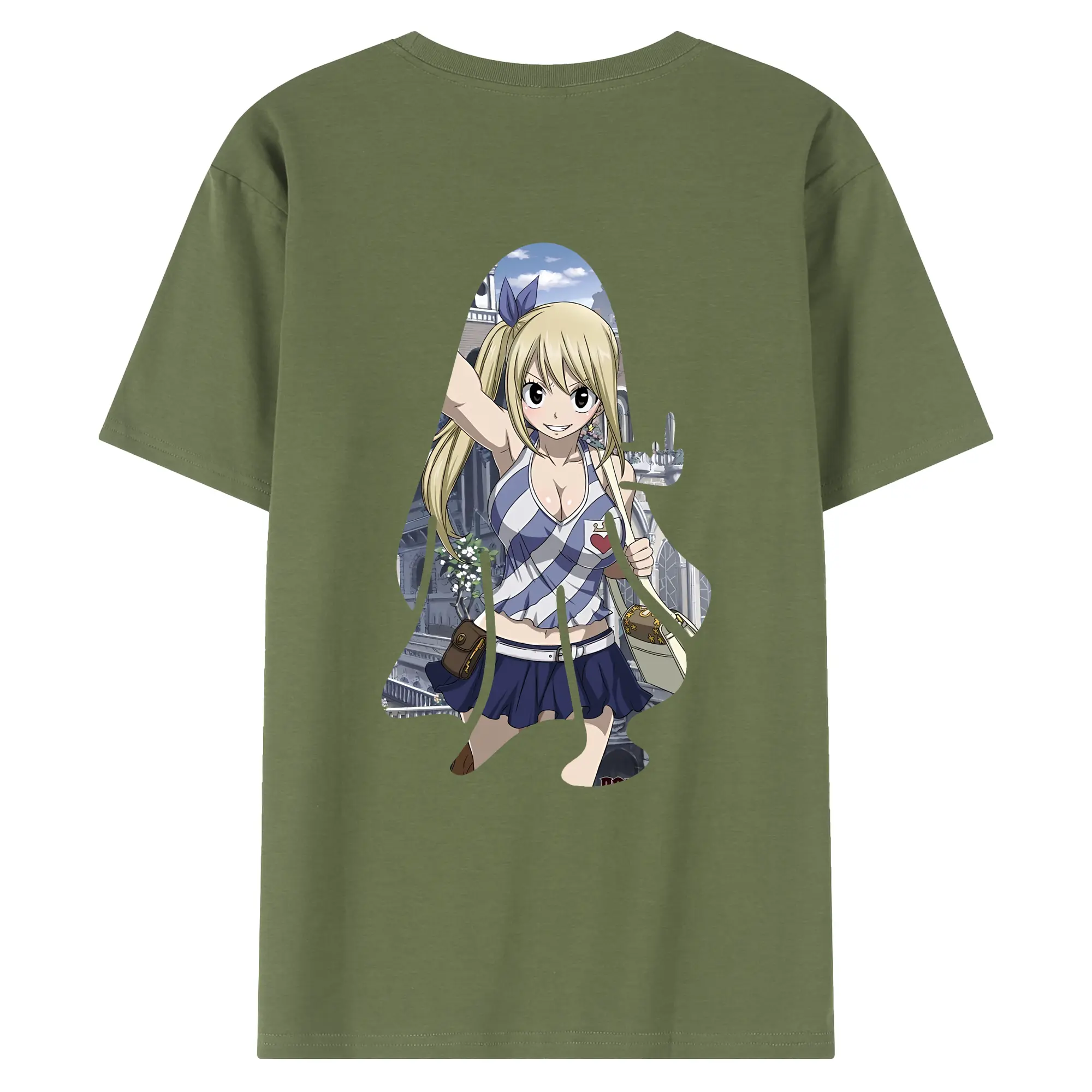 フェアリーテイル グッズ ルーシィ・ハートフィリア - 綿100% ヴィンテージ風 半袖Tシャツ ・ 背面プリント ・ 柔らか肌触り ・ 通気性 快適 ・ スポーツ カジュアル 外出用