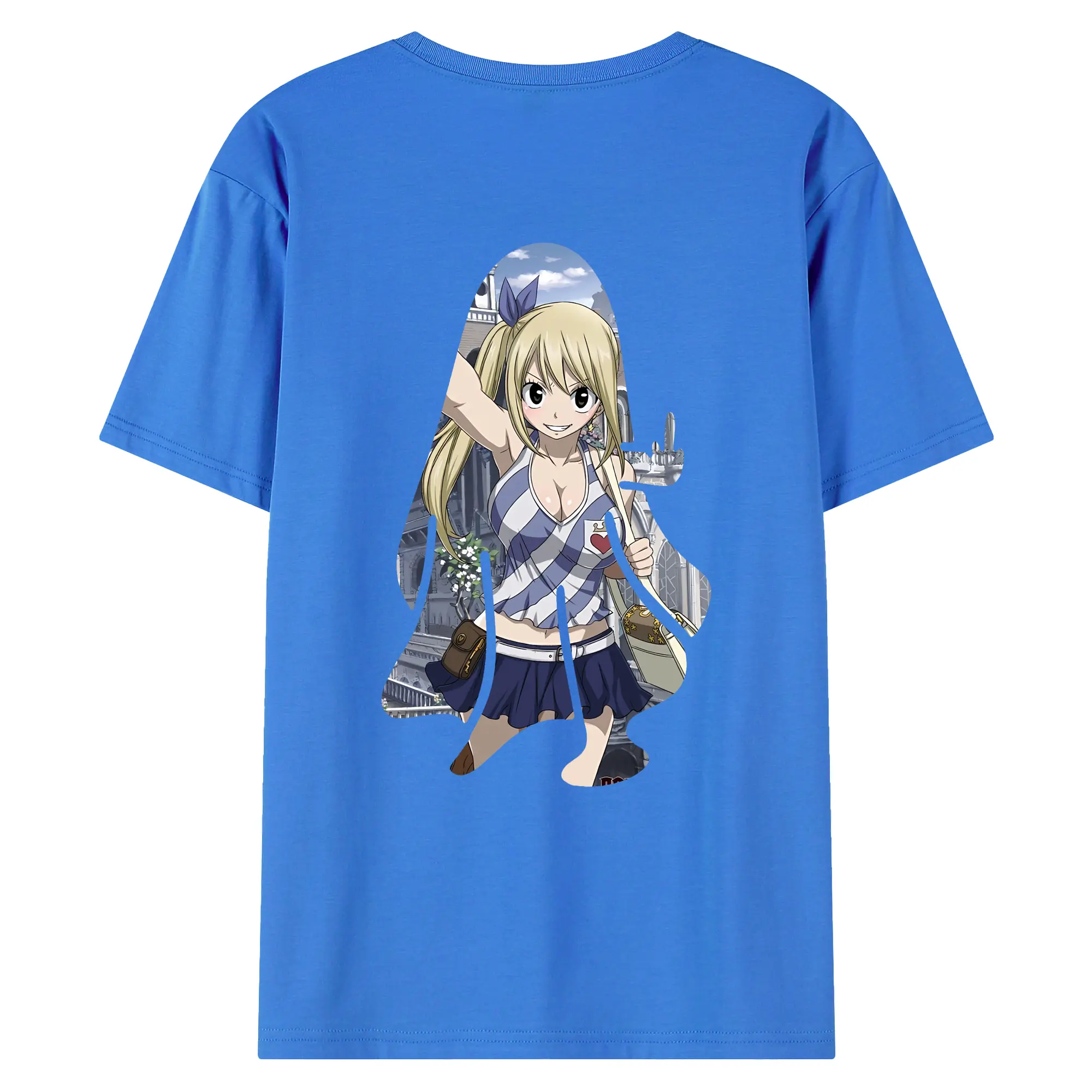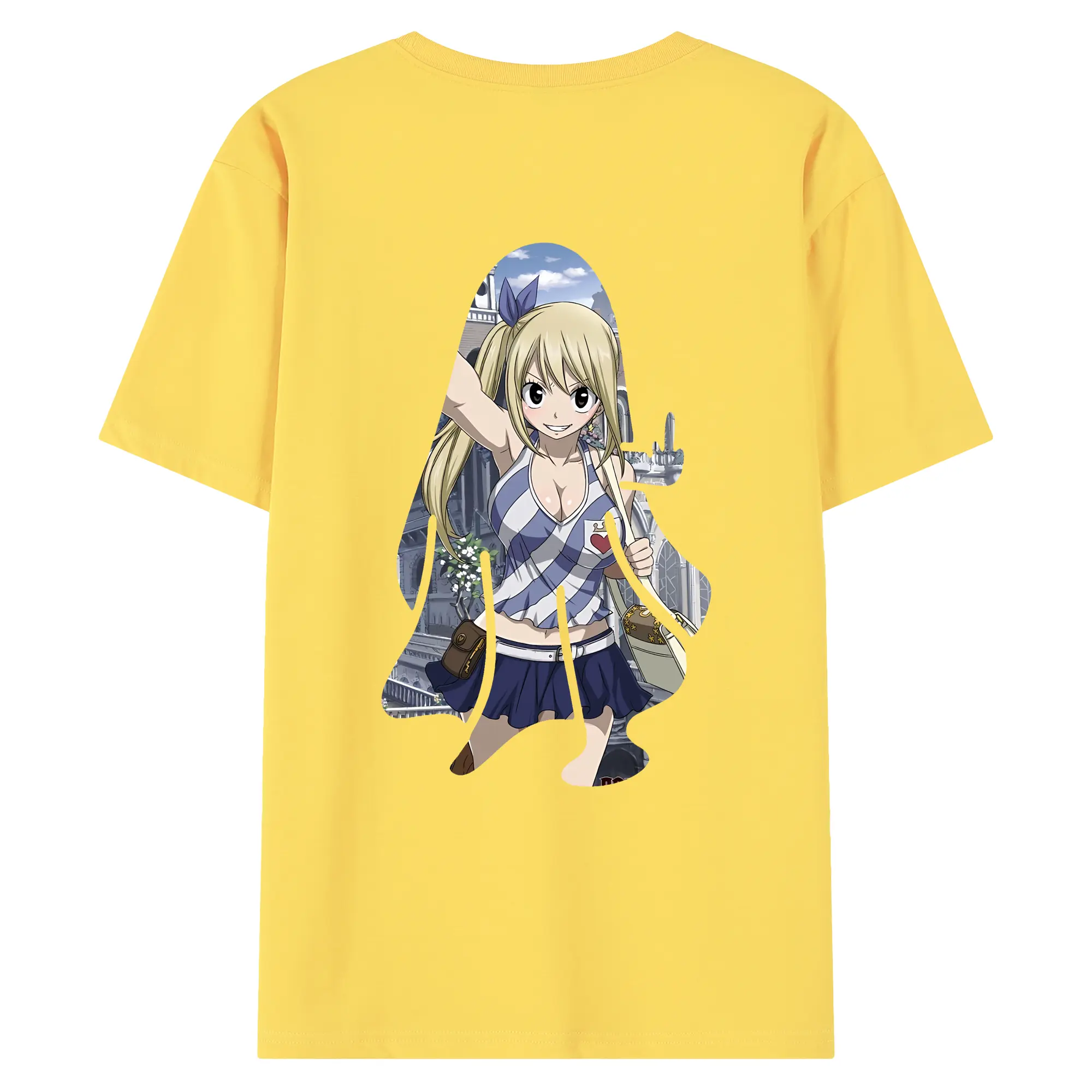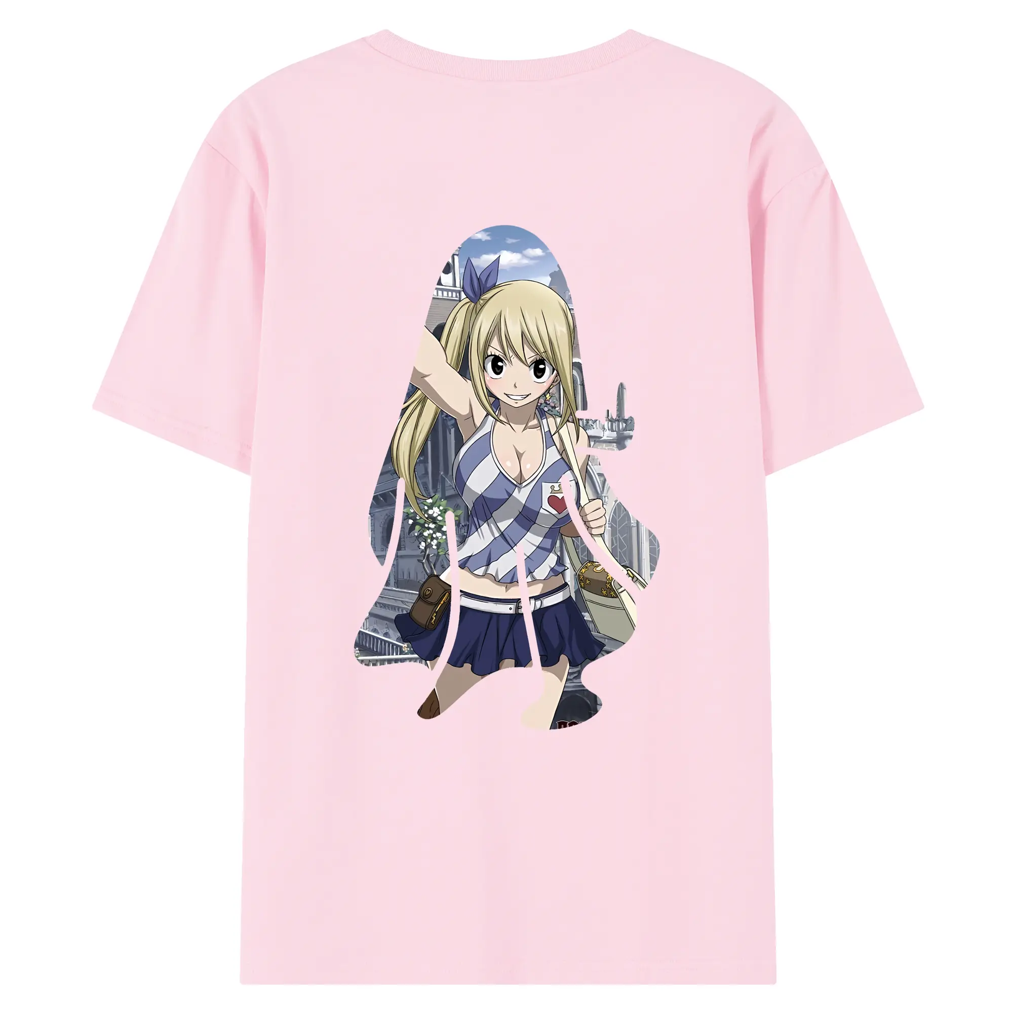 フェアリーテイル グッズ ルーシィ・ハートフィリア - 綿100% 半袖Tシャツ ・ フロントプリント ・ 快適 通気性 ・ 日常使い 散歩 スポーツ用