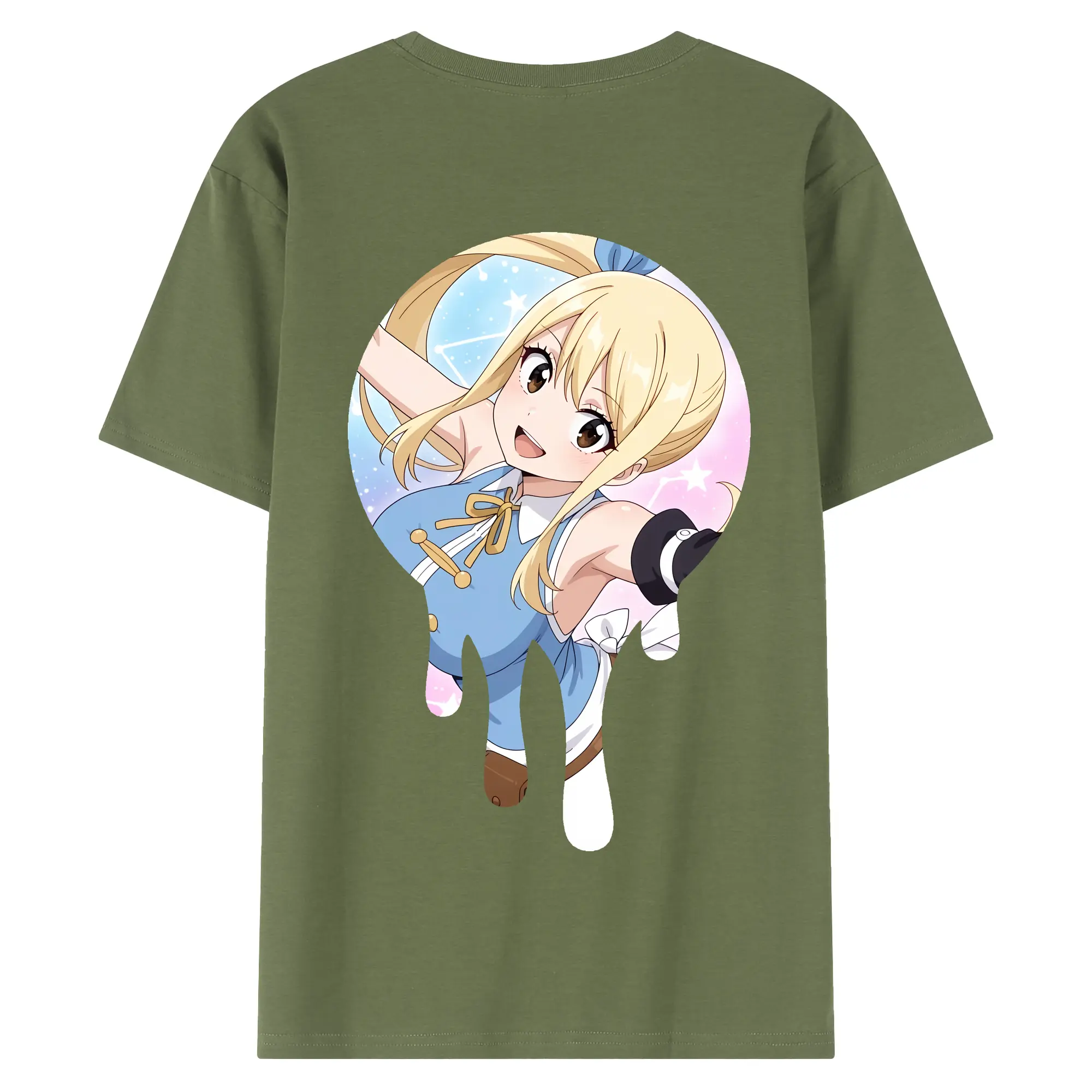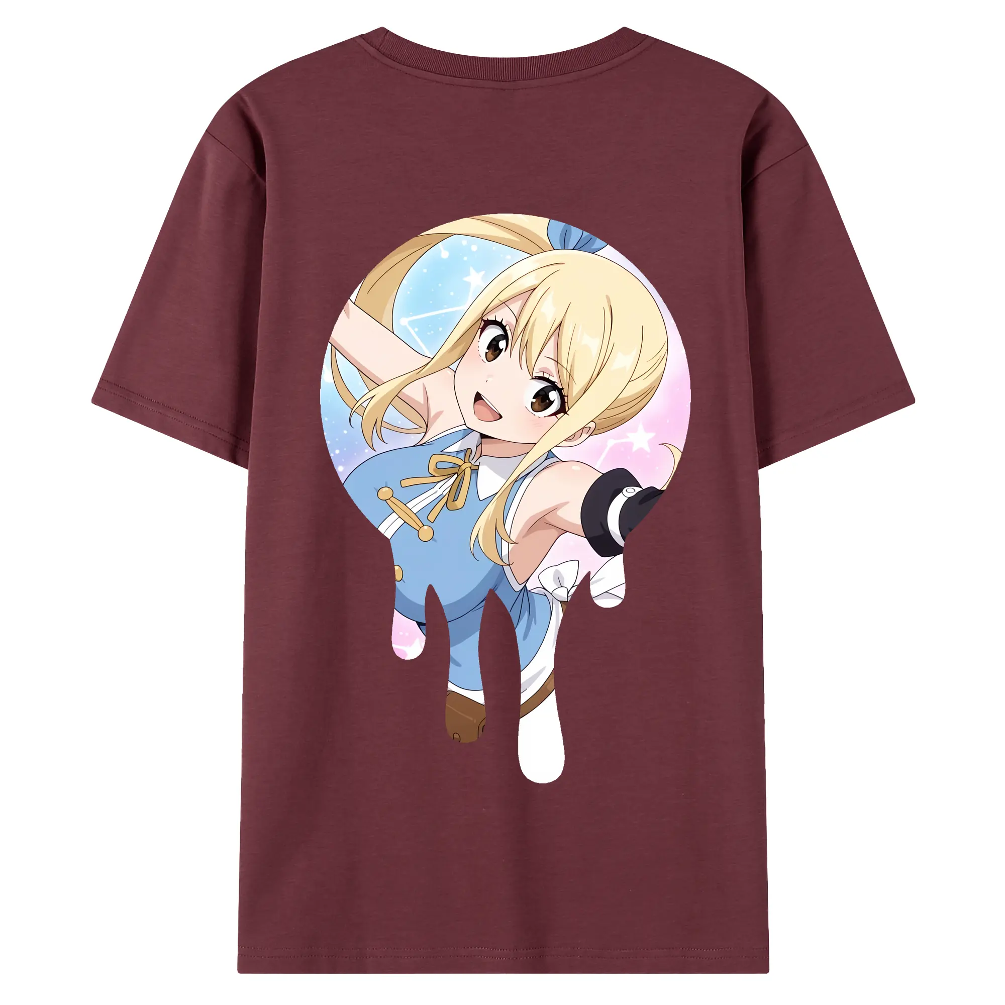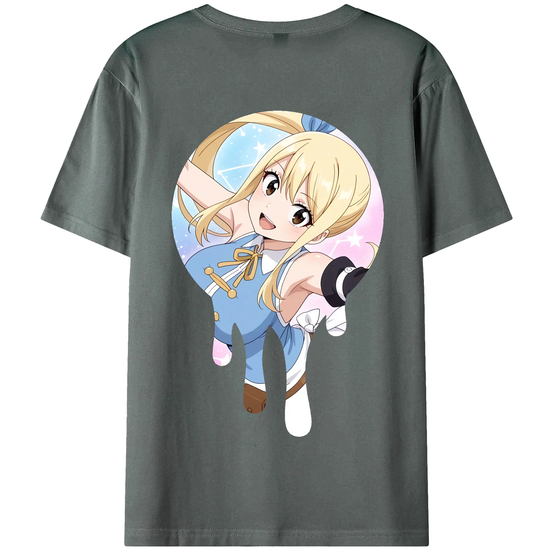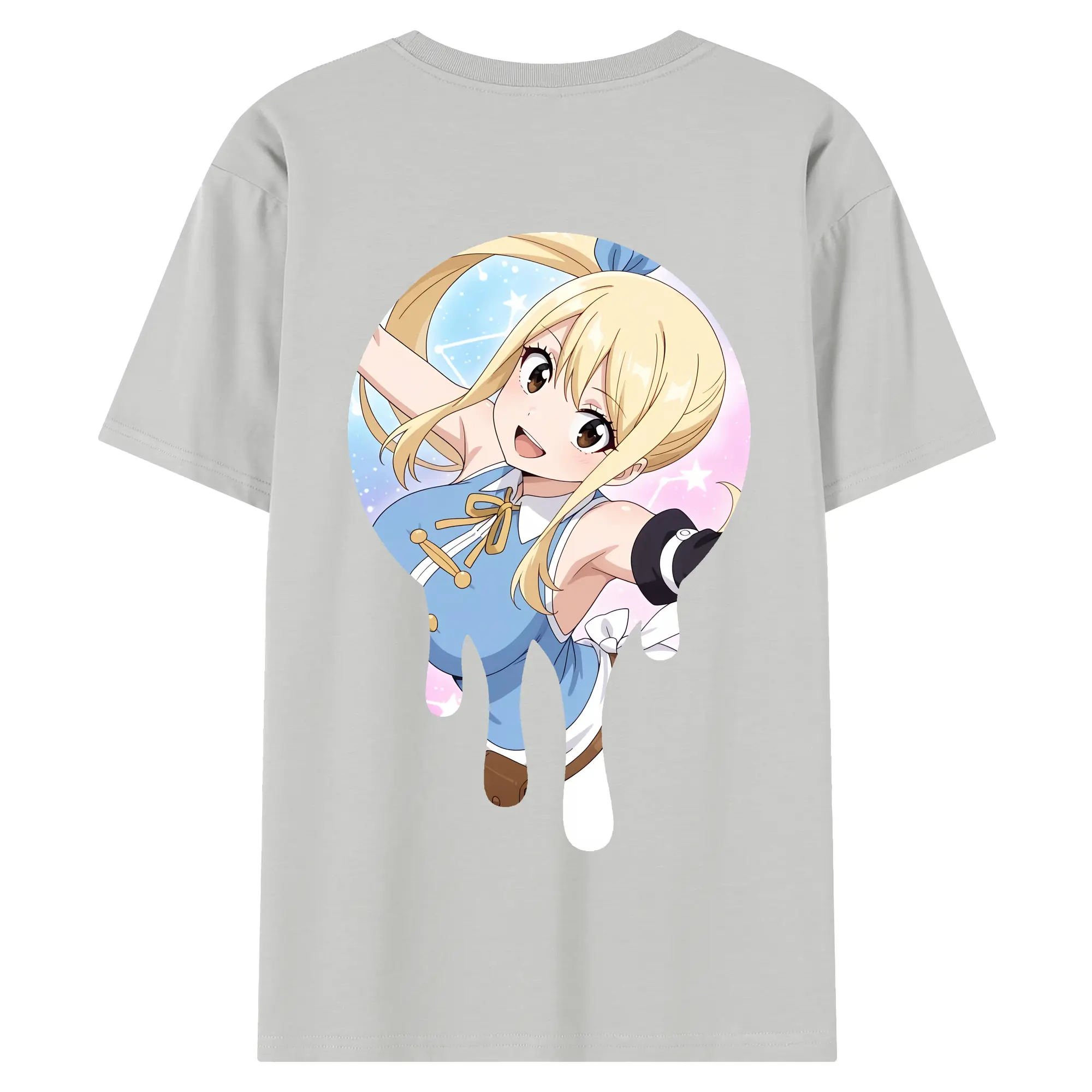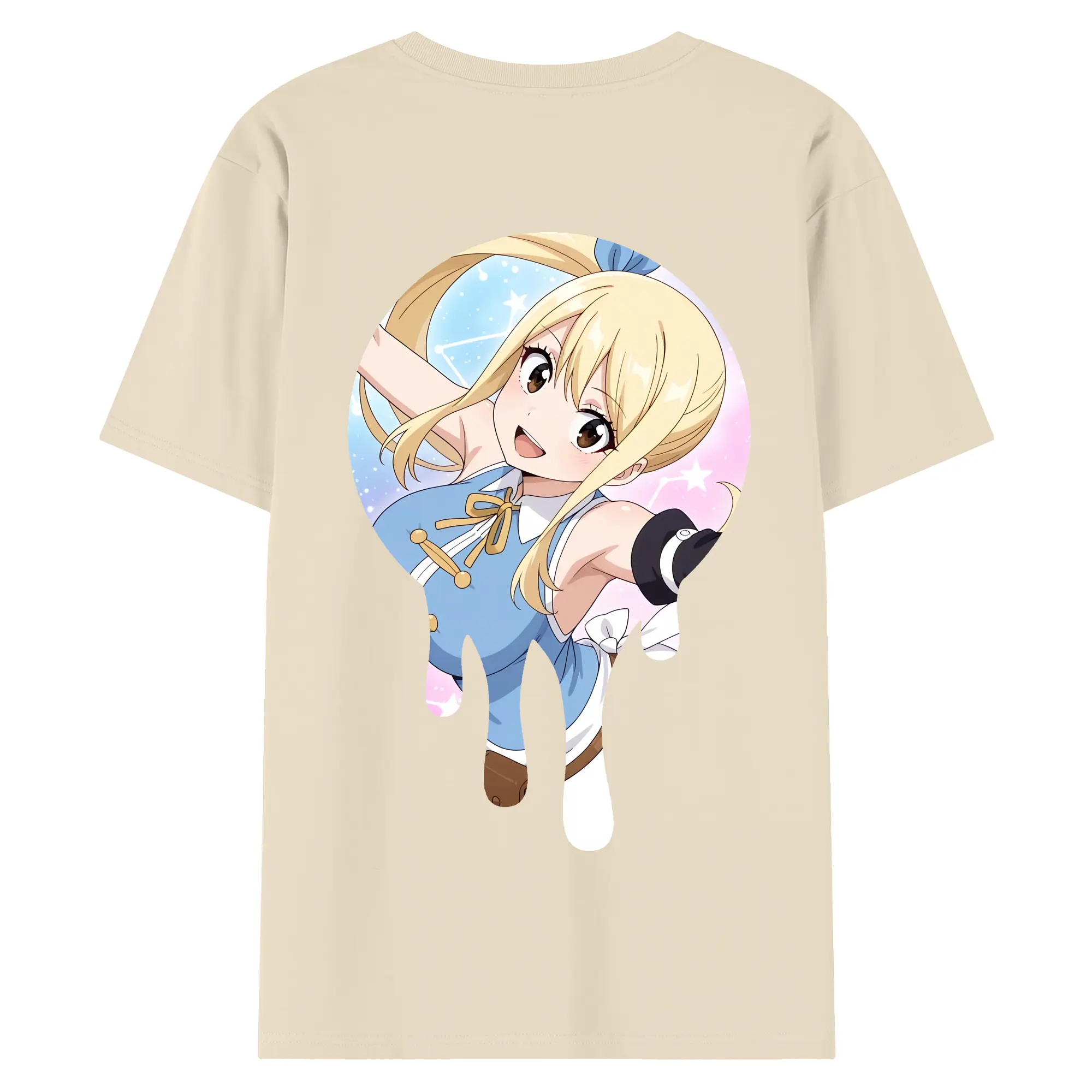 フェアリーテイル グッズ ルーシィ・ハートフィリア - 綿100% ヴィンテージ風 半袖Tシャツ ・ 背面プリント ・ 柔らか肌触り ・ 通気性 快適 ・ スポーツ カジュアル 外出用