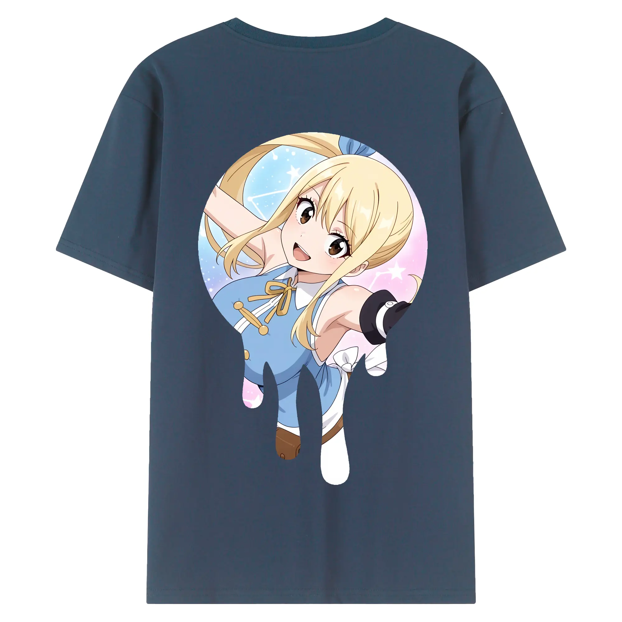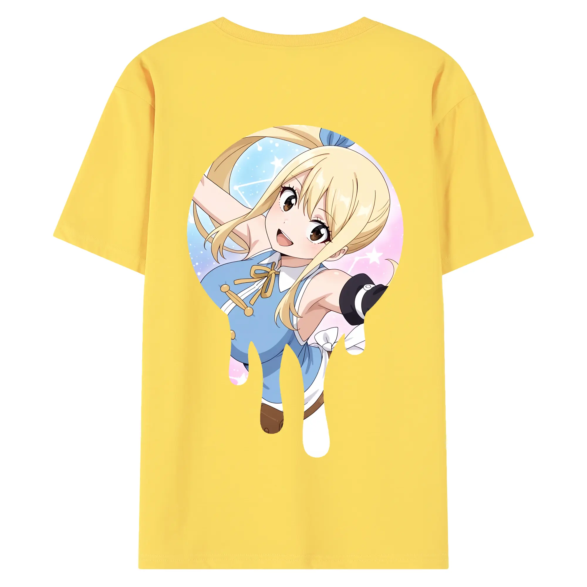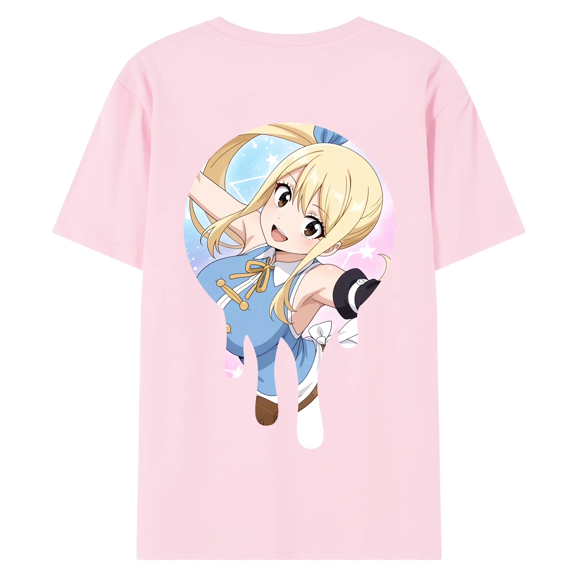 フェアリーテイル グッズ ルーシィ・ハートフィリア - 綿100% 半袖Tシャツ ・ フロントプリント ・ 快適 通気性 ・ 日常使い 散歩 スポーツ用