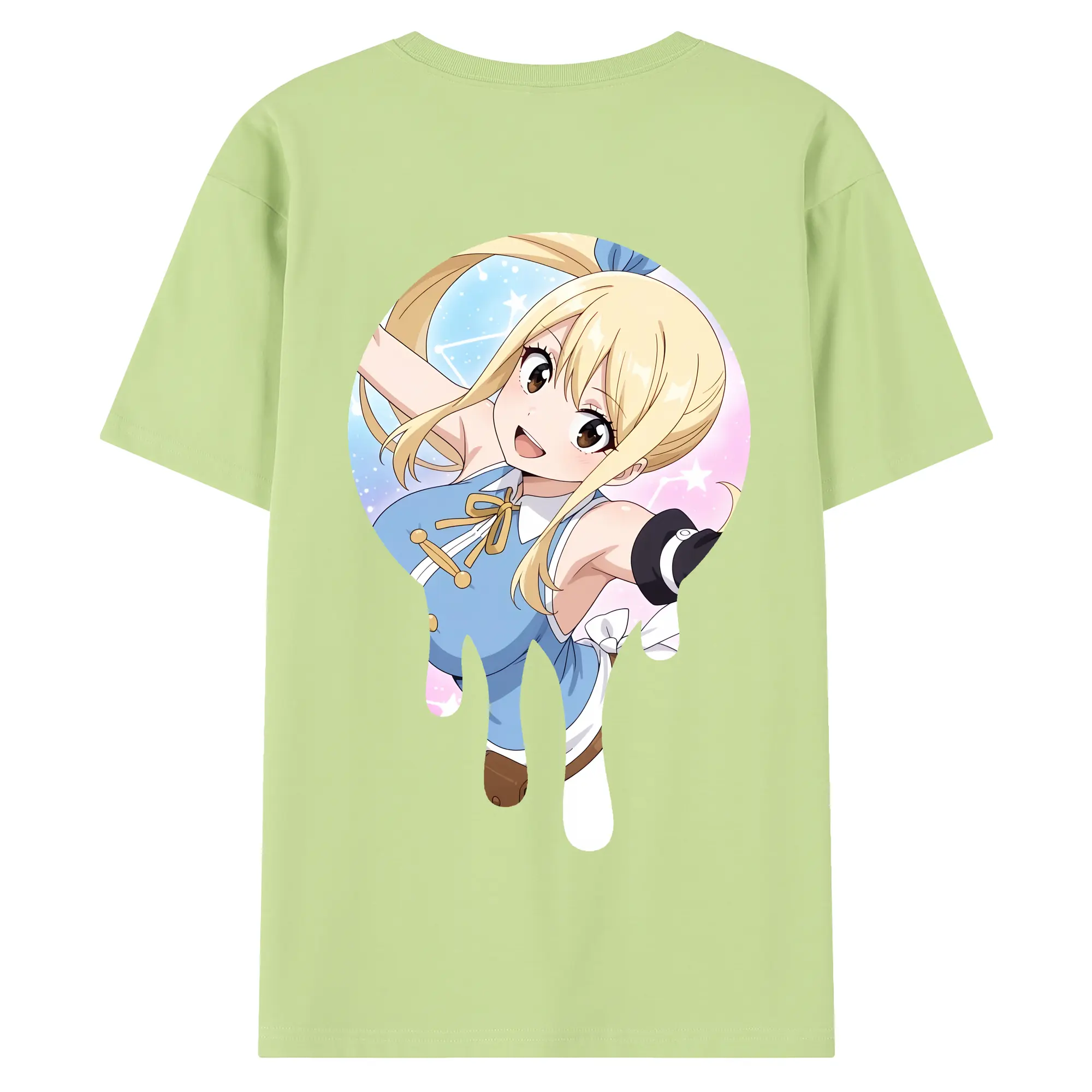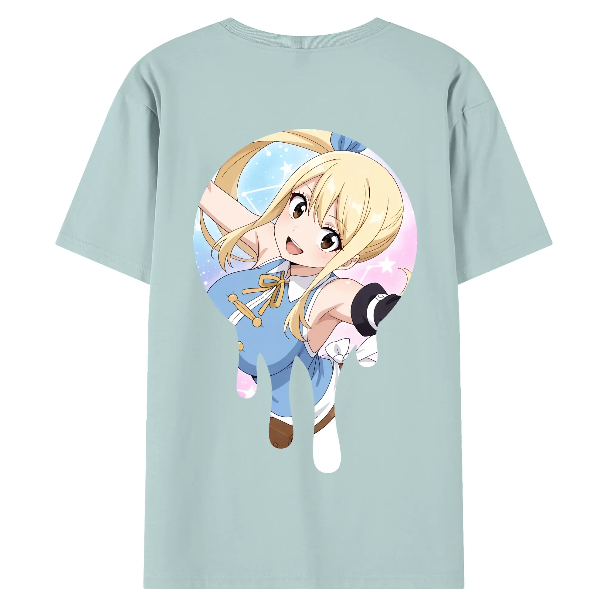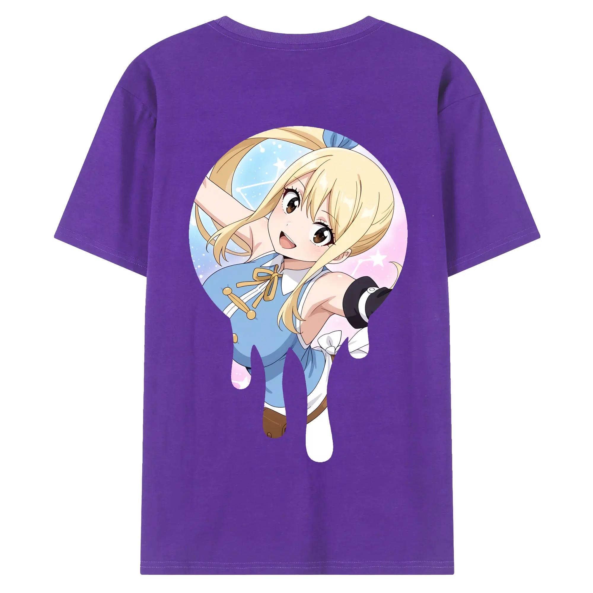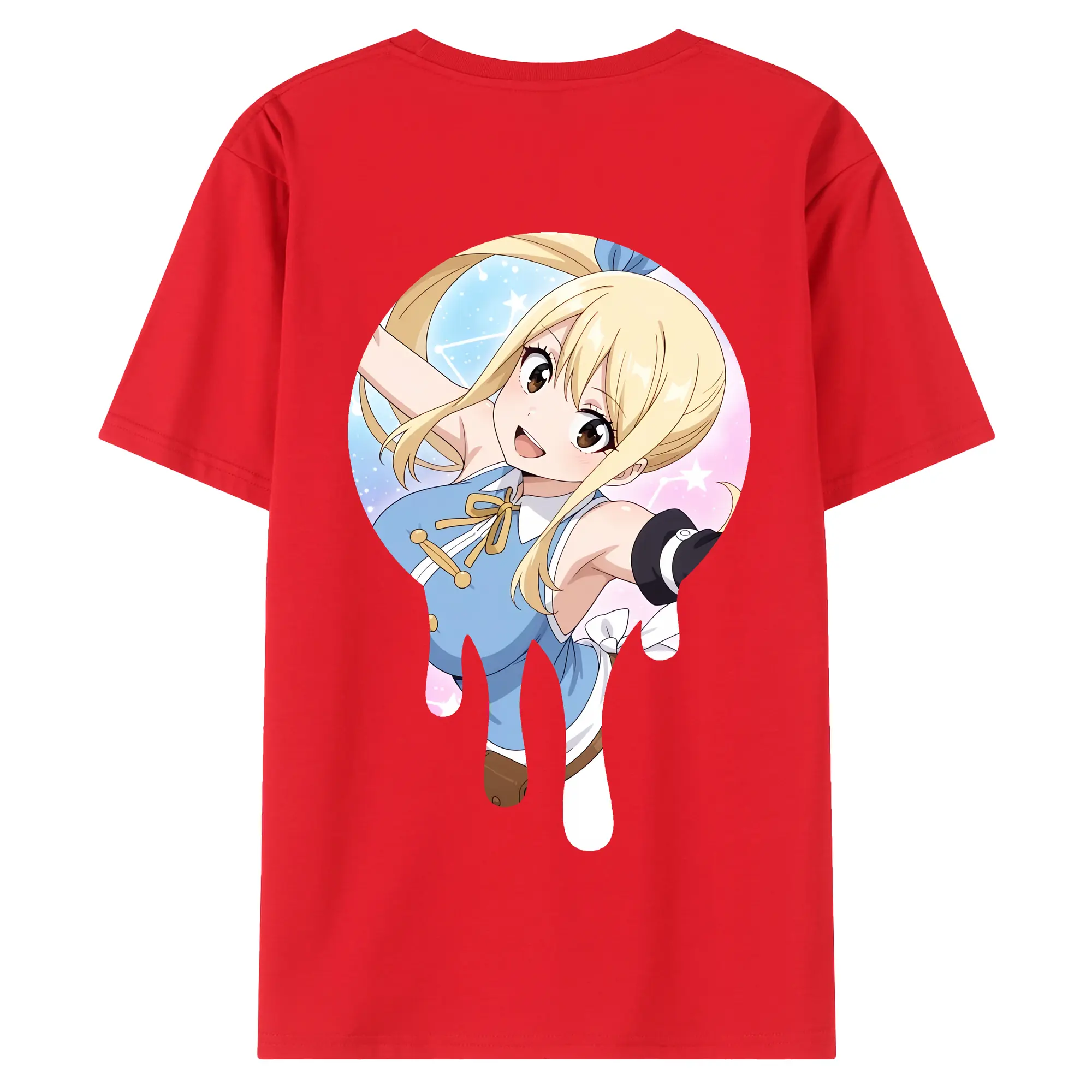 フェアリーテイル グッズ ルーシィ・ハートフィリア - 綿100% 半袖Tシャツ ・ フロントプリント ・ 快適 通気性 ・ 日常使い 散歩 スポーツ用