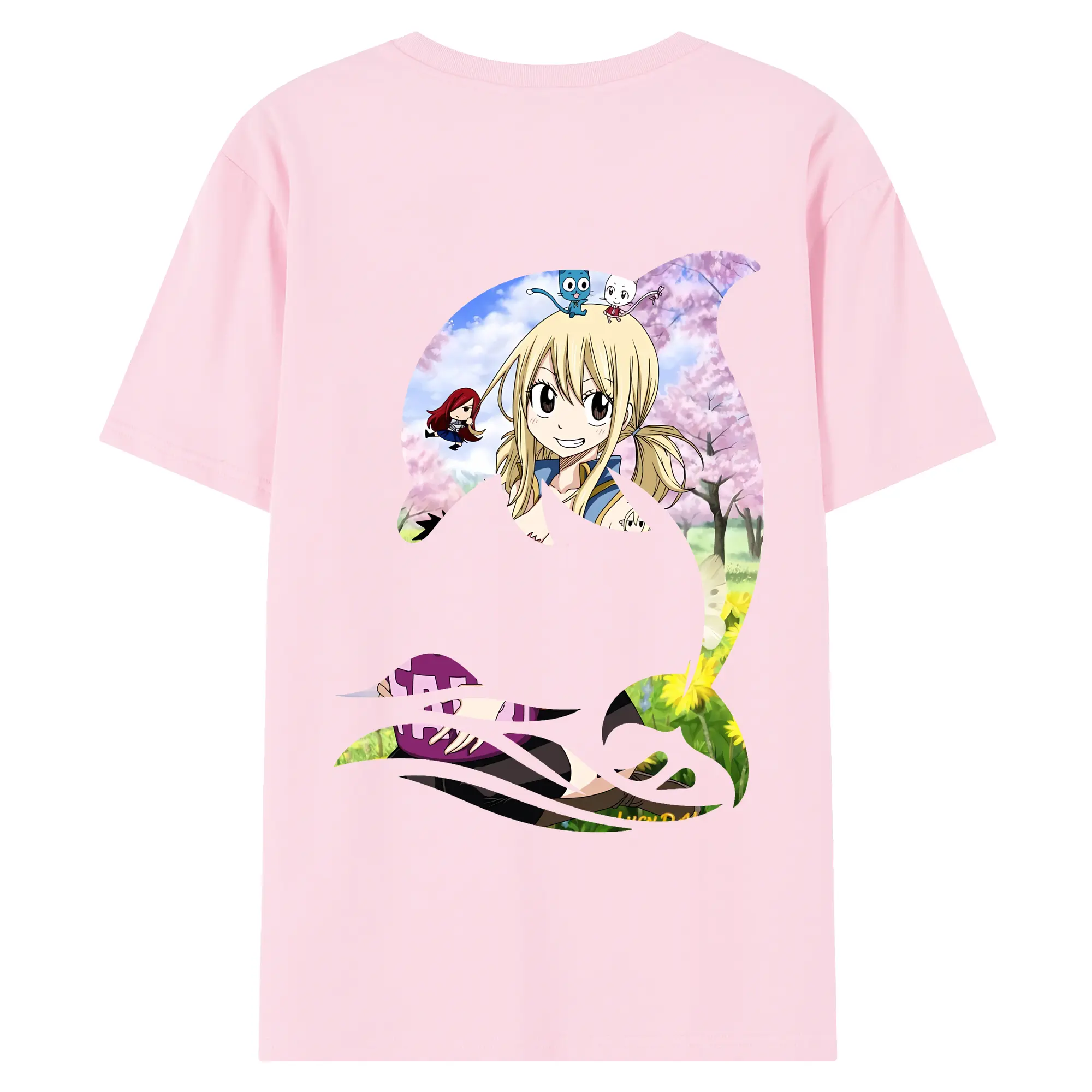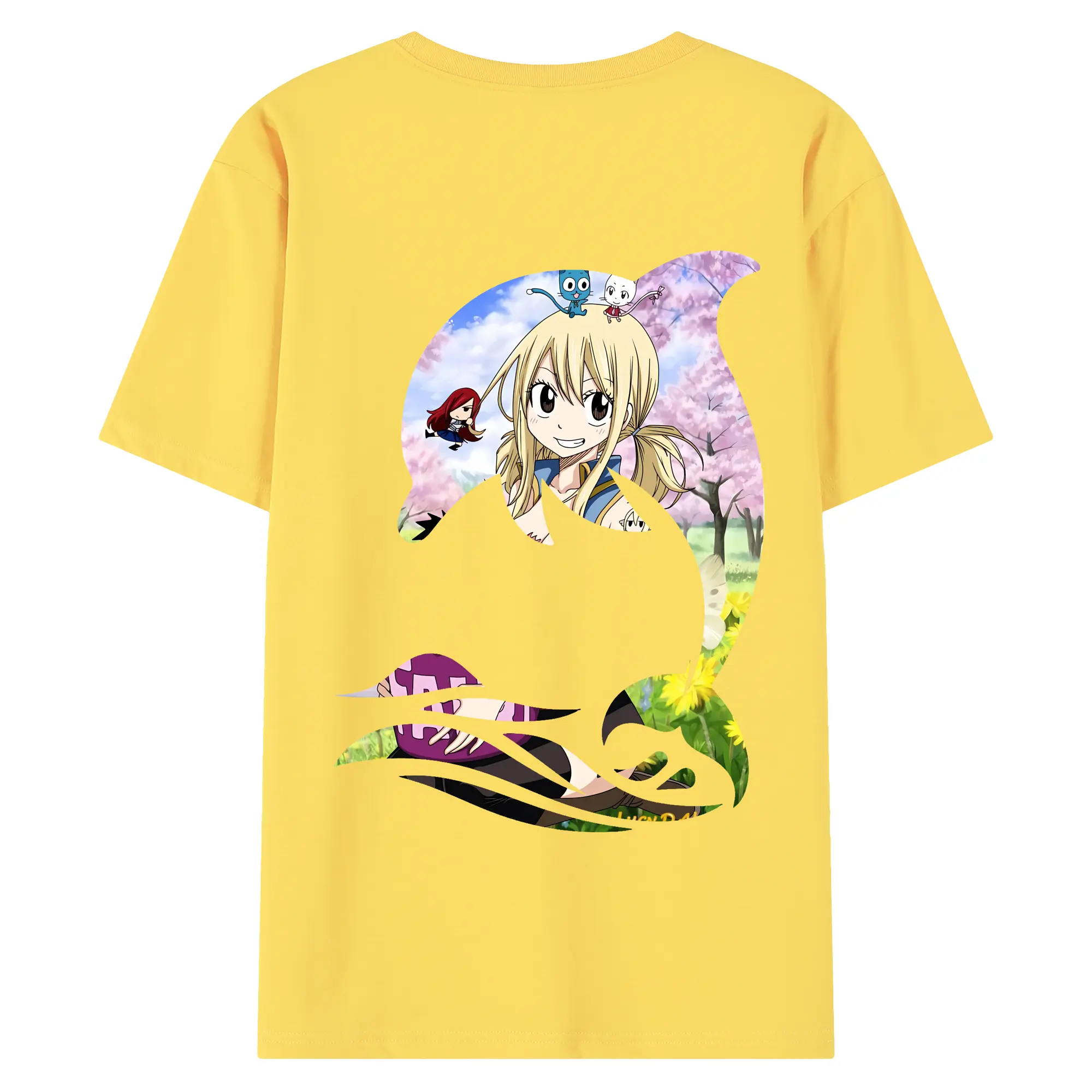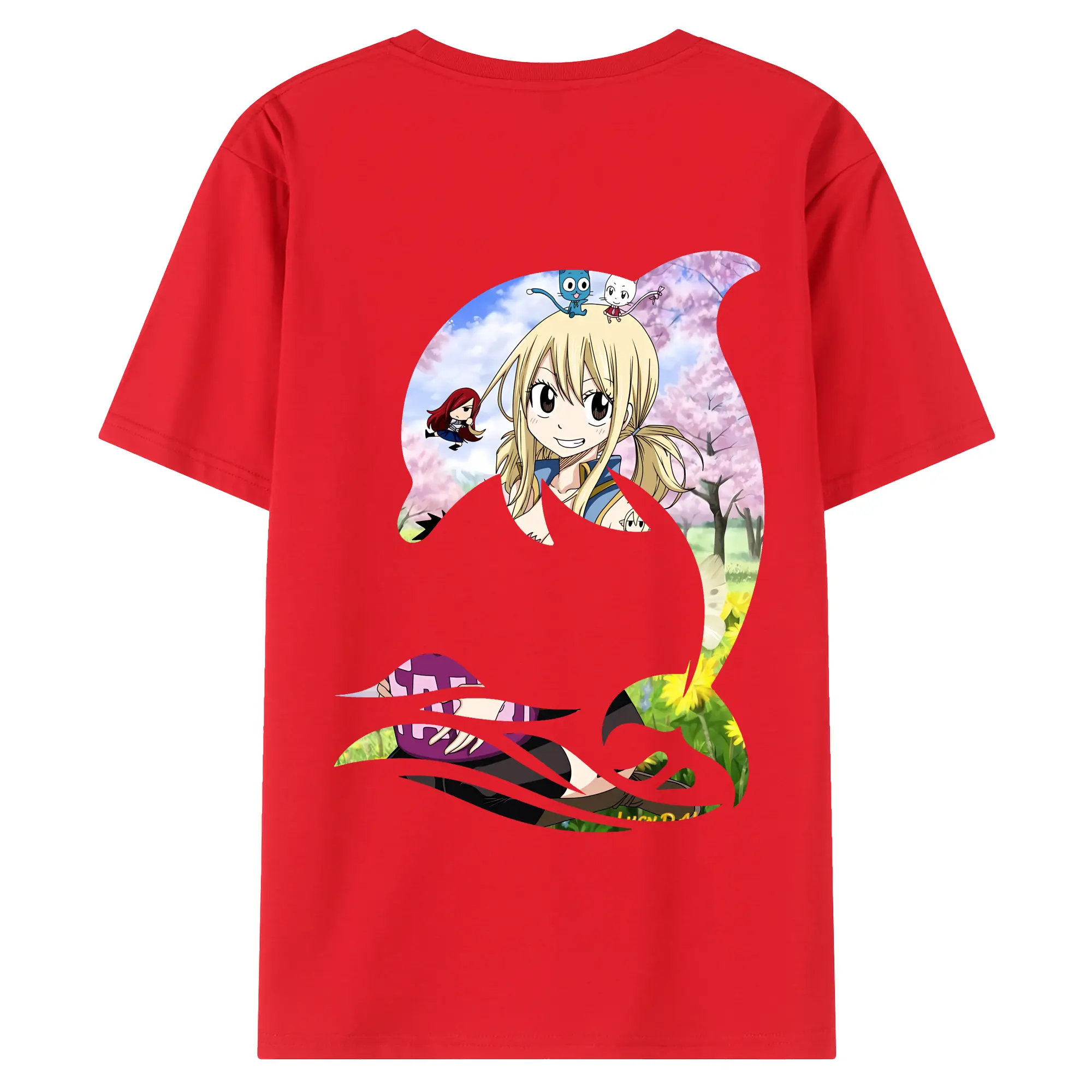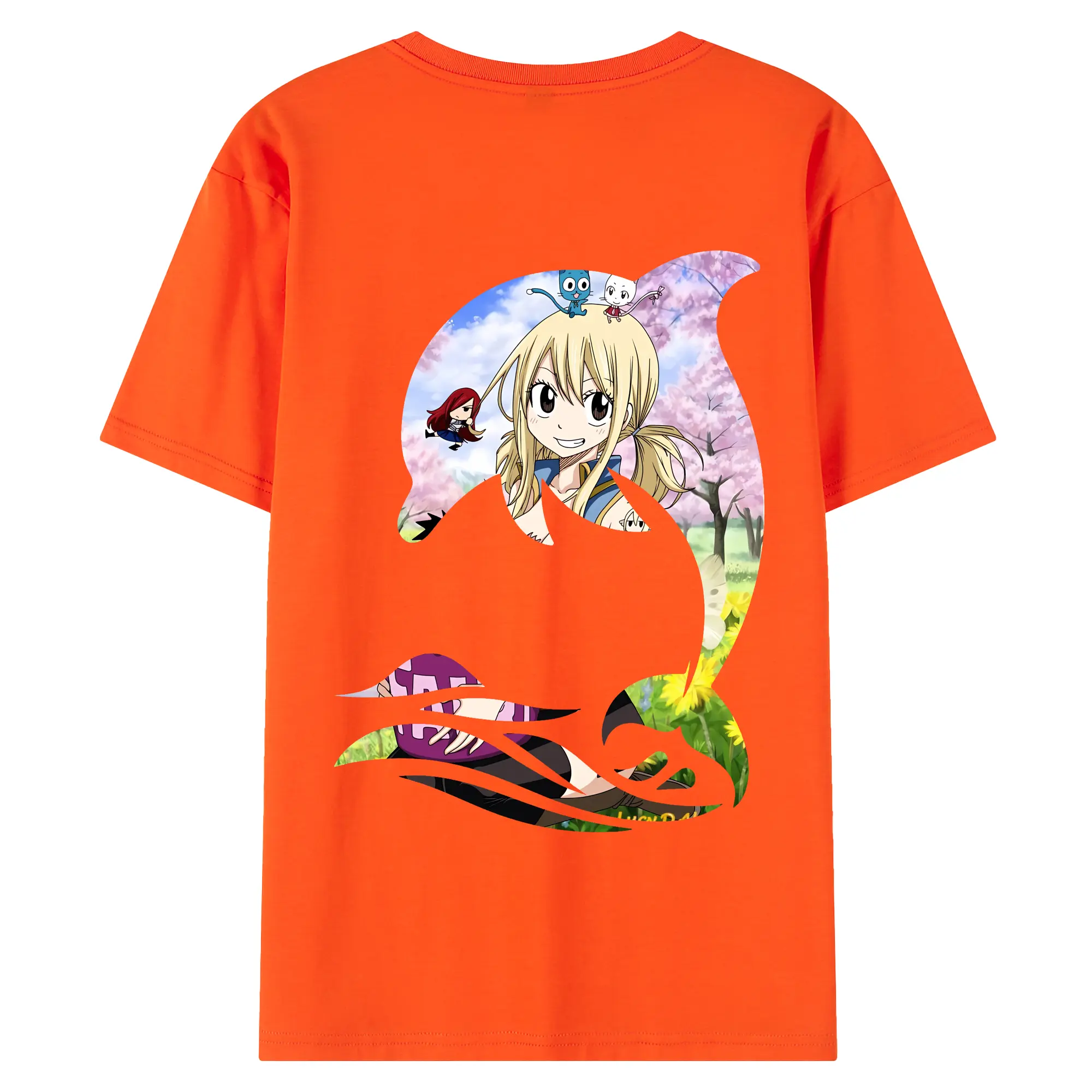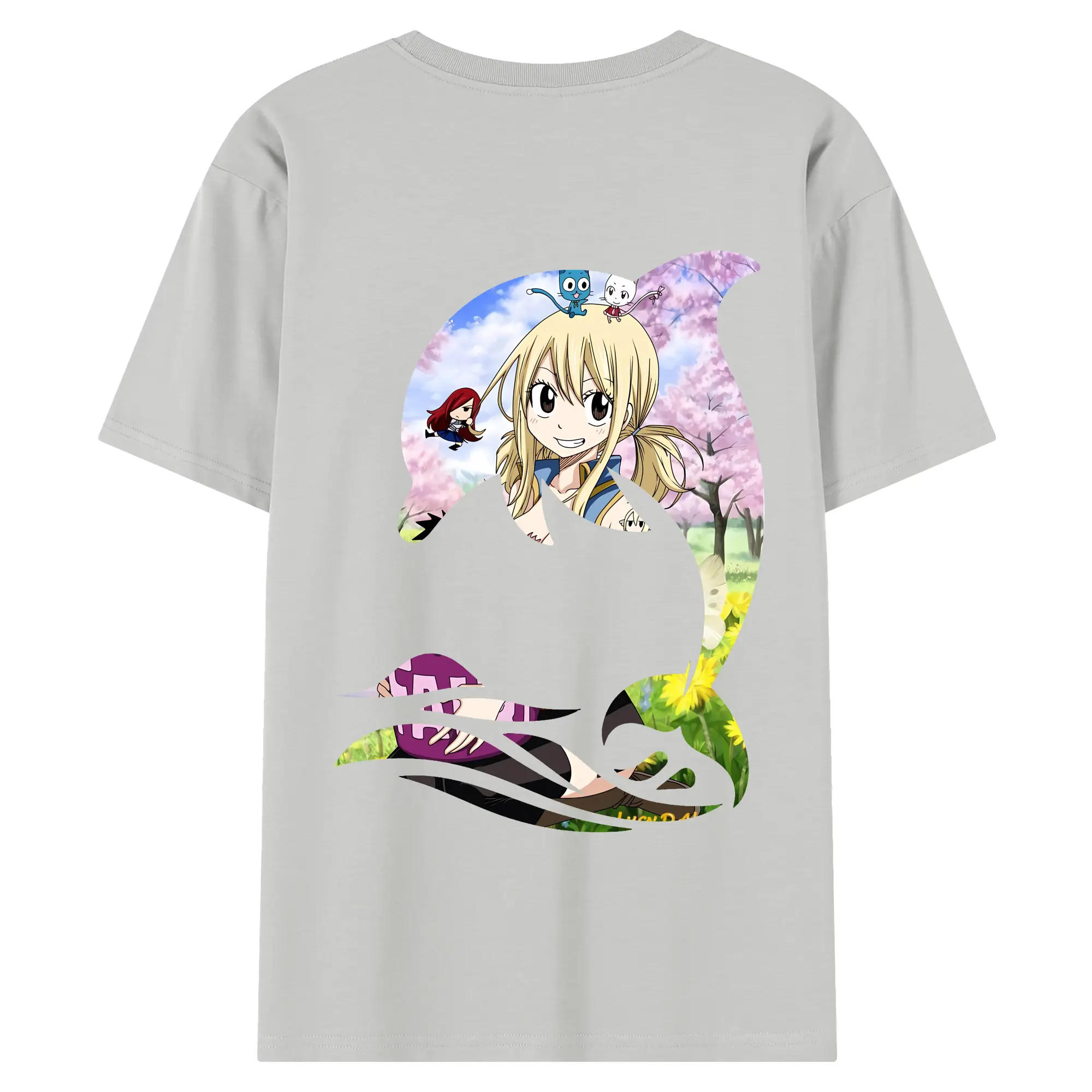 フェアリーテイル グッズ ルーシィ・ハートフィリア - 綿100% ヴィンテージ風 半袖Tシャツ ・ 背面プリント ・ 柔らか肌触り ・ 通気性 快適 ・ スポーツ カジュアル 外出用