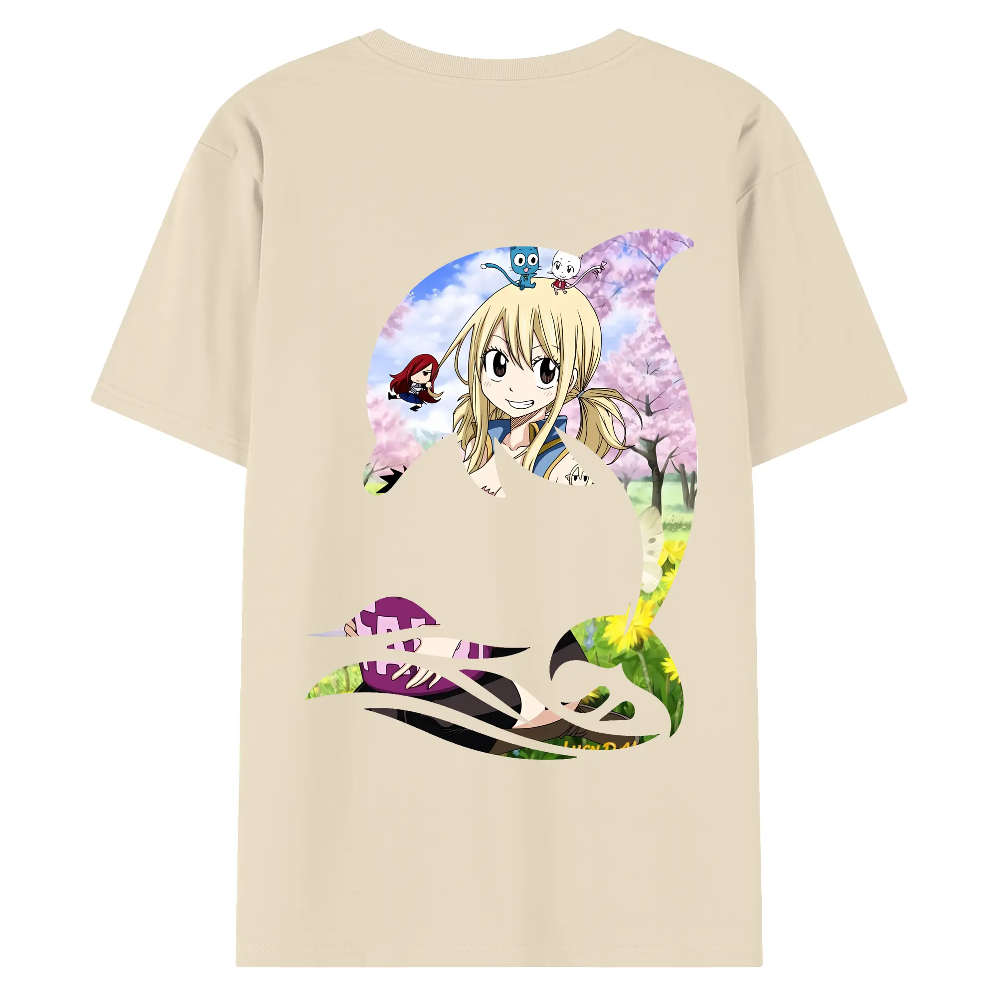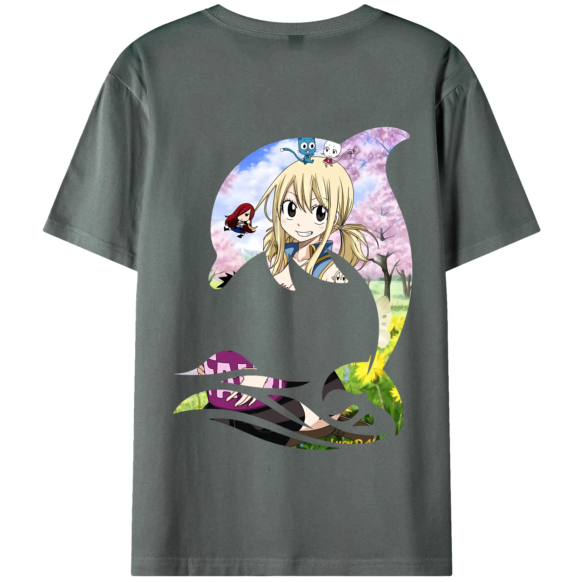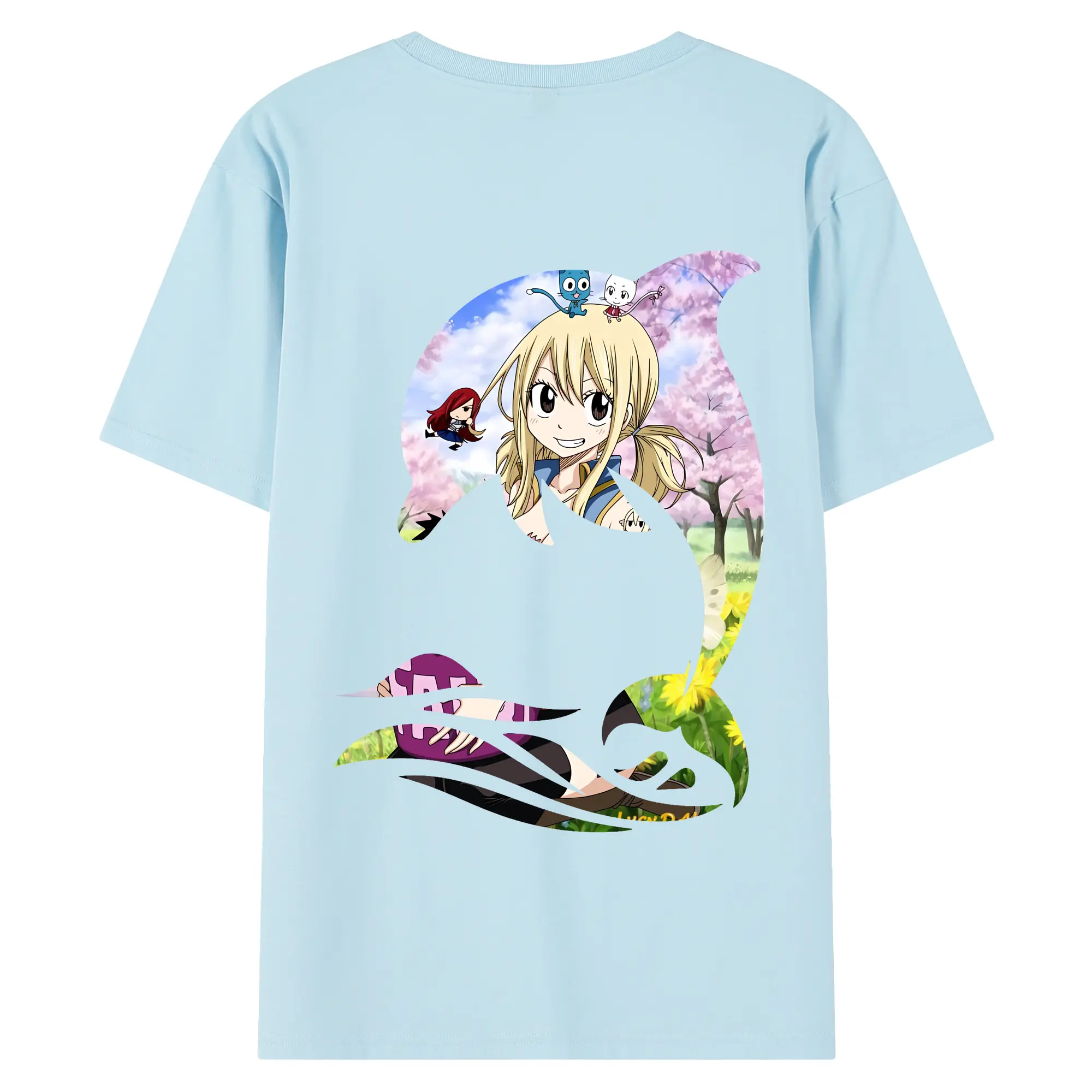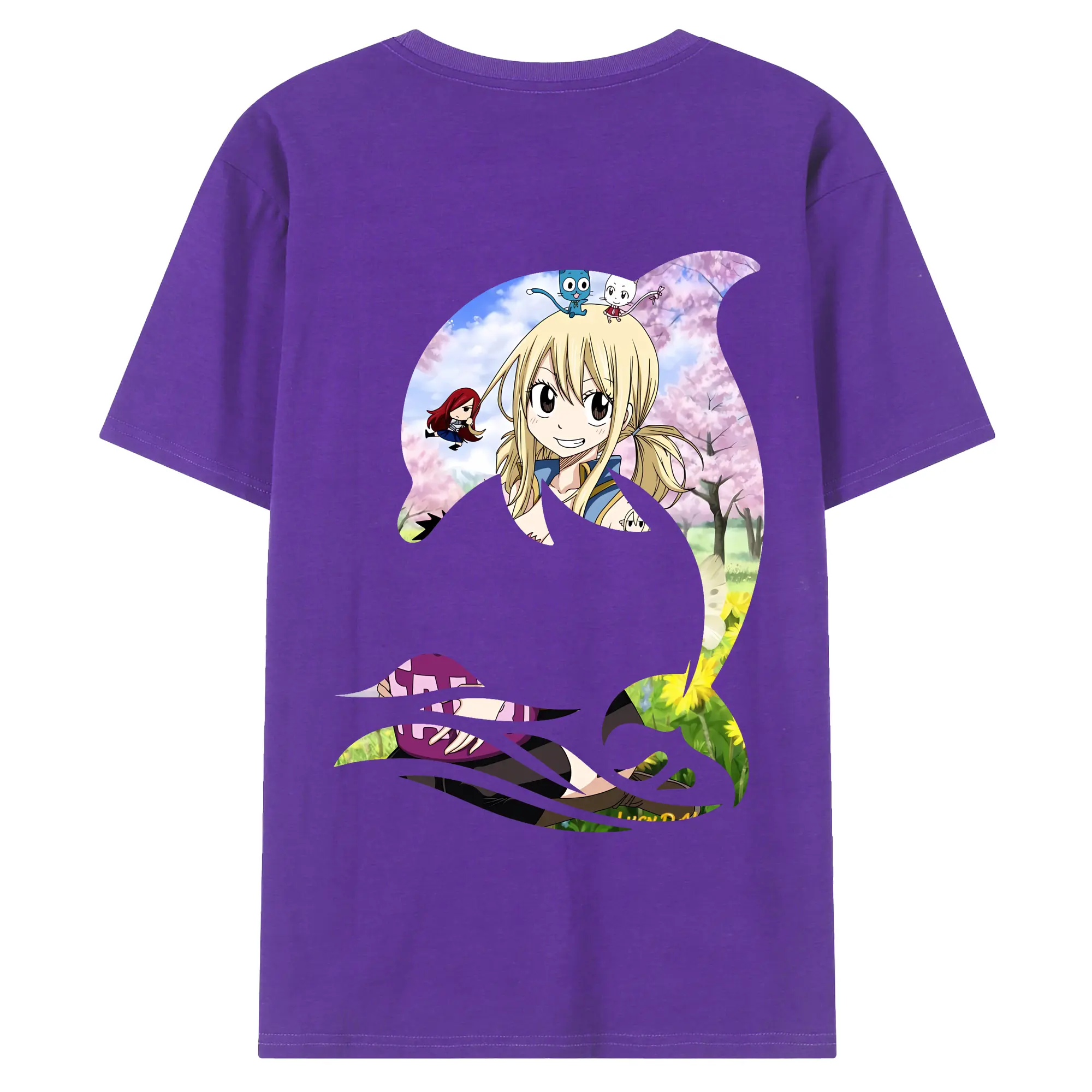 フェアリーテイル グッズ ルーシィ・ハートフィリア - 綿100% ヴィンテージ風 半袖Tシャツ ・ 背面プリント ・ 柔らか肌触り ・ 通気性 快適 ・ スポーツ カジュアル 外出用