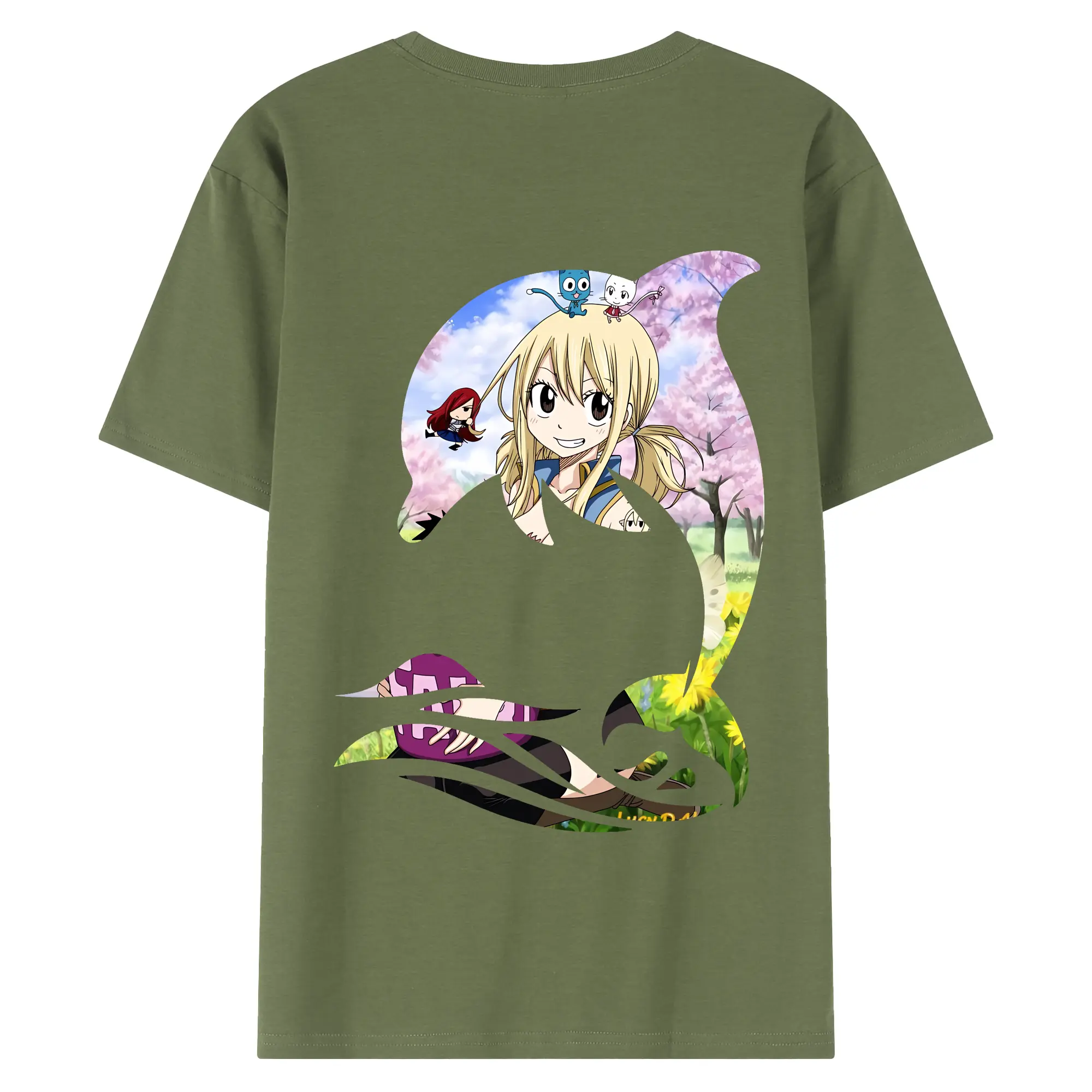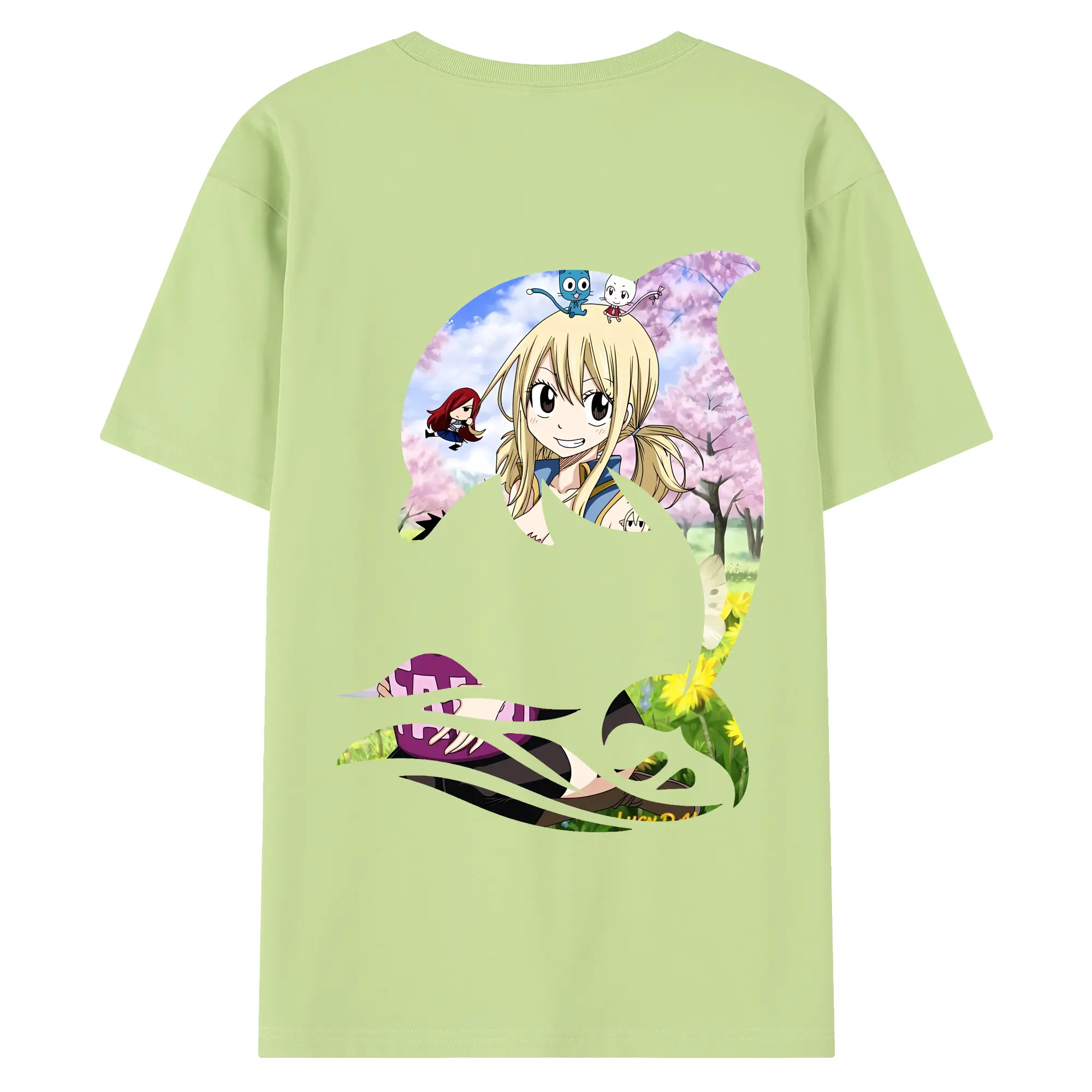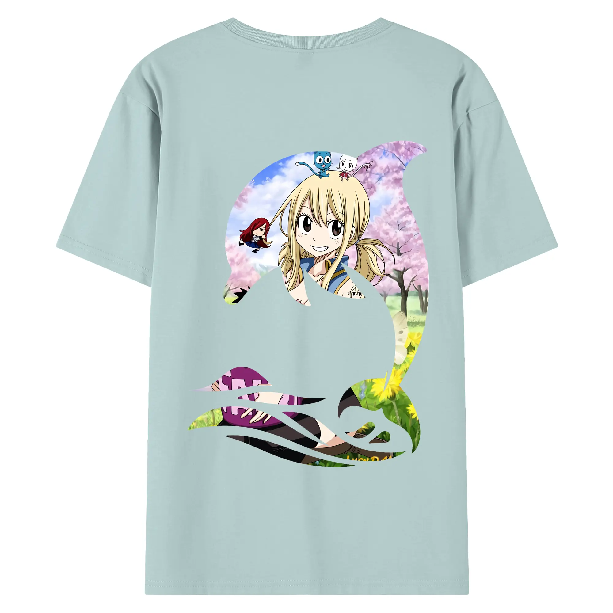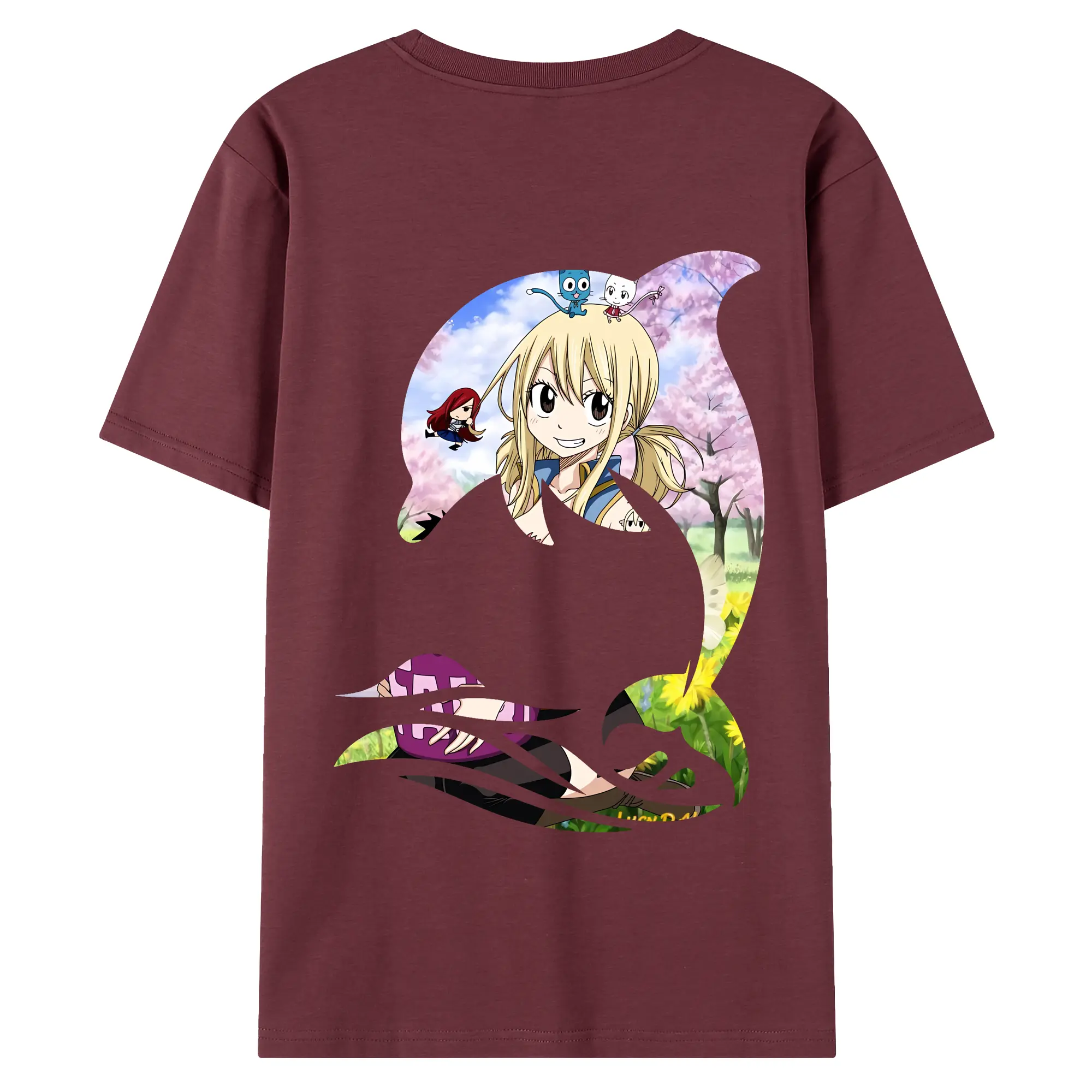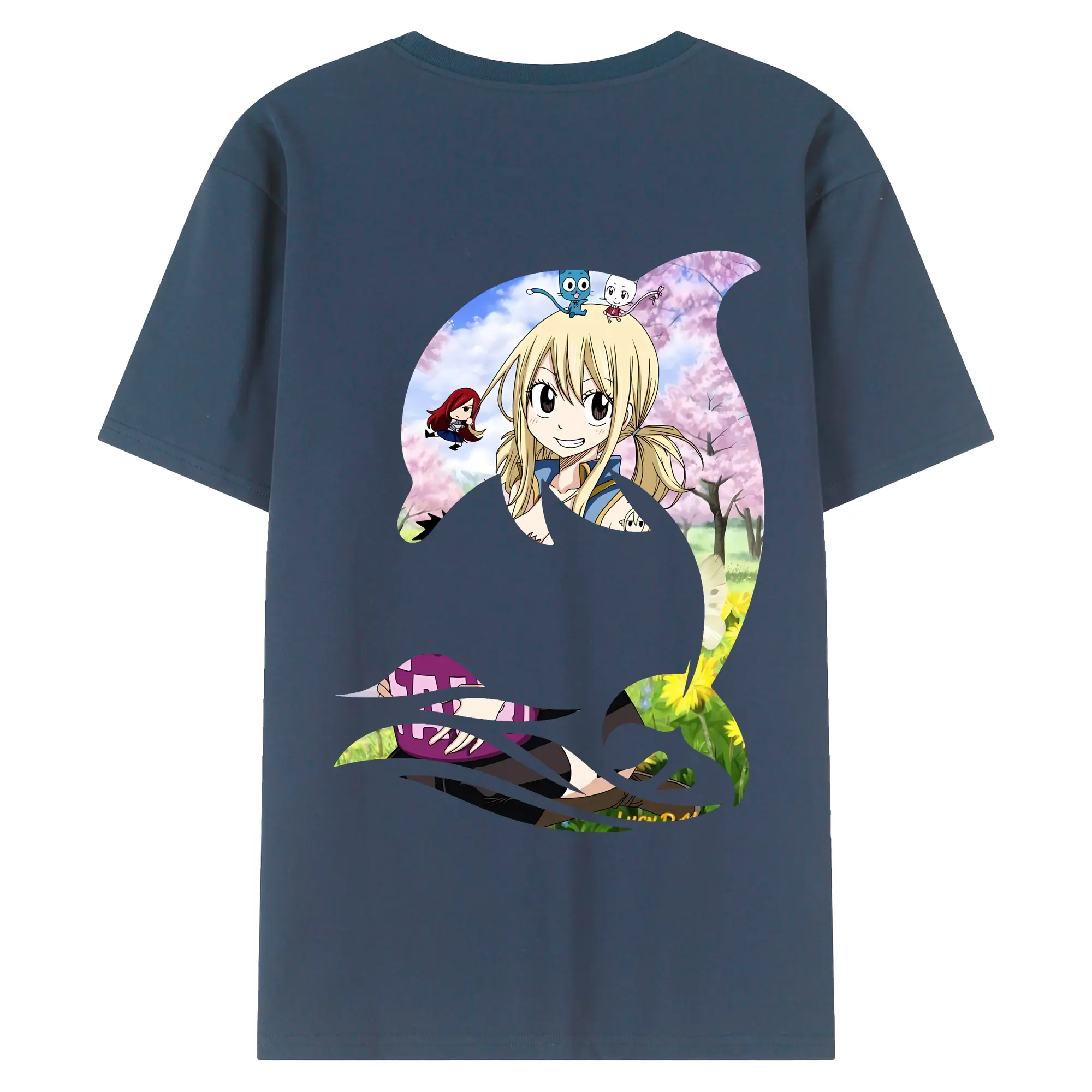 フェアリーテイル グッズ ルーシィ・ハートフィリア - 綿100% ヴィンテージ風 半袖Tシャツ ・ 背面プリント ・ 柔らか肌触り ・ 通気性 快適 ・ スポーツ カジュアル 外出用