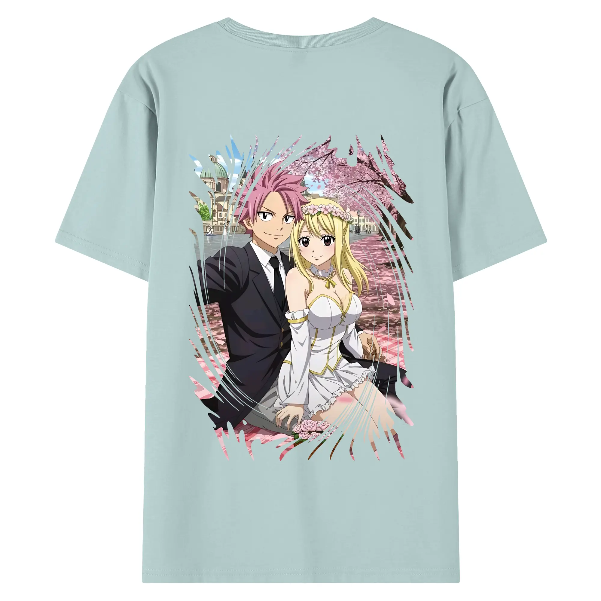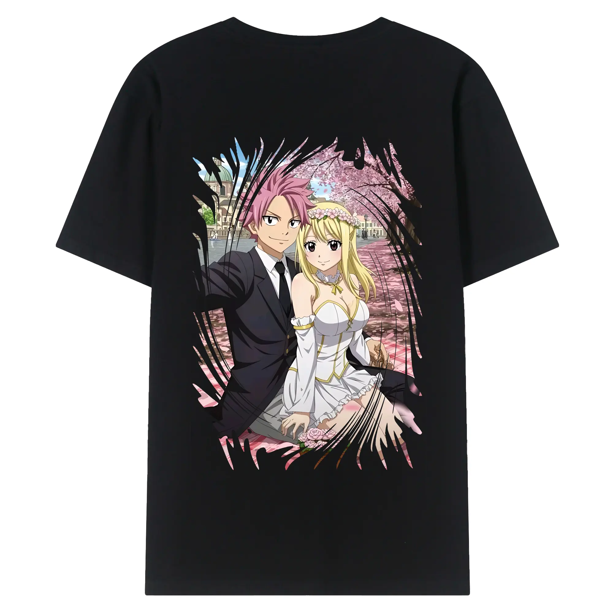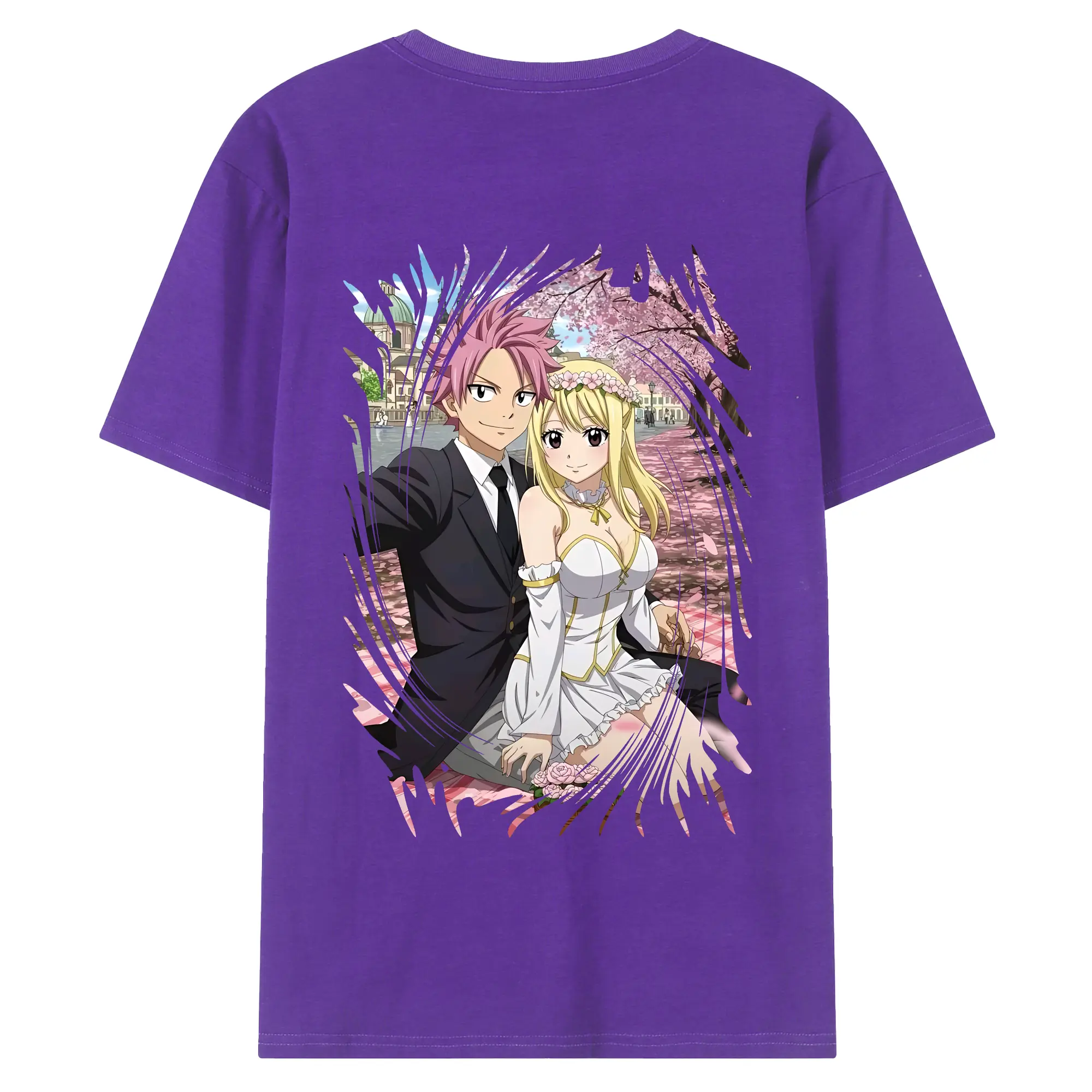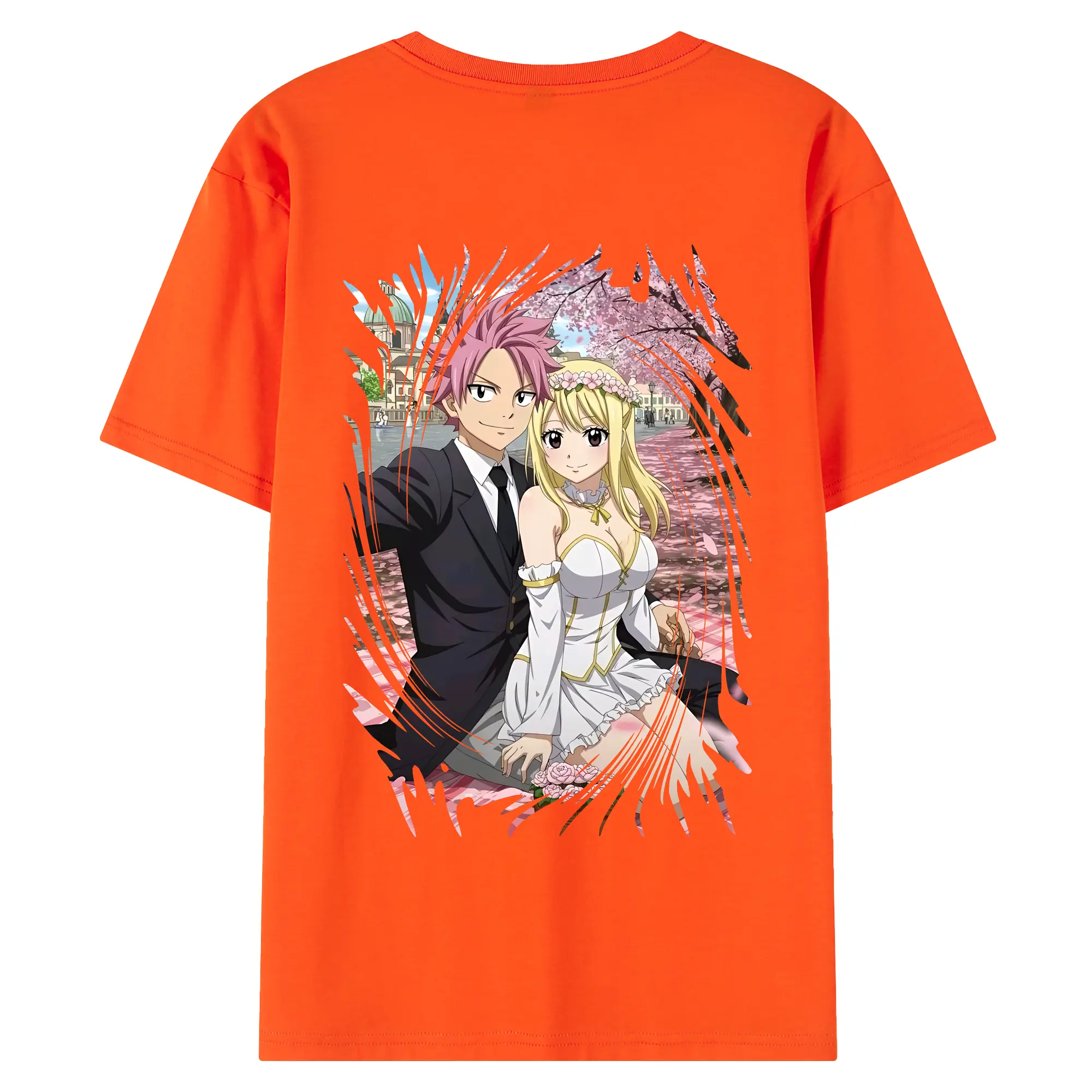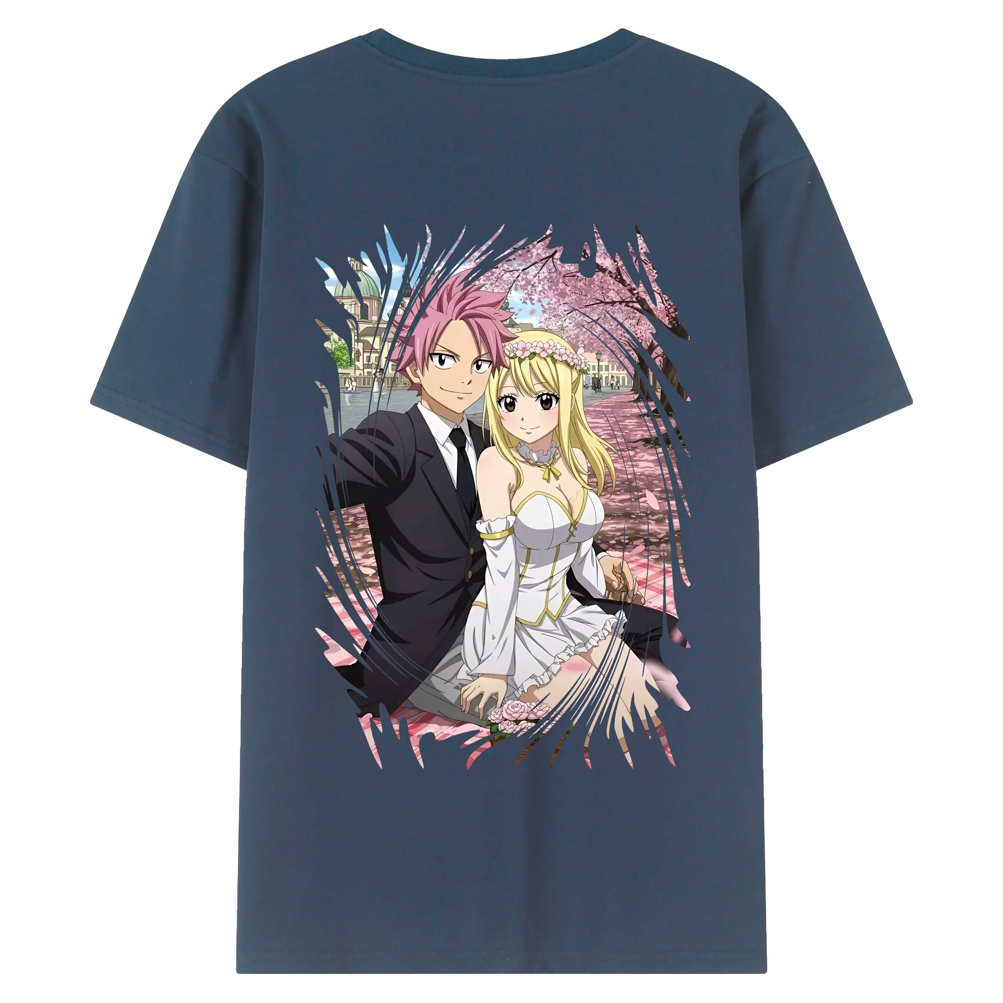 フェアリーテイル グッズ ルーシィ・ハートフィリア - 綿100% ヴィンテージ風 半袖Tシャツ ・ 背面プリント ・ 柔らか肌触り ・ 通気性 快適 ・ スポーツ カジュアル 外出用