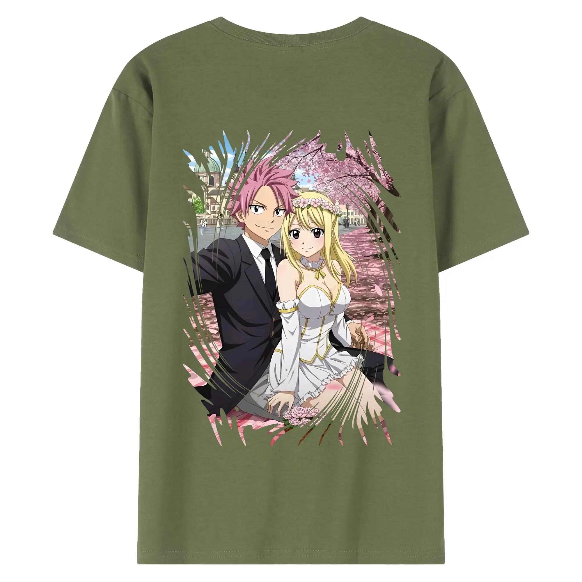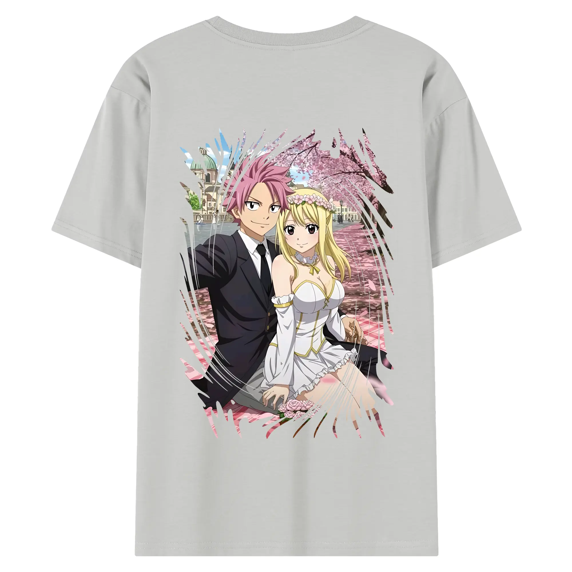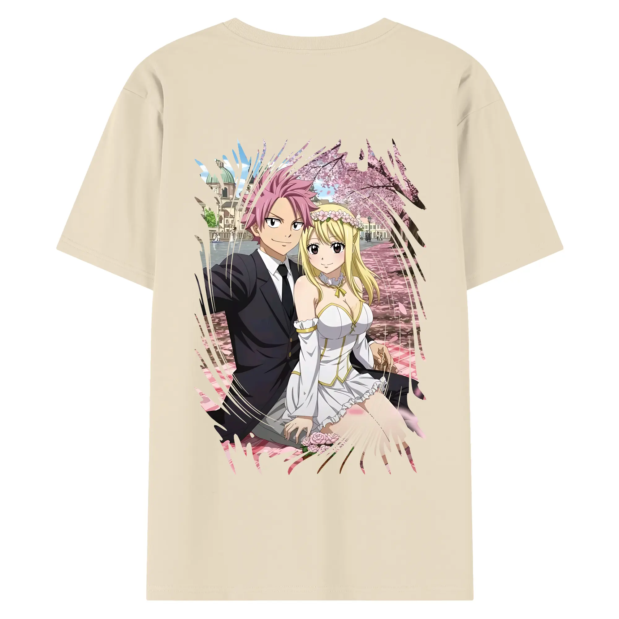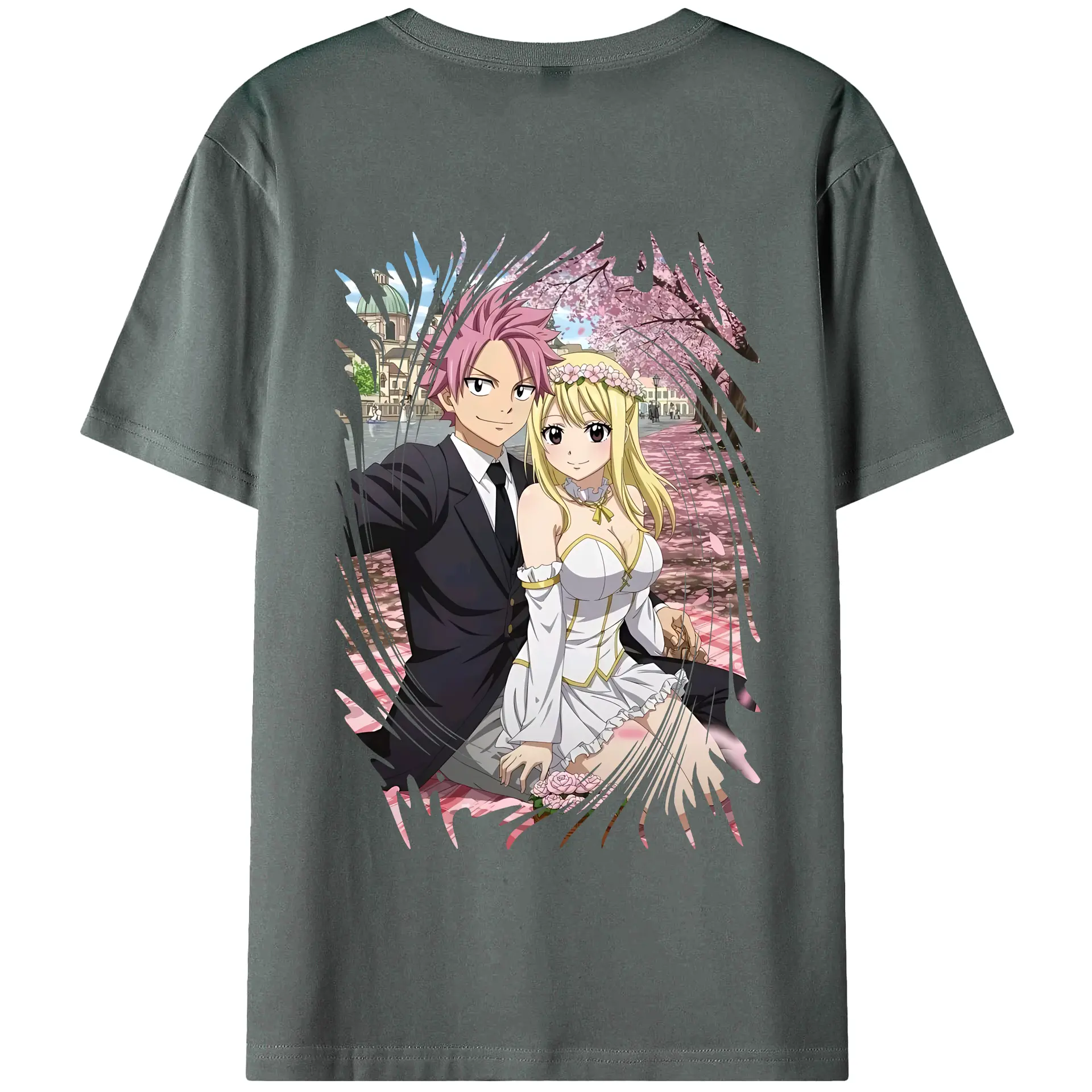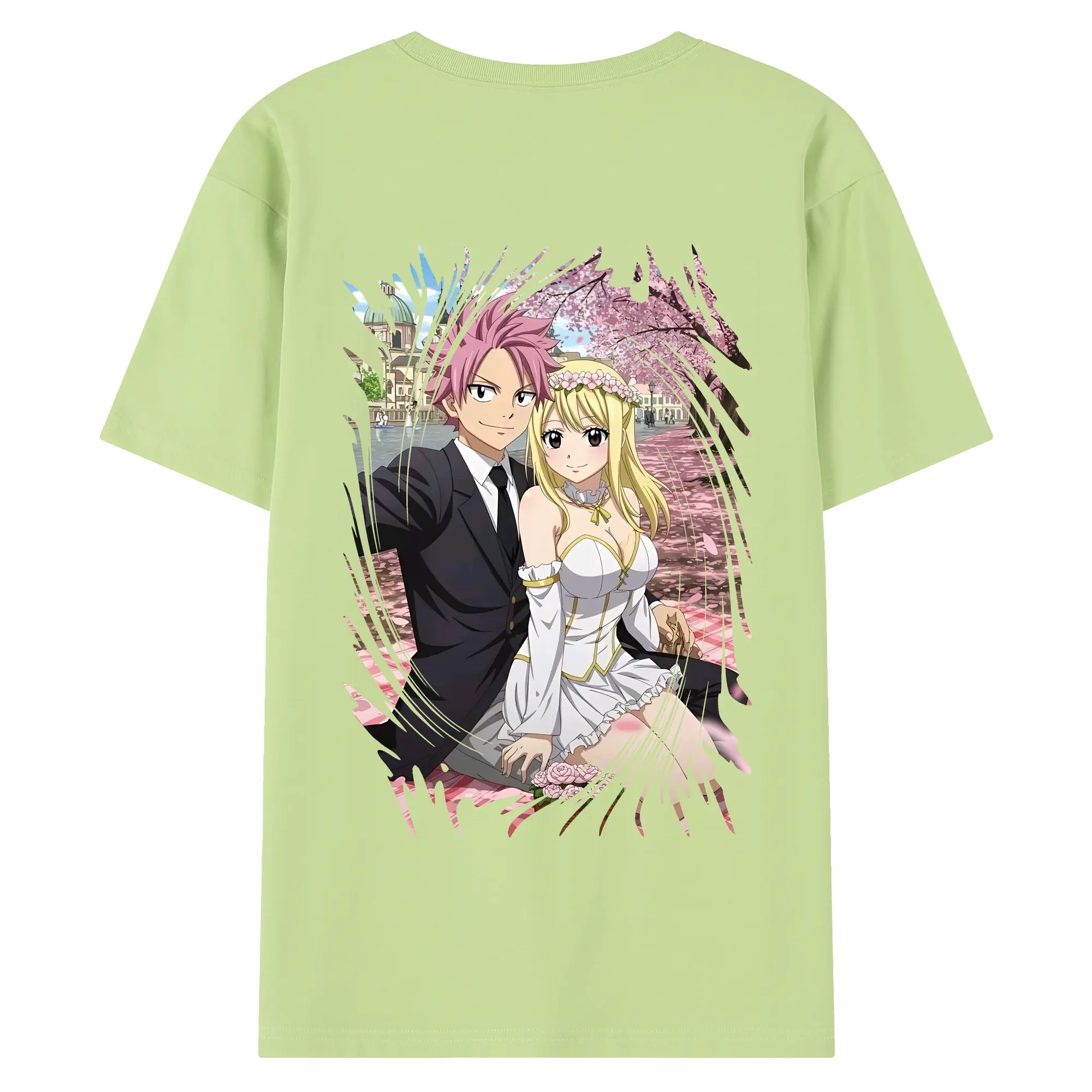 フェアリーテイル グッズ ルーシィ・ハートフィリア - 綿100% ヴィンテージ風 半袖Tシャツ ・ 背面プリント ・ 柔らか肌触り ・ 通気性 快適 ・ スポーツ カジュアル 外出用