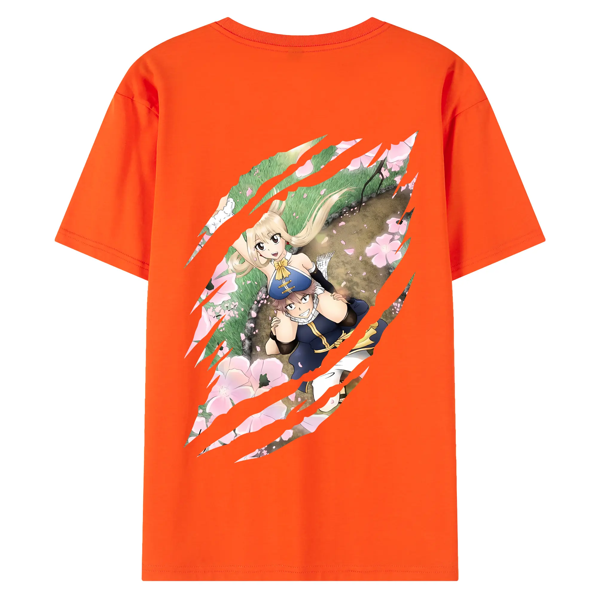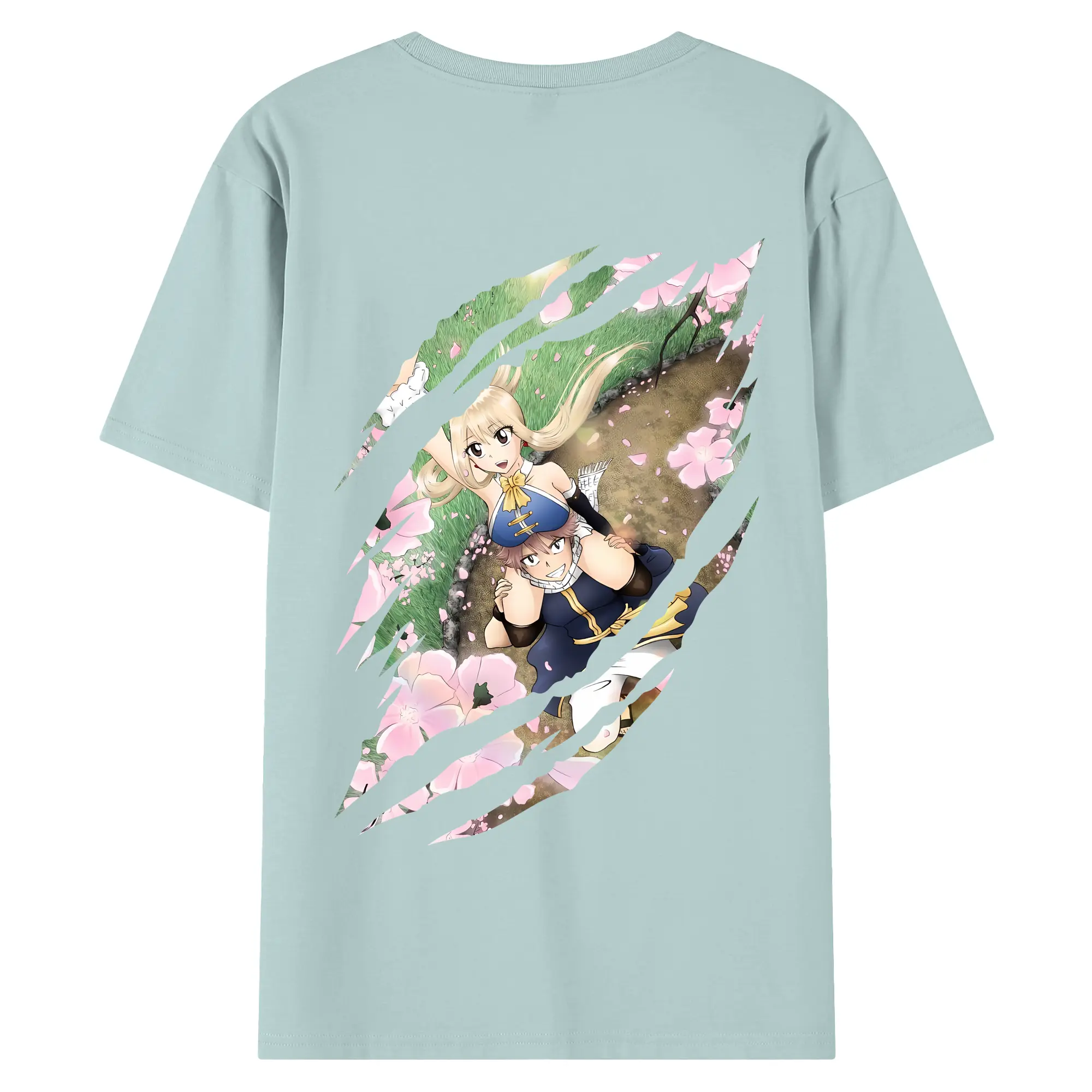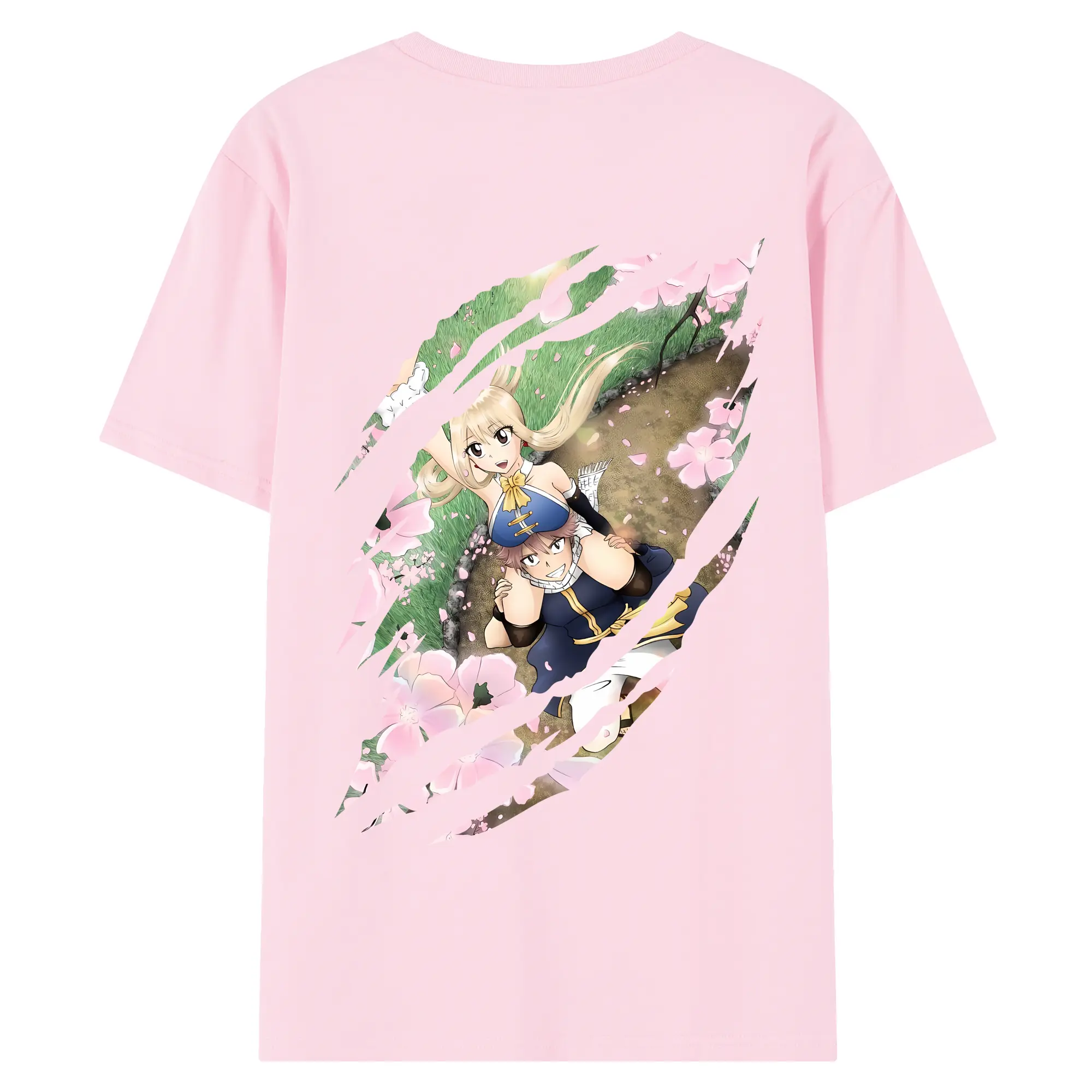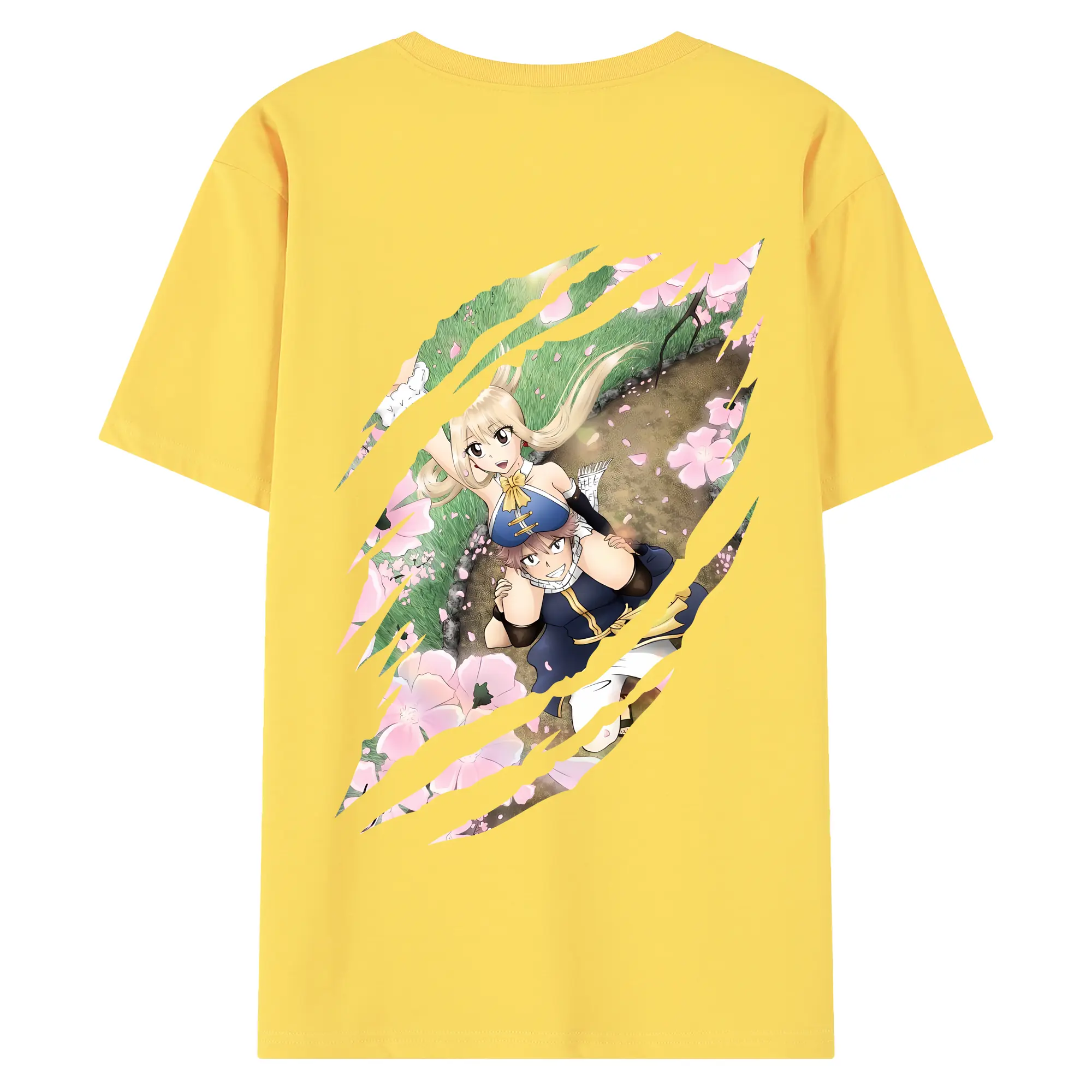 フェアリーテイル グッズ ルーシィ・ハートフィリア - 綿100% ヴィンテージ風 半袖Tシャツ ・ 背面プリント ・ 柔らか肌触り ・ 通気性 快適 ・ スポーツ カジュアル 外出用