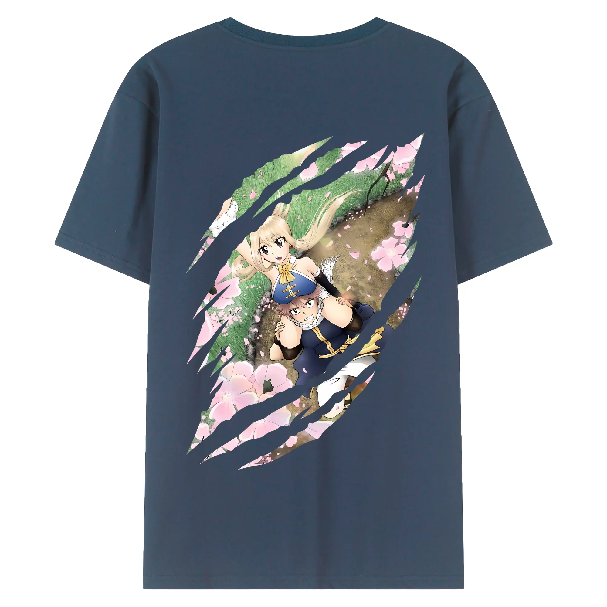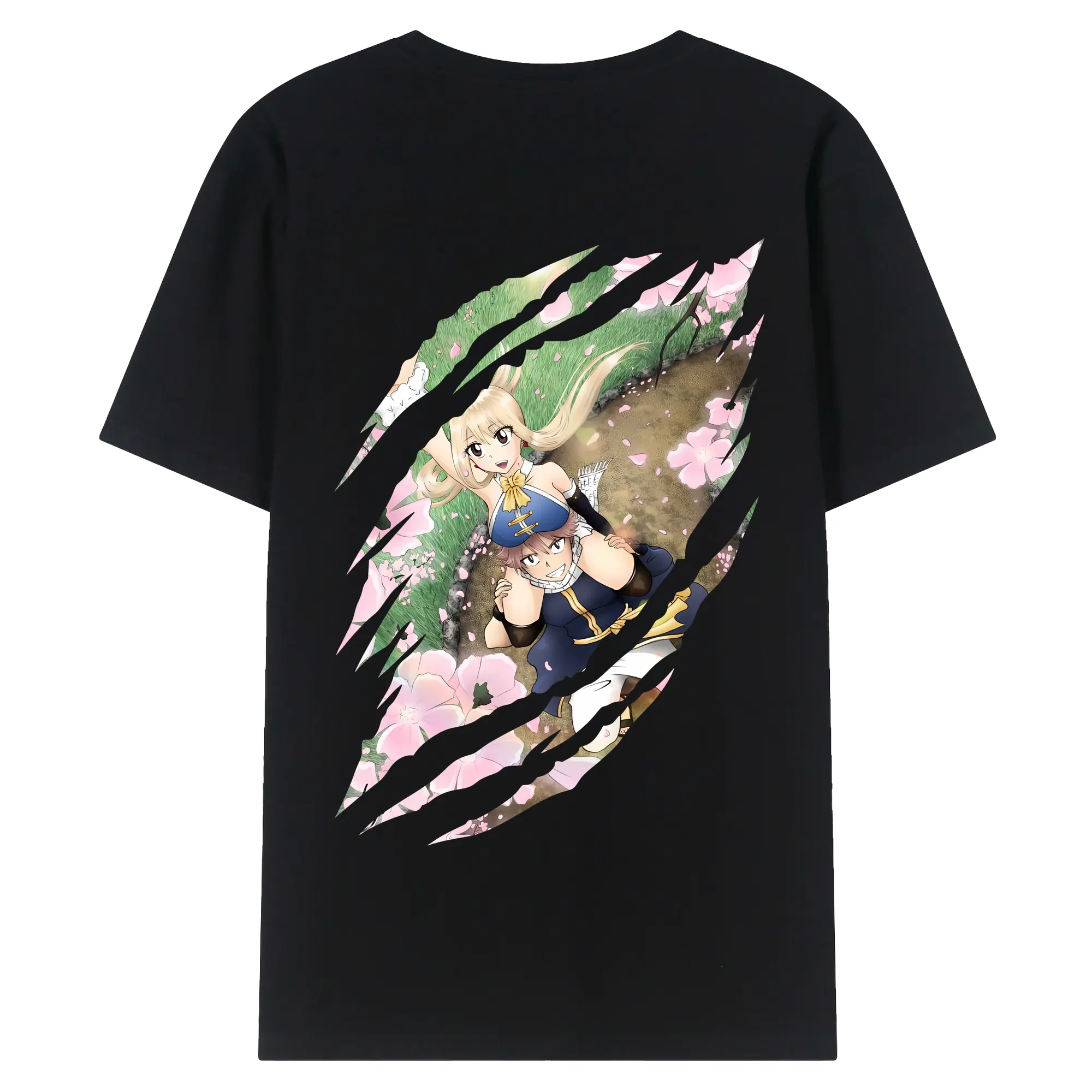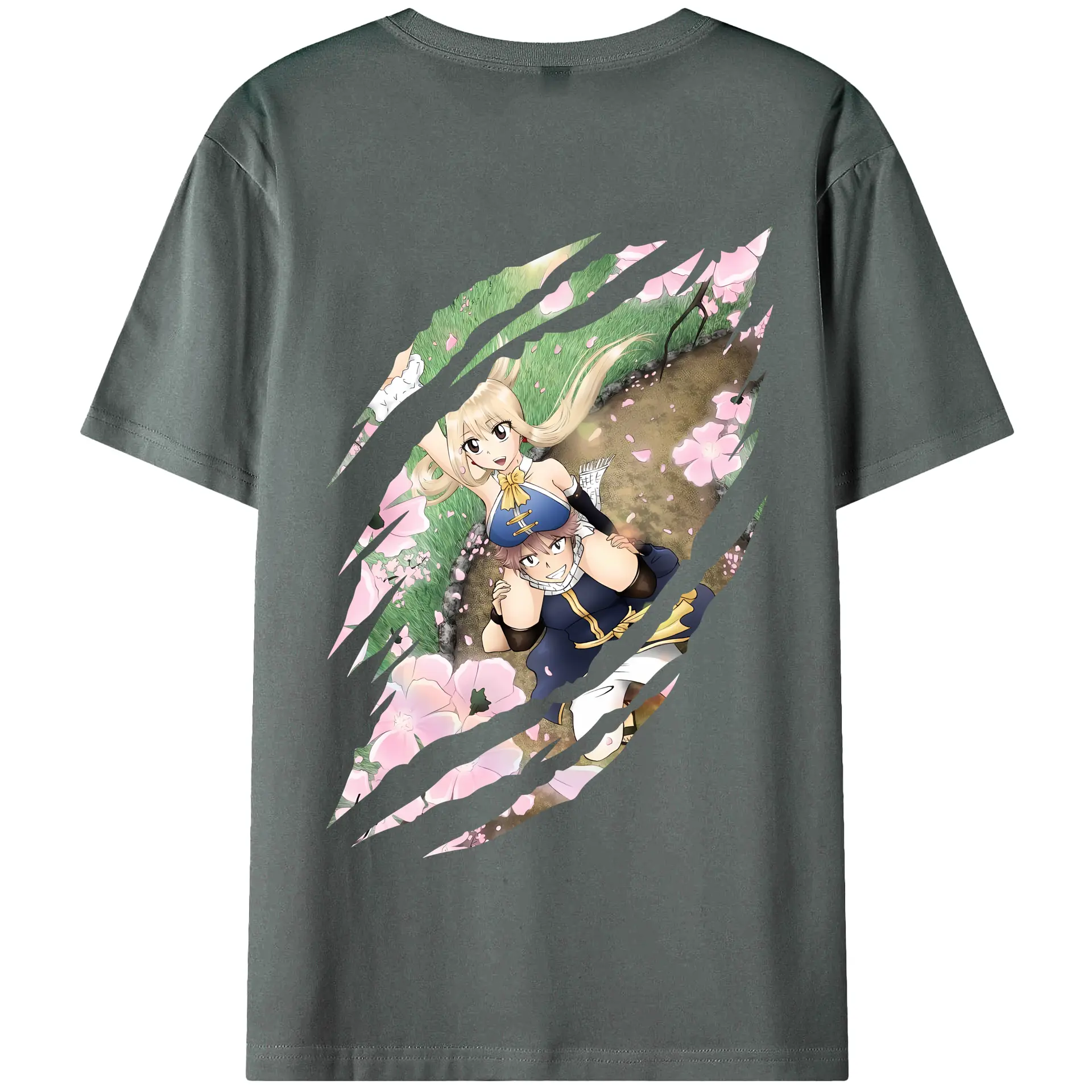 フェアリーテイル グッズ ルーシィ・ハートフィリア - 綿100% ヴィンテージ風 半袖Tシャツ ・ 背面プリント ・ 柔らか肌触り ・ 通気性 快適 ・ スポーツ カジュアル 外出用