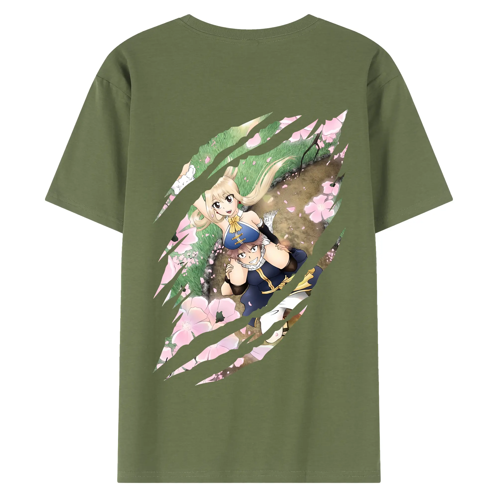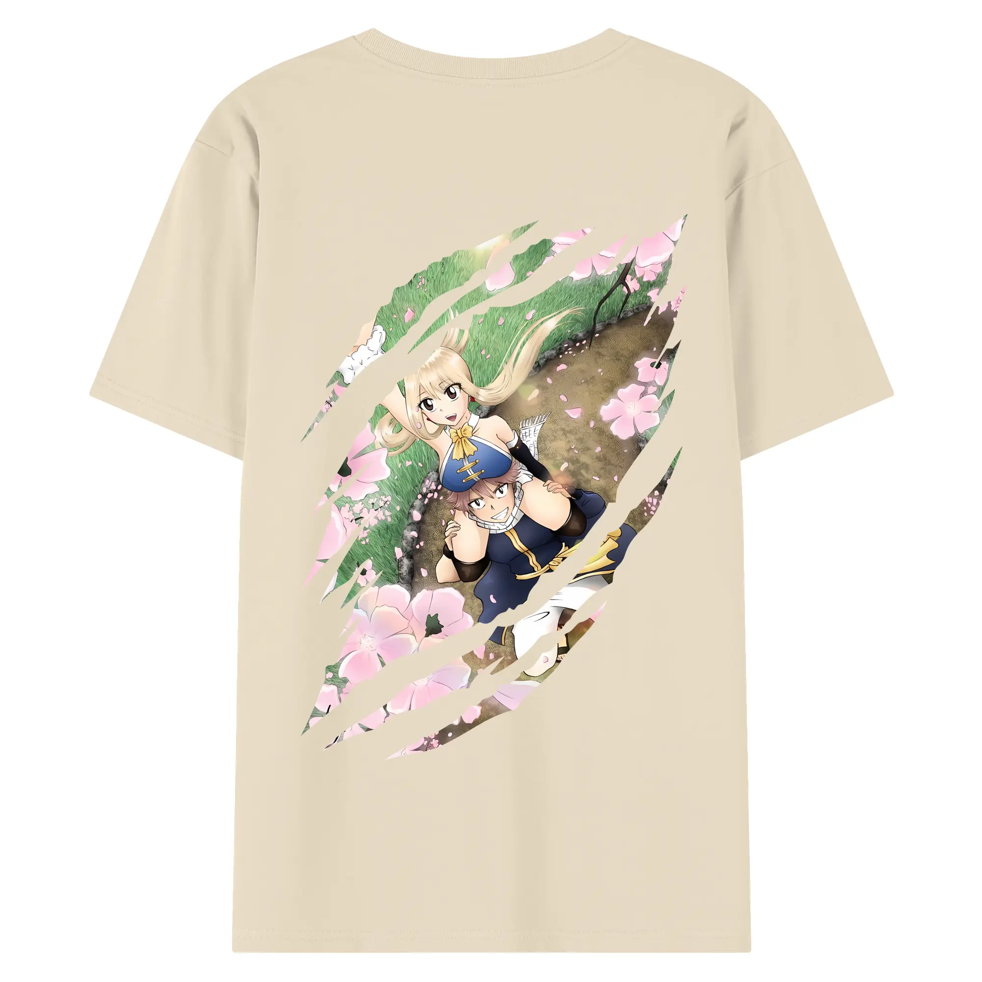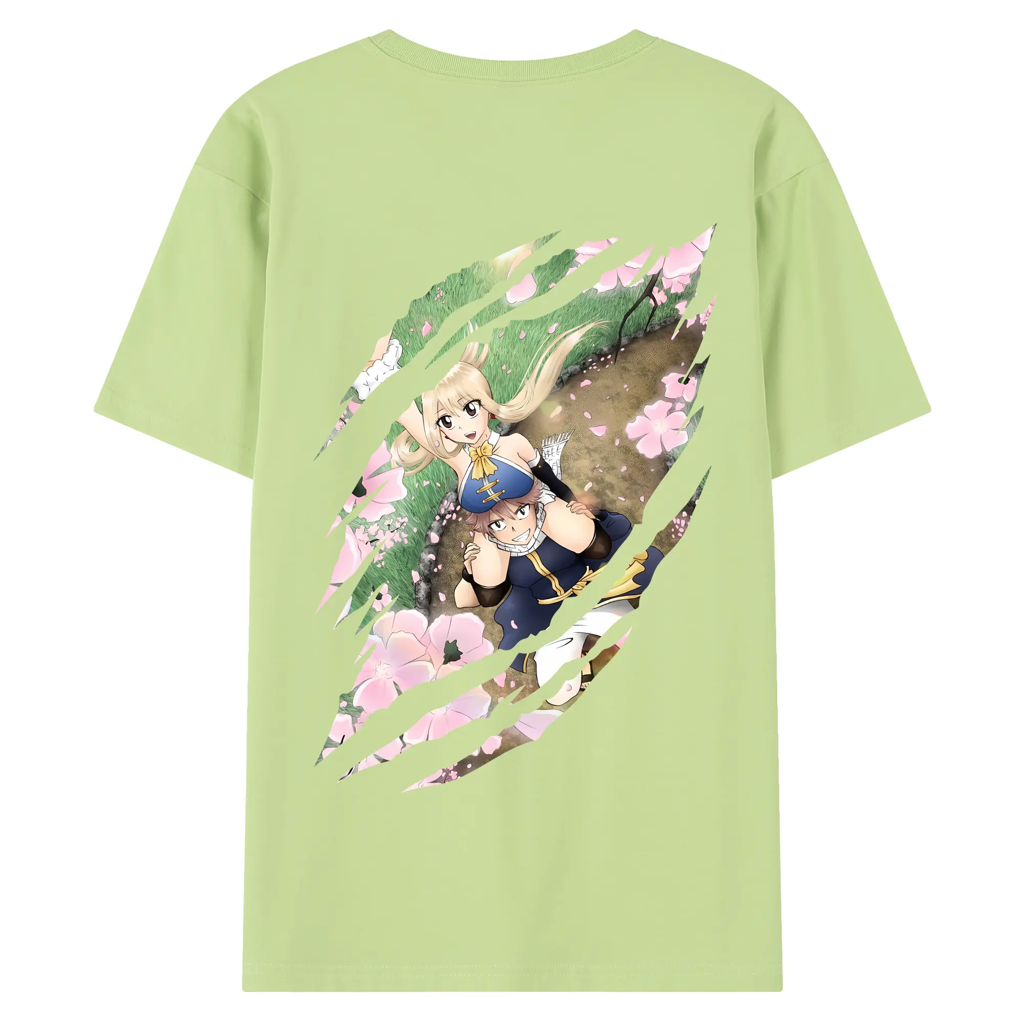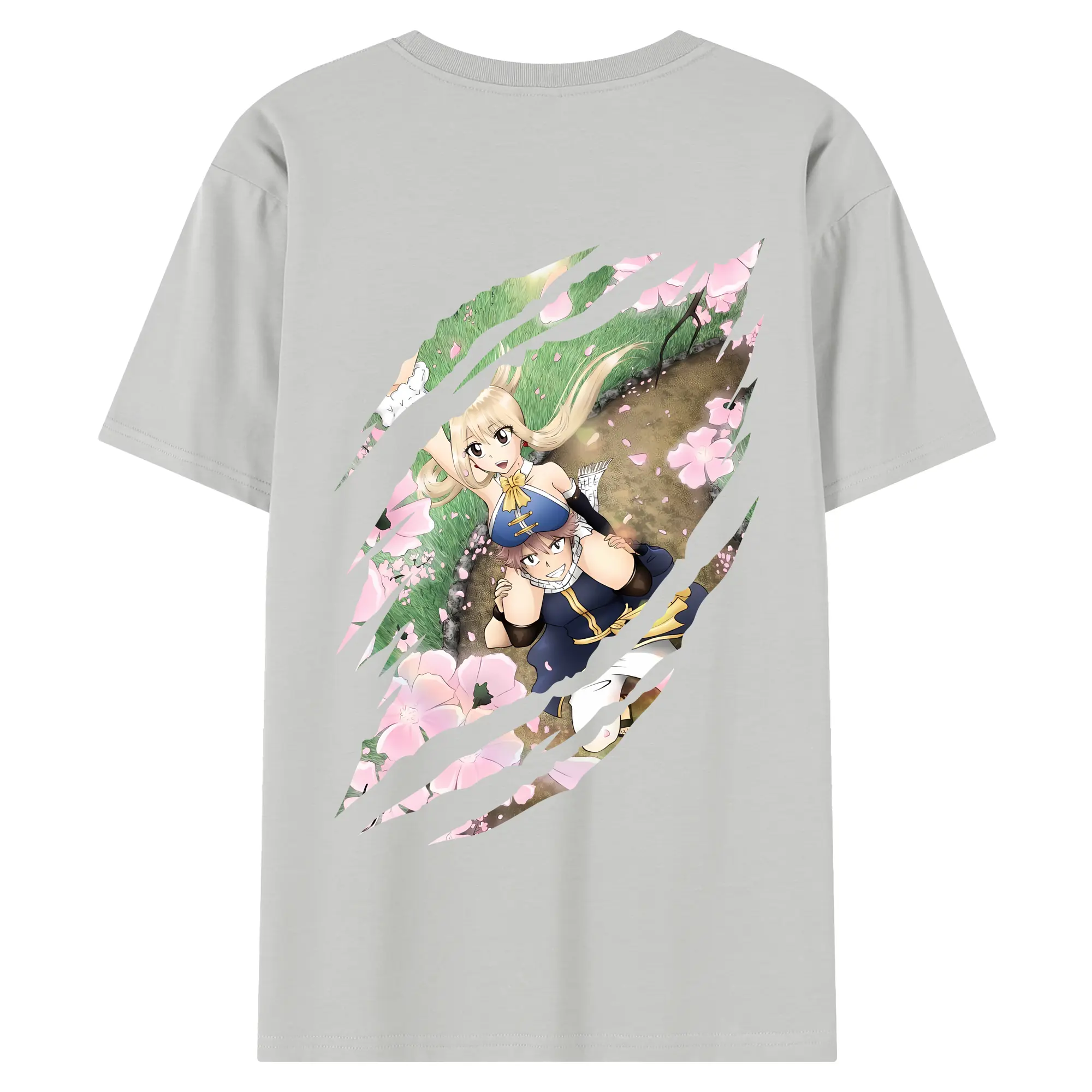 フェアリーテイル グッズ ルーシィ・ハートフィリア - 綿100% ヴィンテージ風 半袖Tシャツ ・ 背面プリント ・ 柔らか肌触り ・ 通気性 快適 ・ スポーツ カジュアル 外出用
