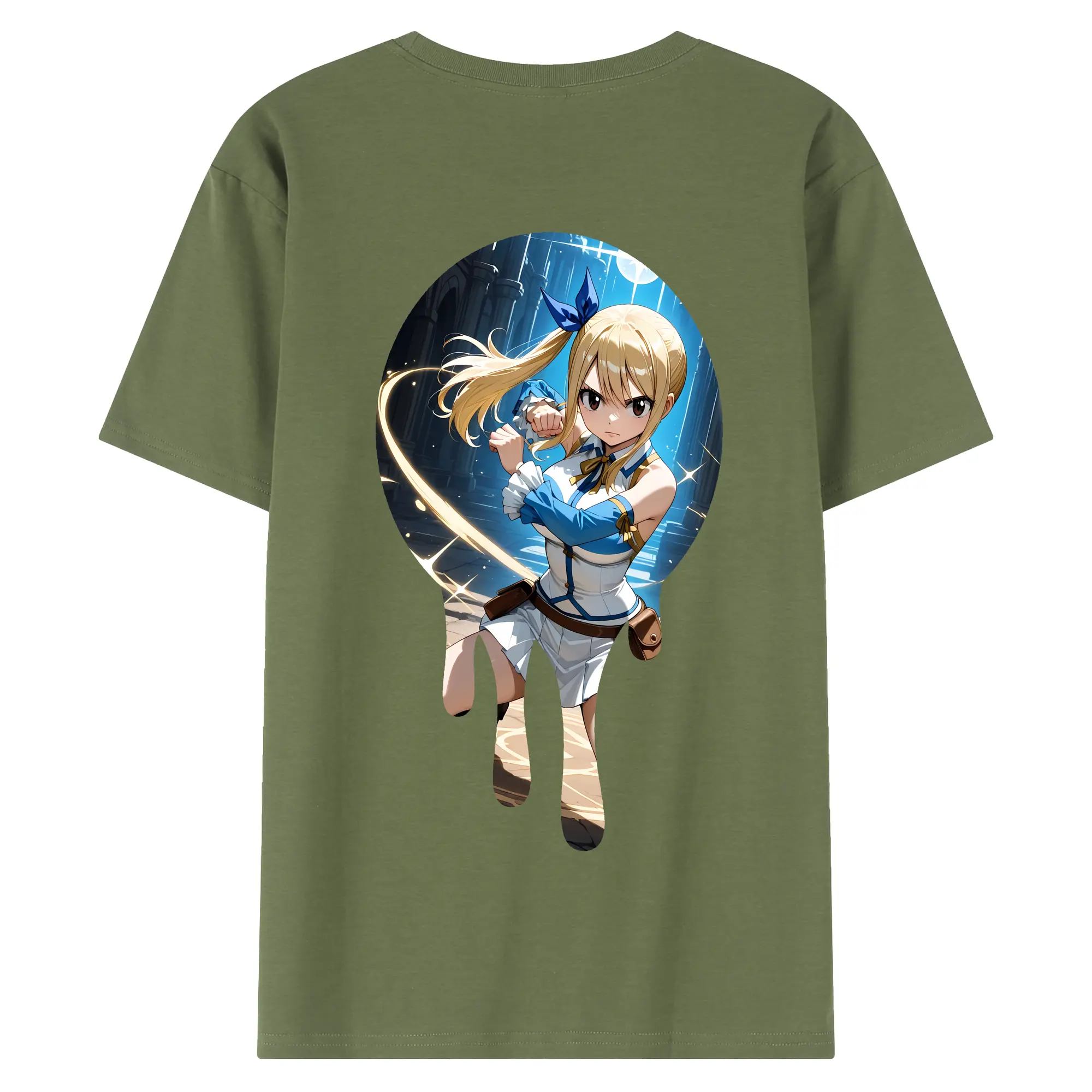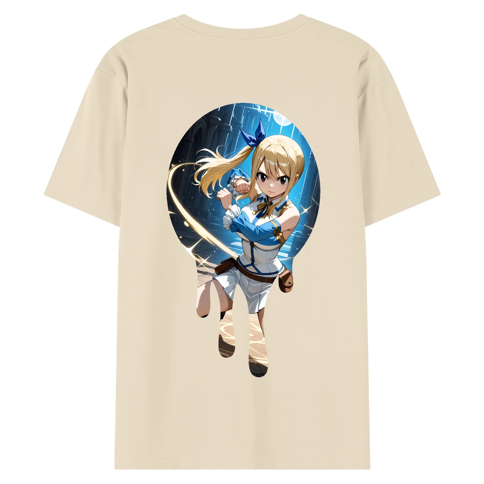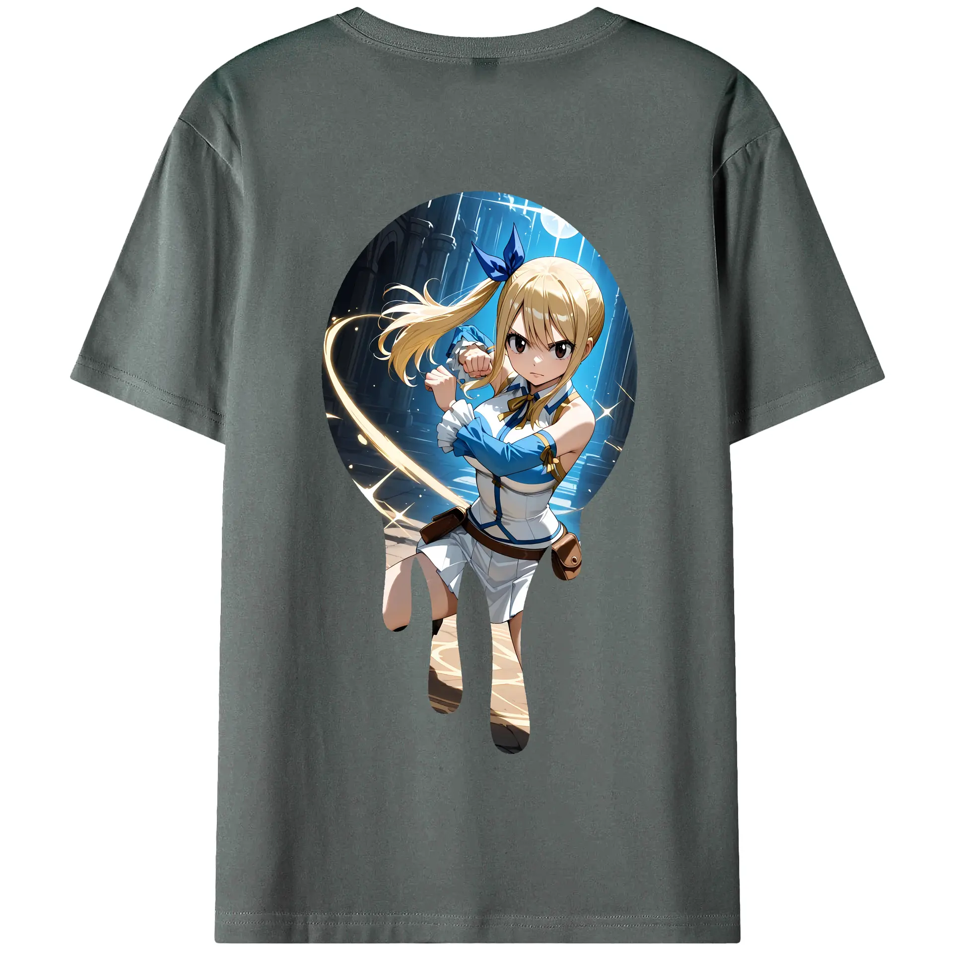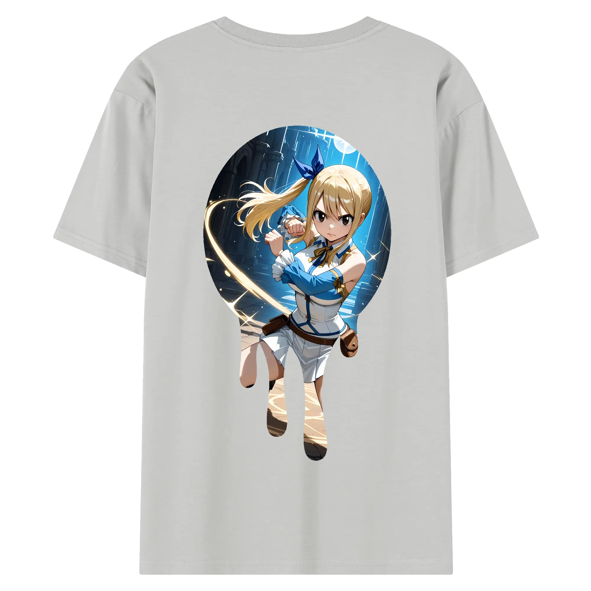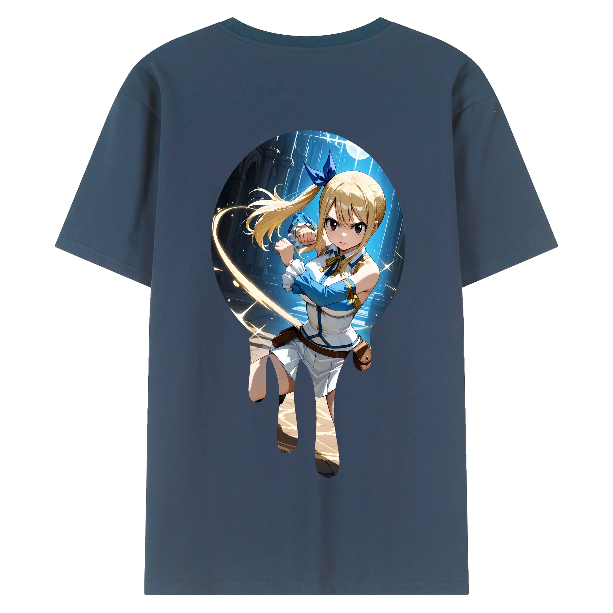 フェアリーテイル グッズ ルーシィ・ハートフィリア - 綿100% ヴィンテージ風 半袖Tシャツ ・ 背面プリント ・ 柔らか肌触り ・ 通気性 快適 ・ スポーツ カジュアル 外出用