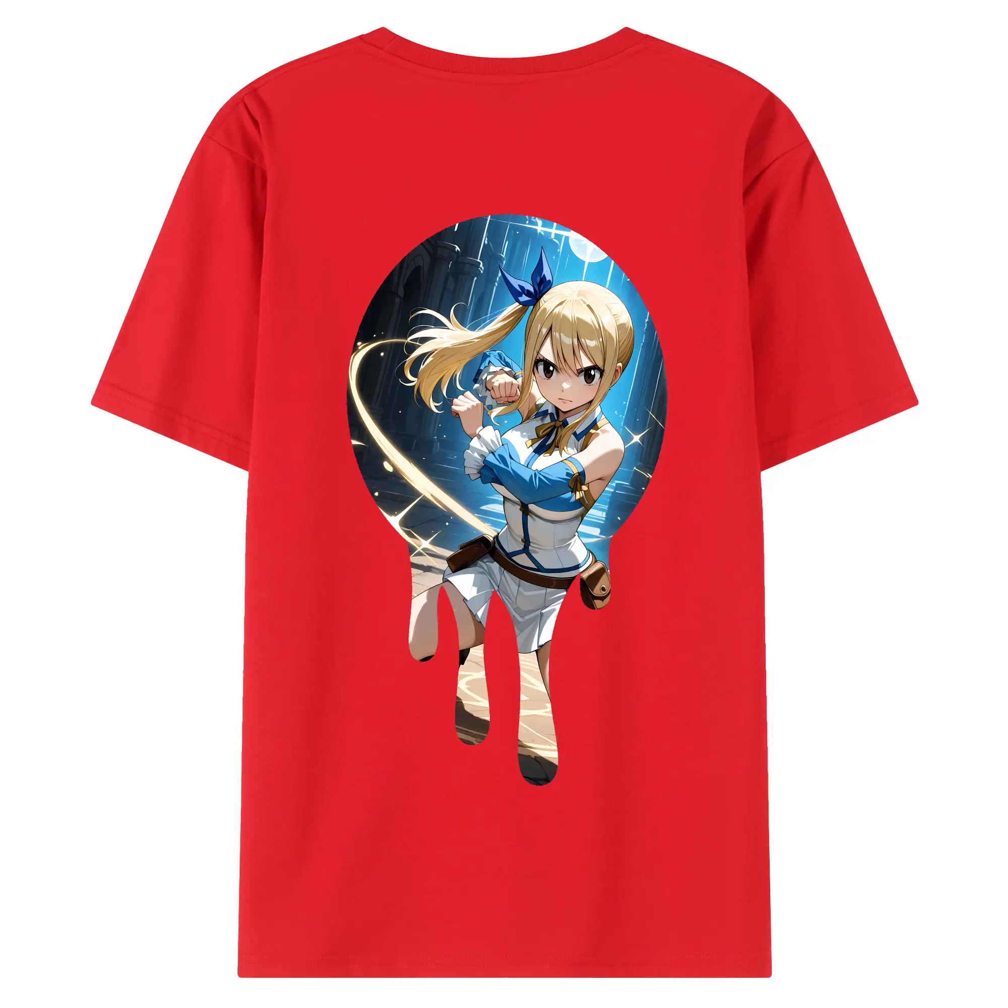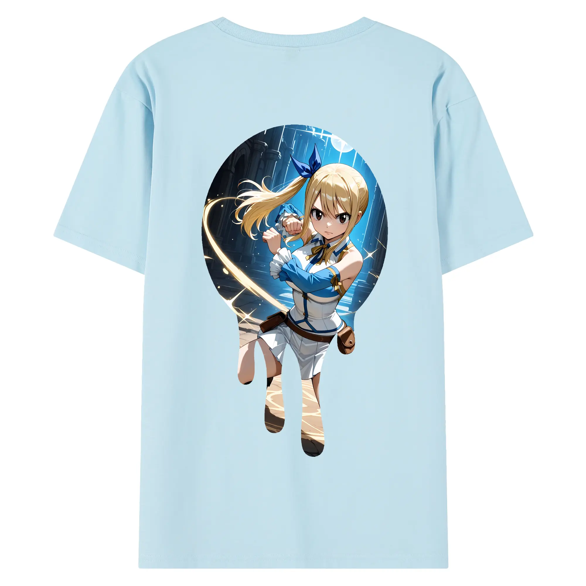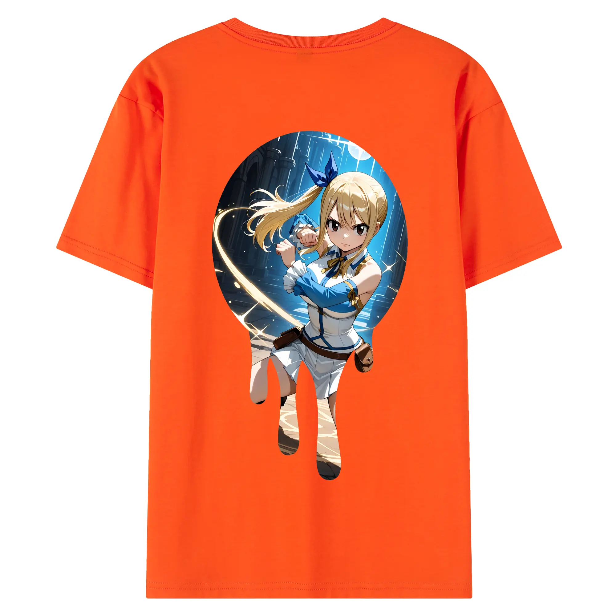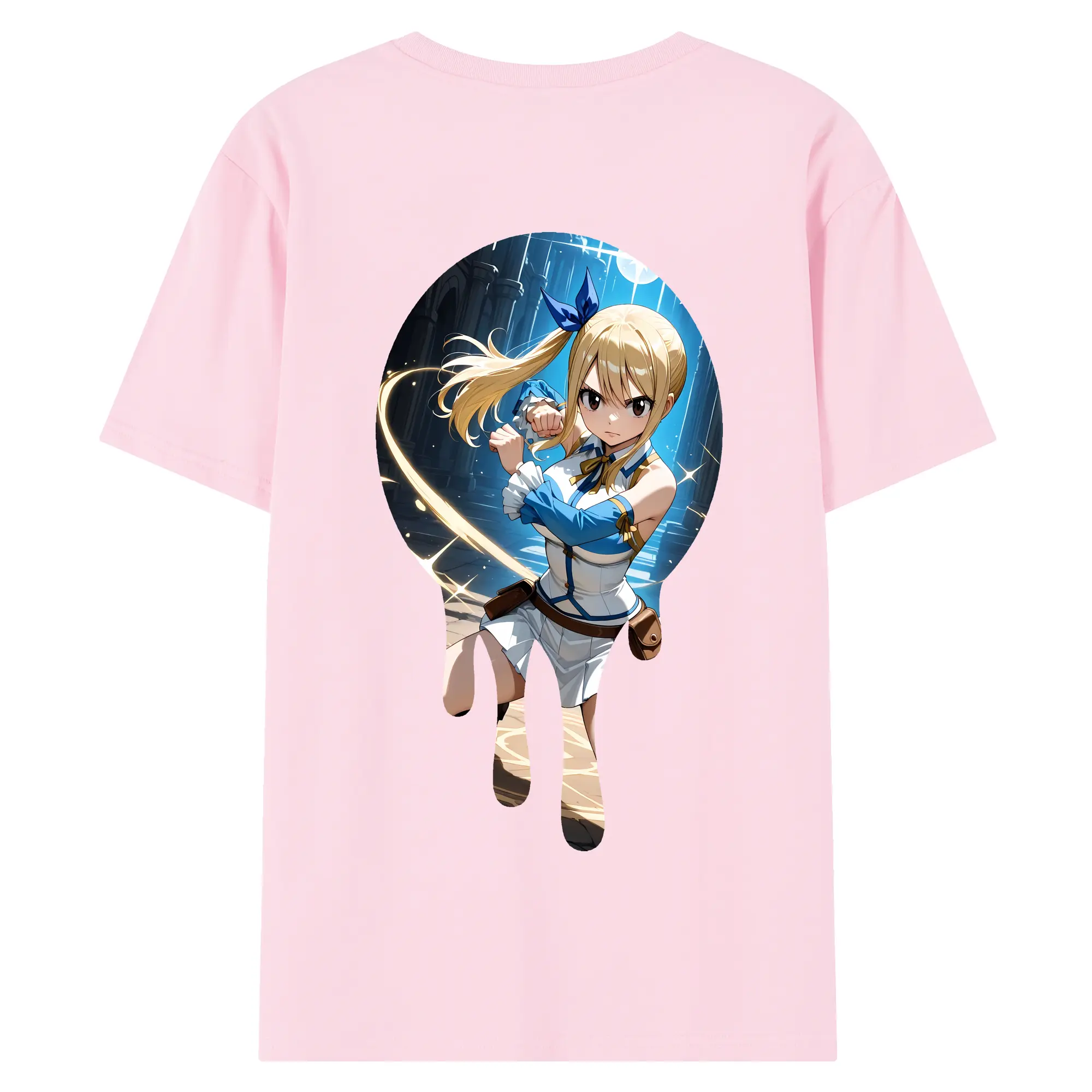 フェアリーテイル グッズ ルーシィ・ハートフィリア - 綿100% 半袖Tシャツ ・ フロントプリント ・ 快適 通気性 ・ 日常使い 散歩 スポーツ用