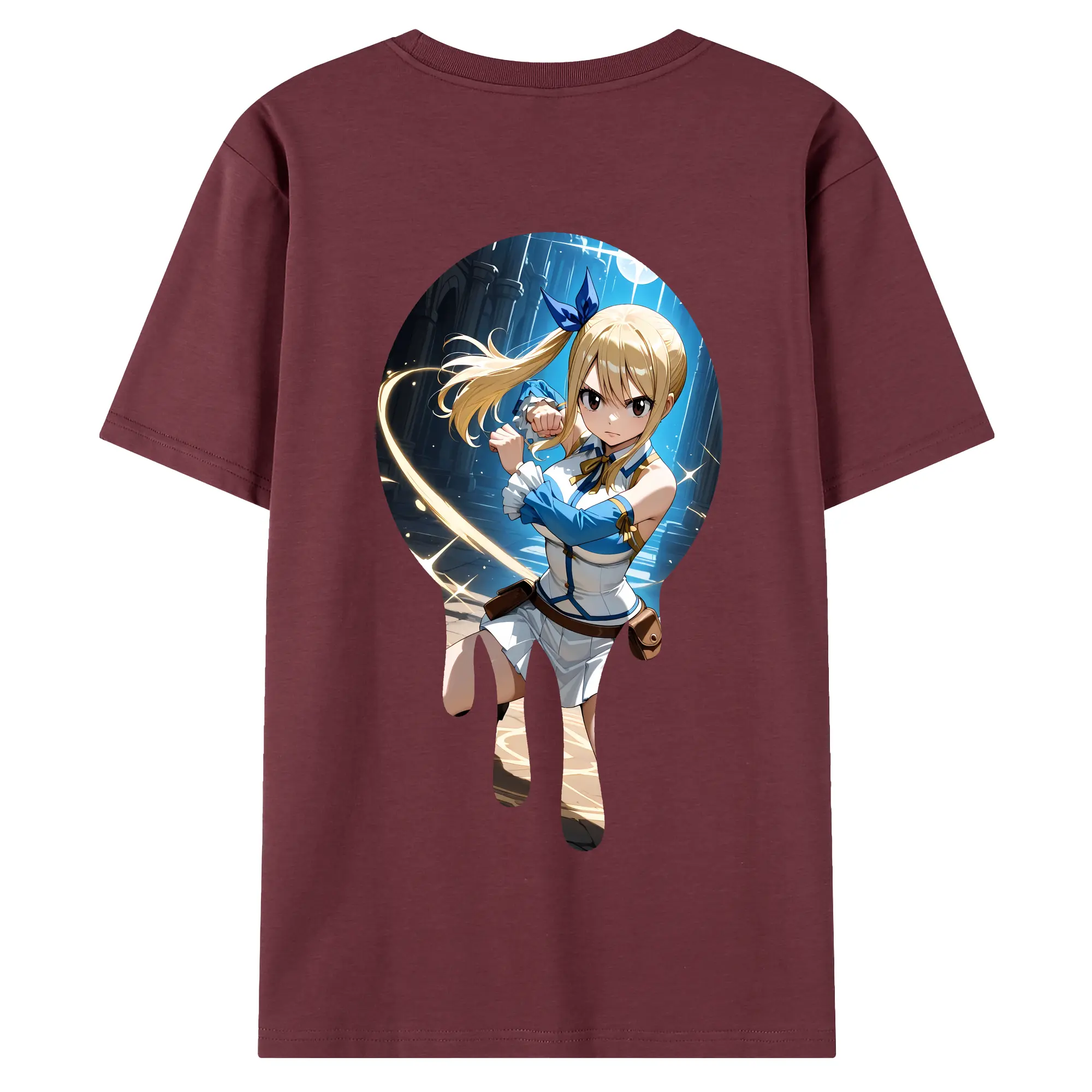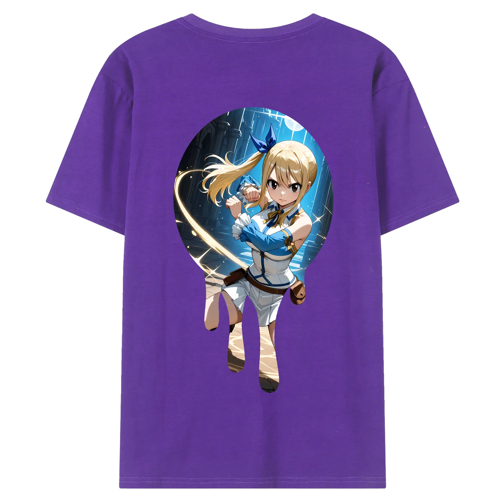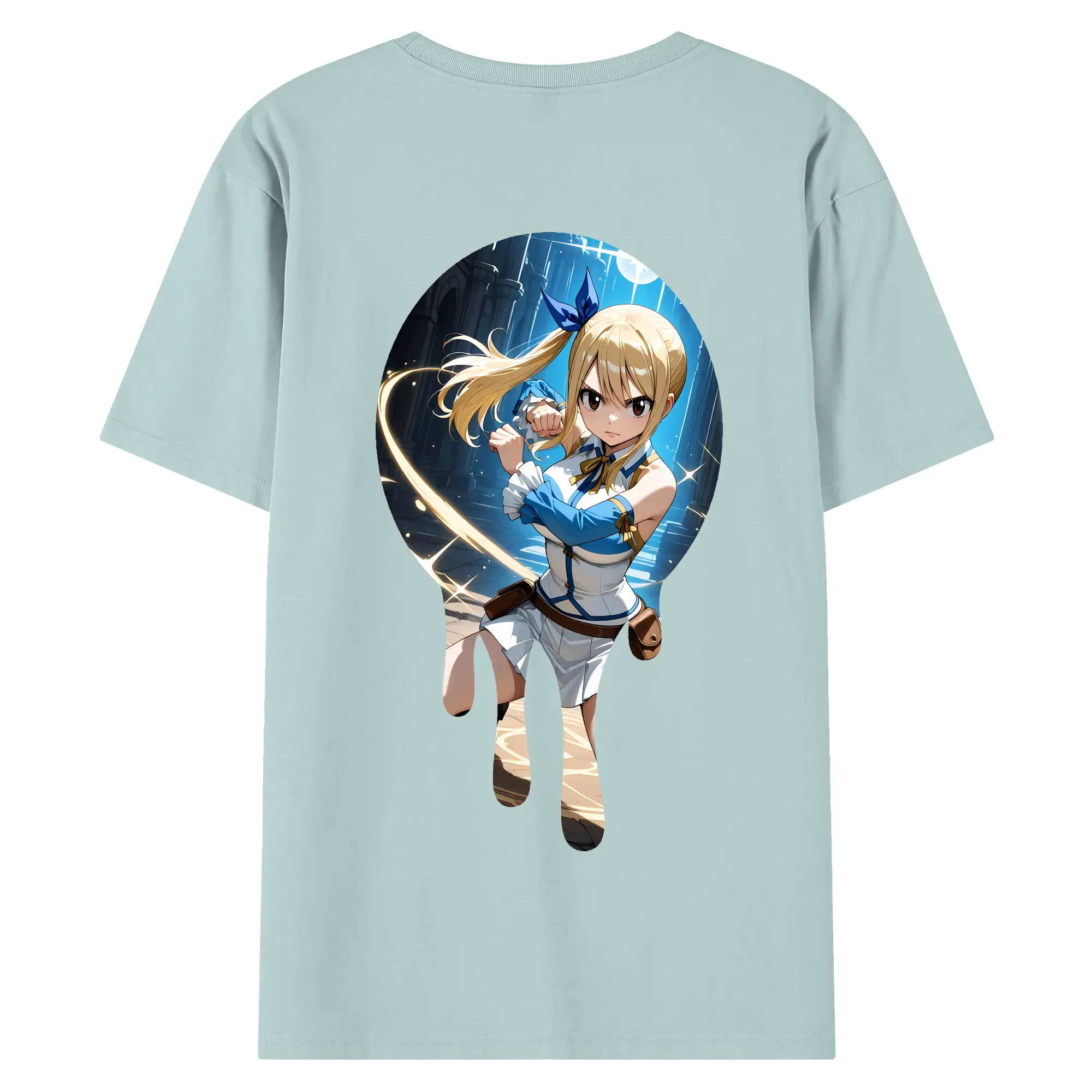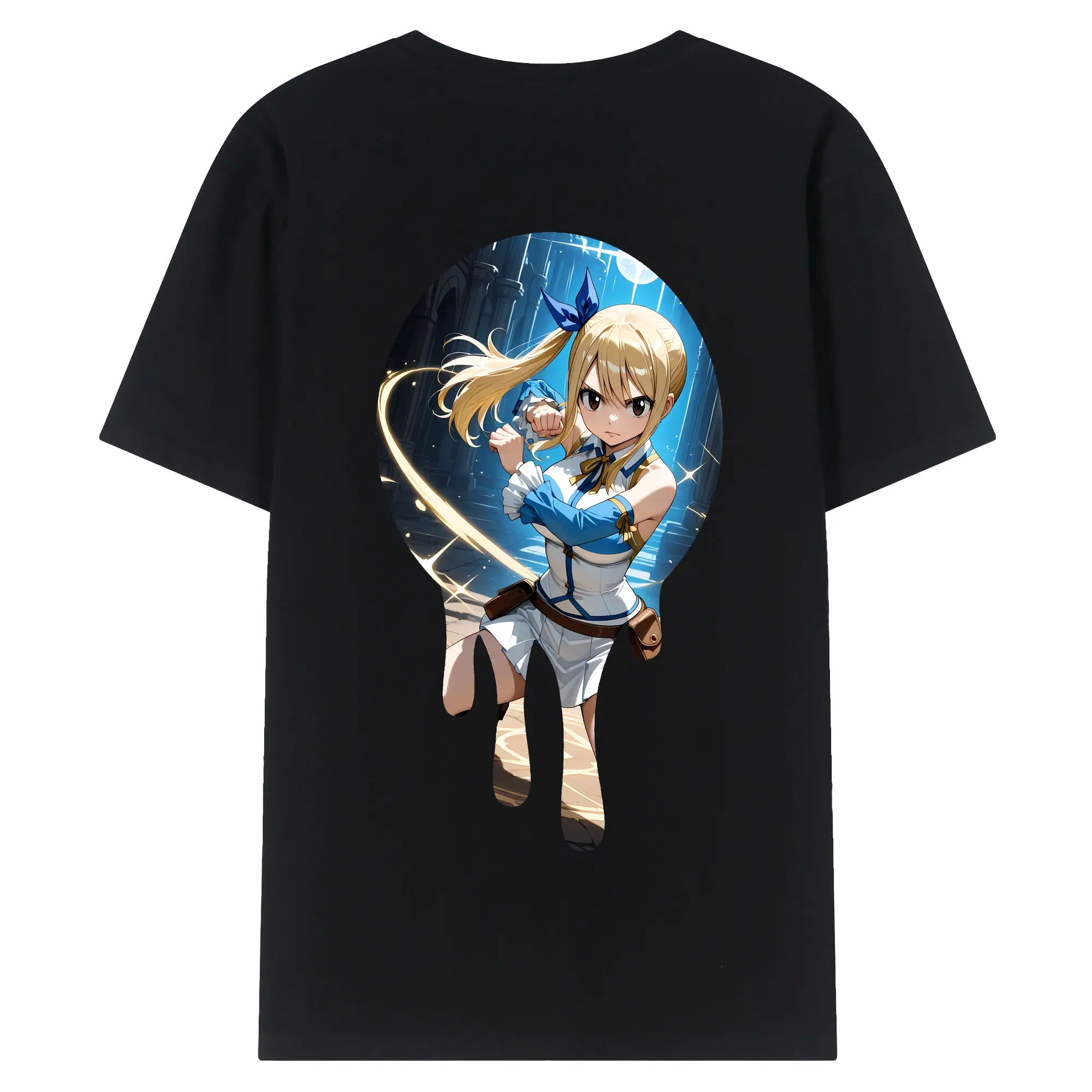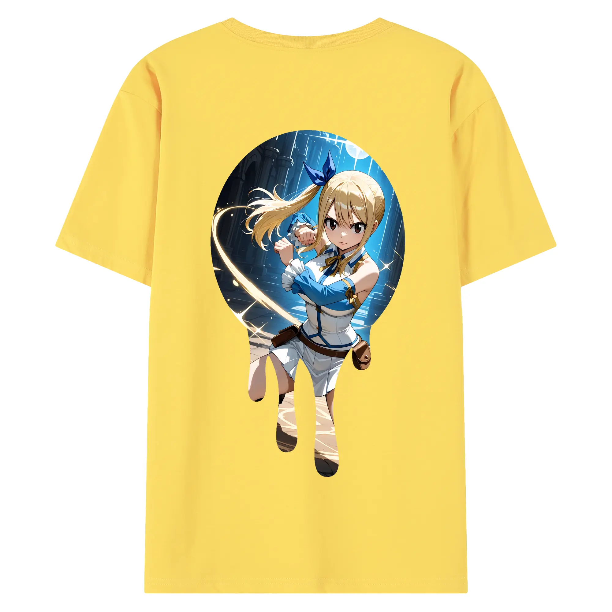 フェアリーテイル グッズ ルーシィ・ハートフィリア - 綿100% 半袖Tシャツ ・ フロントプリント ・ 快適 通気性 ・ 日常使い 散歩 スポーツ用