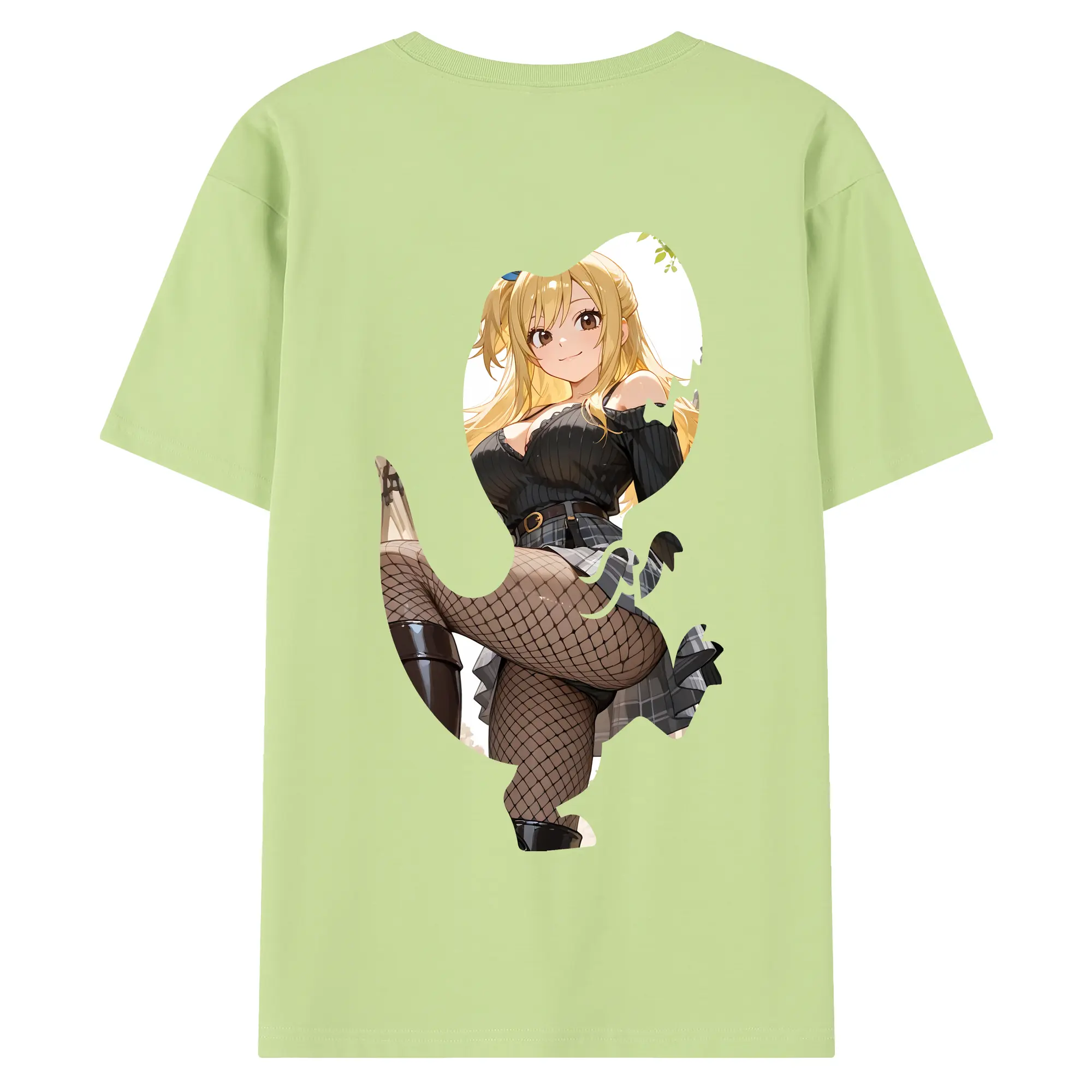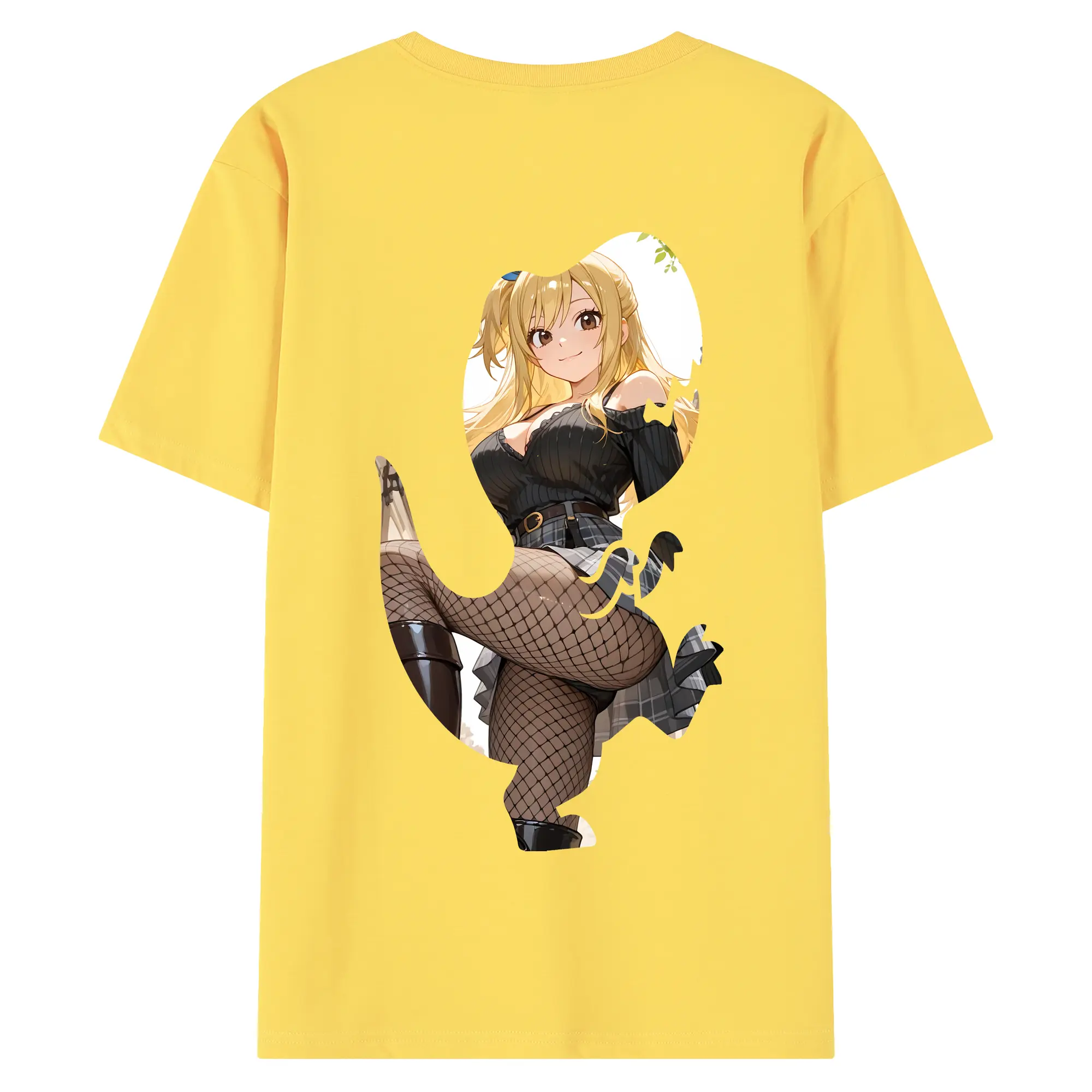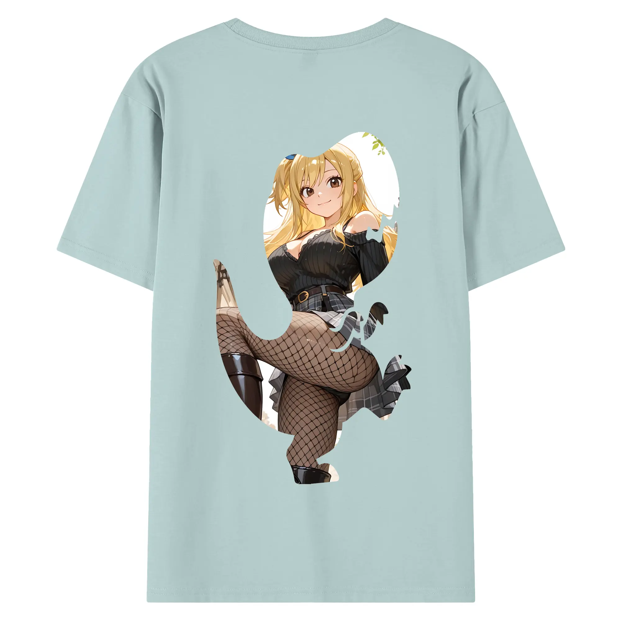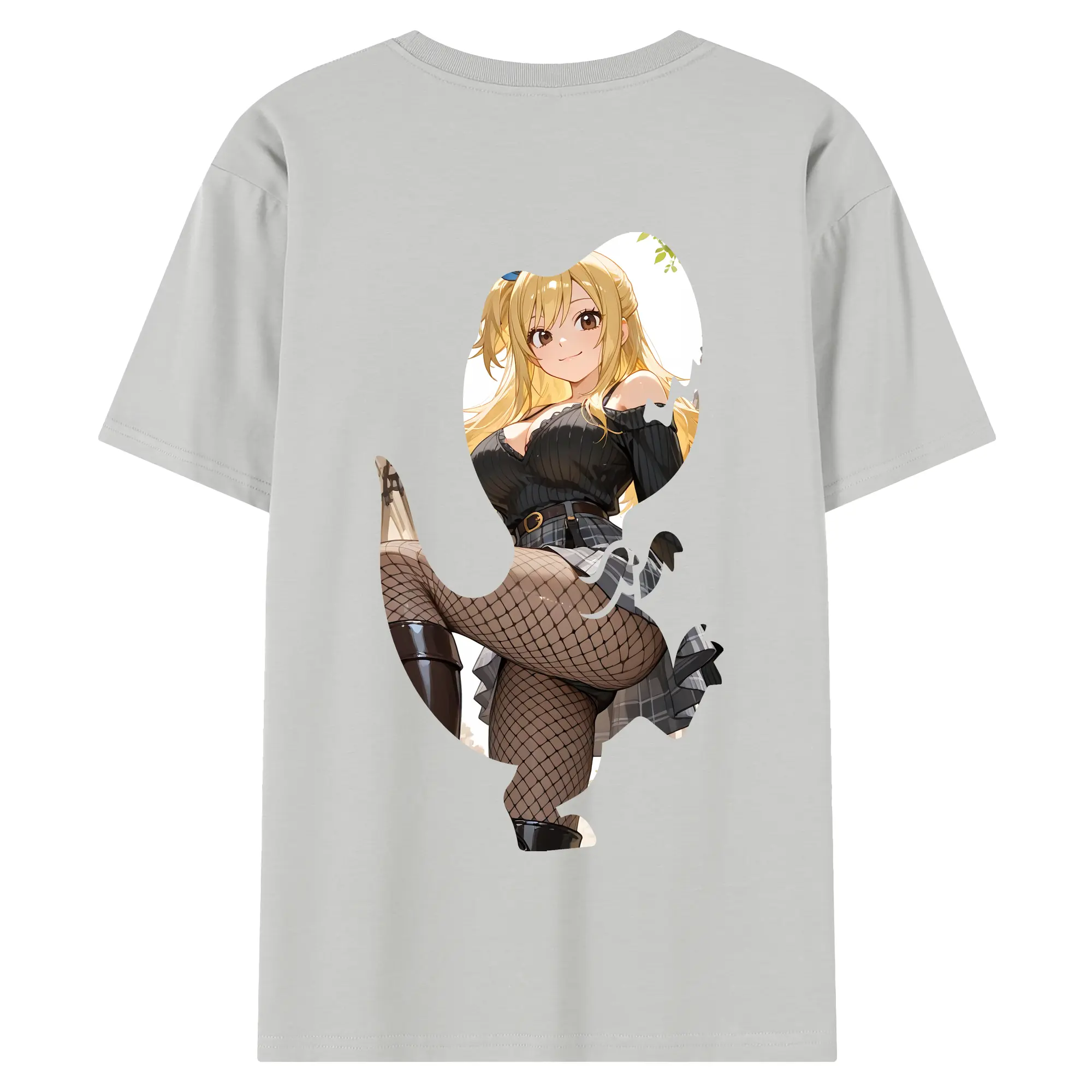 フェアリーテイル グッズ ルーシィ・ハートフィリア - 綿100% ヴィンテージ風 半袖Tシャツ ・ 背面プリント ・ 柔らか肌触り ・ 通気性 快適 ・ スポーツ カジュアル 外出用