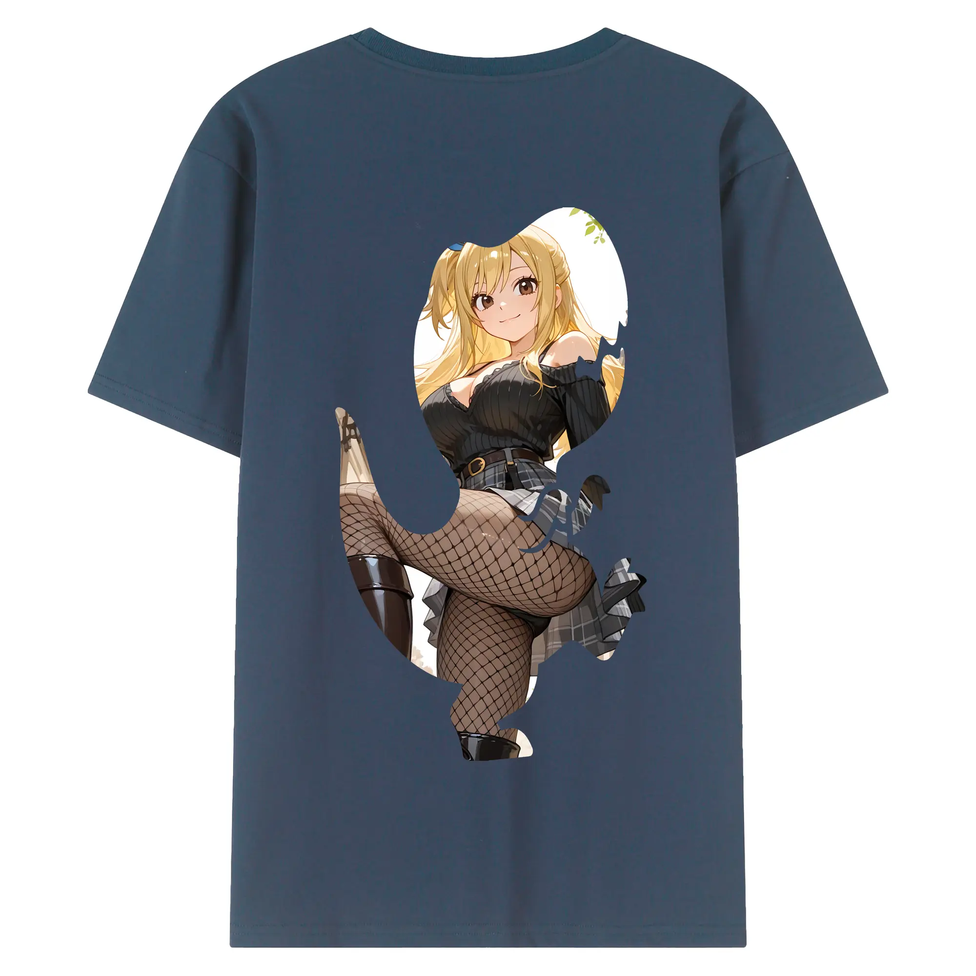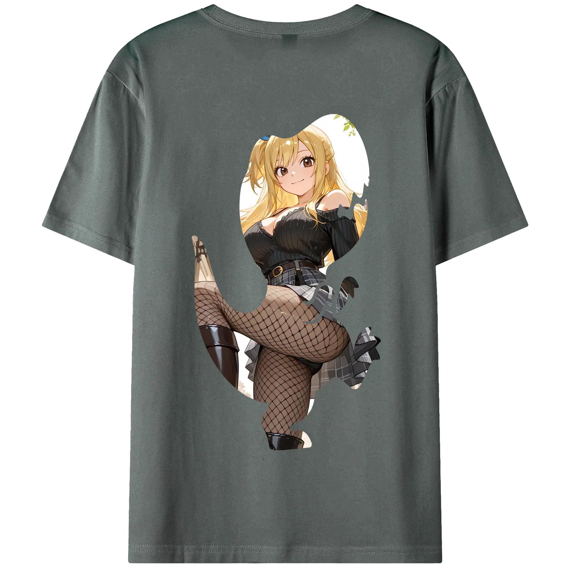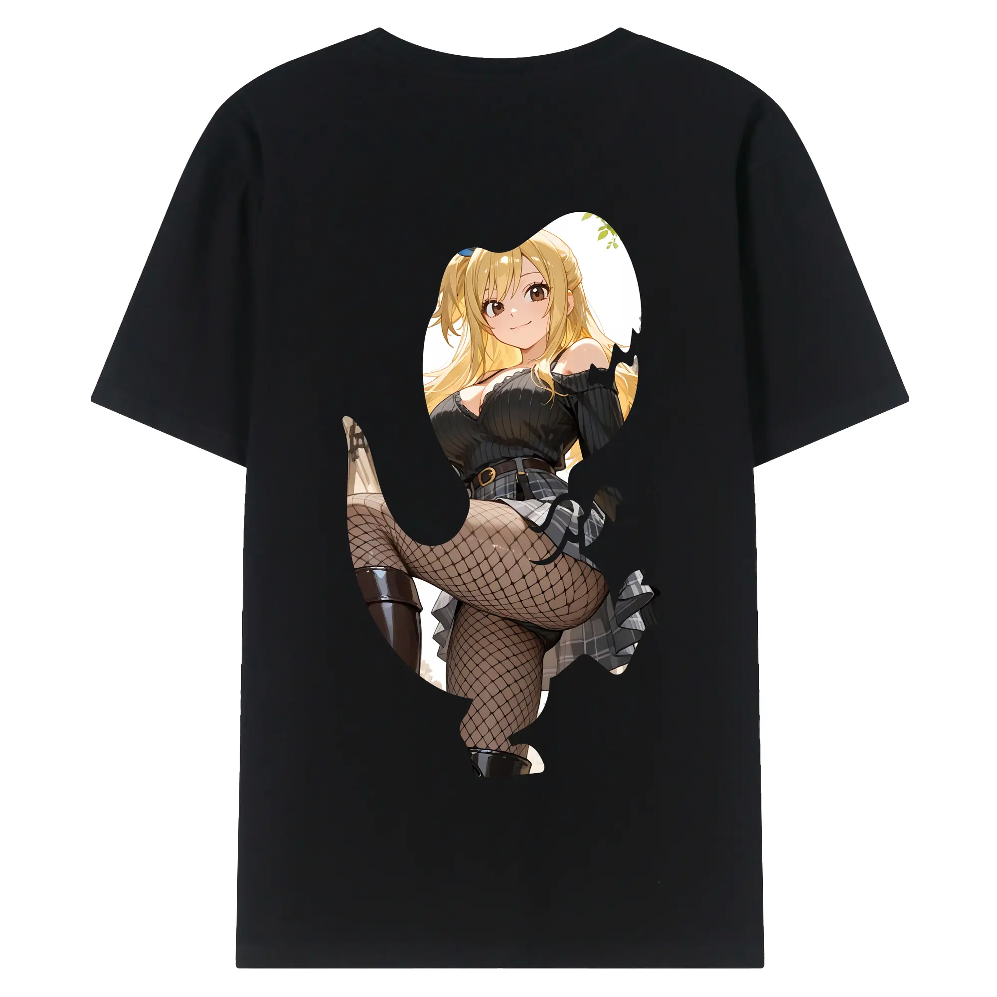 フェアリーテイル グッズ ルーシィ・ハートフィリア - 綿100% ヴィンテージ風 半袖Tシャツ ・ 背面プリント ・ 柔らか肌触り ・ 通気性 快適 ・ スポーツ カジュアル 外出用