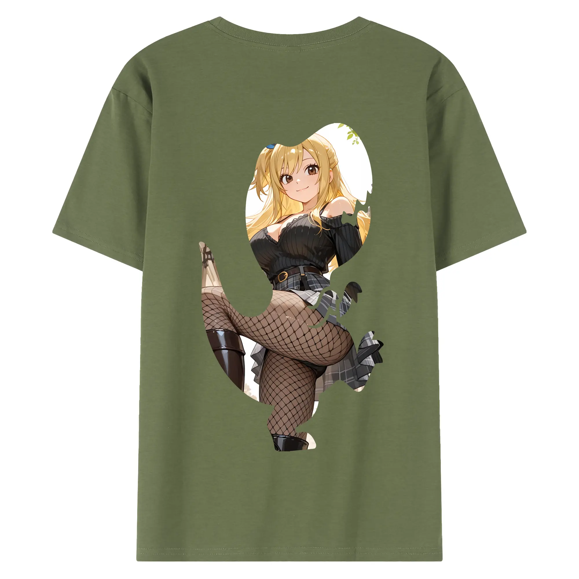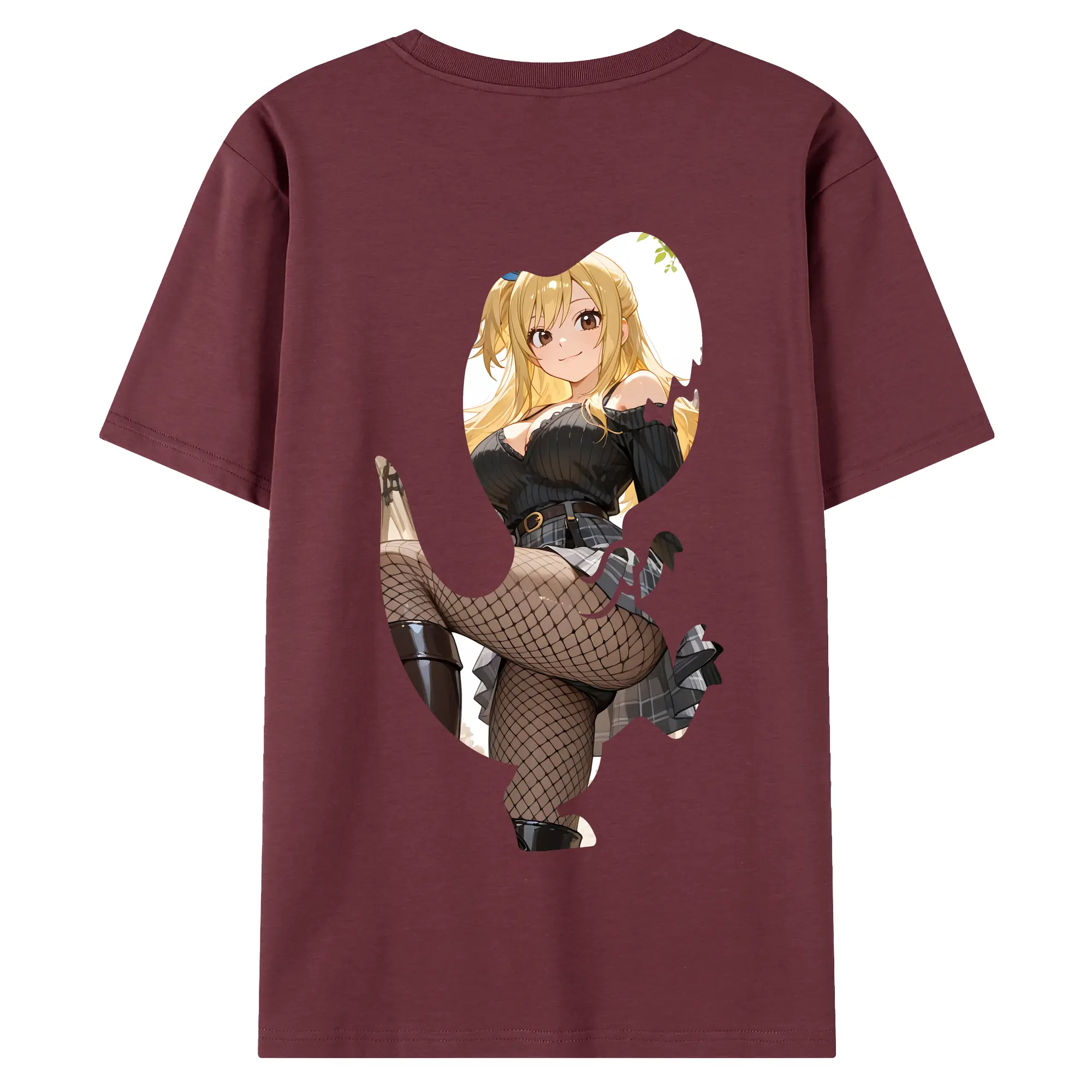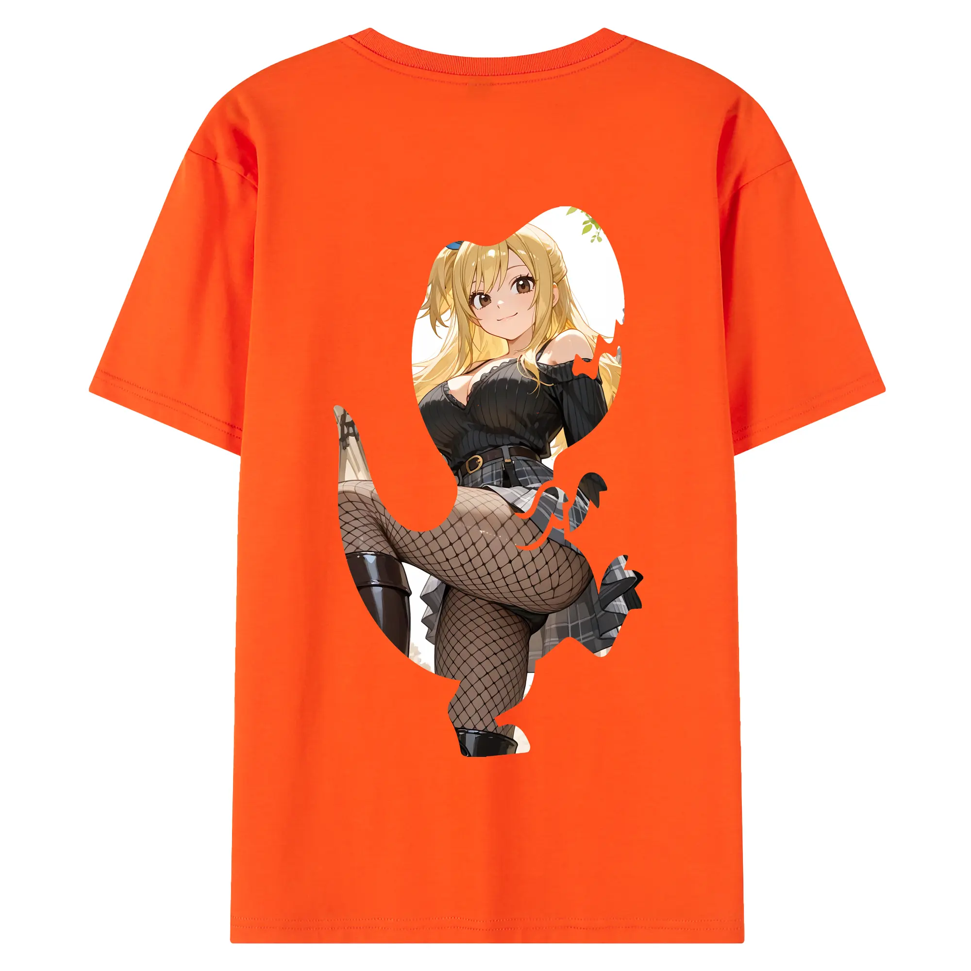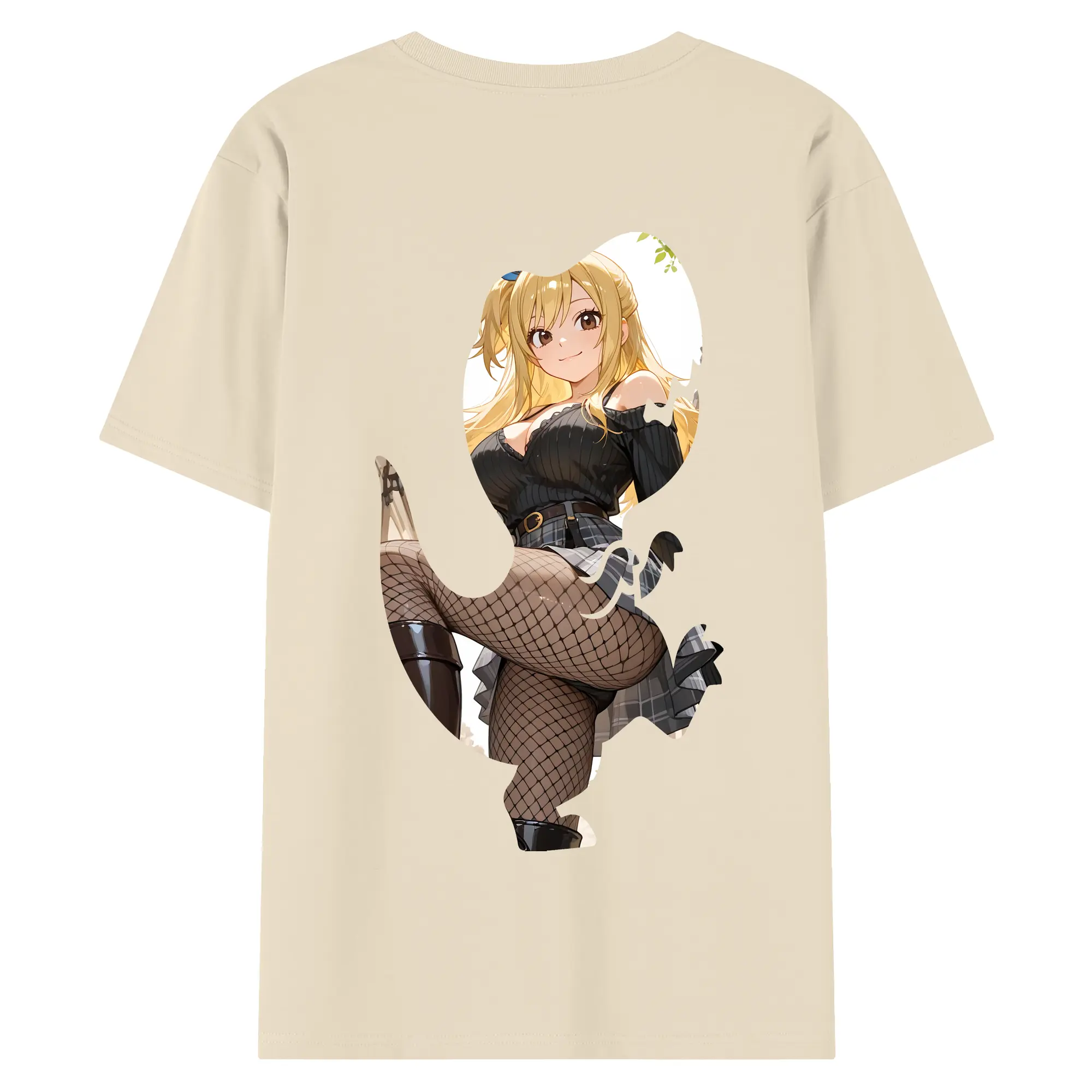 フェアリーテイル グッズ ルーシィ・ハートフィリア - 綿100% ヴィンテージ風 半袖Tシャツ ・ 背面プリント ・ 柔らか肌触り ・ 通気性 快適 ・ スポーツ カジュアル 外出用