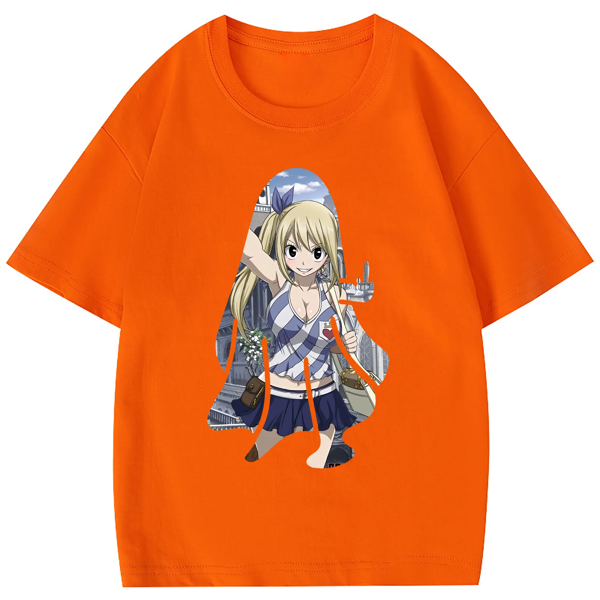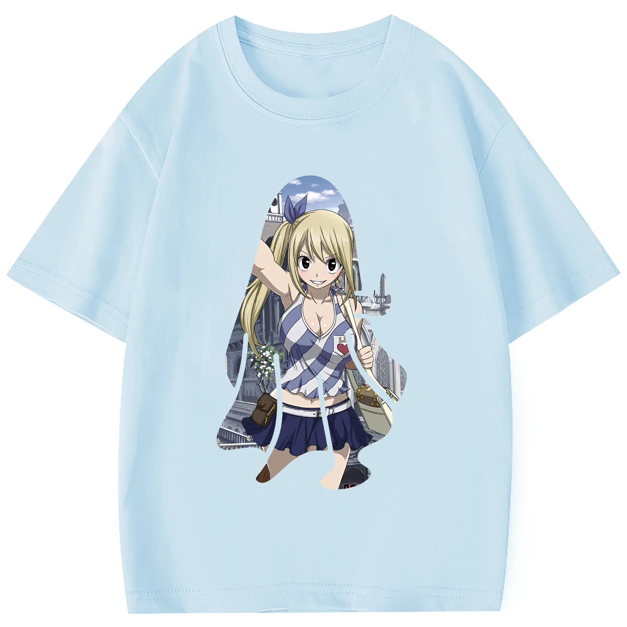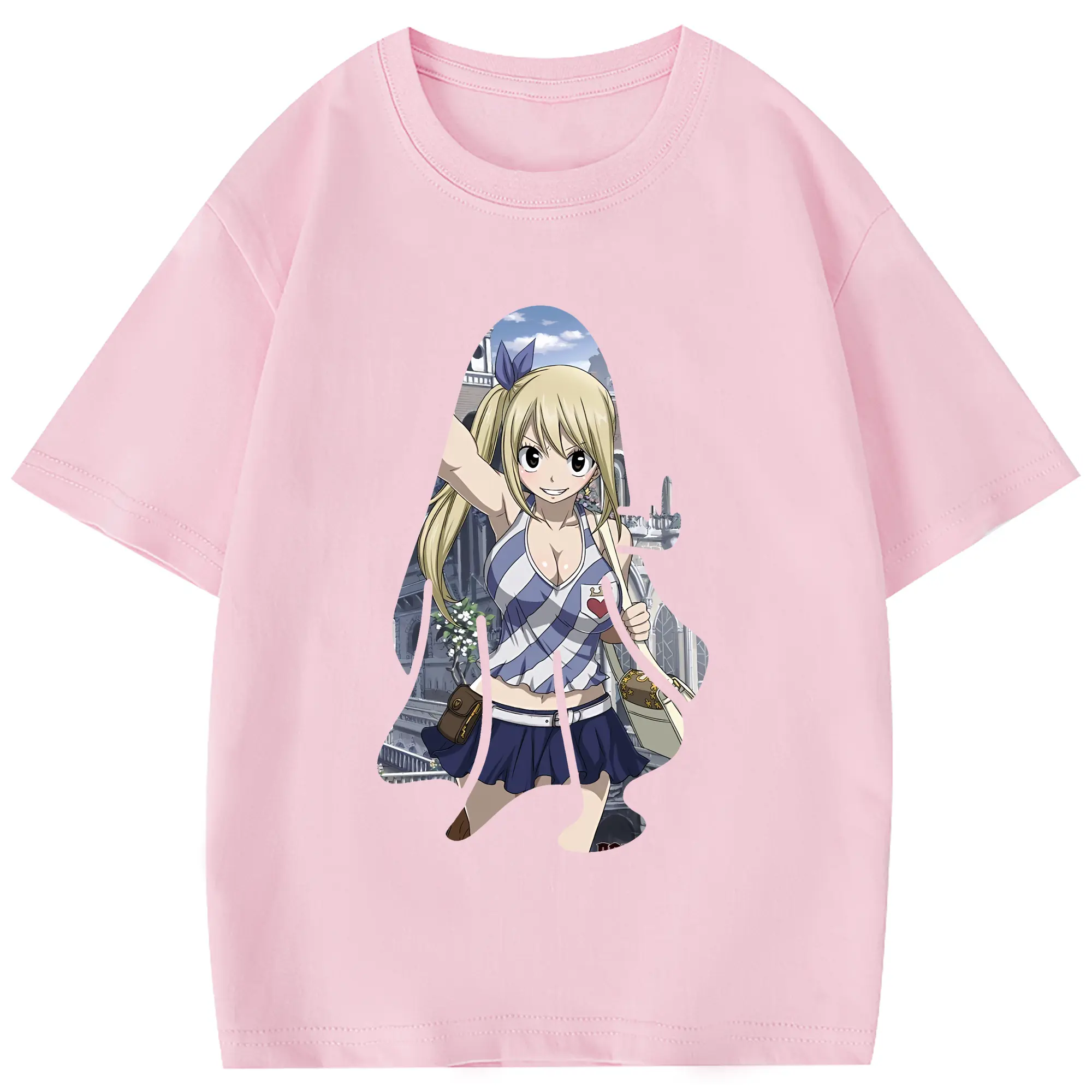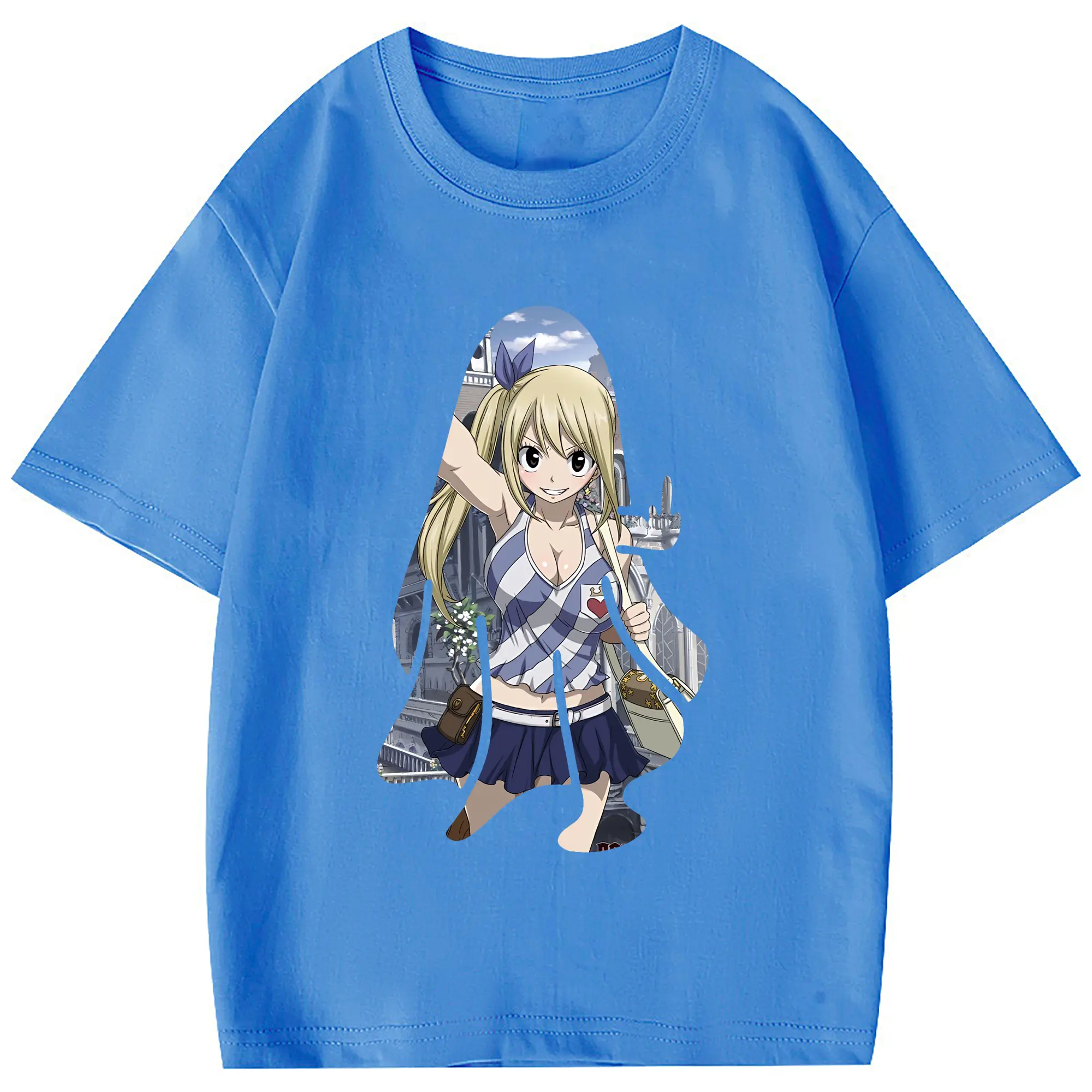 フェアリーテイル グッズ ルーシィ・ハートフィリア - 綿100% 半袖Tシャツ ・ フロントプリント ・ 快適 通気性 ・ 日常使い 散歩 スポーツ用