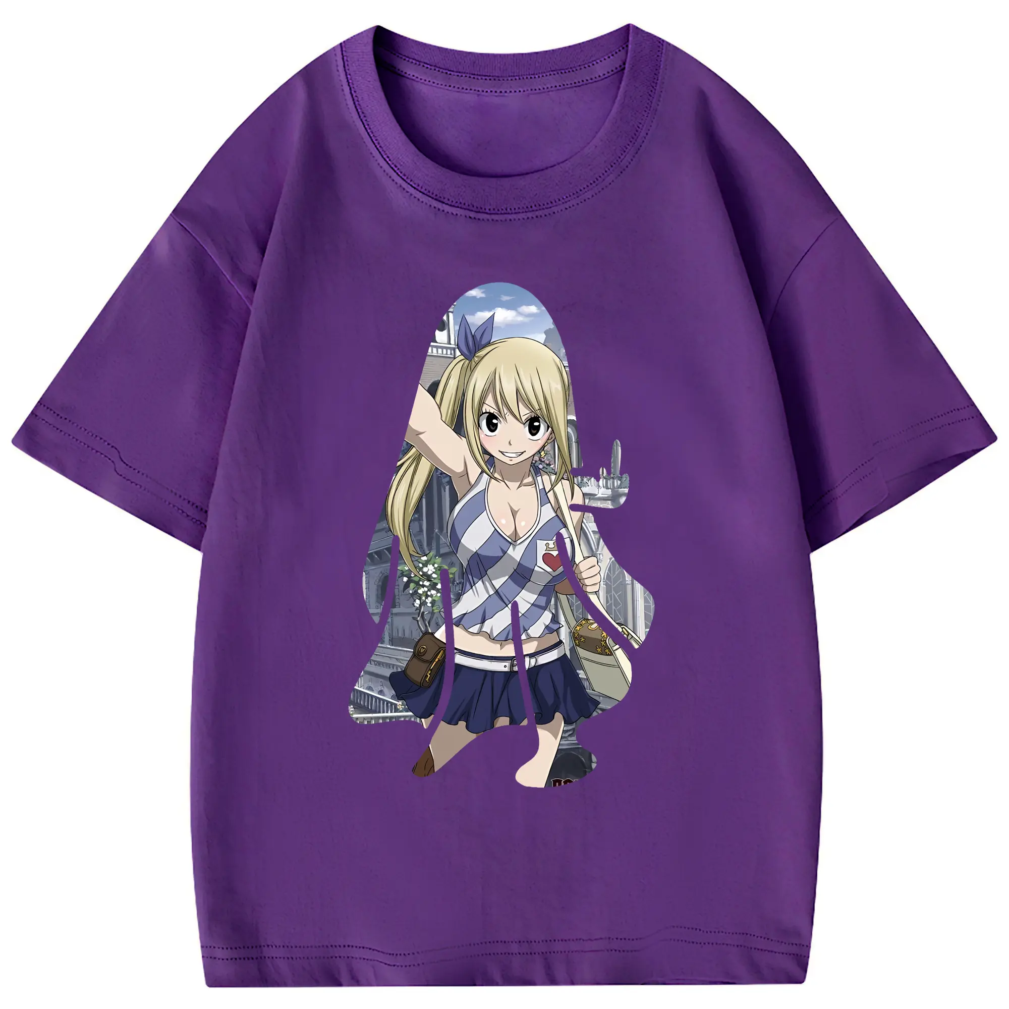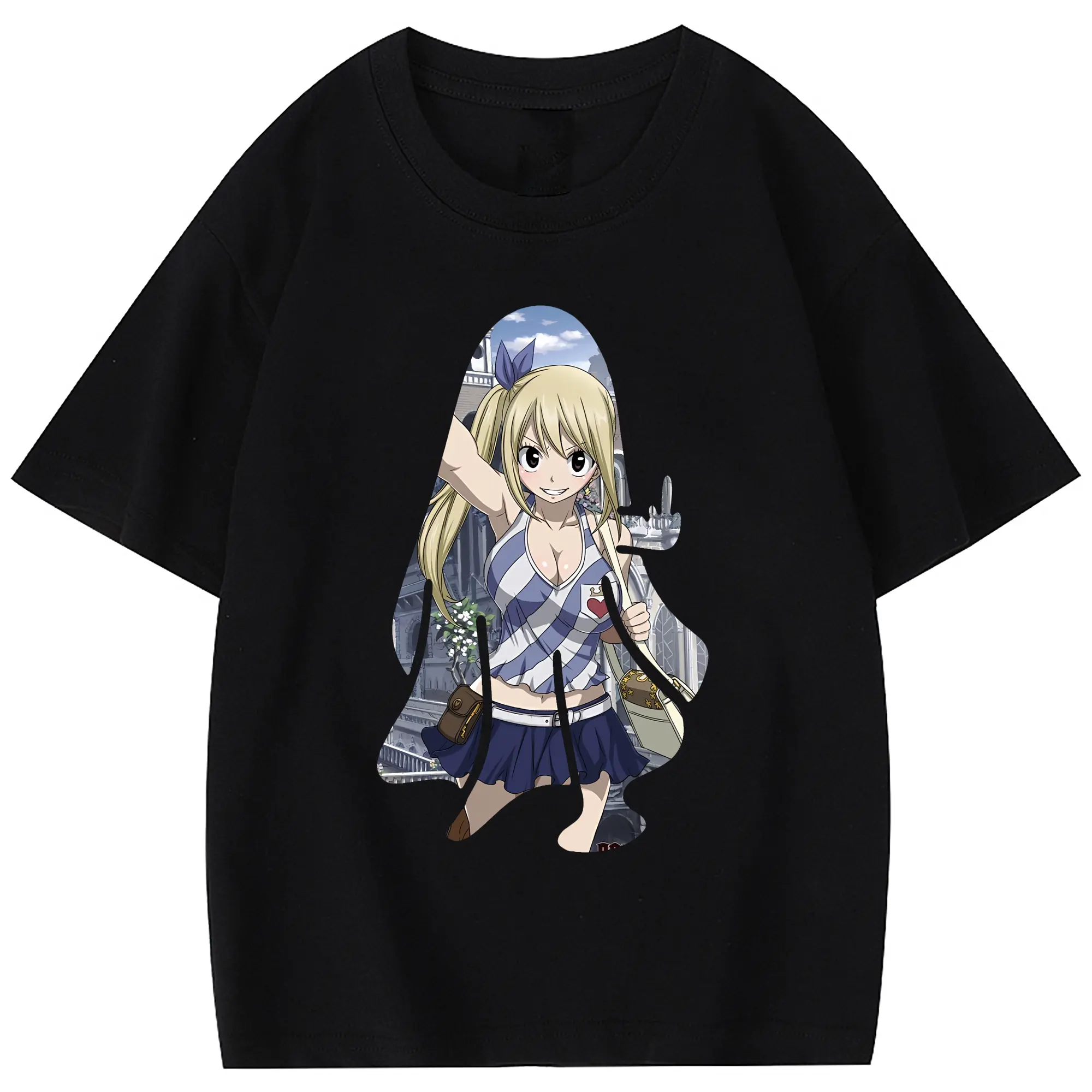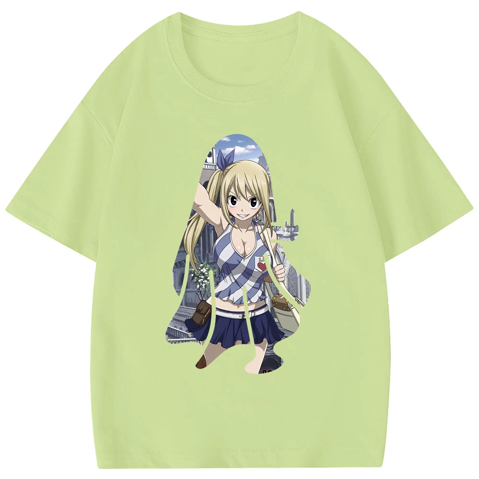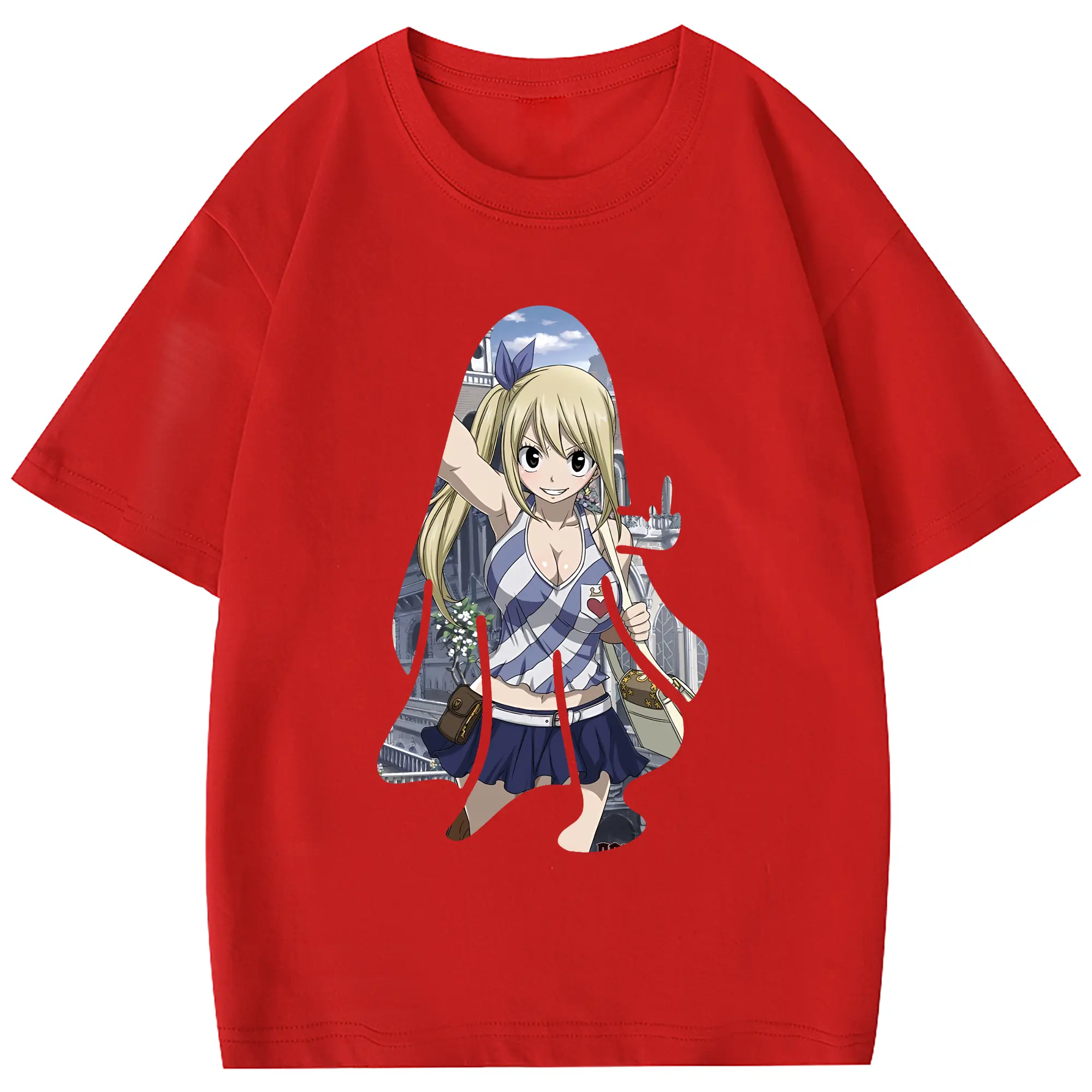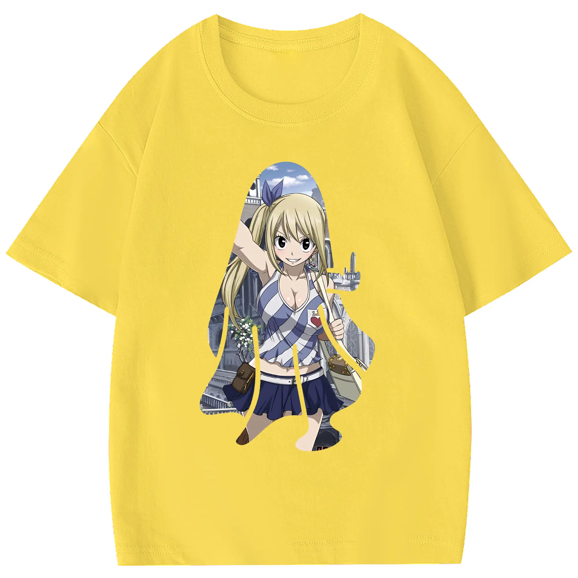 フェアリーテイル グッズ ルーシィ・ハートフィリア - 綿100% 半袖Tシャツ ・ フロントプリント ・ 快適 通気性 ・ 日常使い 散歩 スポーツ用