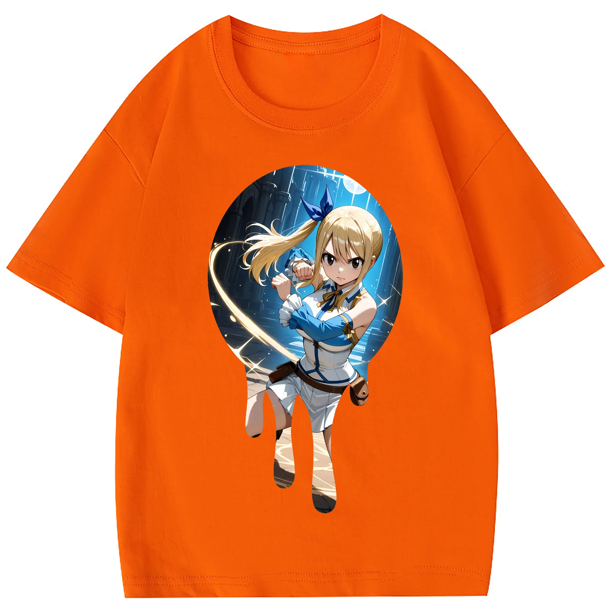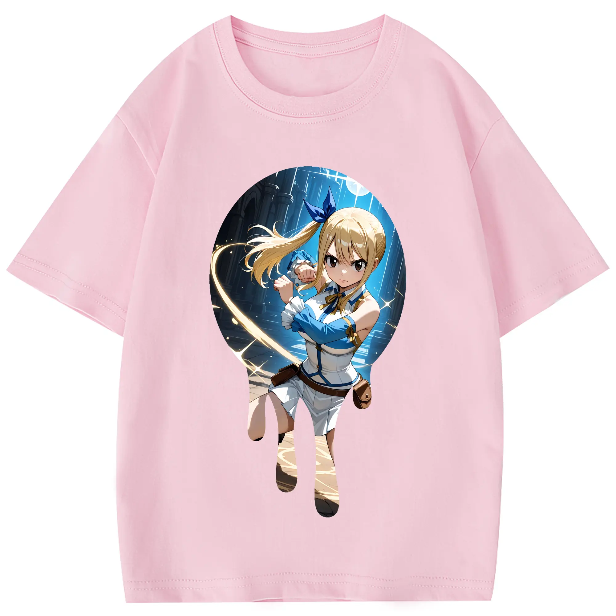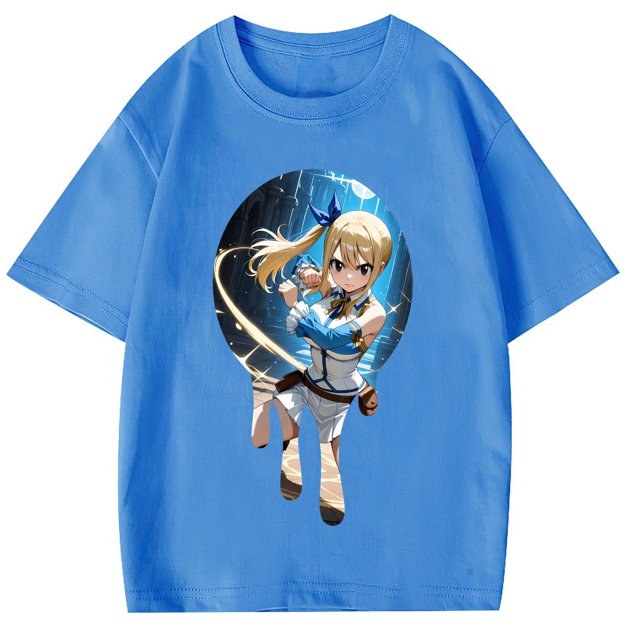 フェアリーテイル グッズ ルーシィ・ハートフィリア - 綿100% 半袖Tシャツ ・ フロントプリント ・ 快適 通気性 ・ 日常使い 散歩 スポーツ用