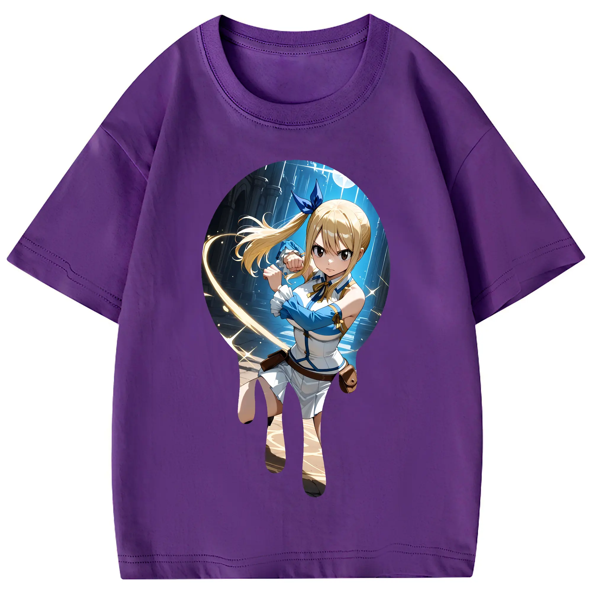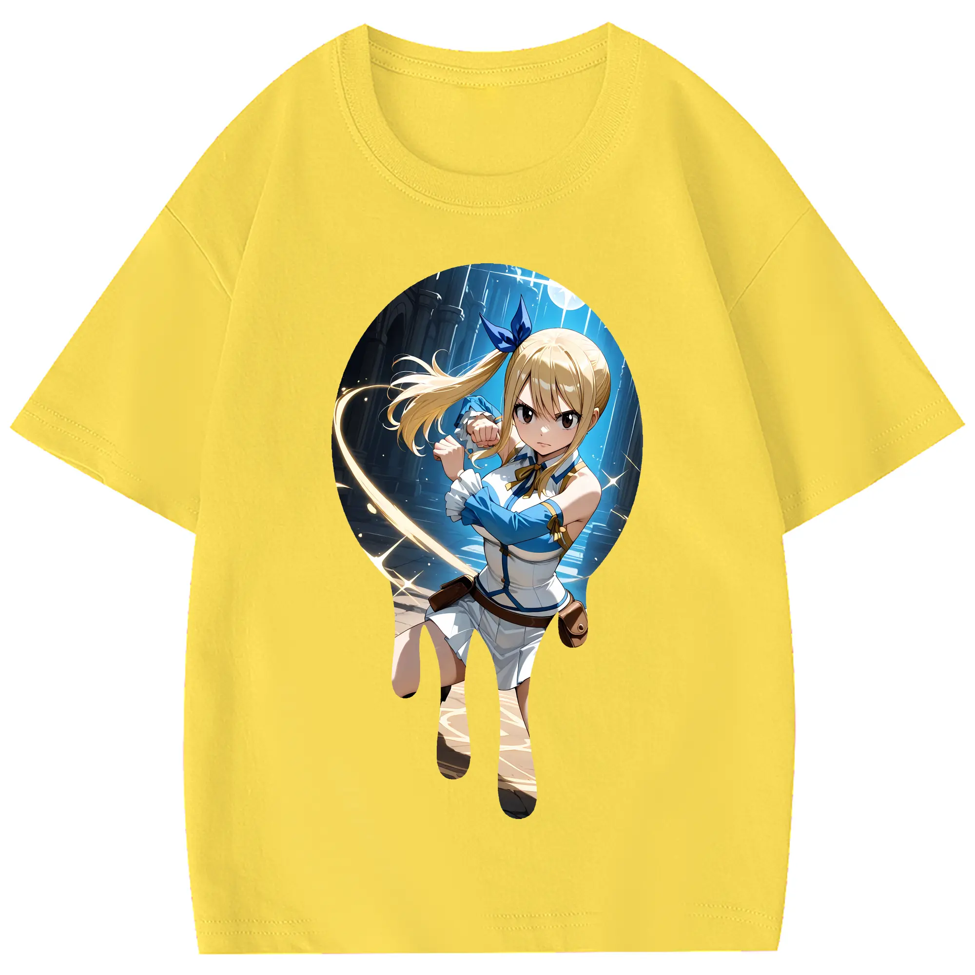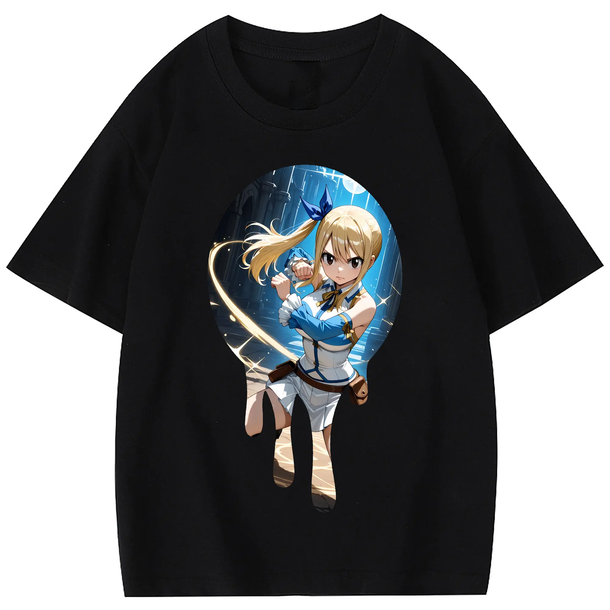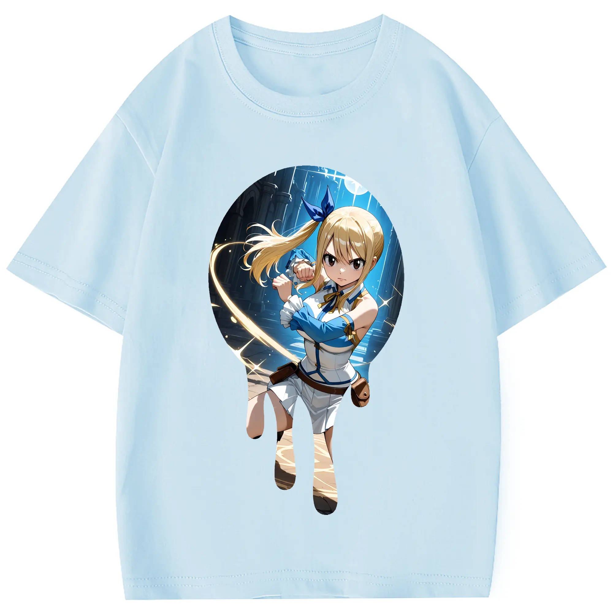 フェアリーテイル グッズ ルーシィ・ハートフィリア - 綿100% 半袖Tシャツ ・ フロントプリント ・ 快適 通気性 ・ 日常使い 散歩 スポーツ用