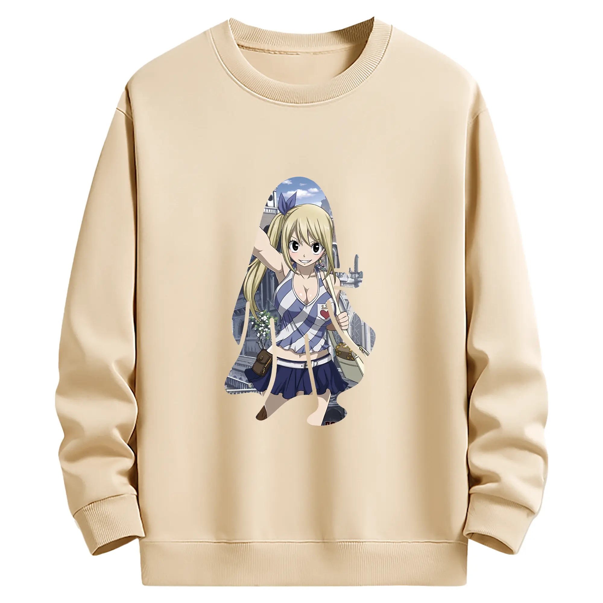 フェアリーテイル グッズ ルーシィ・ハートフィリア - 薄手 クルーネック スウェット 裏毛260g · ポリエステル 春秋向け カジュアル 男女兼用 · トレーナー デイリー スポーツ 散歩に最適