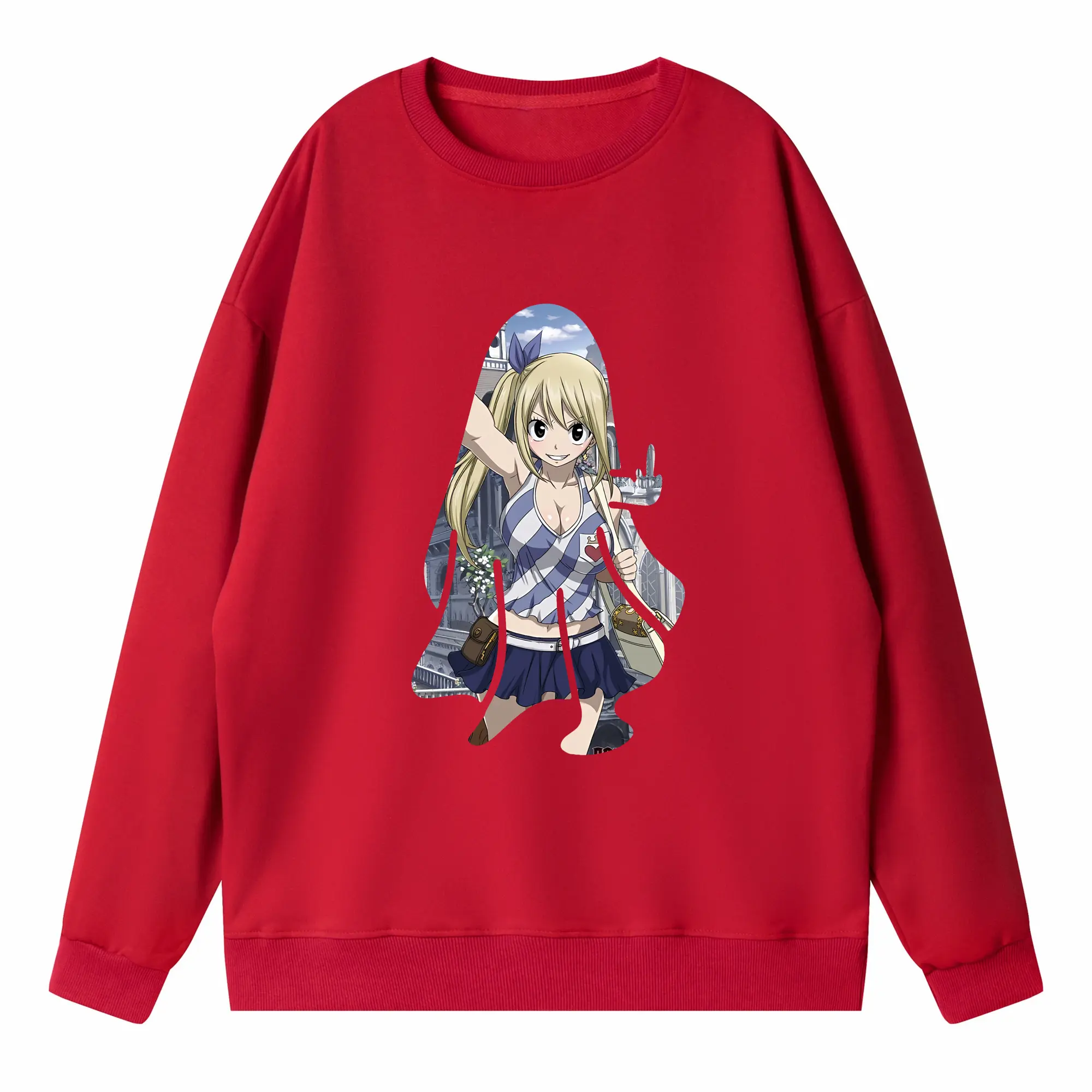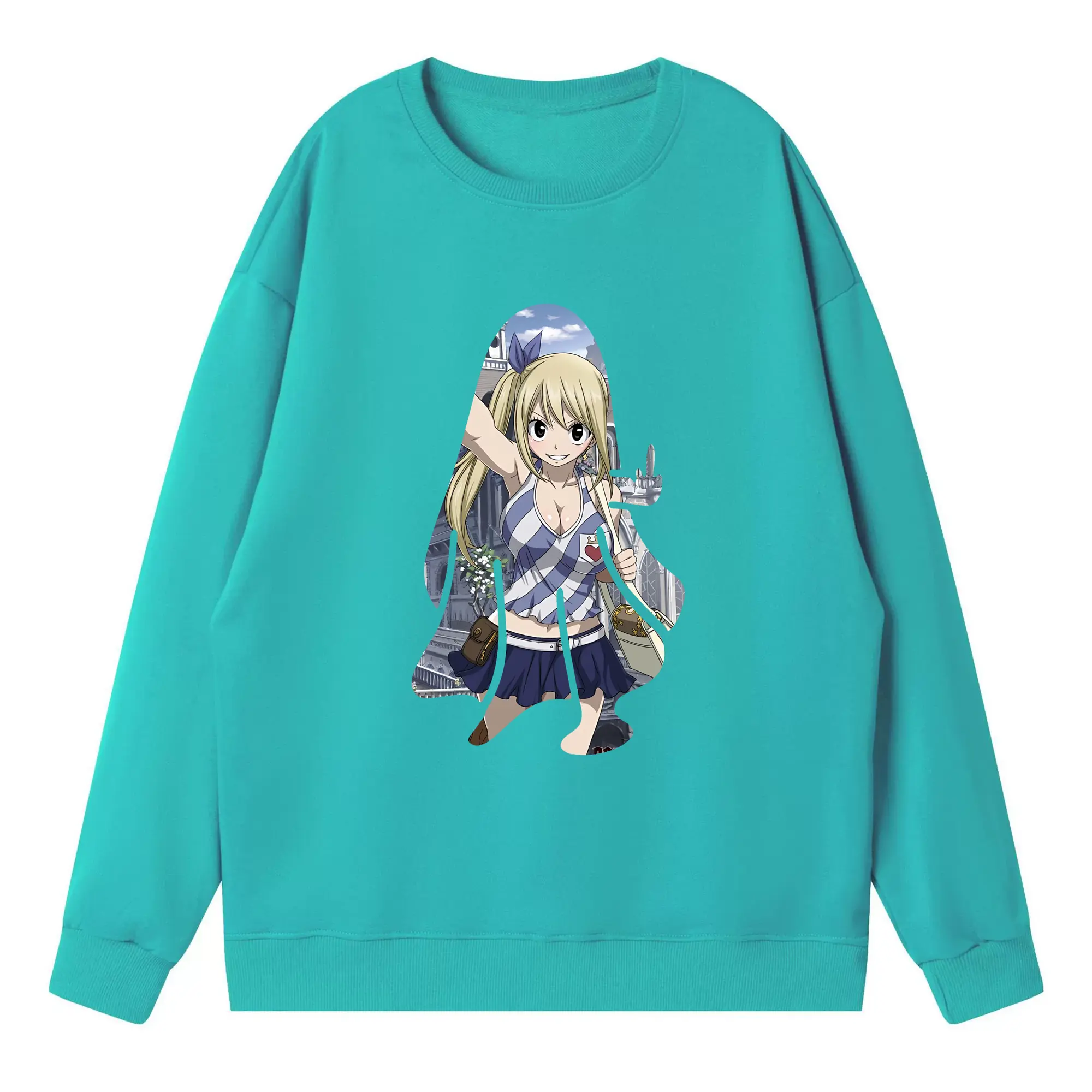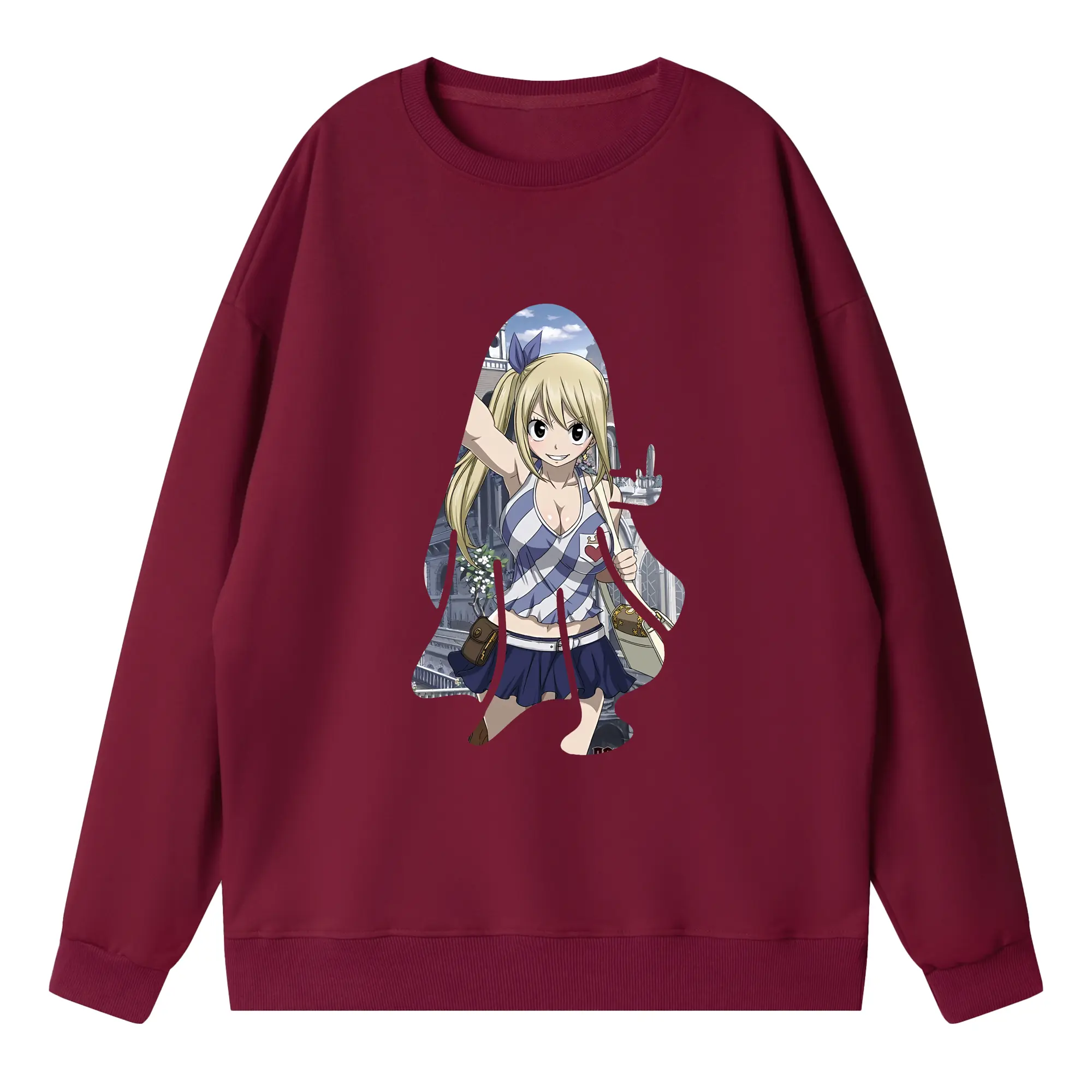 フェアリーテイル グッズ ルーシィ・ハートフィリア - 高品質 クルーネック スウェット ・ コットン59% ポリエステル41% ・ ユニセックス 長袖 トレーナー ・ カジュアル デイリー スポーツ 散歩用